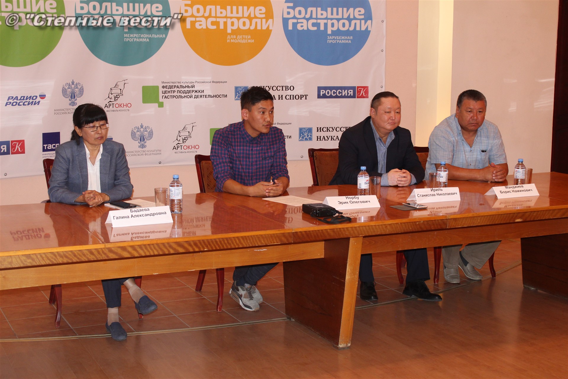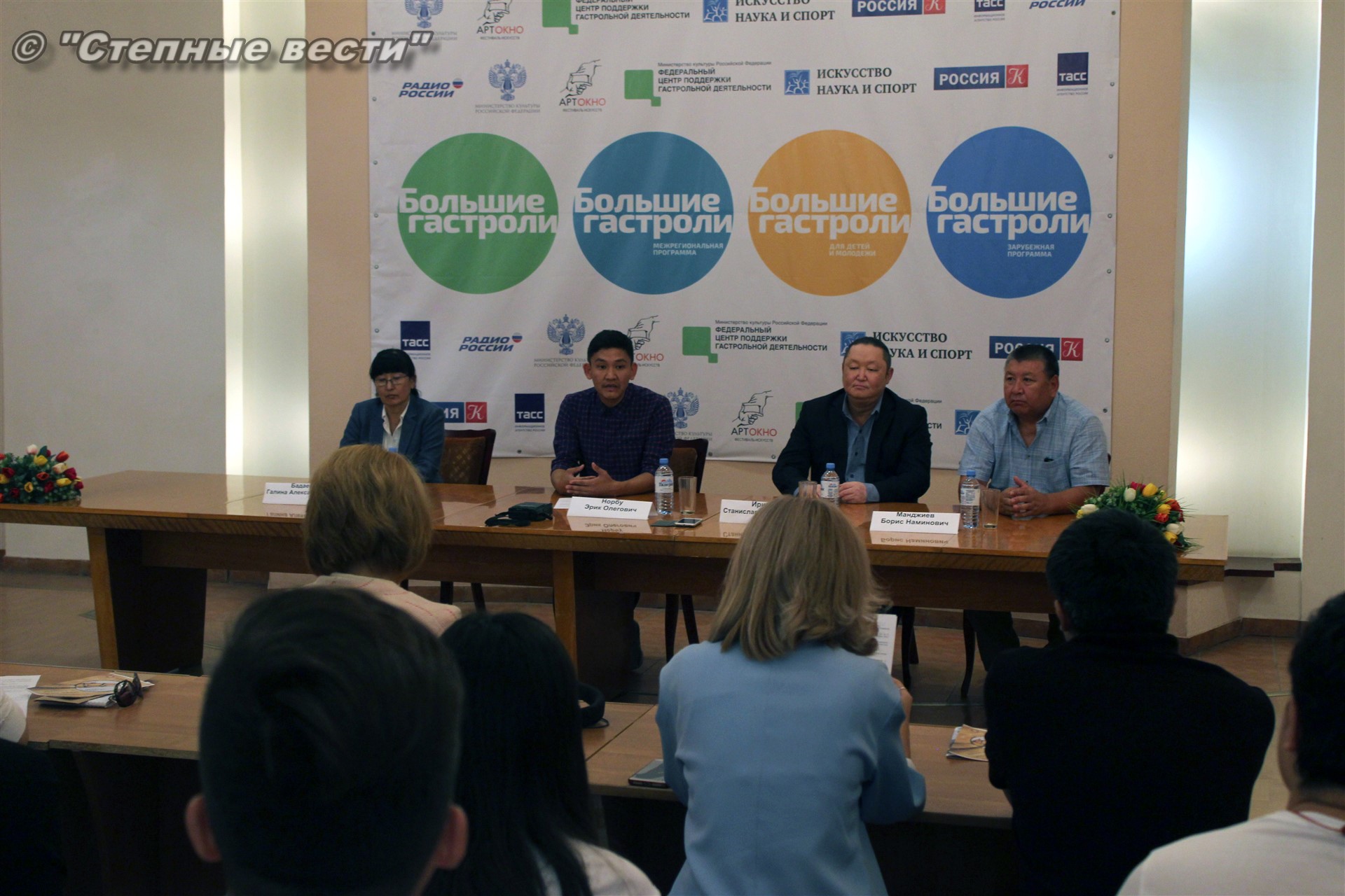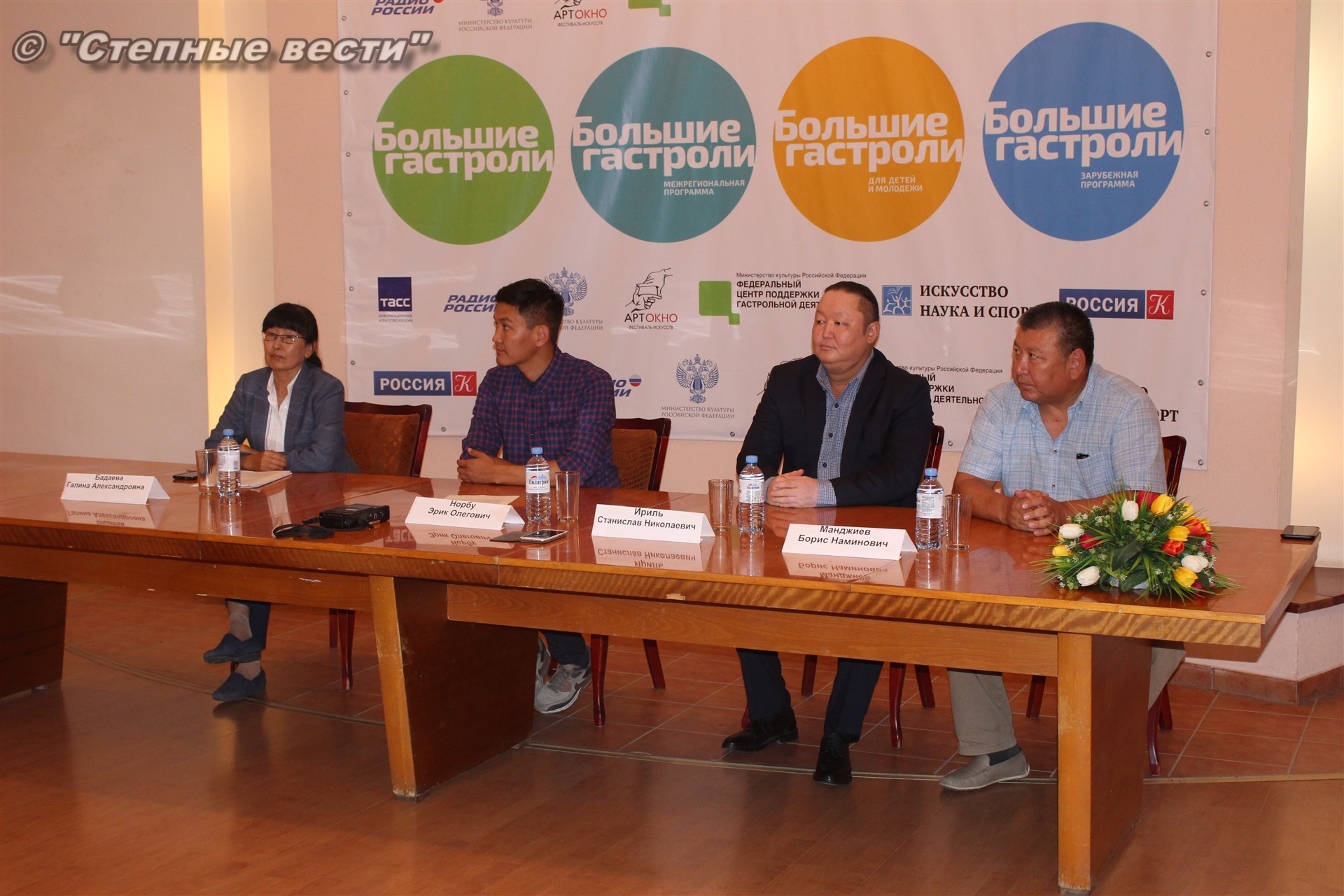 Сегодня в преддверии открытия гастролей состоялась пресс-конференция с участием замминистра культуры и туризма Калмыкии Галины Бадаевой, генерального директора и заведующего литературной частью театра из Тывы Станислава Ириля и Эрика Норбу, художественного руководителя местного драмтеатра Бориса Манджиева.