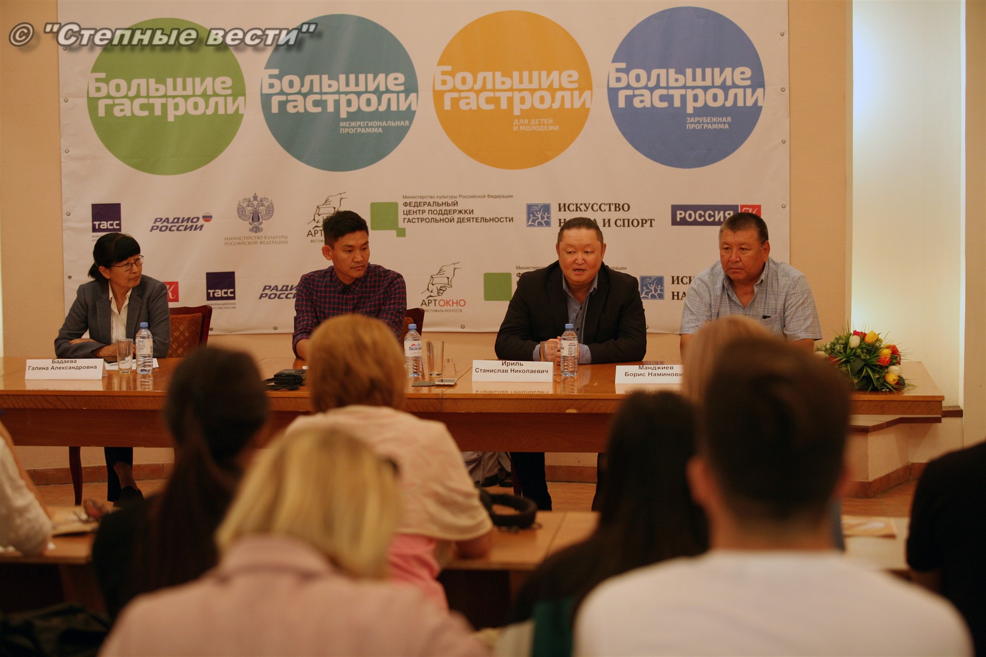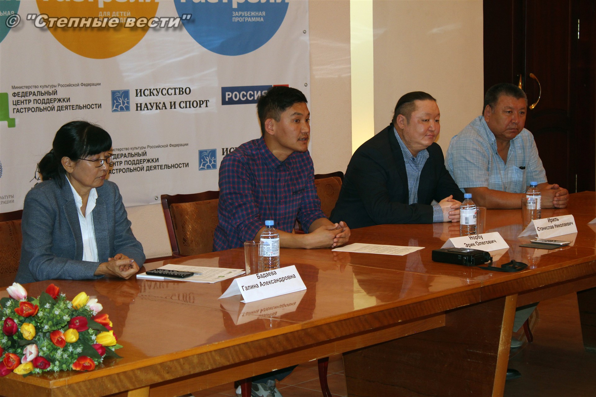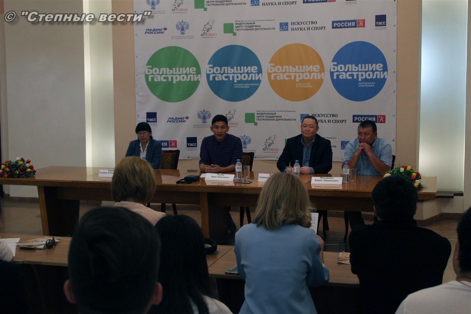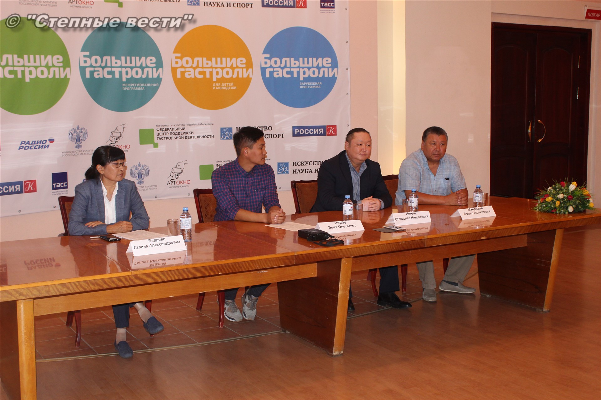 Сегодня в преддверии открытия гастролей состоялась пресс-конференция с участием замминистра культуры и туризма Калмыкии Галины Бадаевой, генерального директора и заведующего литературной частью театра из Тывы Станислава Ириля и Эрика Норбу, художественного руководителя местного драмтеатра Бориса Манджиева.