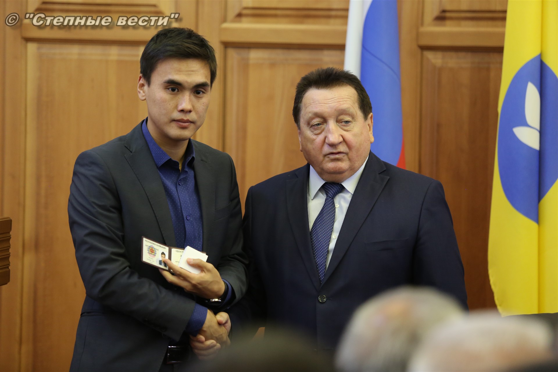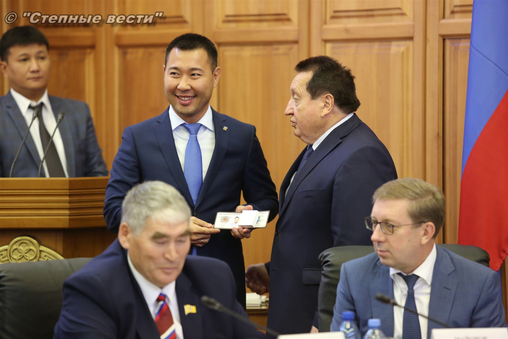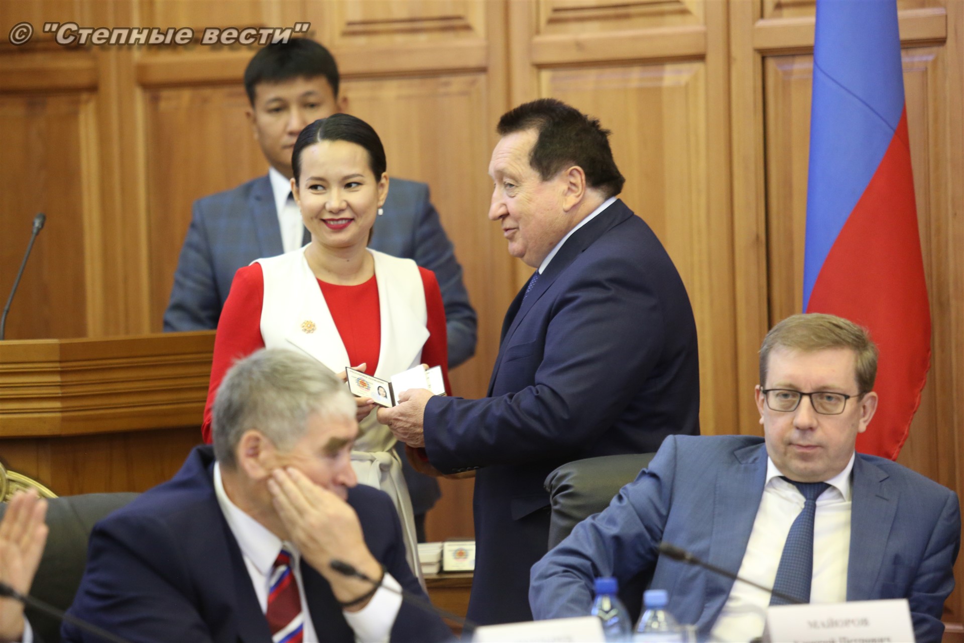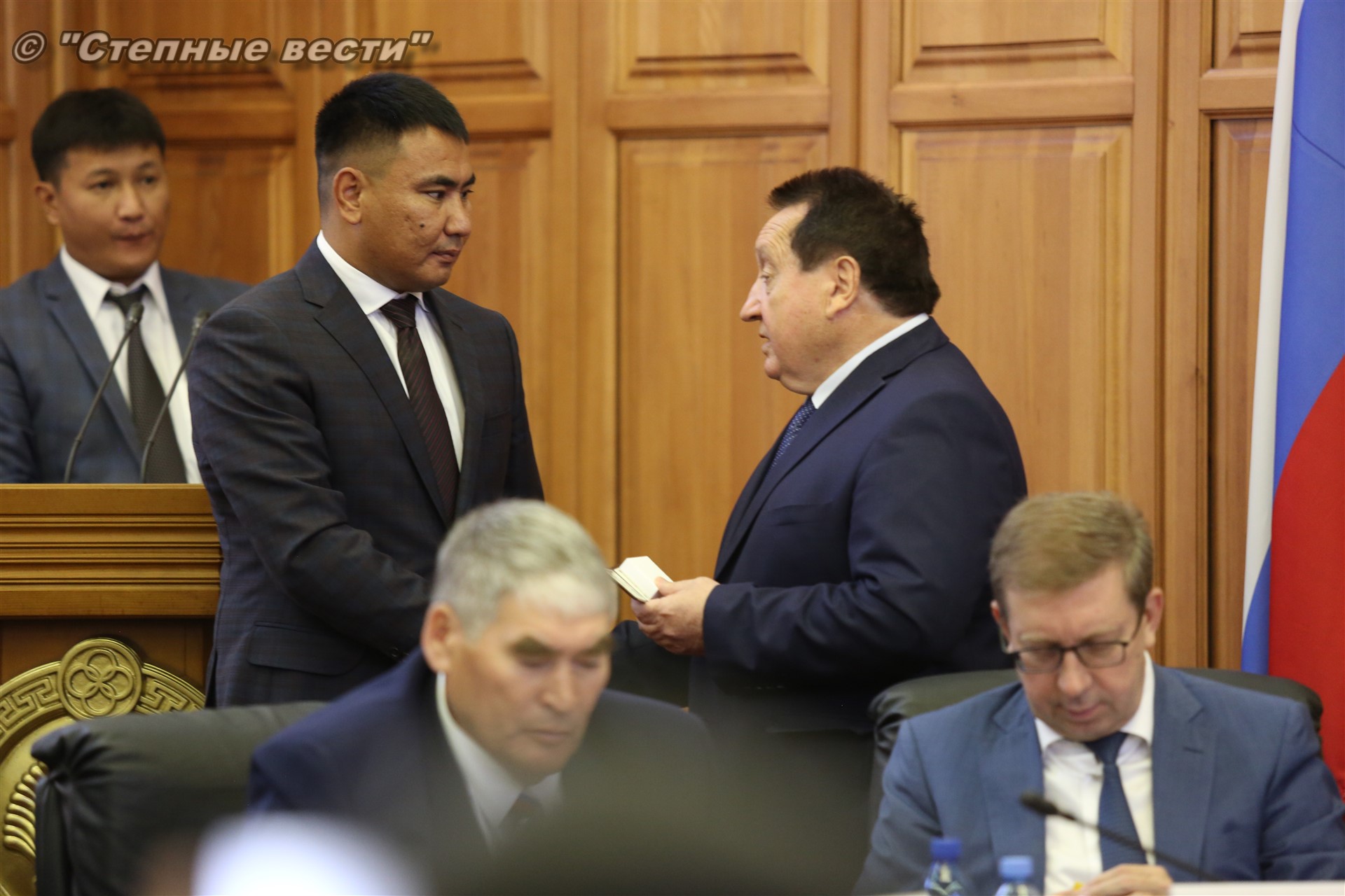 Анатолий Козачко, назначенный указом главы региона председательствующим на первом заседании Народного Хурала шестого созыва, объявивший о начале работы регионального парламента, вручил избранным депутатам мандаты и значки – атрибуты их полномочий.