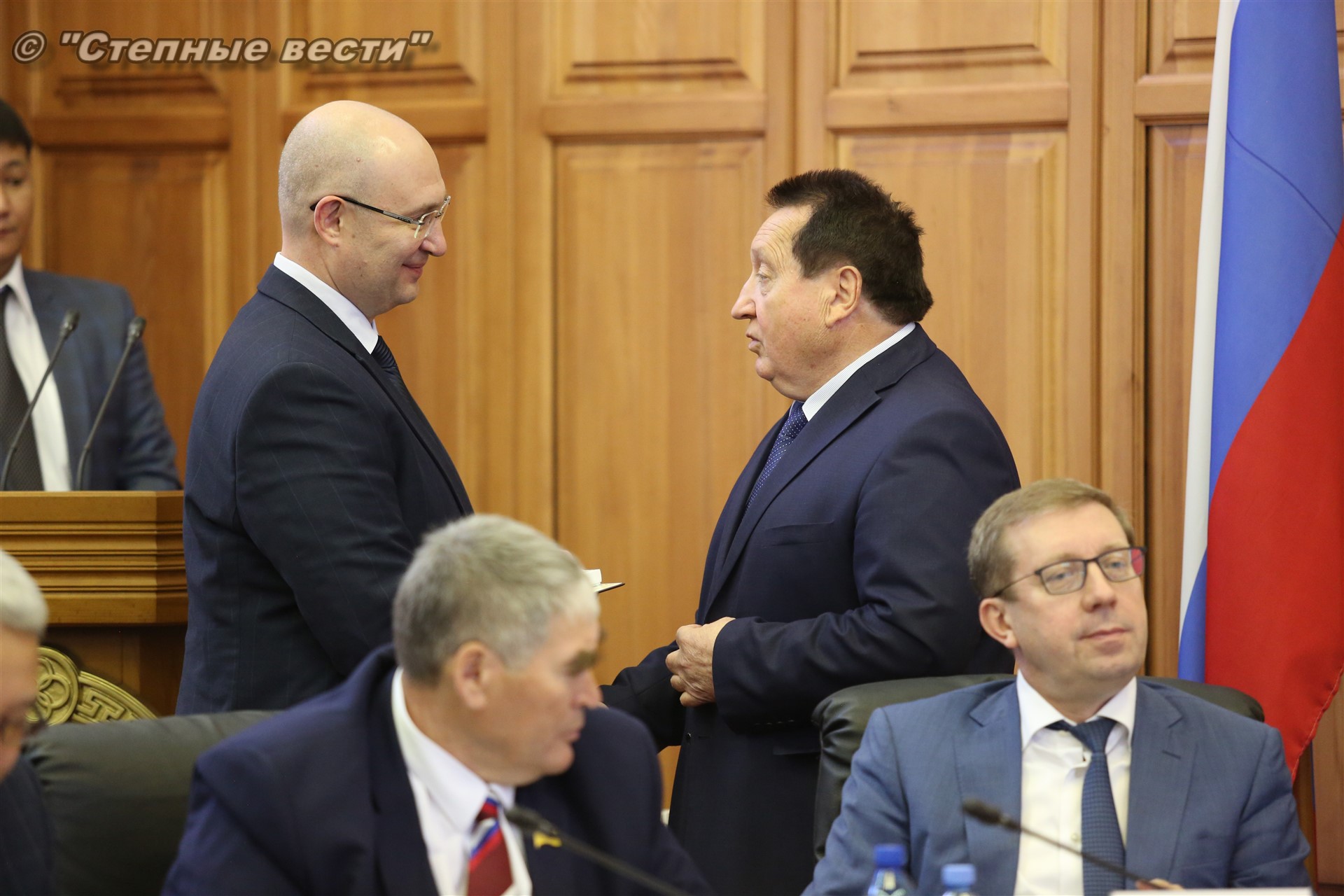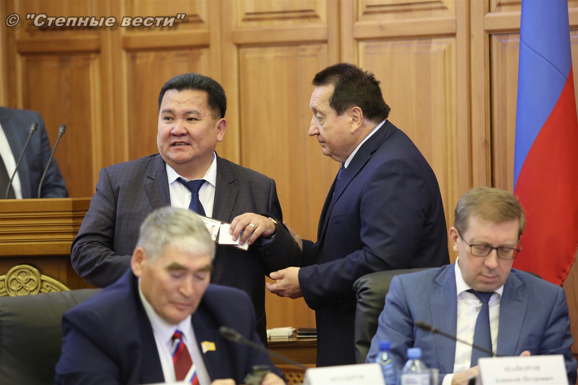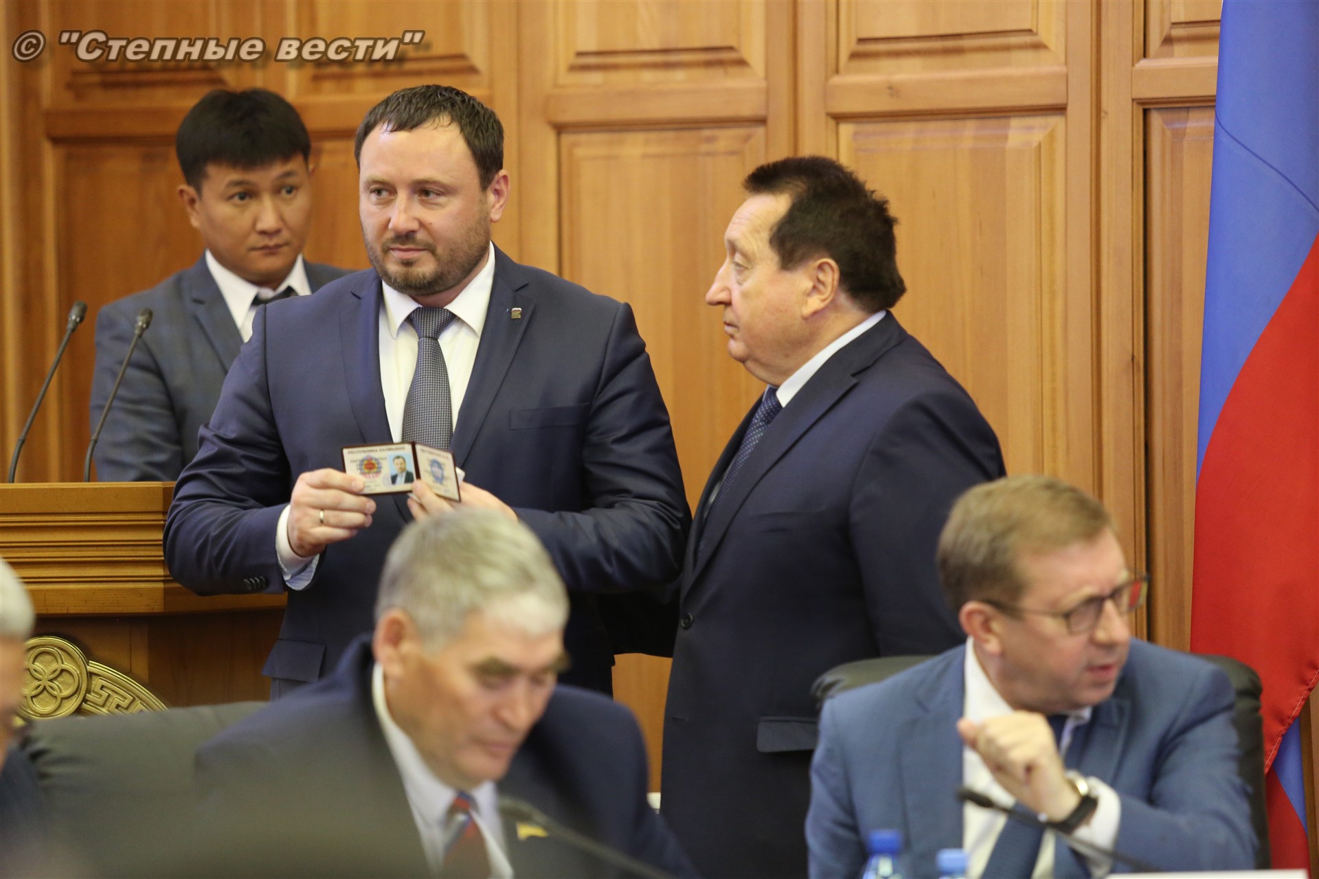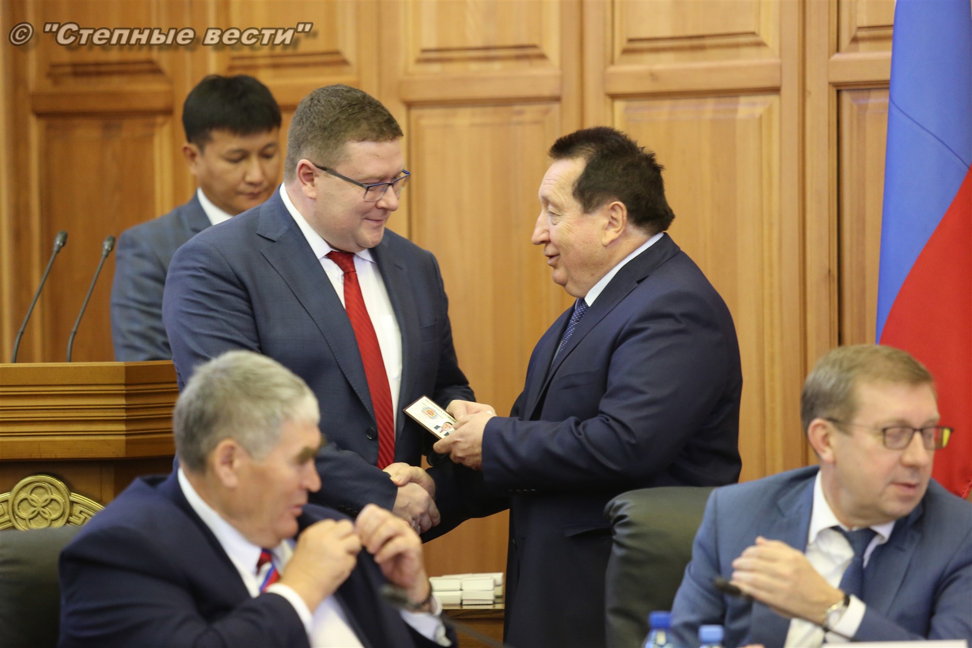 Анатолий Козачко, назначенный указом главы региона председательствующим на первом заседании Народного Хурала шестого созыва, объявивший о начале работы регионального парламента, вручил избранным депутатам мандаты и значки – атрибуты их полномочий.