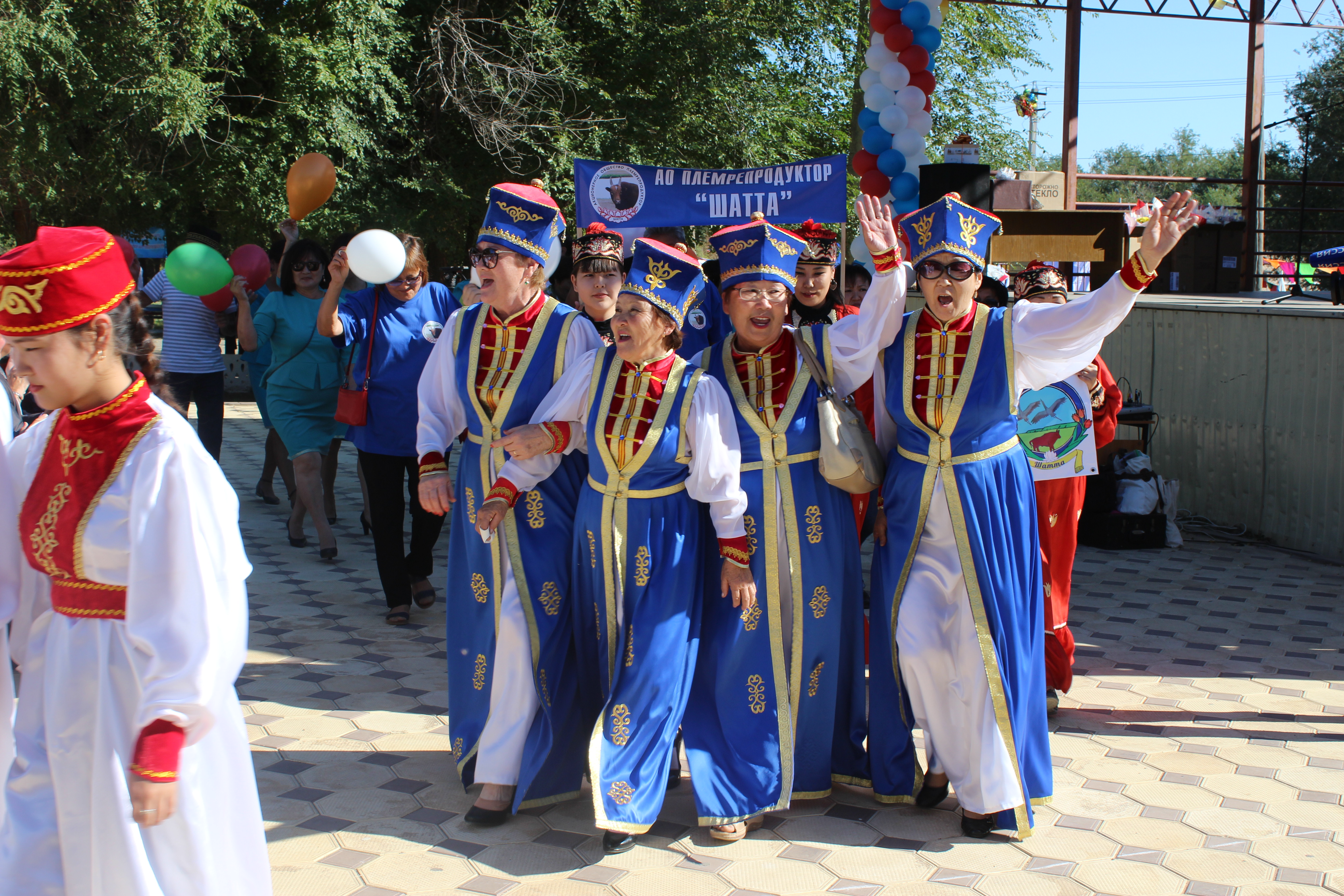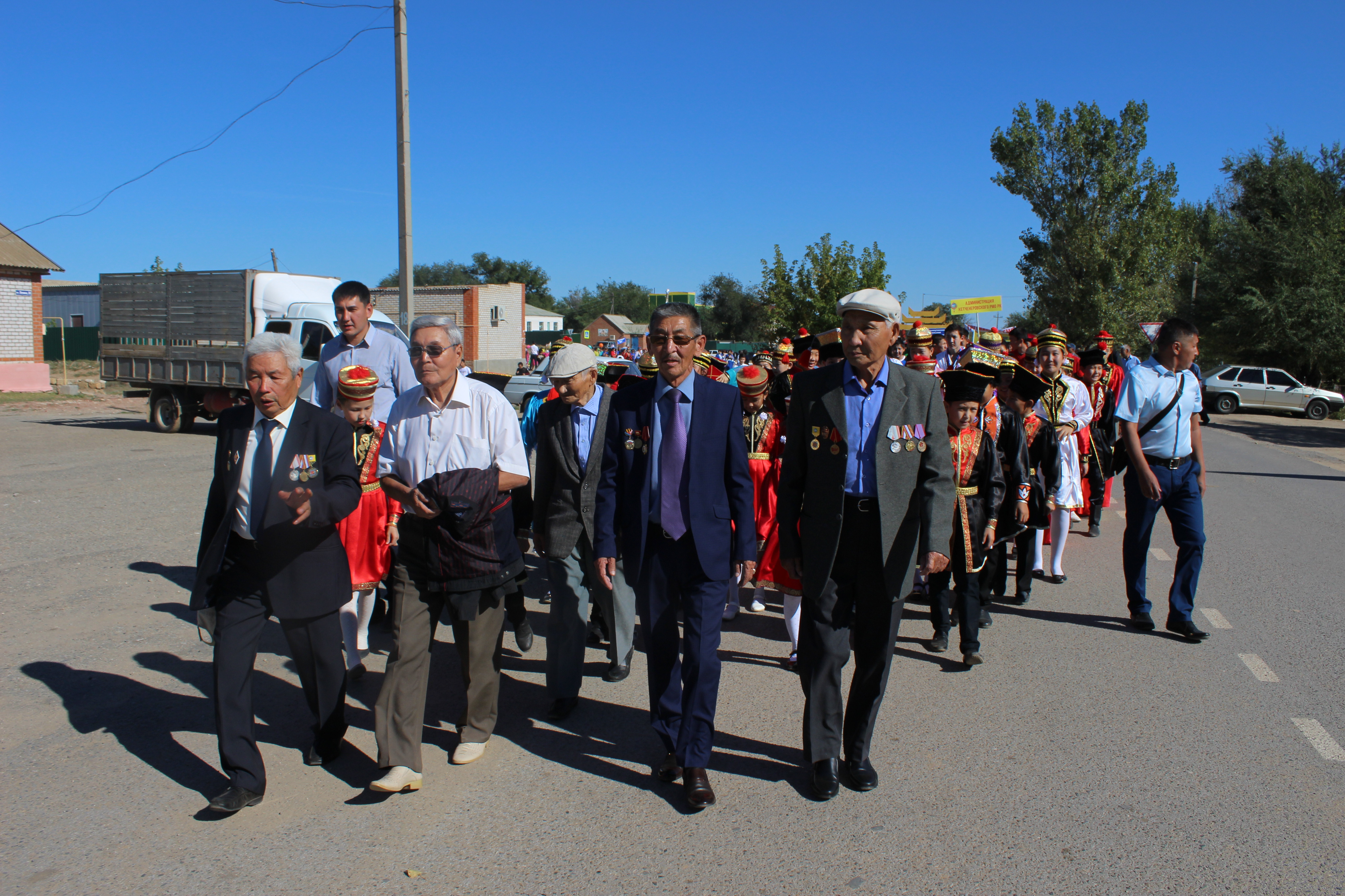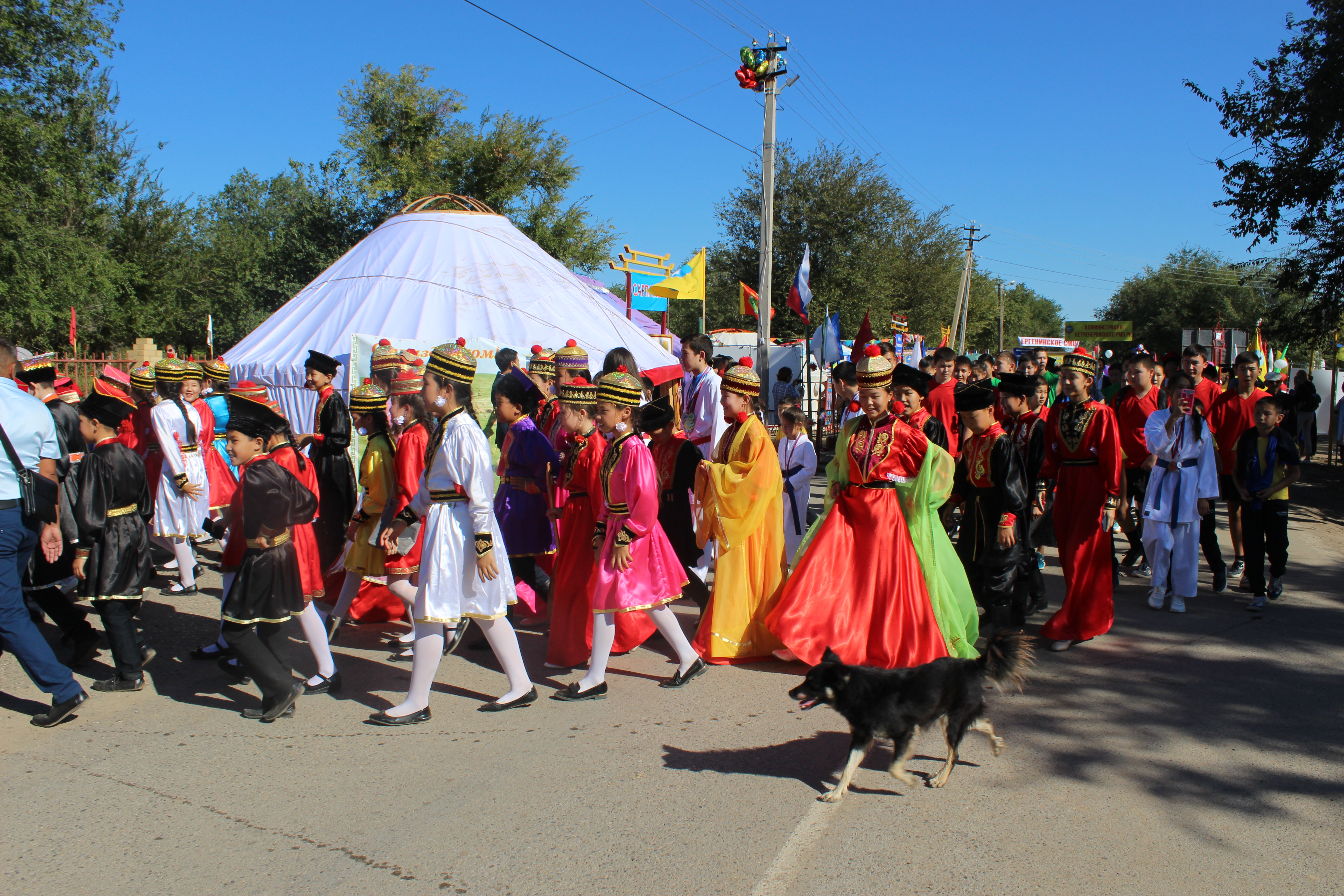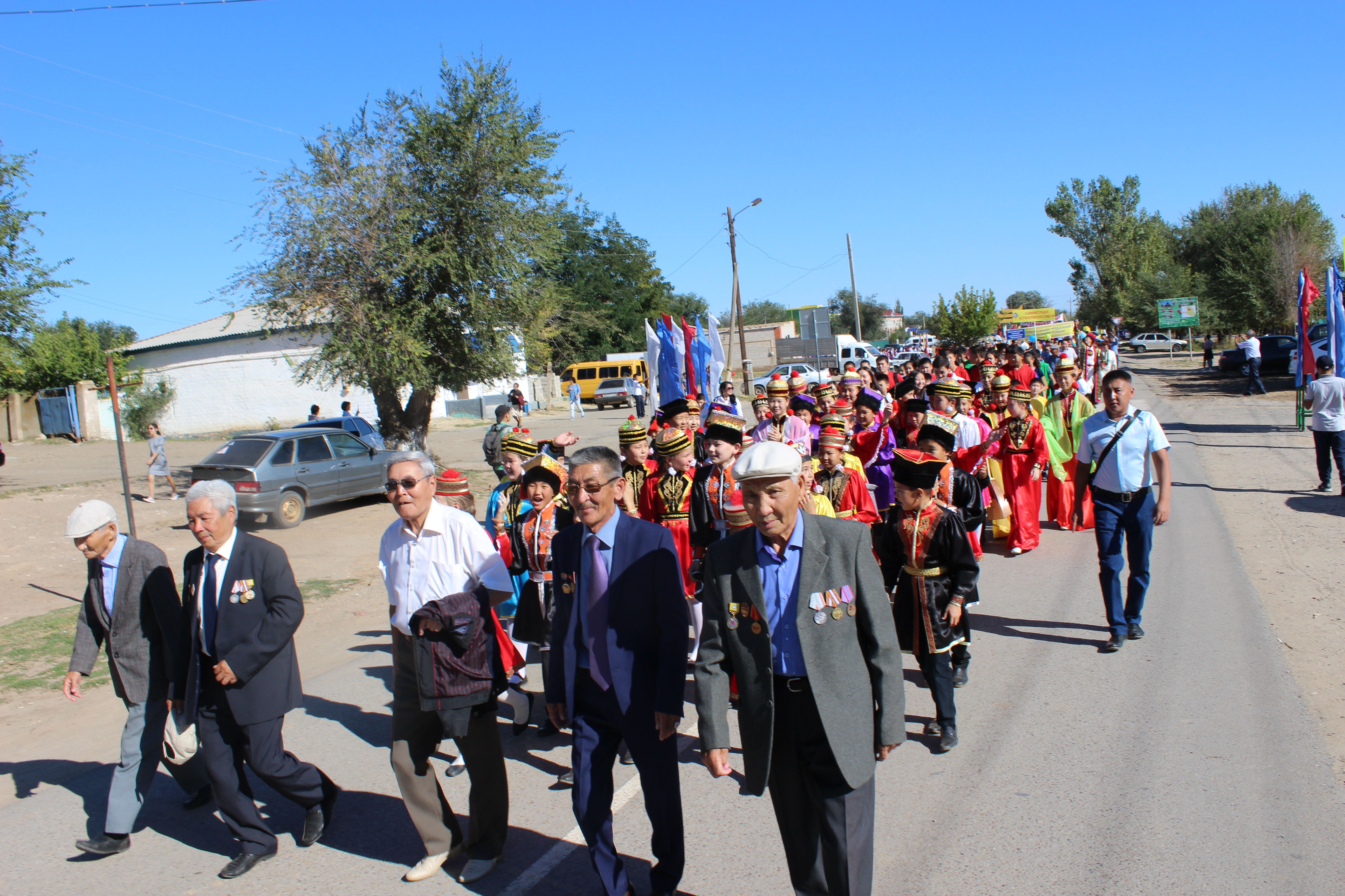 По окончании скачек, в 13.30, в центре Кетченер началась подготовка к праздничному шествию-смотру колонн поселений, организаций и учреждений района. Участники делегаций были одеты в пошитые специально к празднику национальные костюмы и нарядные платья в калмыцком стиле и шли с красочно оформленными транспарантами и праздничной атрибутикой. Все это смотрелось здорово!