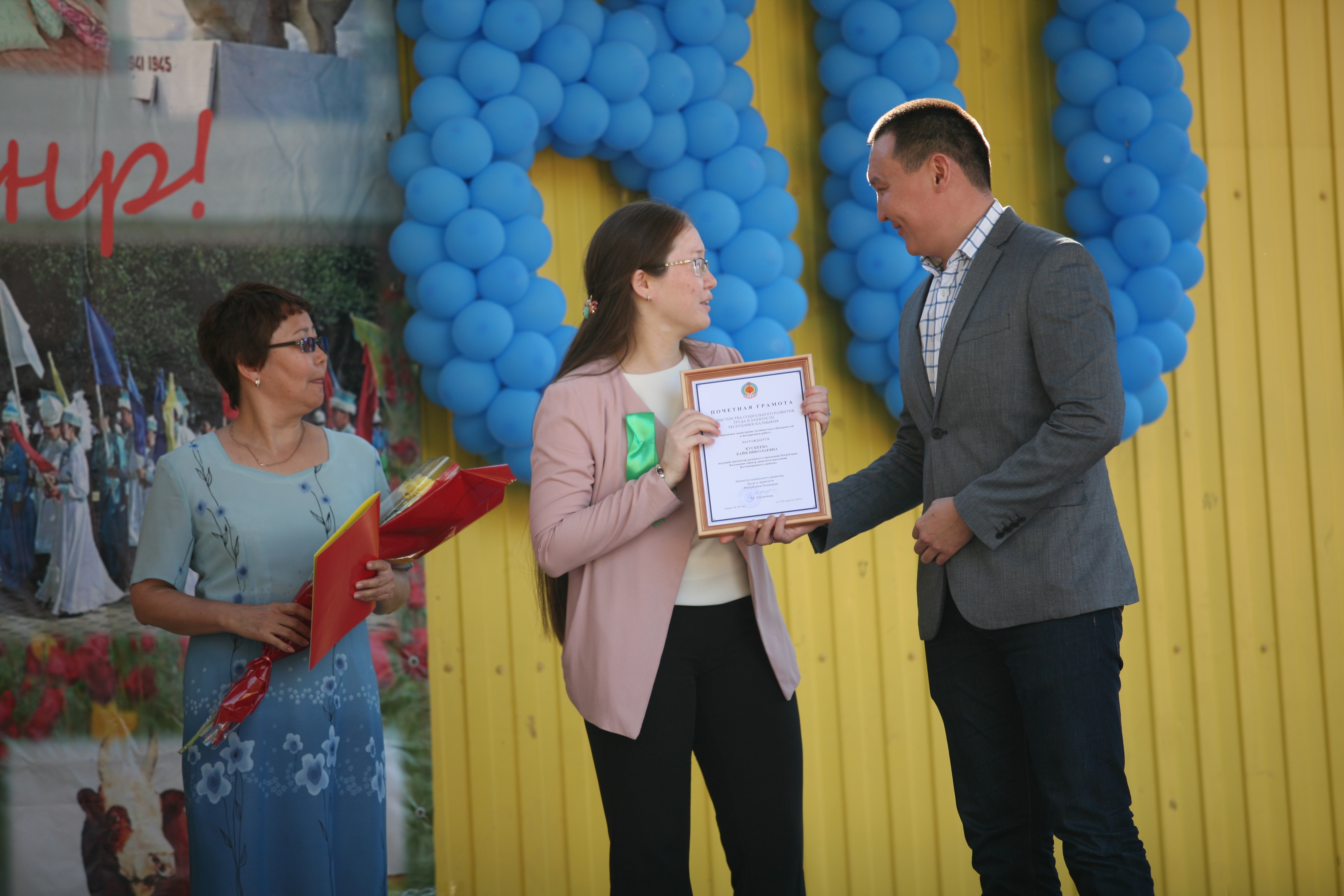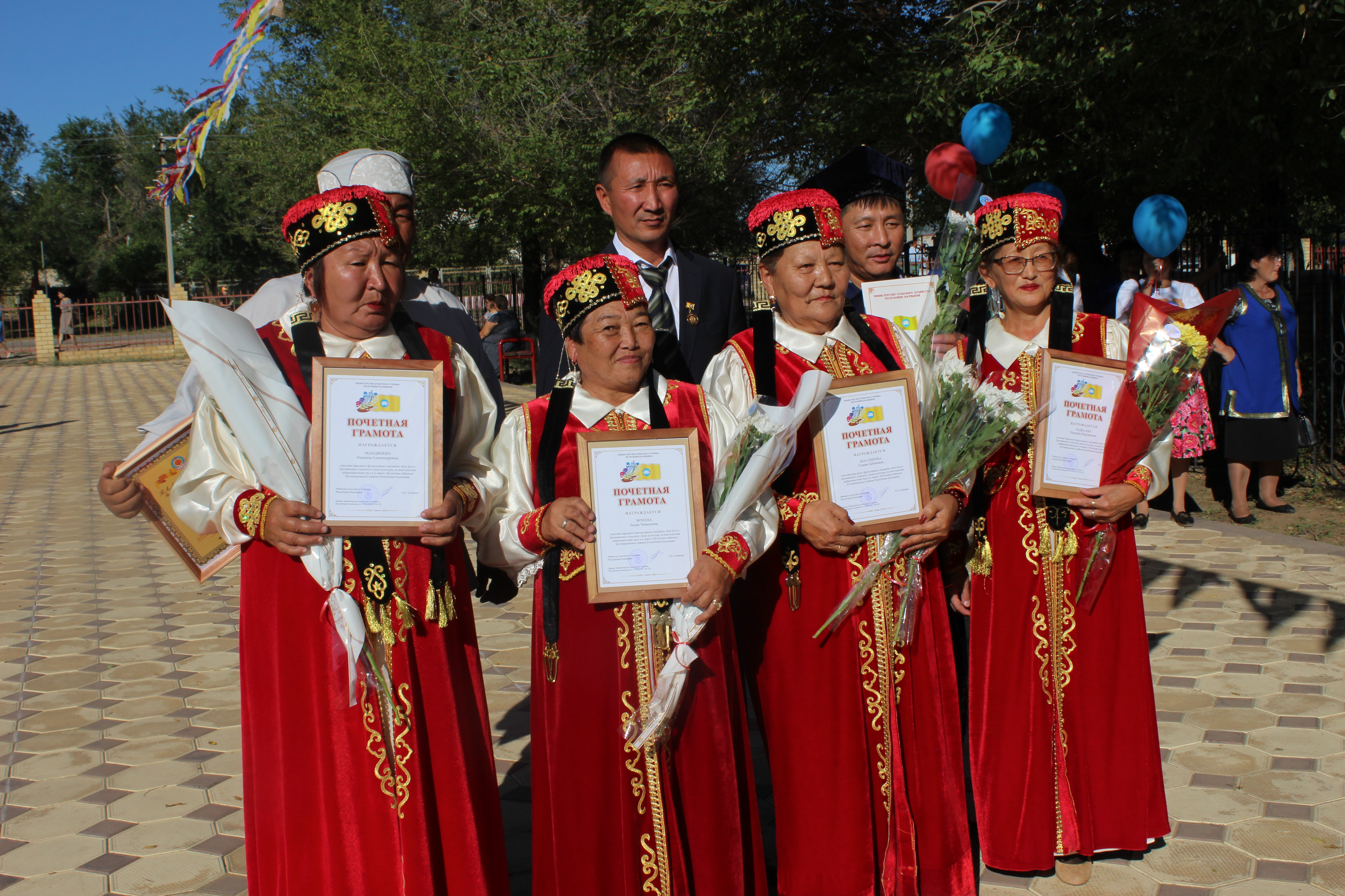 В частности, как рассказала жительница поселка Алцынхута Мария Лиджиева, заместитель директора по воспитательной работе Алцынхутинской средней общеобразовательной школы, на праздник в районный центр они прибыли почти всем коллективом, в составе 15 человек. Специально к этому дню педагоги сшили нарядные платья красивого и очень модного сейчас винного цвета с вышитым золотом национальным орнаментом. По словам Марии Ивановны, к юбилею района их школа, являющаяся опорной по национальной системе образования, пропагандирующая родной язык и литературу, подошла с хорошими показателями знаний учащихся по предметам региональной компетенции. Школа носит имя выдающегося калмыцкого художника Гарри Олеговича Рокчинского, 95-летний юбилей которого отмечается в этом году. К этой дате педагогический и ученический коллектив занялись обновлением небольшого школьного музея, созданного в честь знаменитого земляка.
