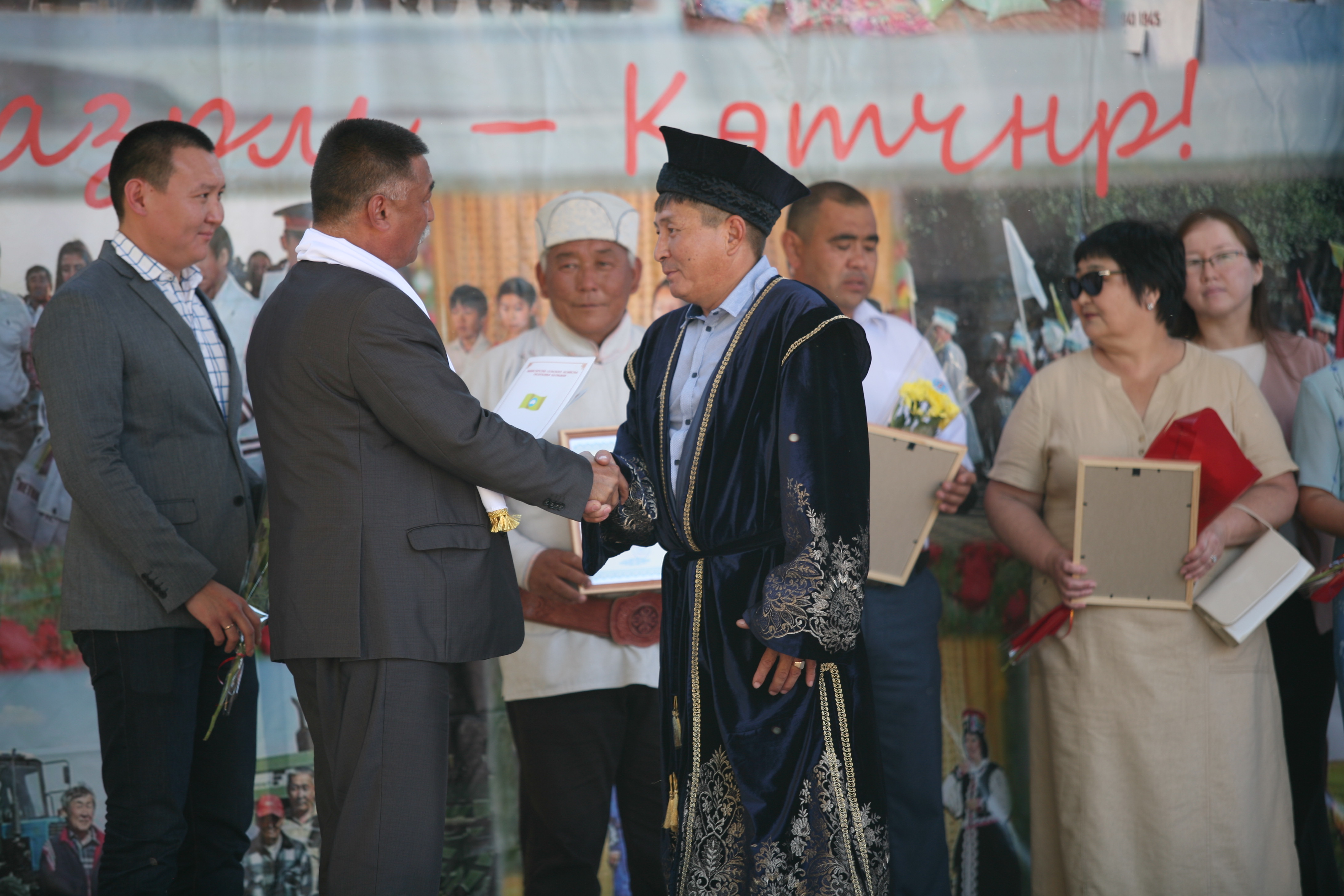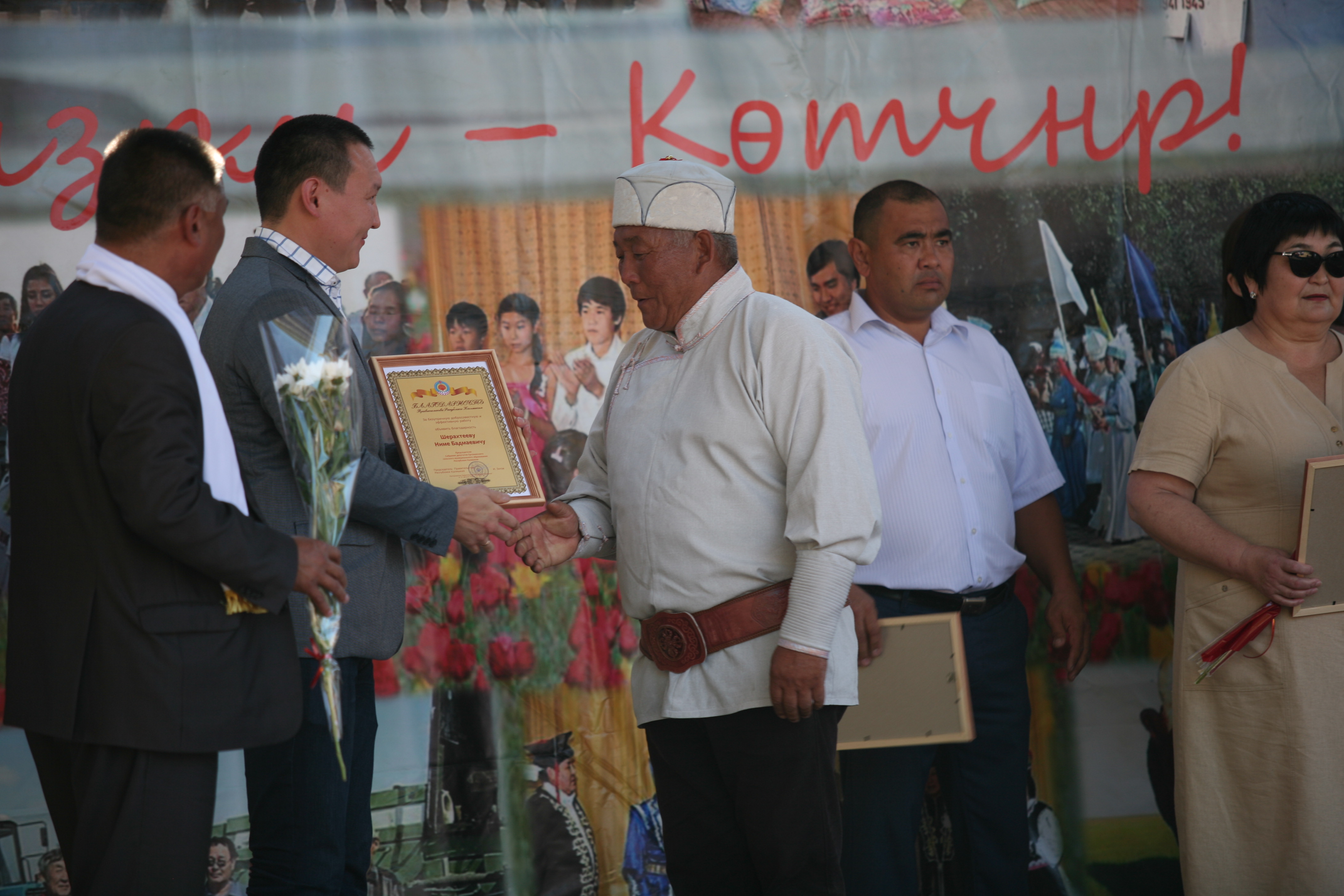 Далее в ходе торжественного собрания состоялось чествование ветеранов и тружеников района, после чего почетные гости приняли участие в «празднике в хотоне» с осмотром кибиток хозяйств. В экспозициях, с любовью оформленных сельскими администрациями и местными жителями, гостей встречали традиционными национальными угощениями, калмыцкими песнями, домбровыми наигрышами и танцами.