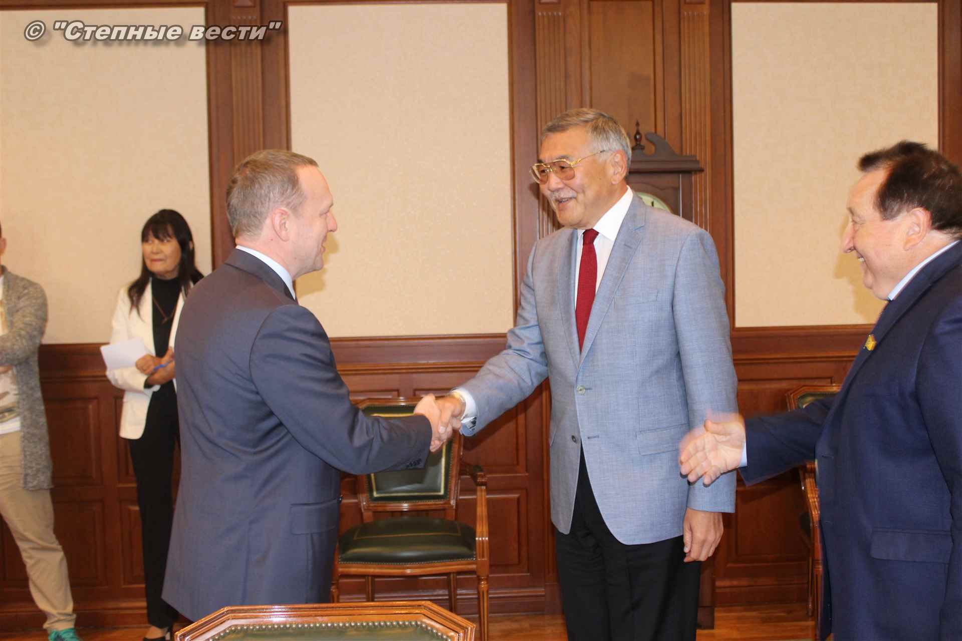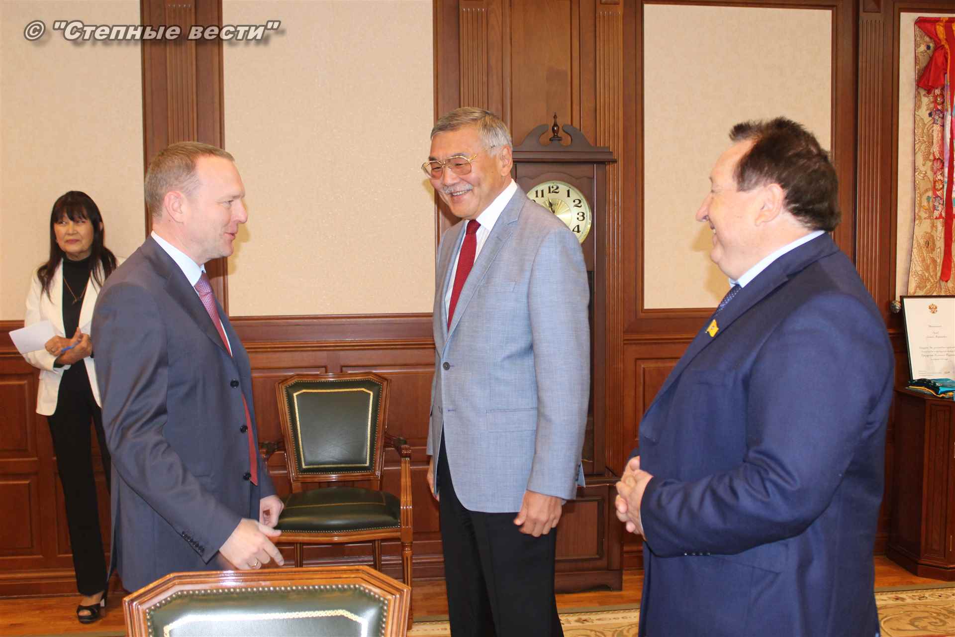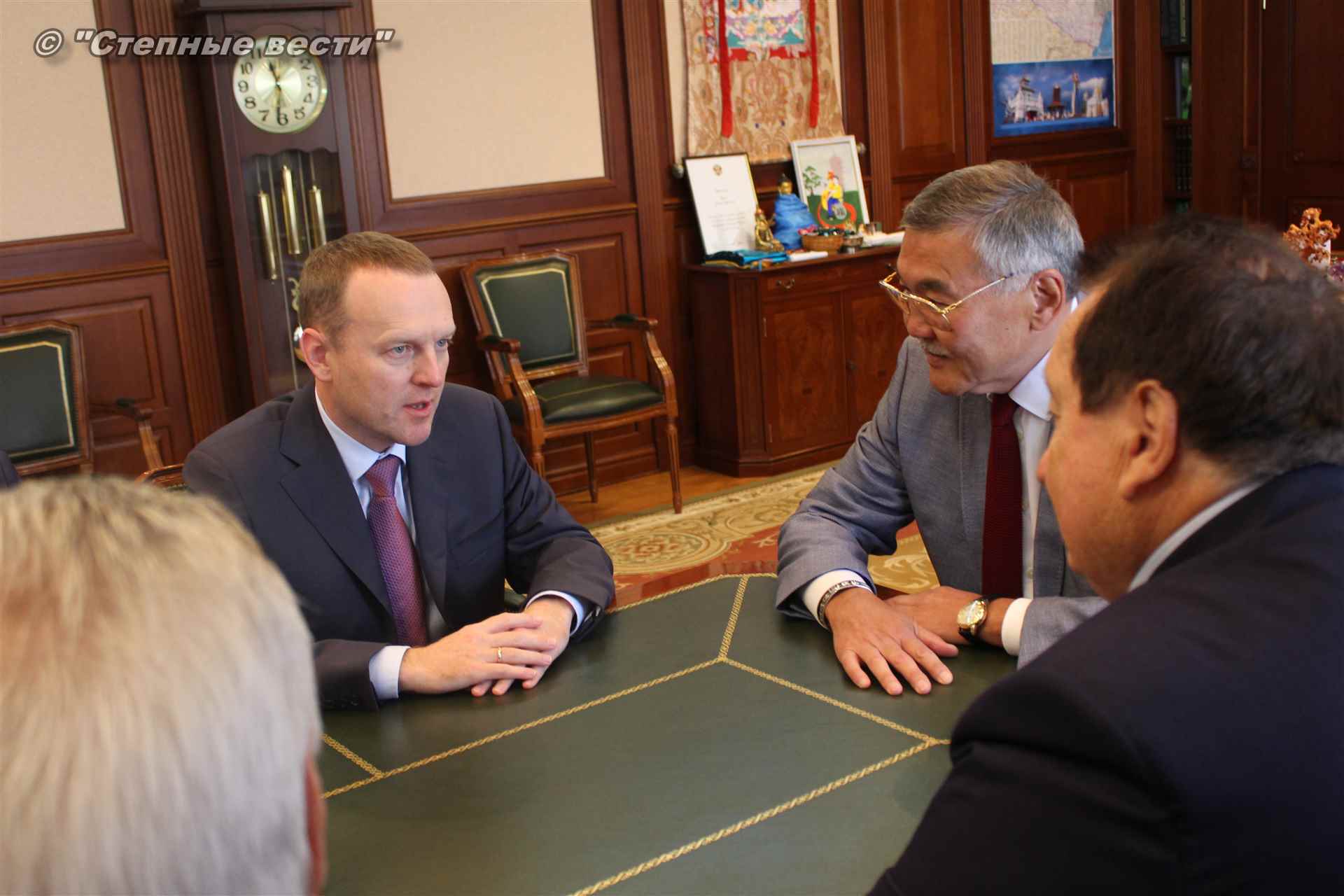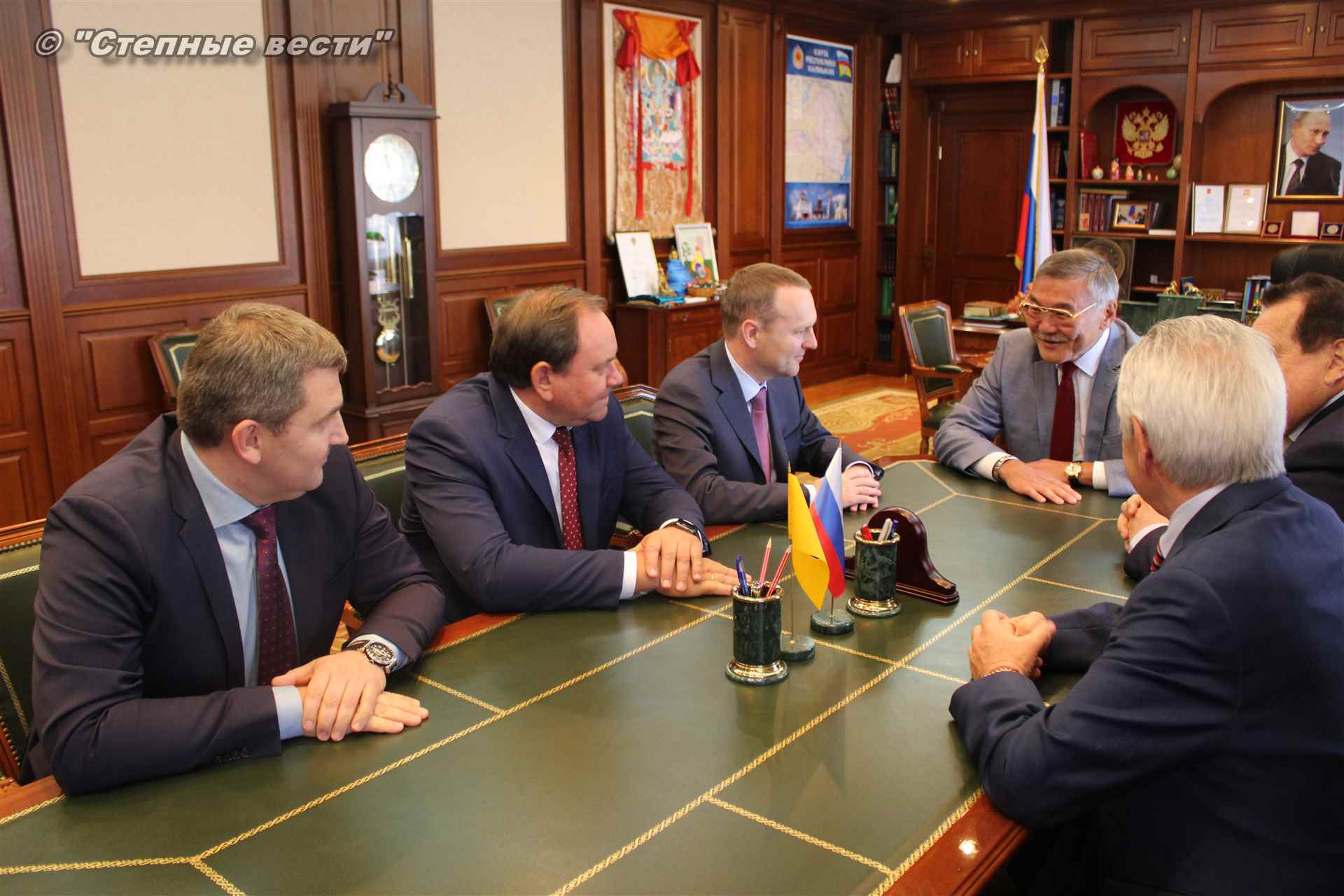 В Доме Правительства РК состоялась встреча Главы Калмыкии Алексея Орлова с депутатом Государственной Думы РФ, руководителем Межрегионального координационного совета «Единой России» по Южному федеральному округу Константином Бахаревым, в которой также приняли участие депутаты Государственной Думы РФ Анна Кувычко, Виктор Дерябкин, Дмитрий Ламейкин, Александр Клыканов, Председатель Народного Хурала (Парламента) Республики Калмыкия, секретарь Регионального отделения партии «Единая Россия» Анатолий Козачко,