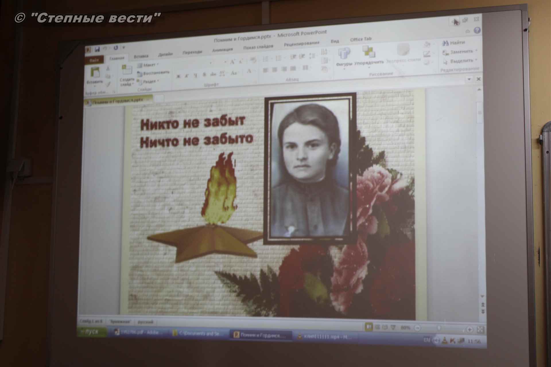 В элистинской СОШ № 2 — одной из старейших в республике, с богатой и славной историей, такой выдающейся личностью является Герой Великой Отечественной войны Раиса Веткалова, которая была выпускницей школы, из поколения в поколение бережно хранят память о ней и ее бессмертном подвиге. Потому, конечно, неслучайно, что в Калмыкии именно эта школа выступила пионером реализации данного общественно значимого образовательного проекта, целью которого как раз и является создание условий для формирования у детей и подростков уважительного чувства к истории, героическому прошлому и настоящему нашей страны.