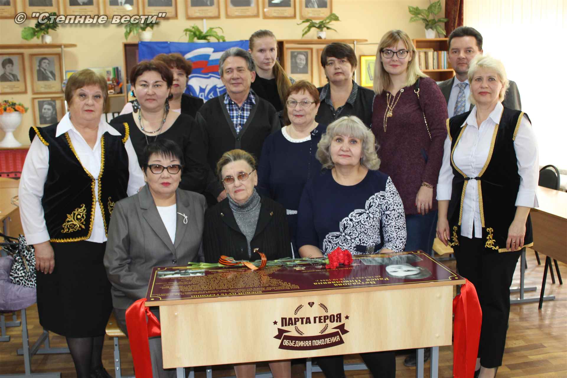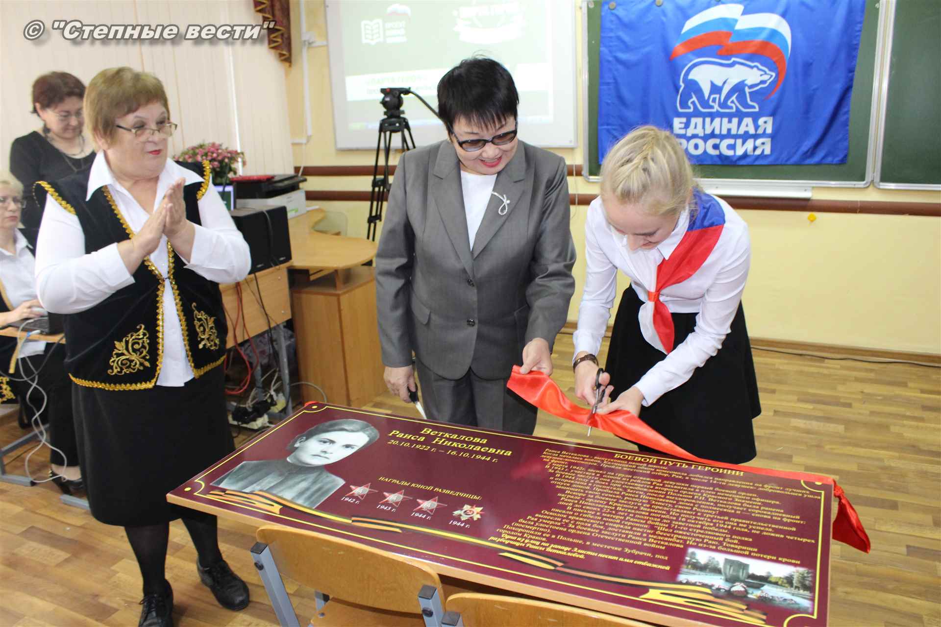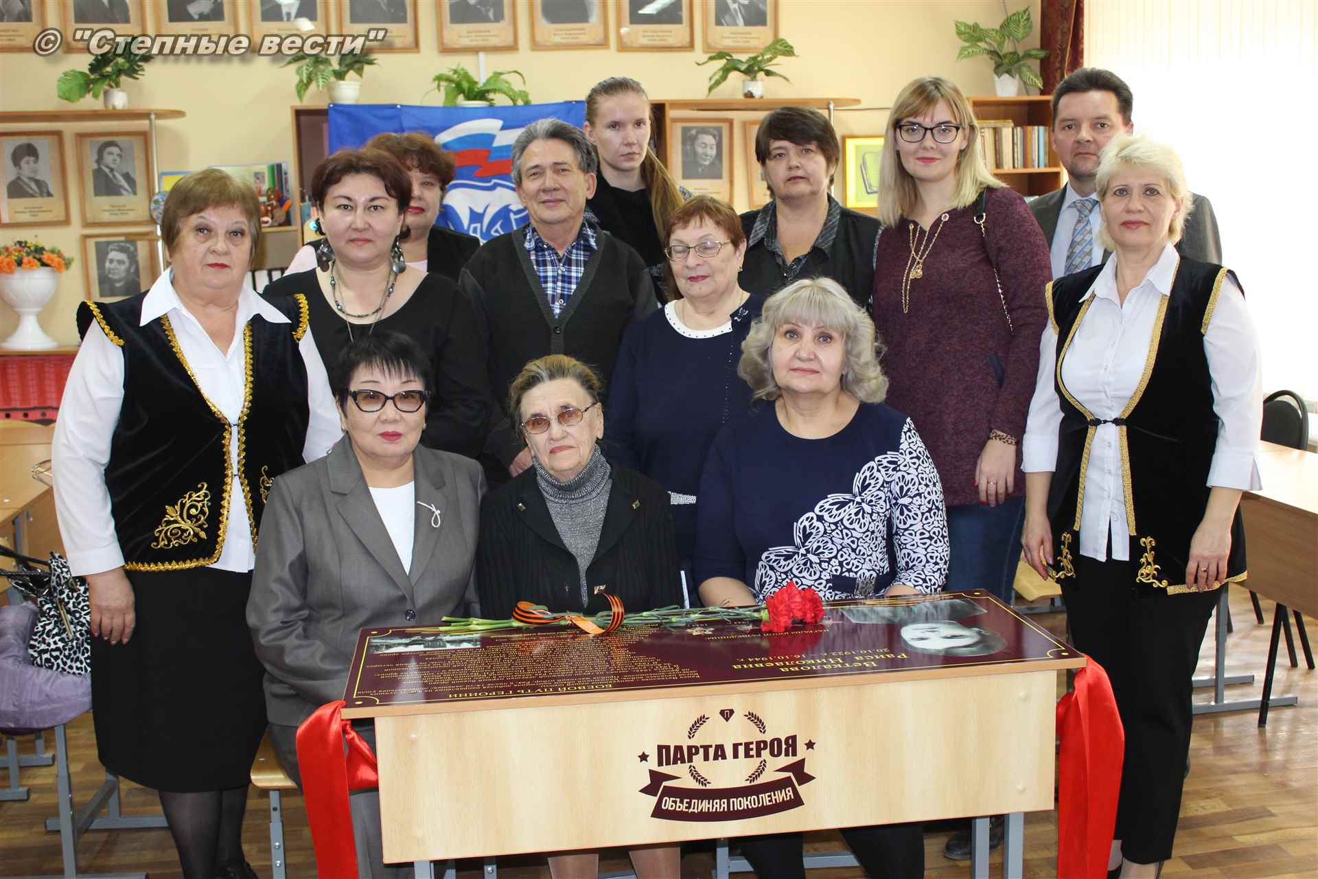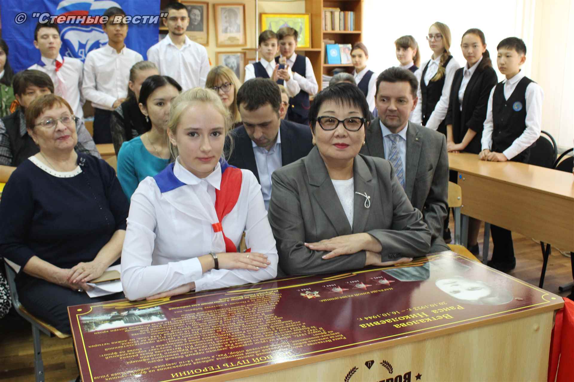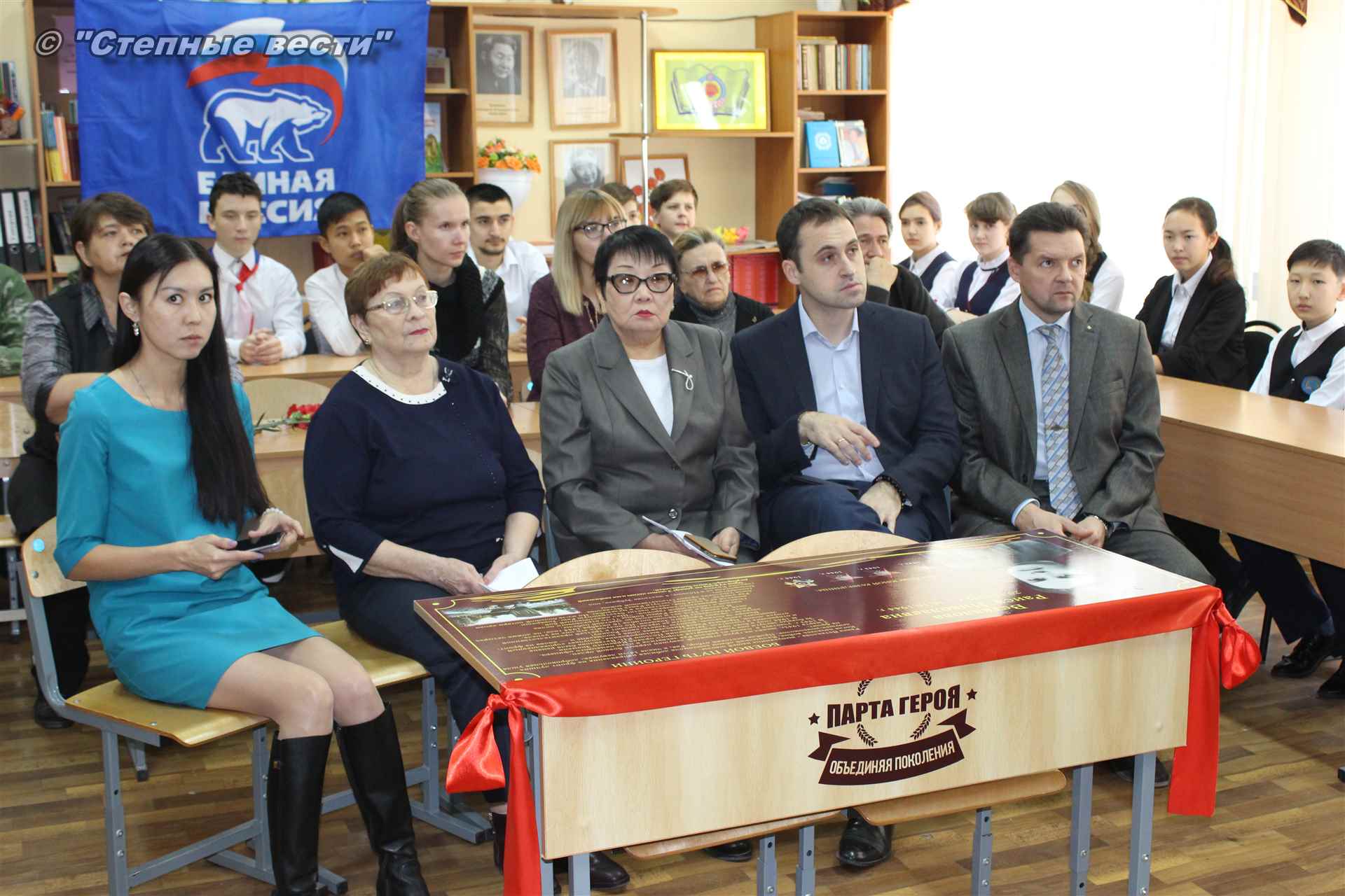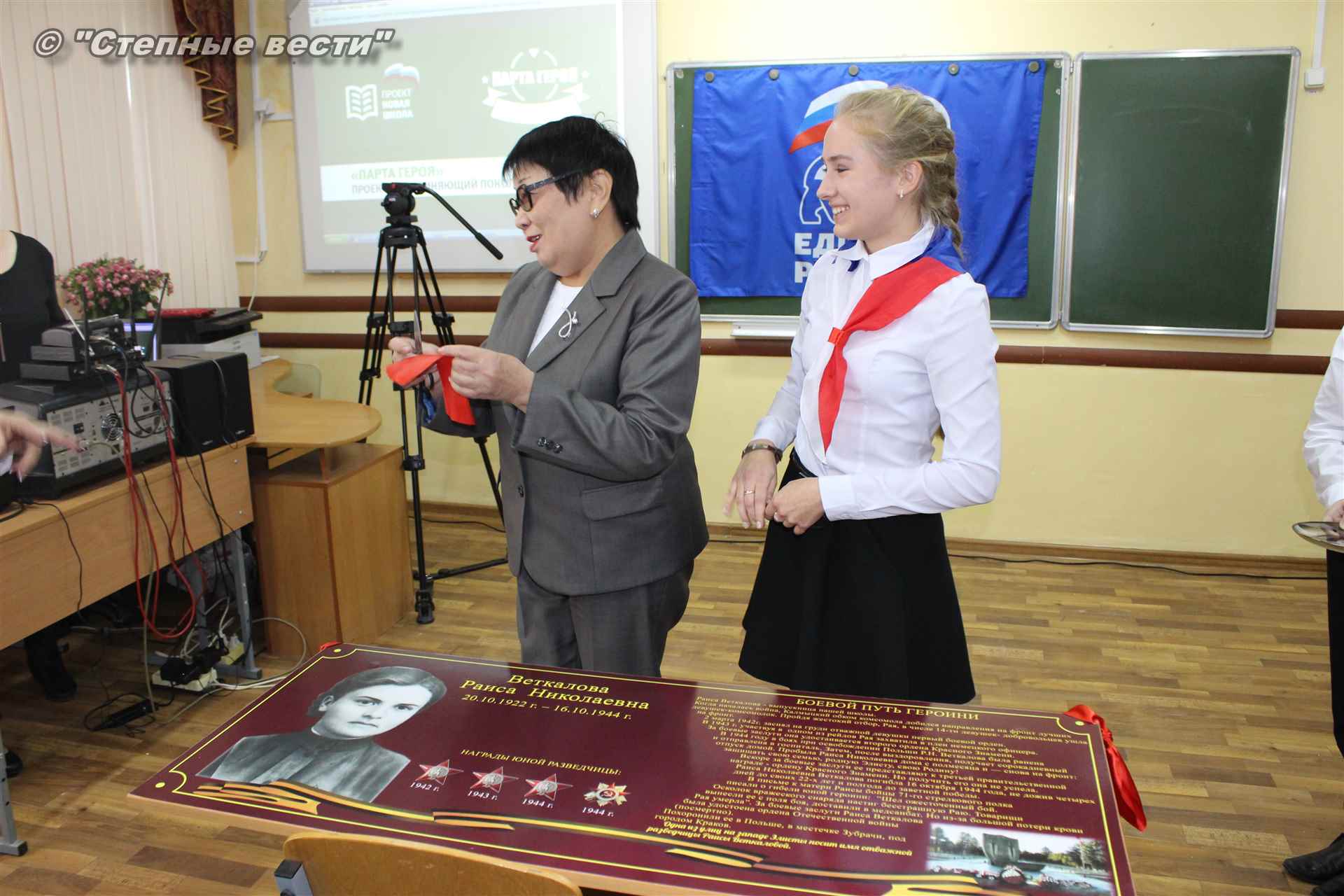 1В рамках партийного проекта «Единой России» «Новая школа» сегодня в элистинской средней школе № 2 состоялось торжественное открытие «Парты Героя», изготовленной в честь Героя Великой Отечественной войны Раисы Веткаловой, родившейся в Элисте, учившейся и работавшей до войны в этой школе.