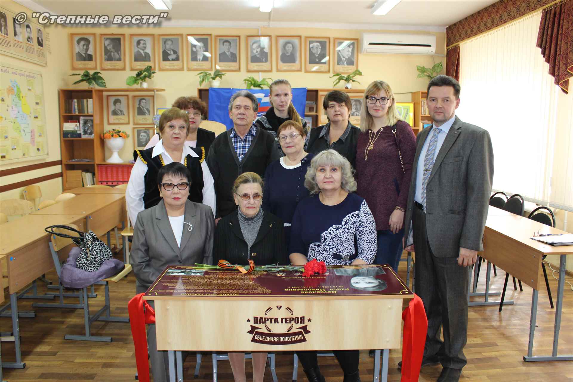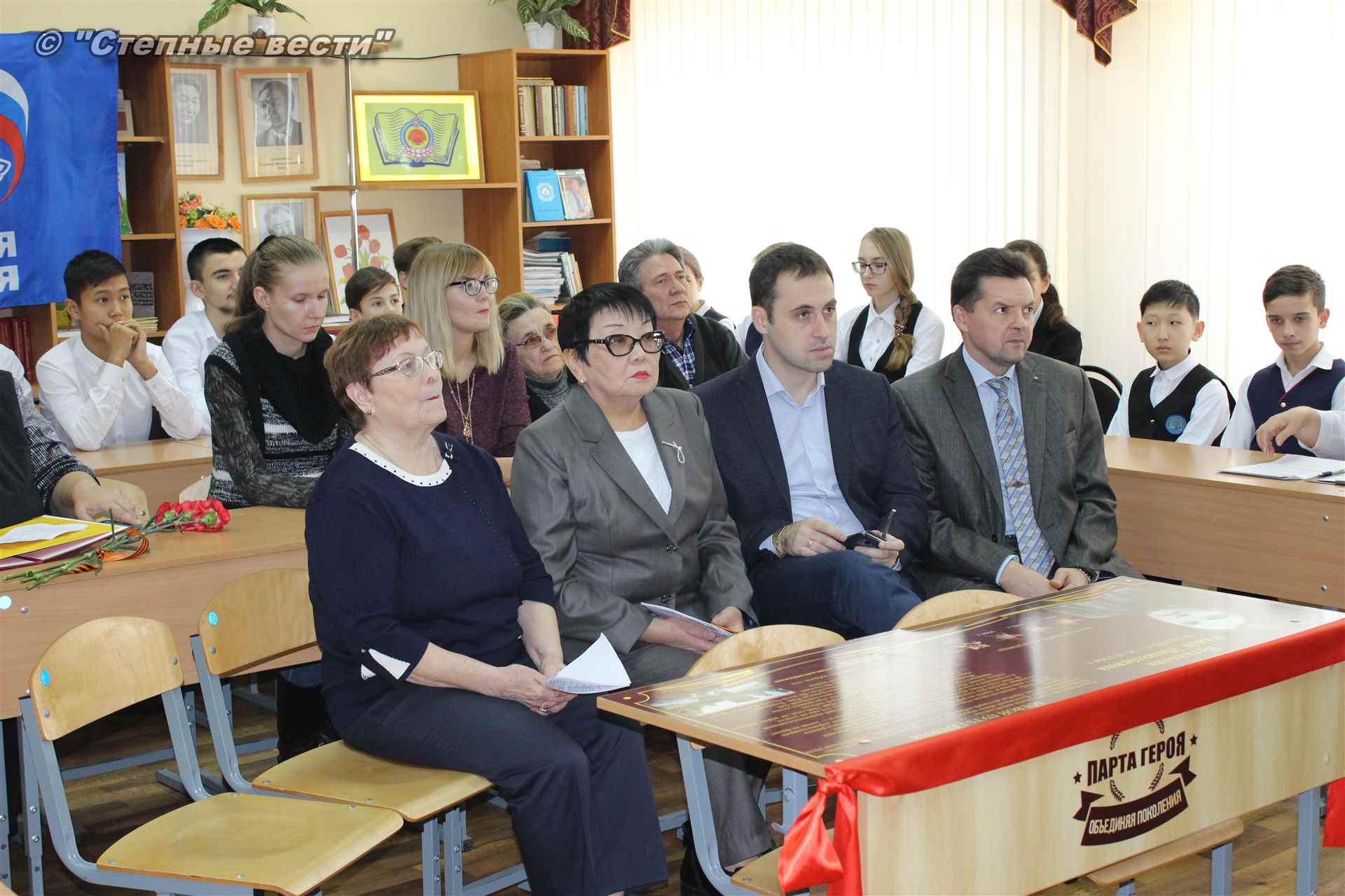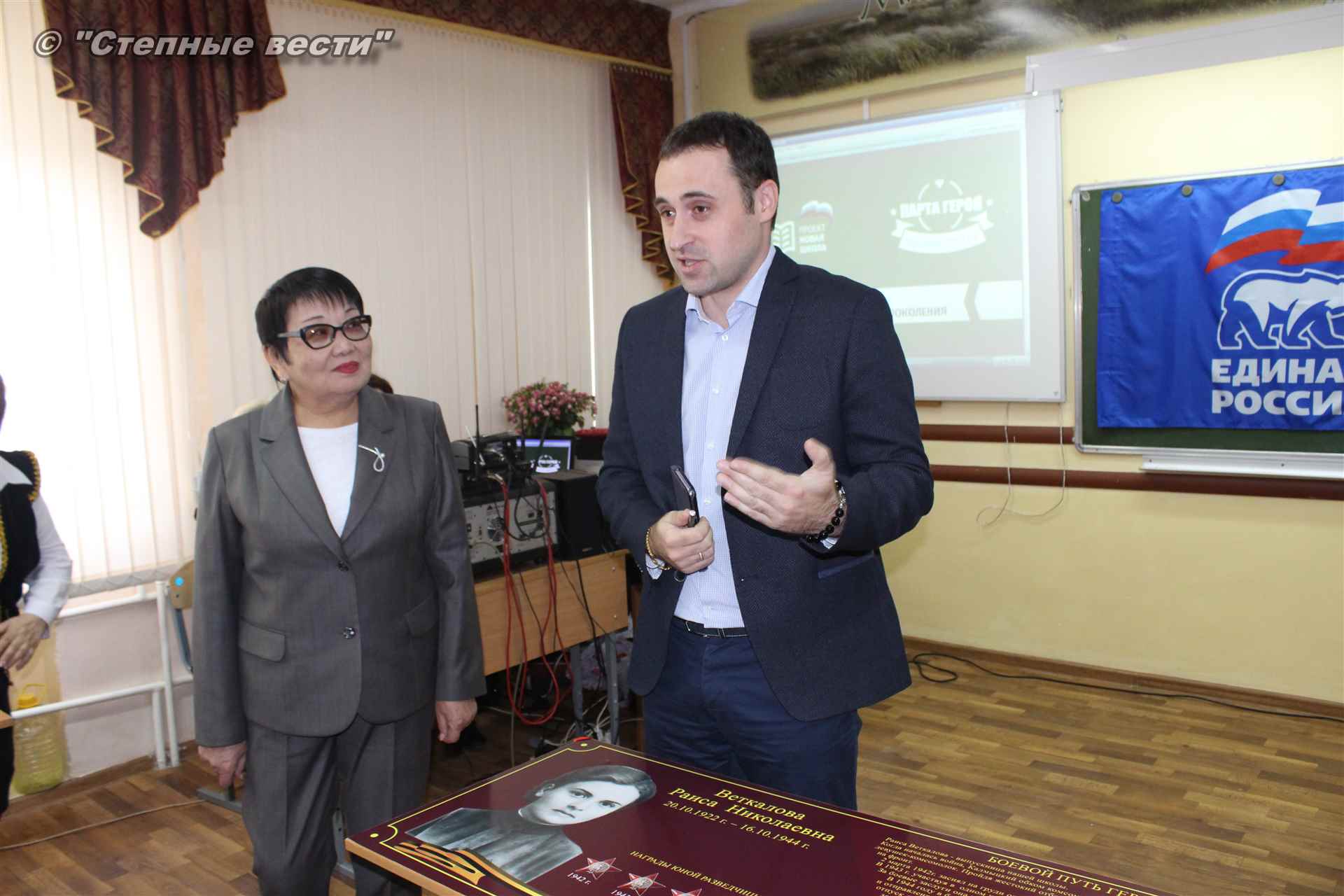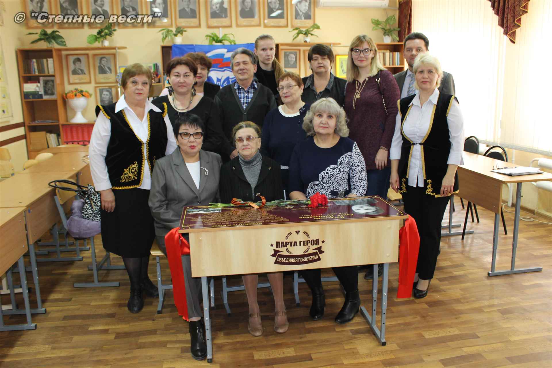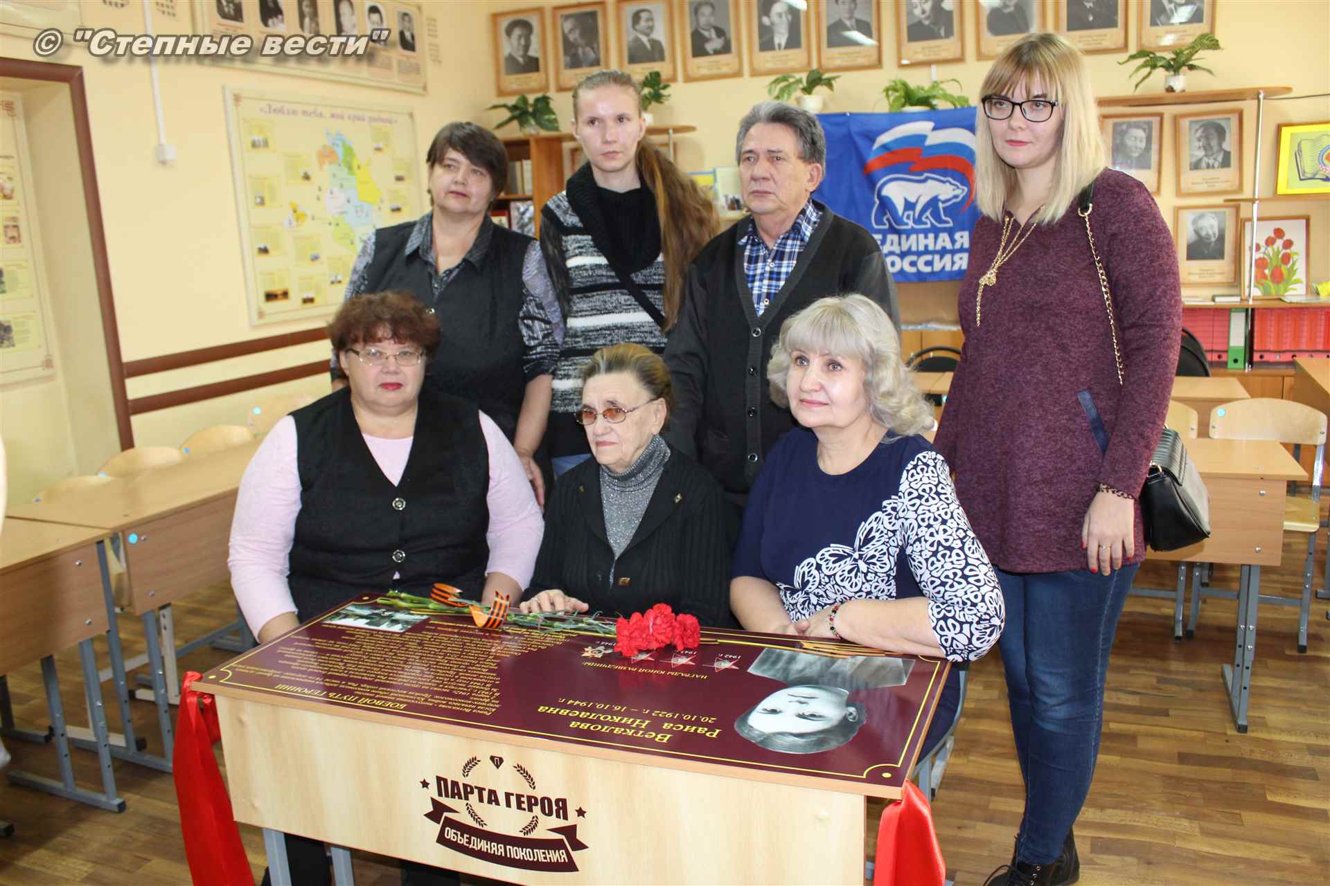 1В рамках партийного проекта «Единой России» «Новая школа» сегодня в элистинской средней школе № 2 состоялось торжественное открытие «Парты Героя», изготовленной в честь Героя Великой Отечественной войны Раисы Веткаловой, родившейся в Элисте, учившейся и работавшей до войны в этой школе.