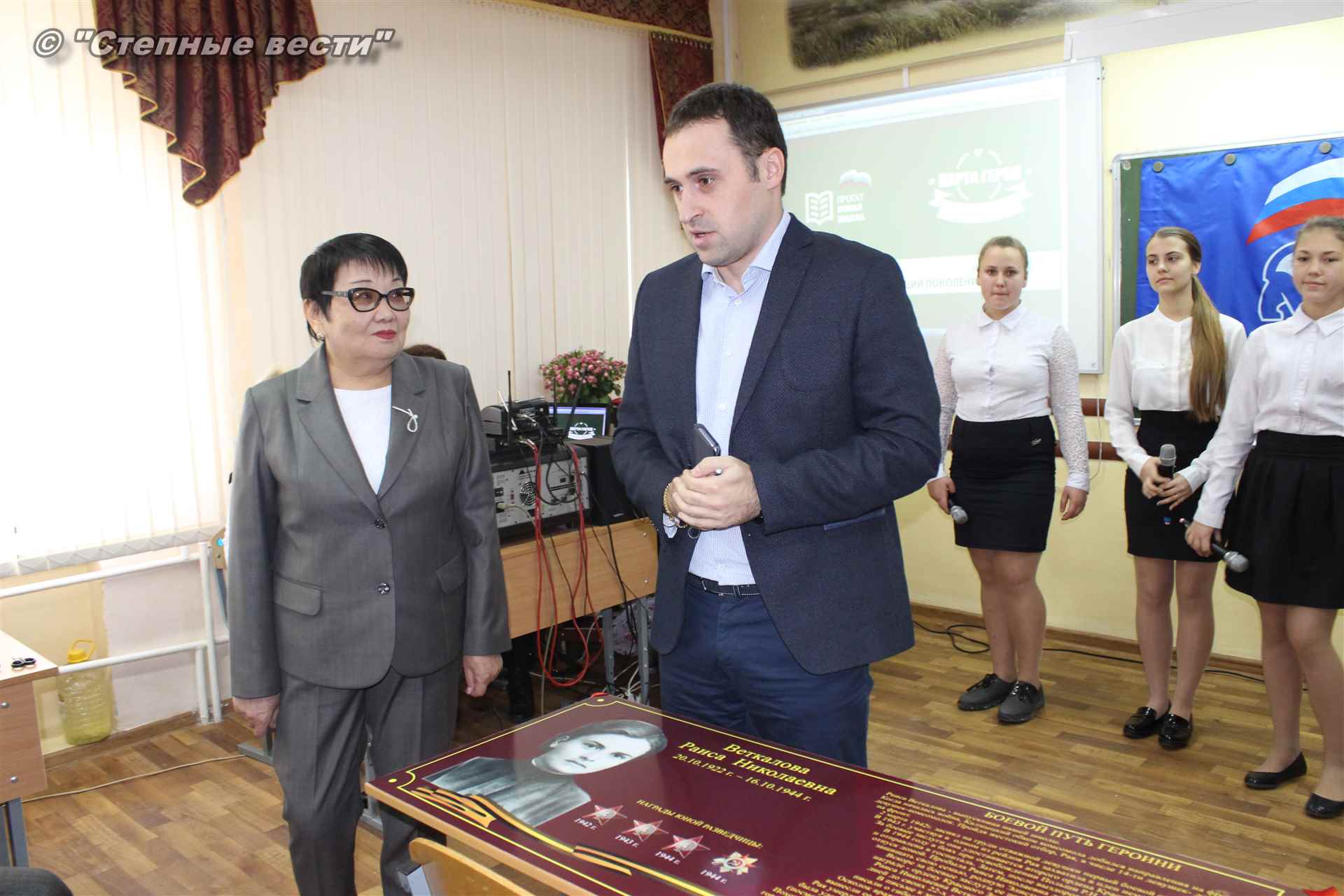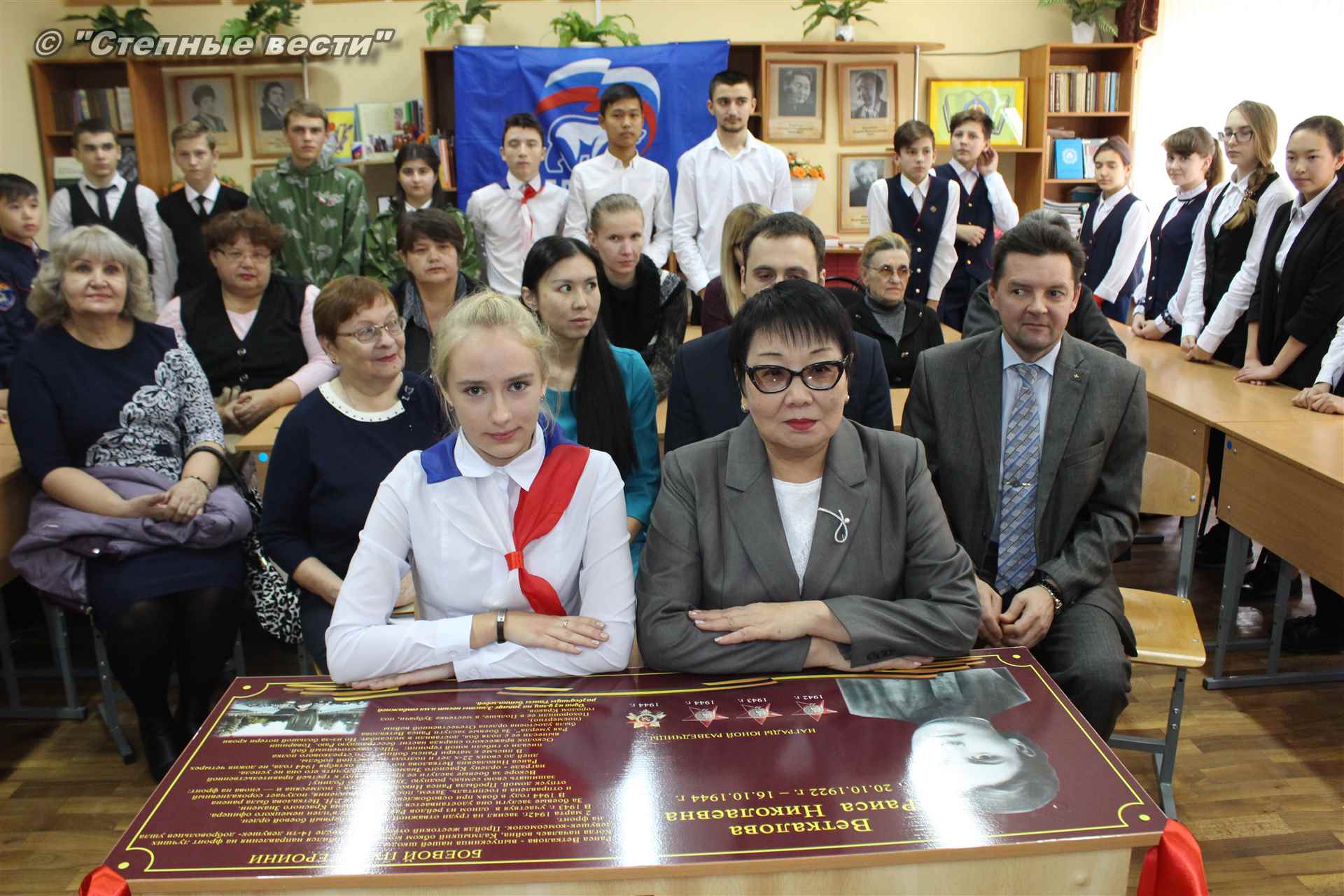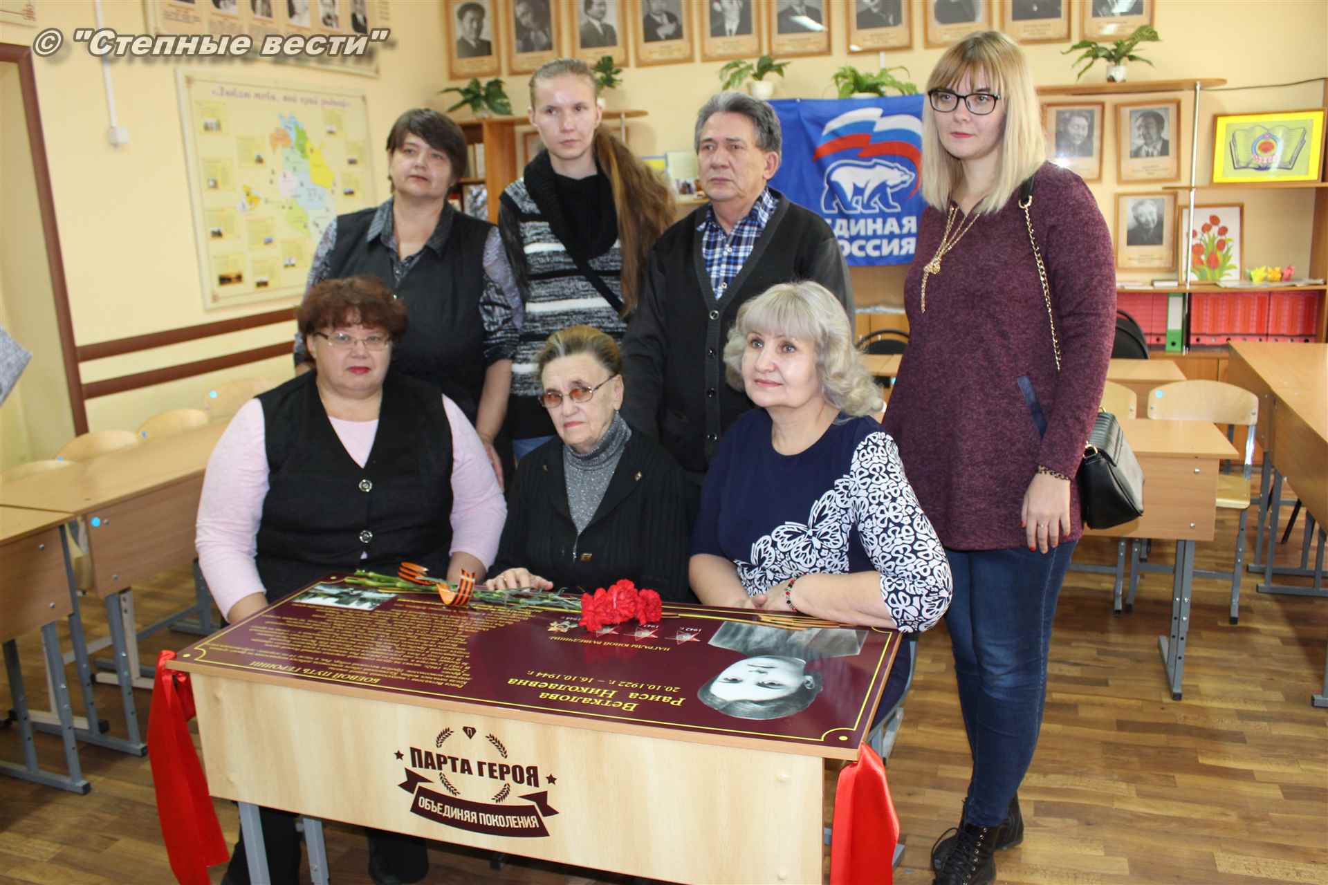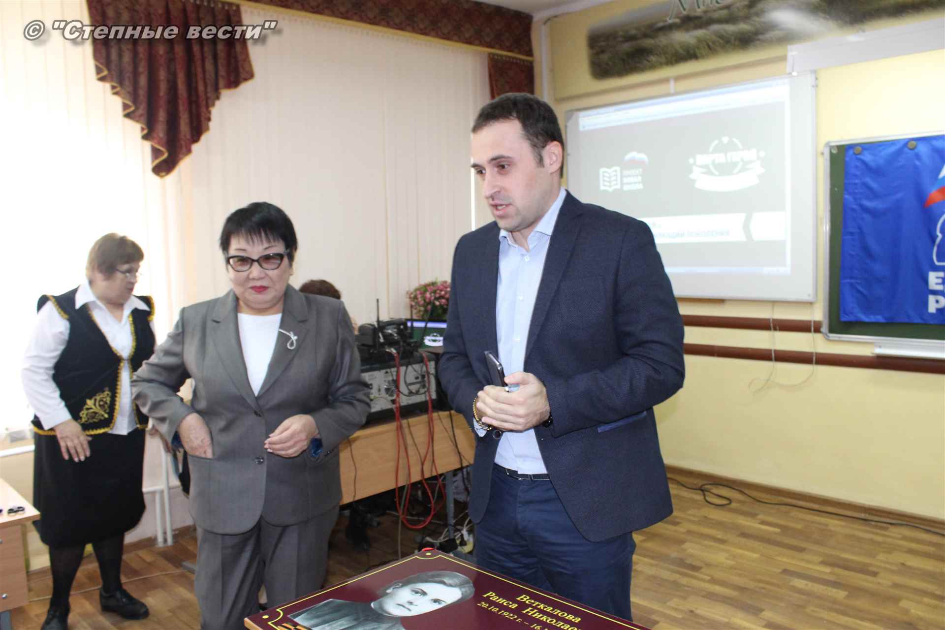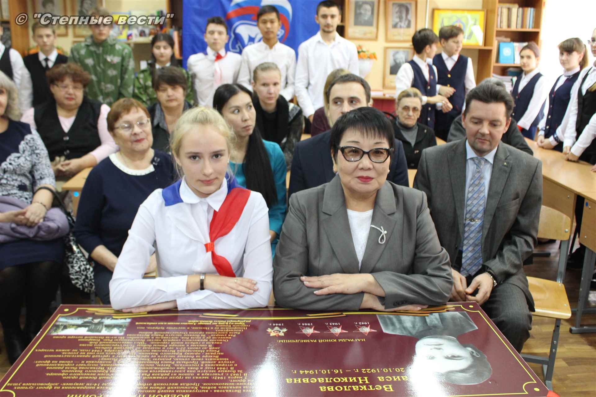 1В рамках партийного проекта «Единой России» «Новая школа» сегодня в элистинской средней школе № 2 состоялось торжественное открытие «Парты Героя», изготовленной в честь Героя Великой Отечественной войны Раисы Веткаловой, родившейся в Элисте, учившейся и работавшей до войны в этой школе.
