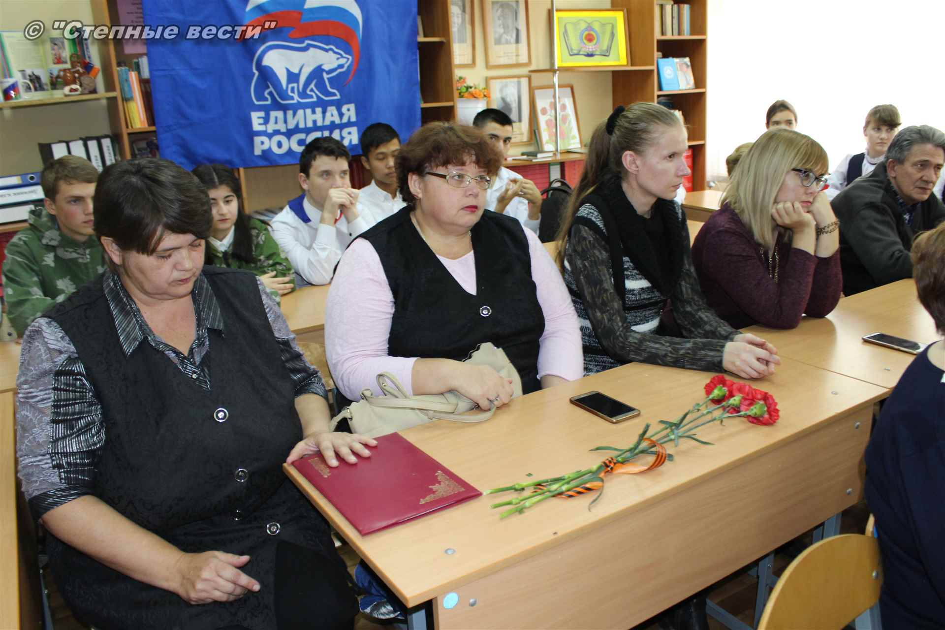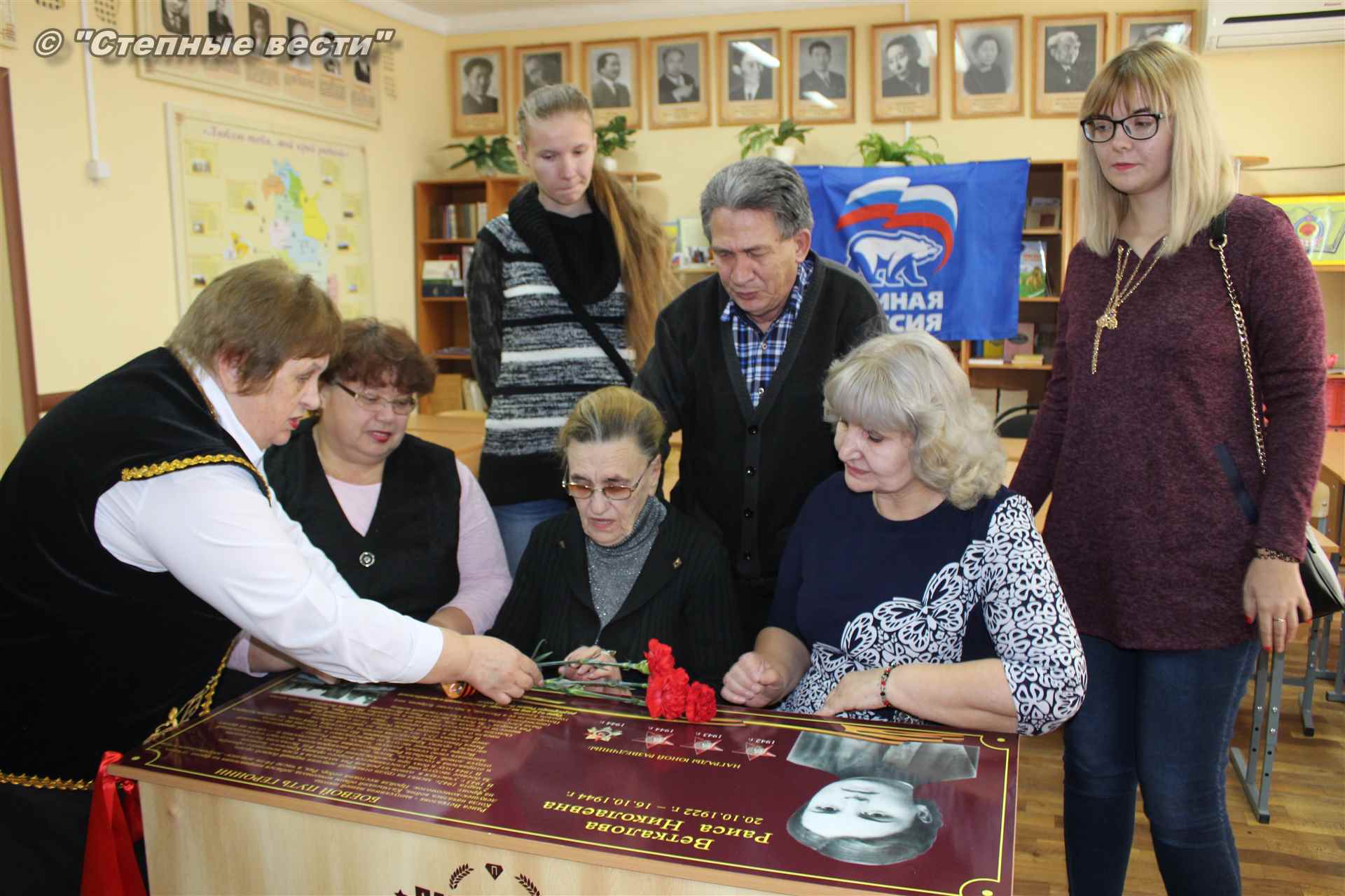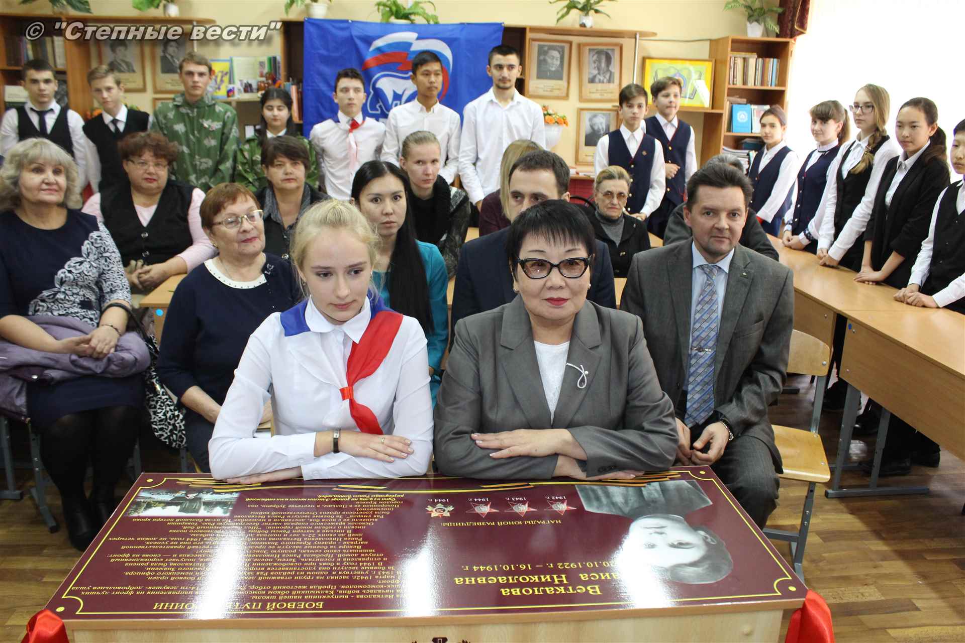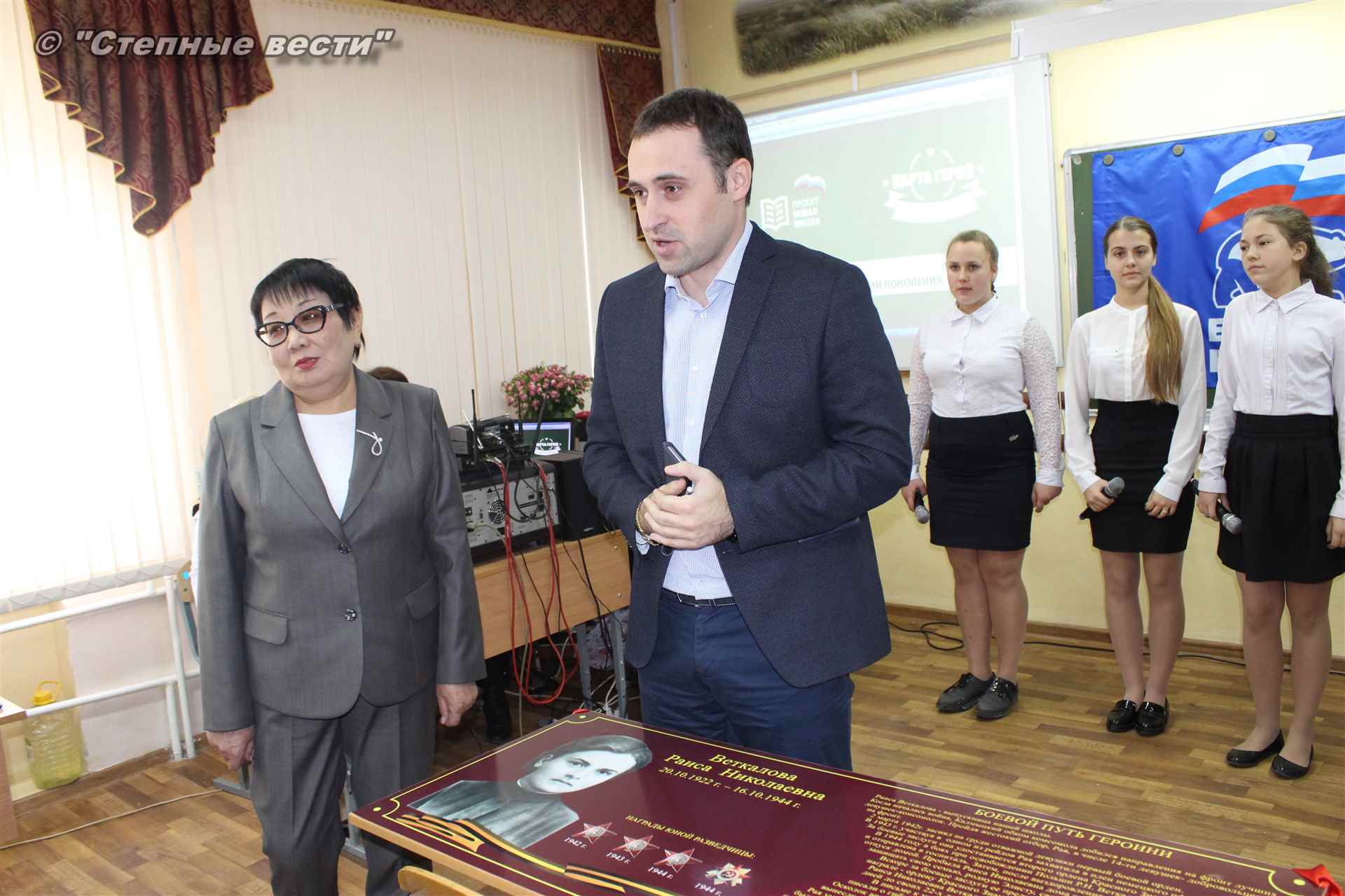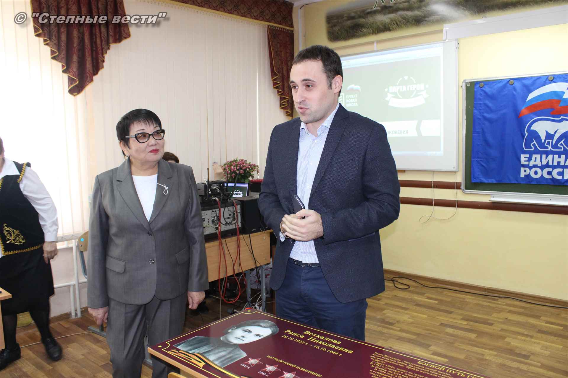 1В рамках партийного проекта «Единой России» «Новая школа» сегодня в элистинской средней школе № 2 состоялось торжественное открытие «Парты Героя», изготовленной в честь Героя Великой Отечественной войны Раисы Веткаловой, родившейся в Элисте, учившейся и работавшей до войны в этой школе.