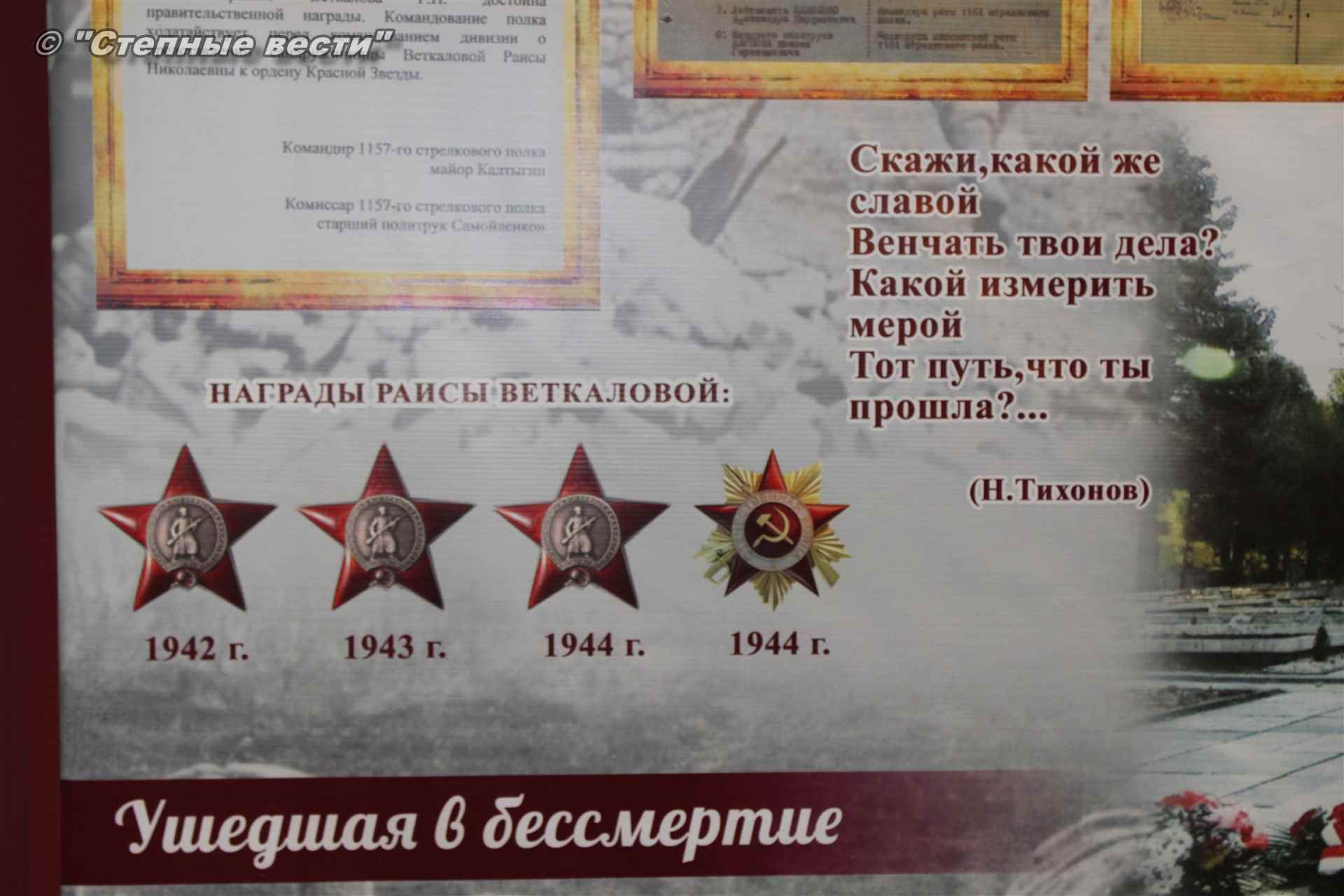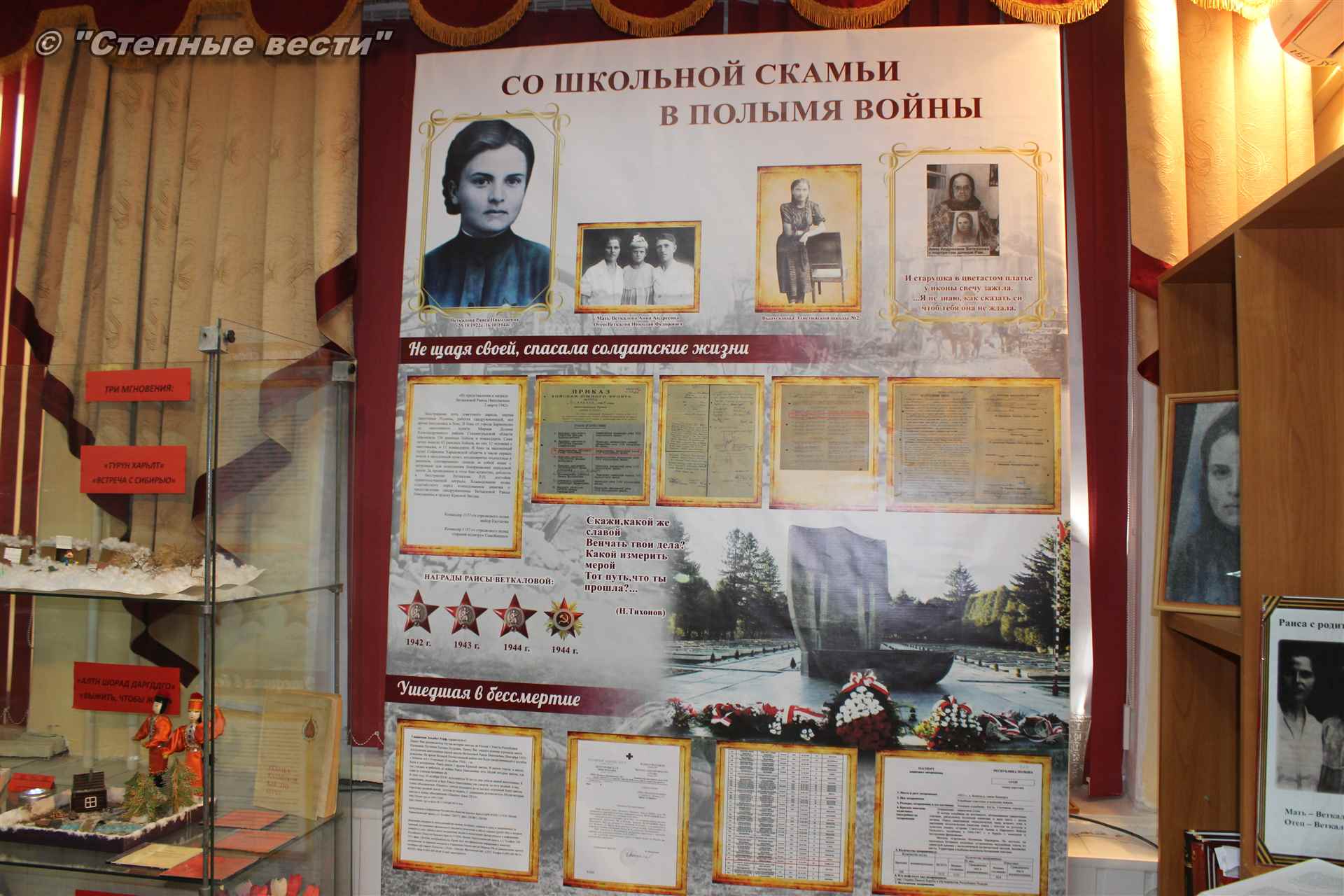 Много лет школьный военно-исторический музей возглавляет большой энтузиаст краеведческой работы Татьяна Пугачева – почетный работник общего образования РФ, уважаемый человек в образовательном пространстве Калмыкии. Стараниями ее и педагогов школы учащиеся с увлечением изучают историю родного края, биографии славных сынов в дочерей Калмыкии, с интересом ведут общественную и исследовательскую работу. В частности, здешние ученики проводят проектную и музейную работу, связанную с увековечением памяти своей предшественницы, чему, кстати, в немалой степени способствует и то, что в Элисте до сих пор живут и поддерживают связь со школой многочисленные родственники Раисы Веткаловой, и некоторые их представители учились и сейчас учатся в ней.