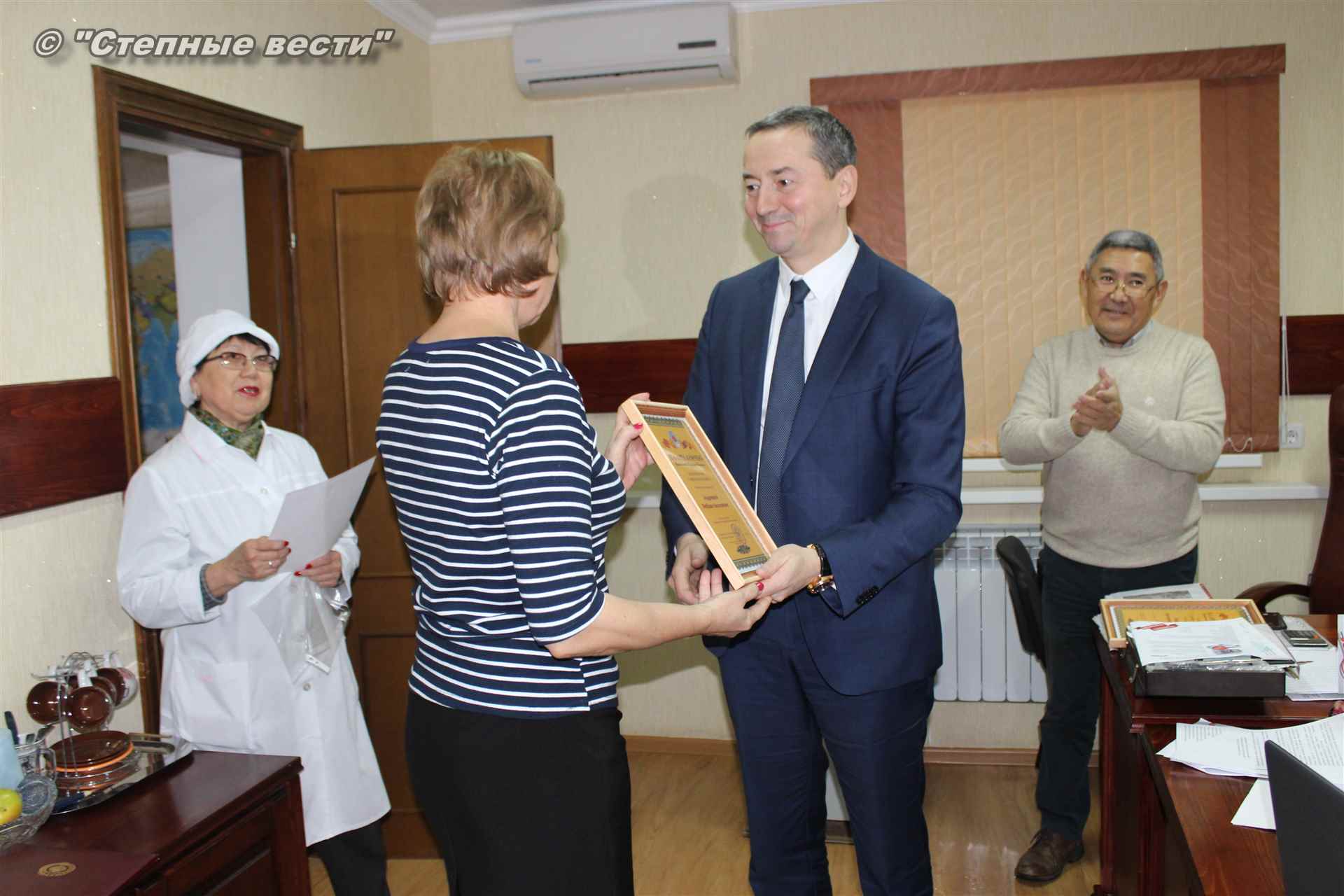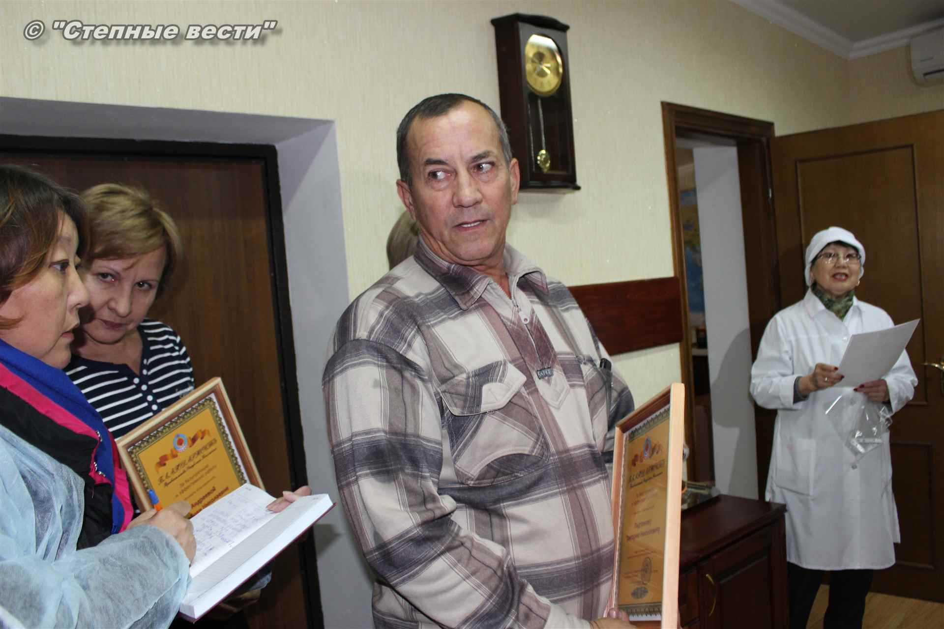 Пользуясь случаем, тем, что в гости к работникам предприятия заглянул его председатель, Игоря Зотова попросили вручить эту награду. Из рук главы кабмина РК ее получили заведующая производством Лариса Максимова, бухгалтер-оператор Любовь Андреева и водитель-экспедитор Григорий Педрикин. Григорий Николаевич, как оказалось, только что вернулся из дальнего рейса – ездил в Лагань, куда отвозит товар через день. За годы работы на предприятии водитель экстра класса намотал десятки тысяч километров на своем грузовичке-будке, на борту которого красуется замечательный лозунг фирмы: «От производителя к покупателю — без посредников».
