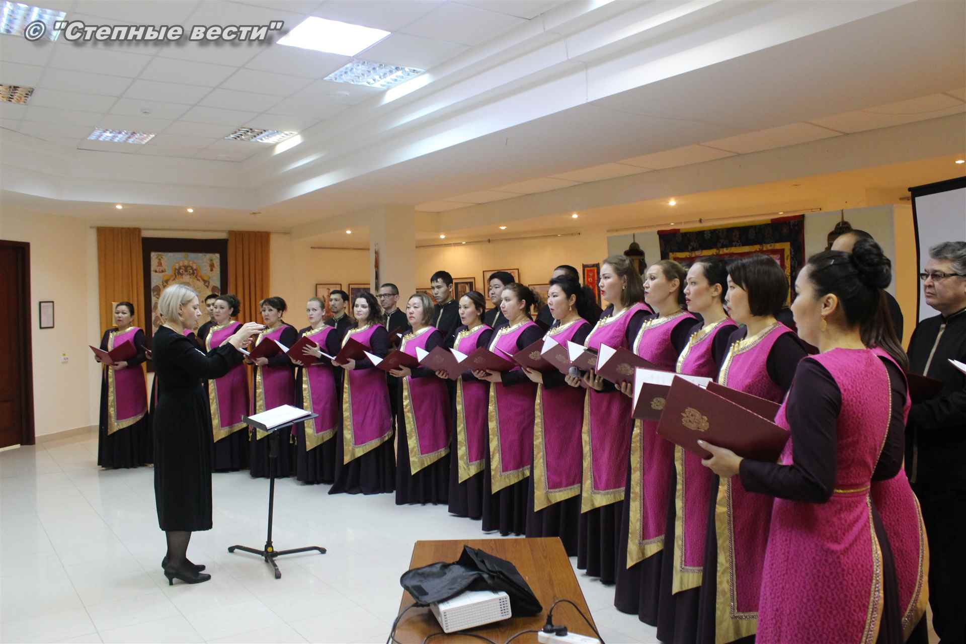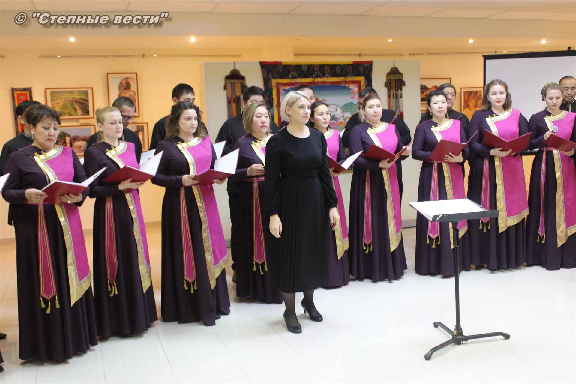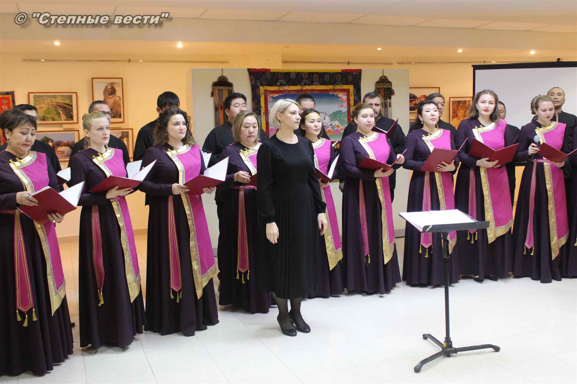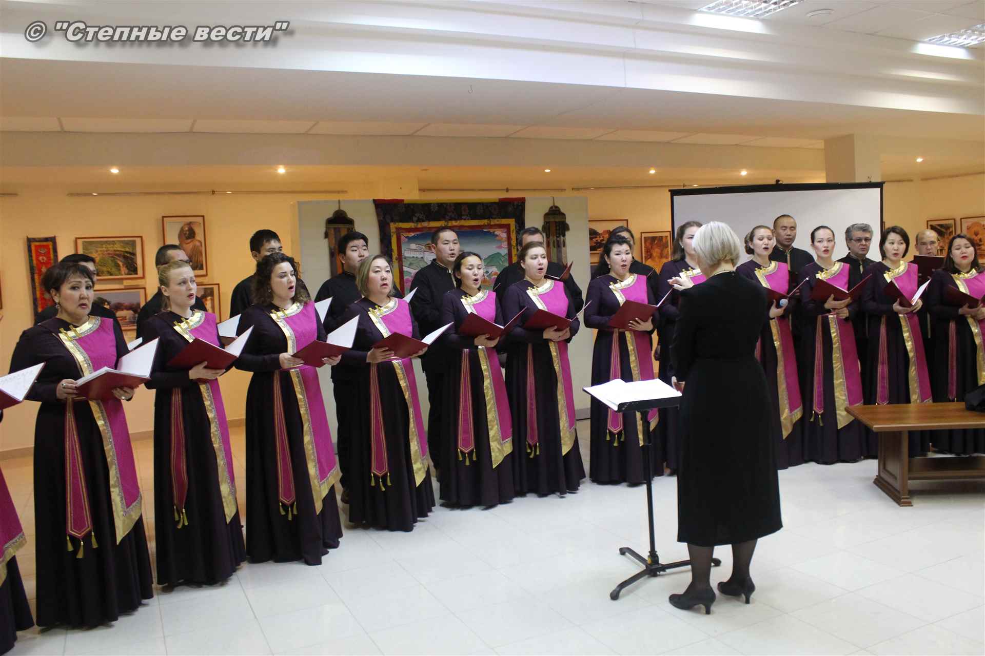 В ходе церемонии гости выставки знакомились с фотоэкспозицией, общались друг с другом. Также артисты Государственного хора имени А. Цебекова исполнили концертные номера.
