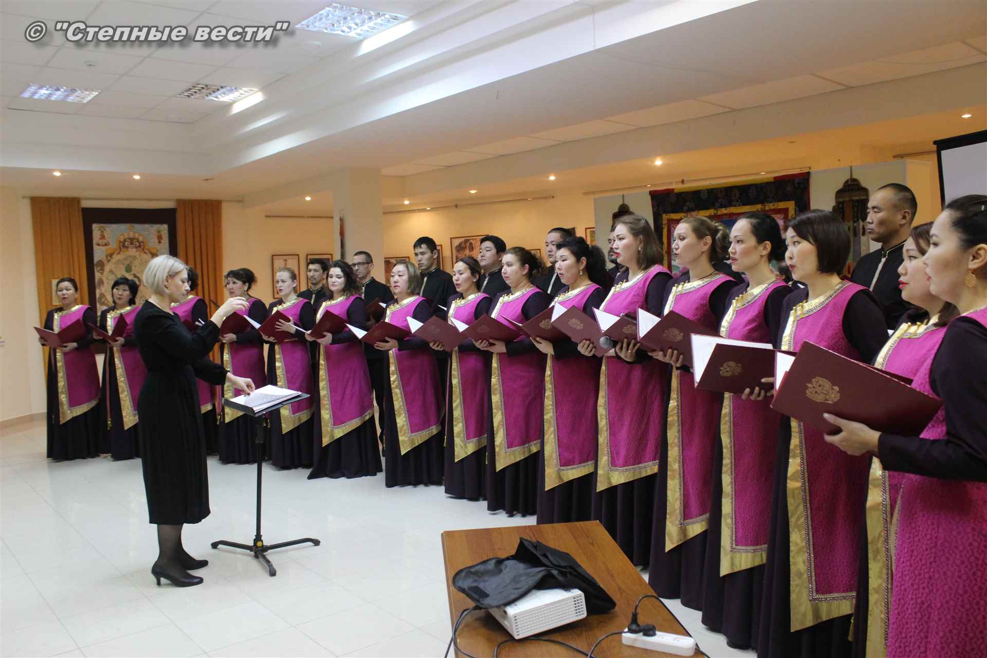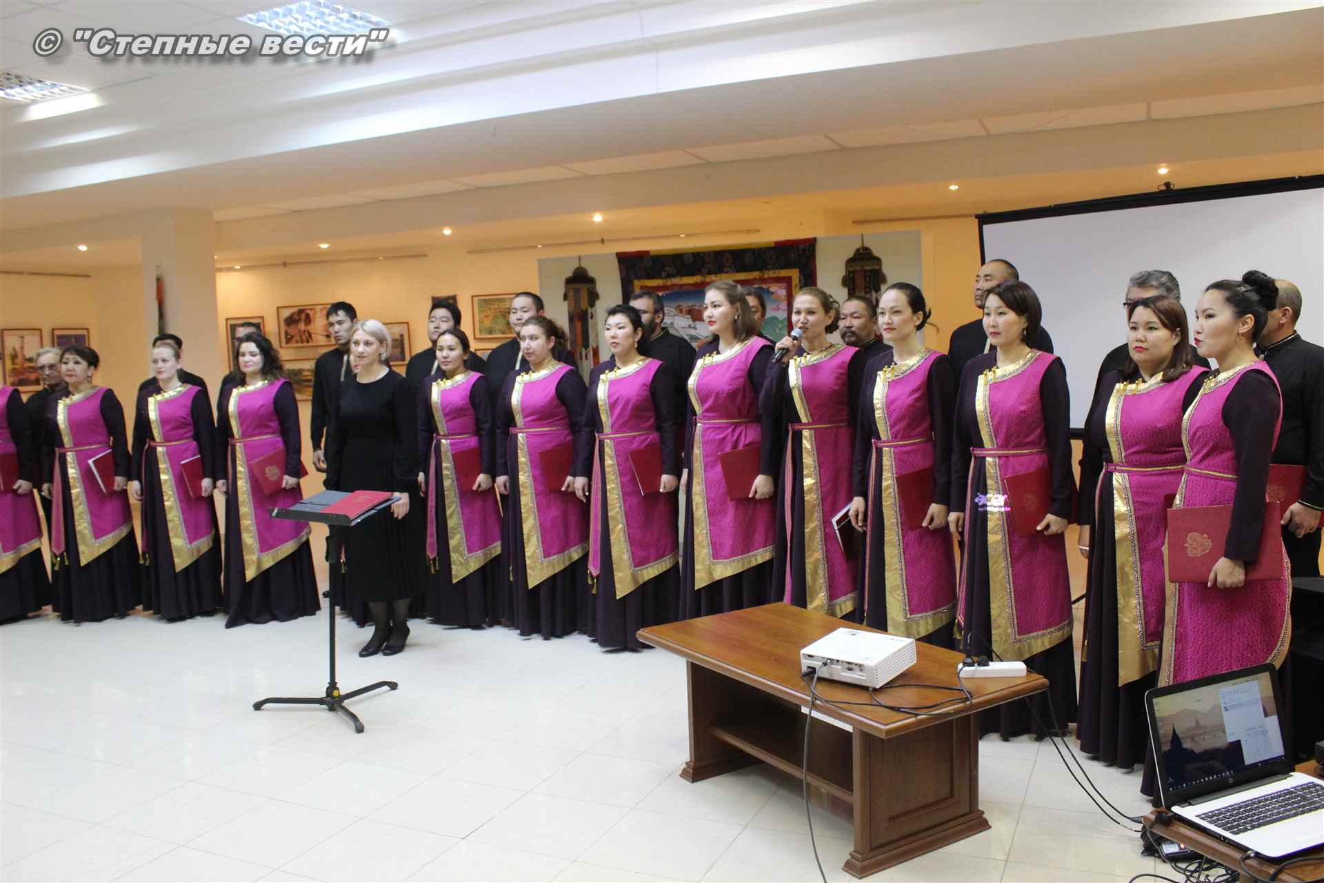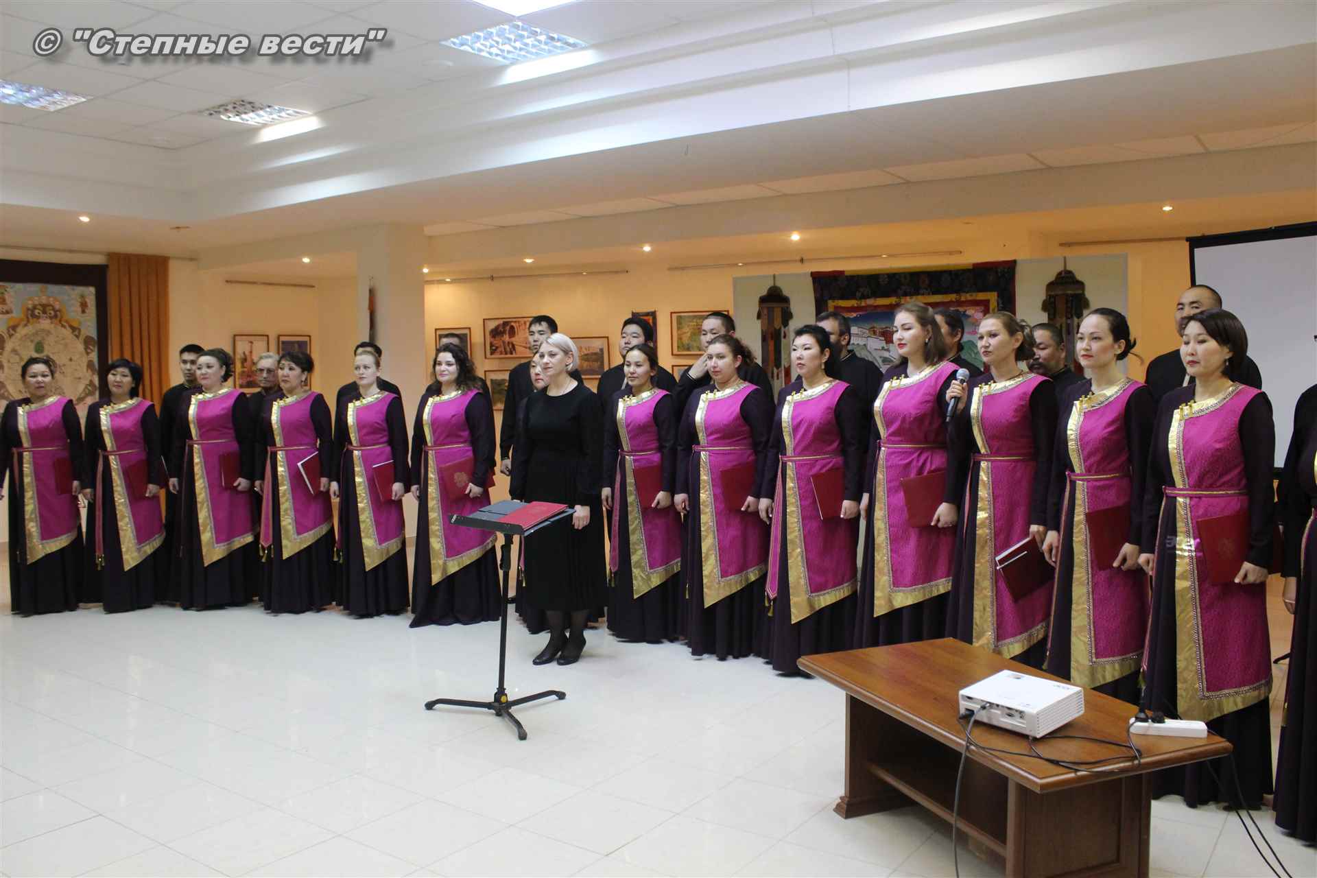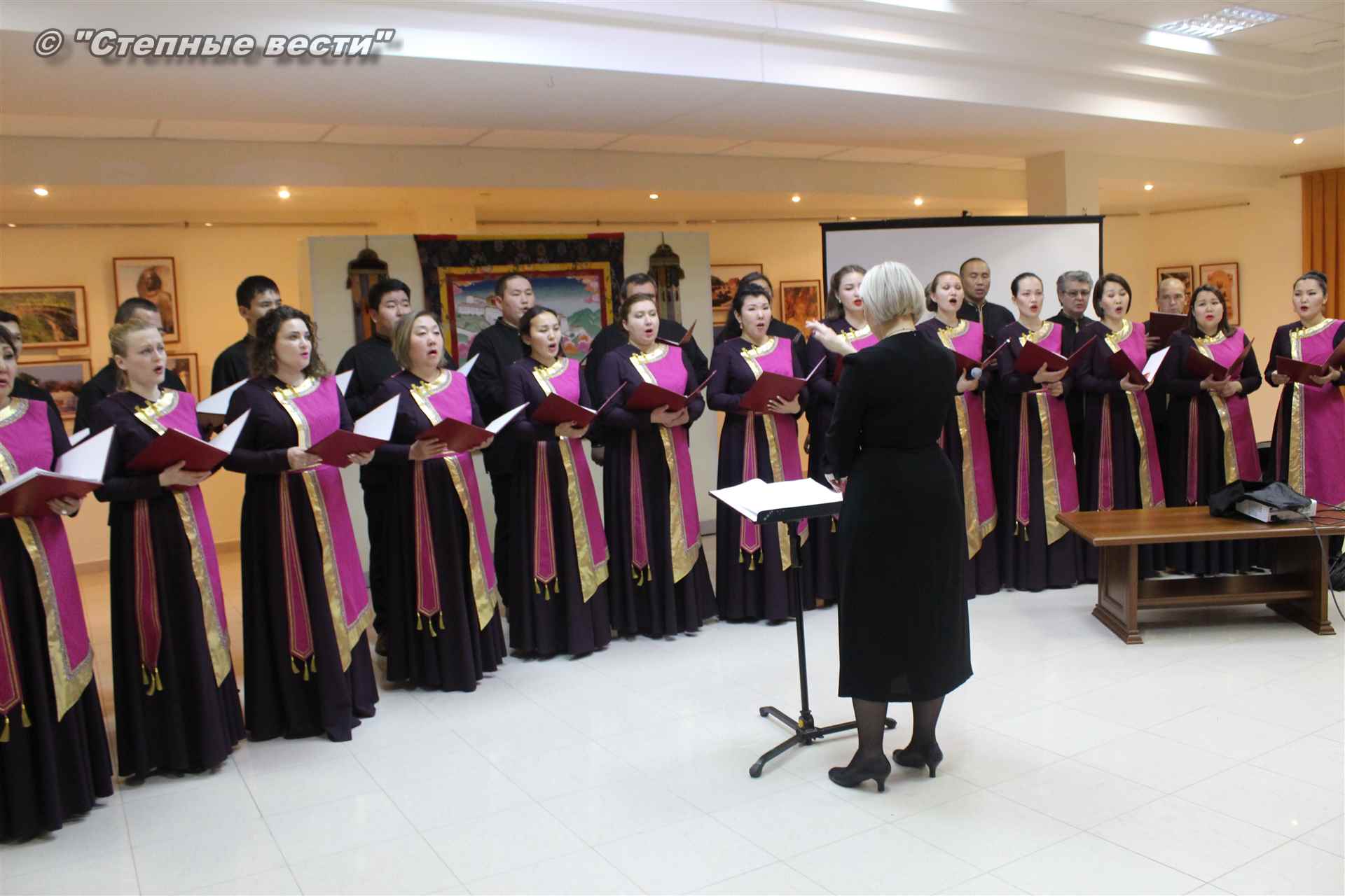 В ходе церемонии гости выставки знакомились с фотоэкспозицией, общались друг с другом. Также артисты Государственного хора имени А. Цебекова исполнили концертные номера.