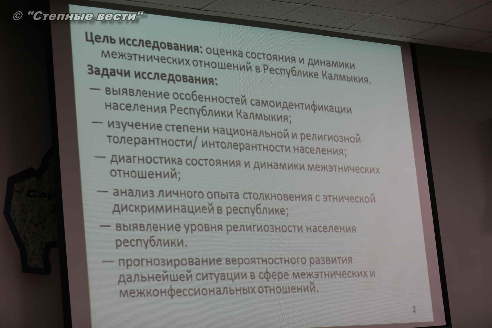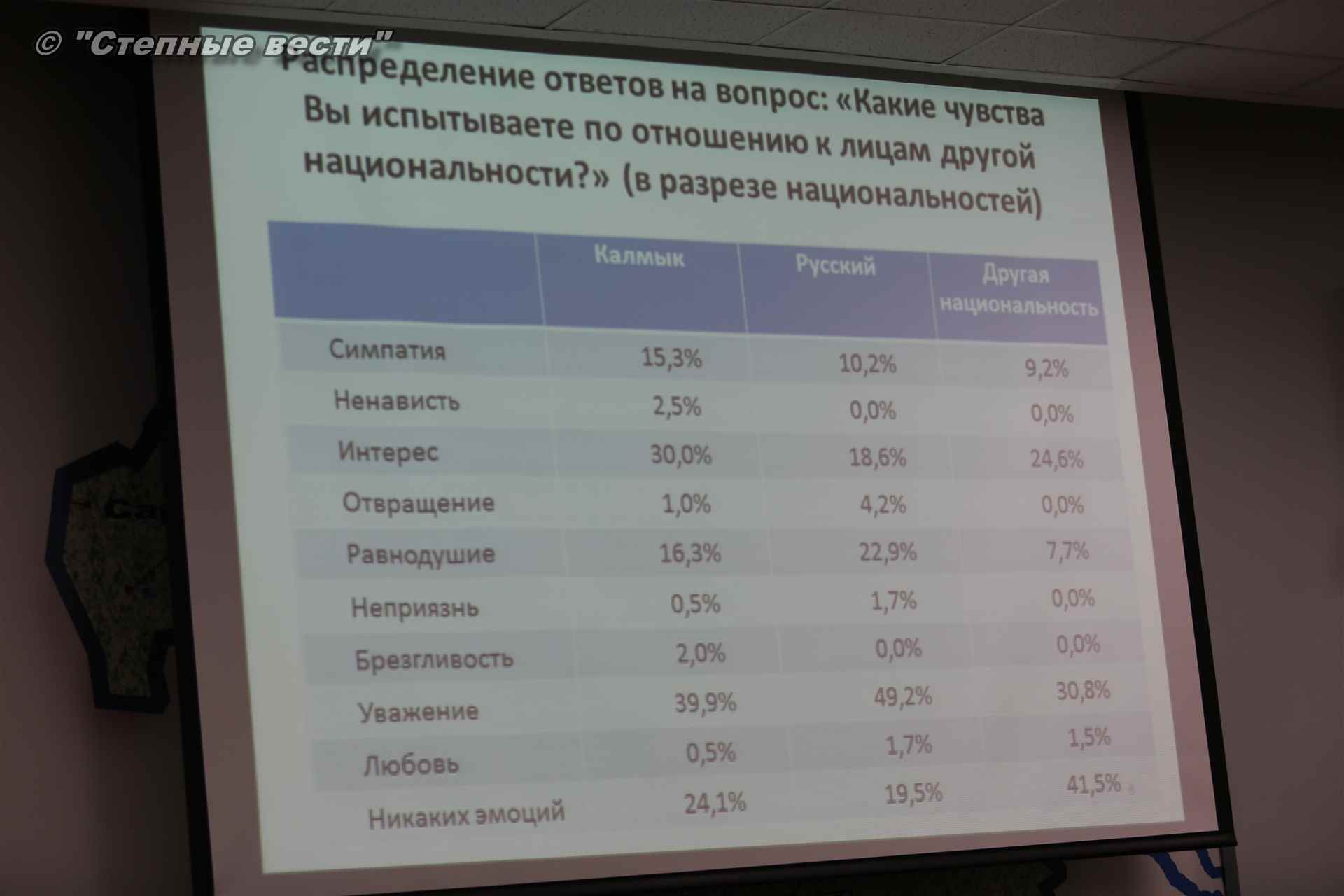 В то же время возросла доля опрошенных, считающих себя жителями Калмыкии, что, по мнению докладчика, свидетельствует о единстве калмыцкого социума.