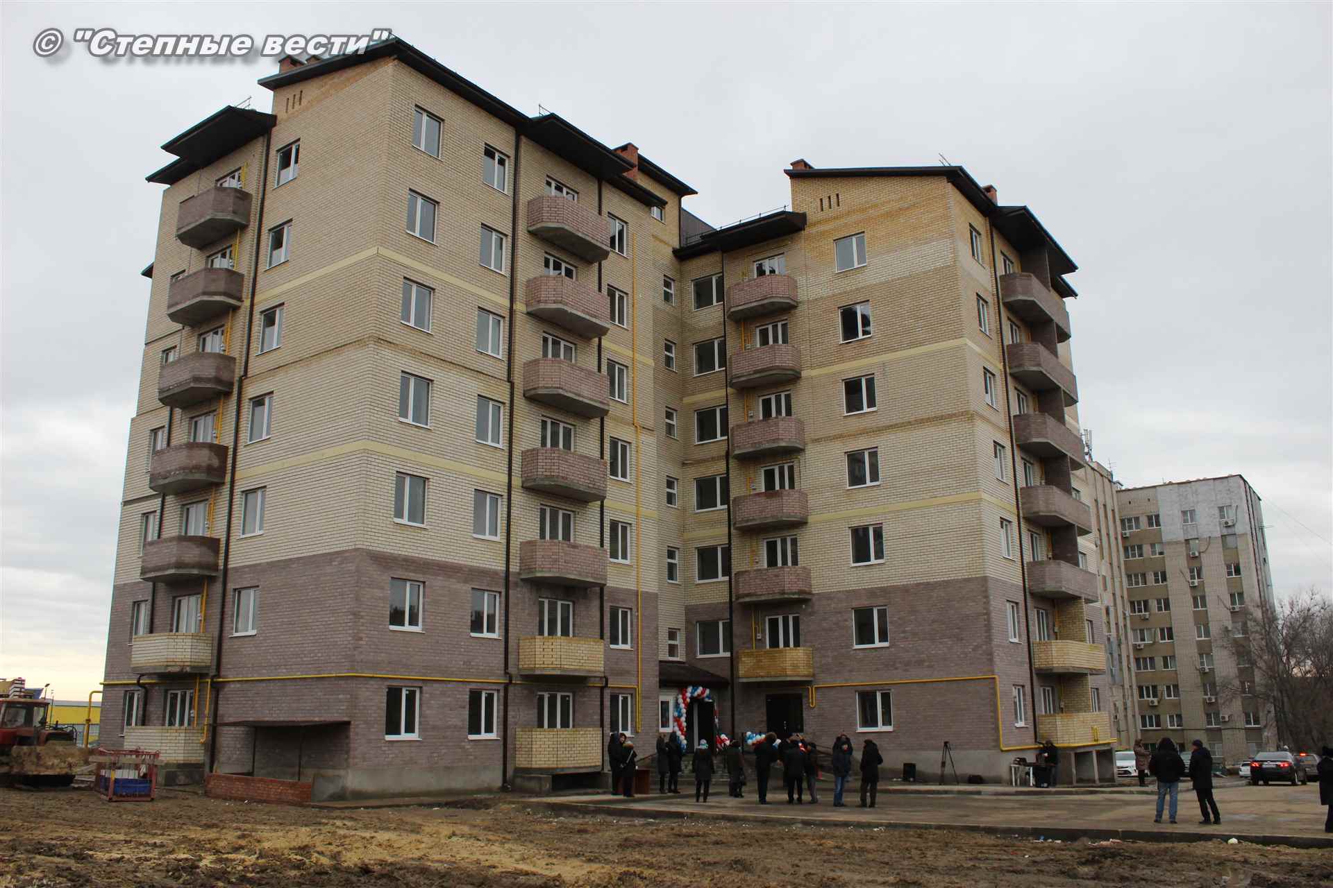 В торжественном мероприятии по поводу открытия дома принял участие Председатель Правительства Калмыкии Игорь Зотов. «Сколько я работаю главой правительства, столько же и стоит этот дом недостроенным, уже почти шесть лет. Совместными усилиями получилось его, наконец, достроить», –  сказал он, перерезая символическую ленточку. Премьер поздравил новоселов с радостным событием и пожелал им счастья в новом доме. В этот день были вручены ключи 12-ти владельцам долгожданных квадратных метров из списка, состоящего из 51-го дольщика этого дома. Остальные квартиры, как было сказано, уйдут в свободную продажу.
