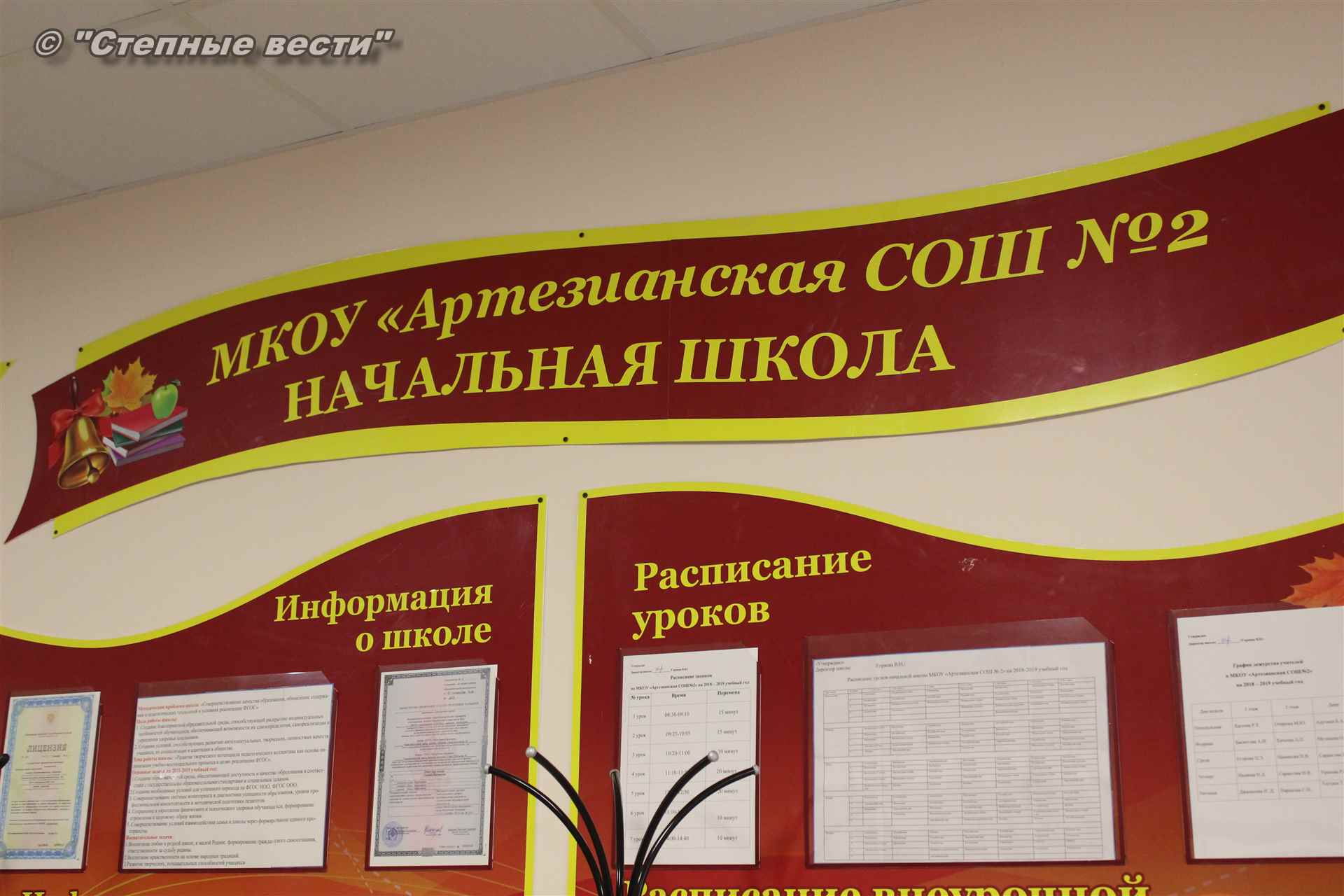 В целях обеспечения условий, соответствующих современными требованиям к условиям обучения согласно стандартам ФГОС, в апреле 2018 года был заключен договор о строительстве нового корпуса начальных классов Артезианской СОШ № 2 за счет благотворительной помощи акционерного общества Каспийский трубопроводный консорциум (КТК-Р) на сумму 54 млн 684,1 тыс. рублей. Строительные работы выполнены ООО «Альянс — строй».