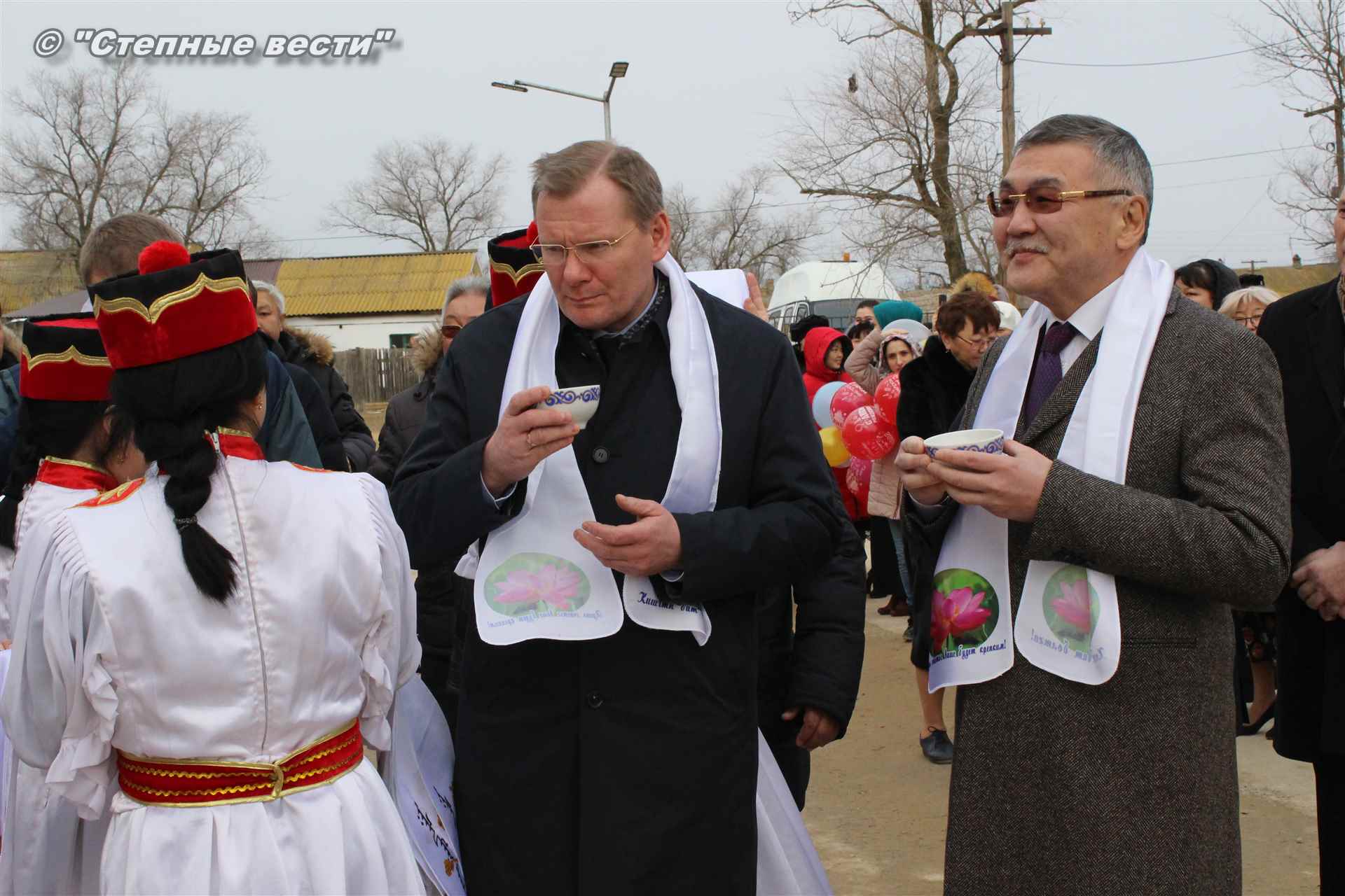 В церемонии по случаю знаменательного события в жизни поселка приняли участие Глава Калмыкии Алексей Орлов, генеральный директор АО «КТК-Р» Николай Горбань, его первый заместитель по эксплуатации Кеннет Йосс, генеральный менеджер АО «КТК-Р» по эксплуатации Владимир Шмаков, министр образования и науки РК Николай Манцаев, глава администрации Черноземельского РМО Валерий Бадмаев, преподаватели, учащиеся школы и их родители.