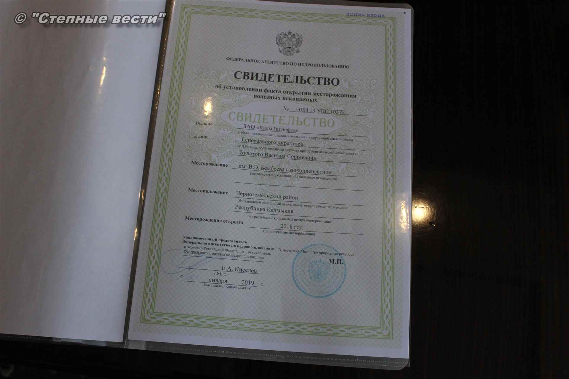 ЗАО «КалмТатнефть» получила официальное подтверждение об открытии в Калмыкии месторождения газоконденсата и готово приступить к его освоению. Об этом Председателю Правительства Калмыкии Игорю Зотову сообщил генеральный директор компании Василий Булатый.