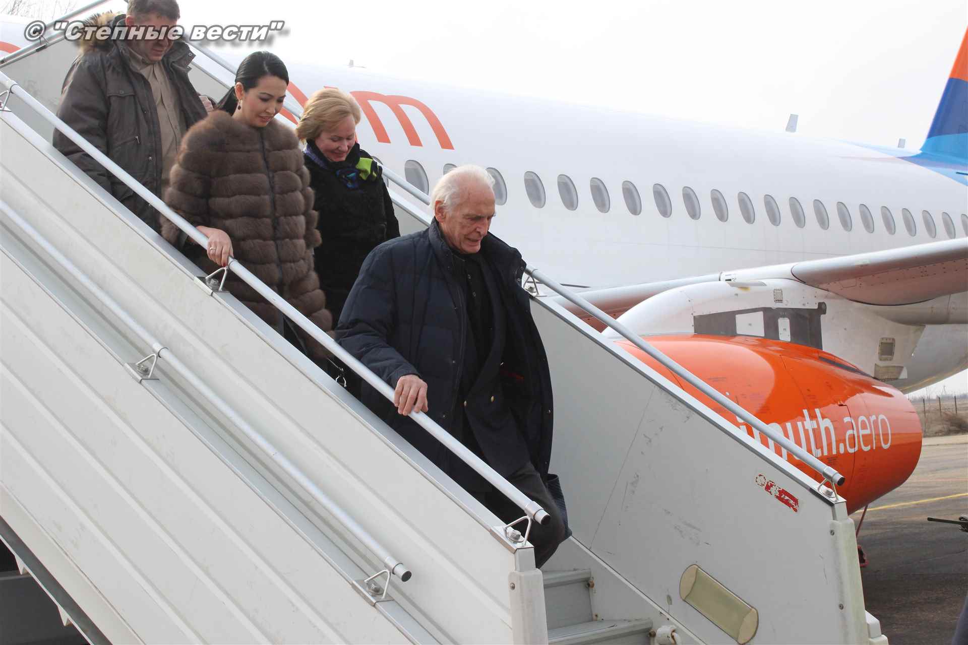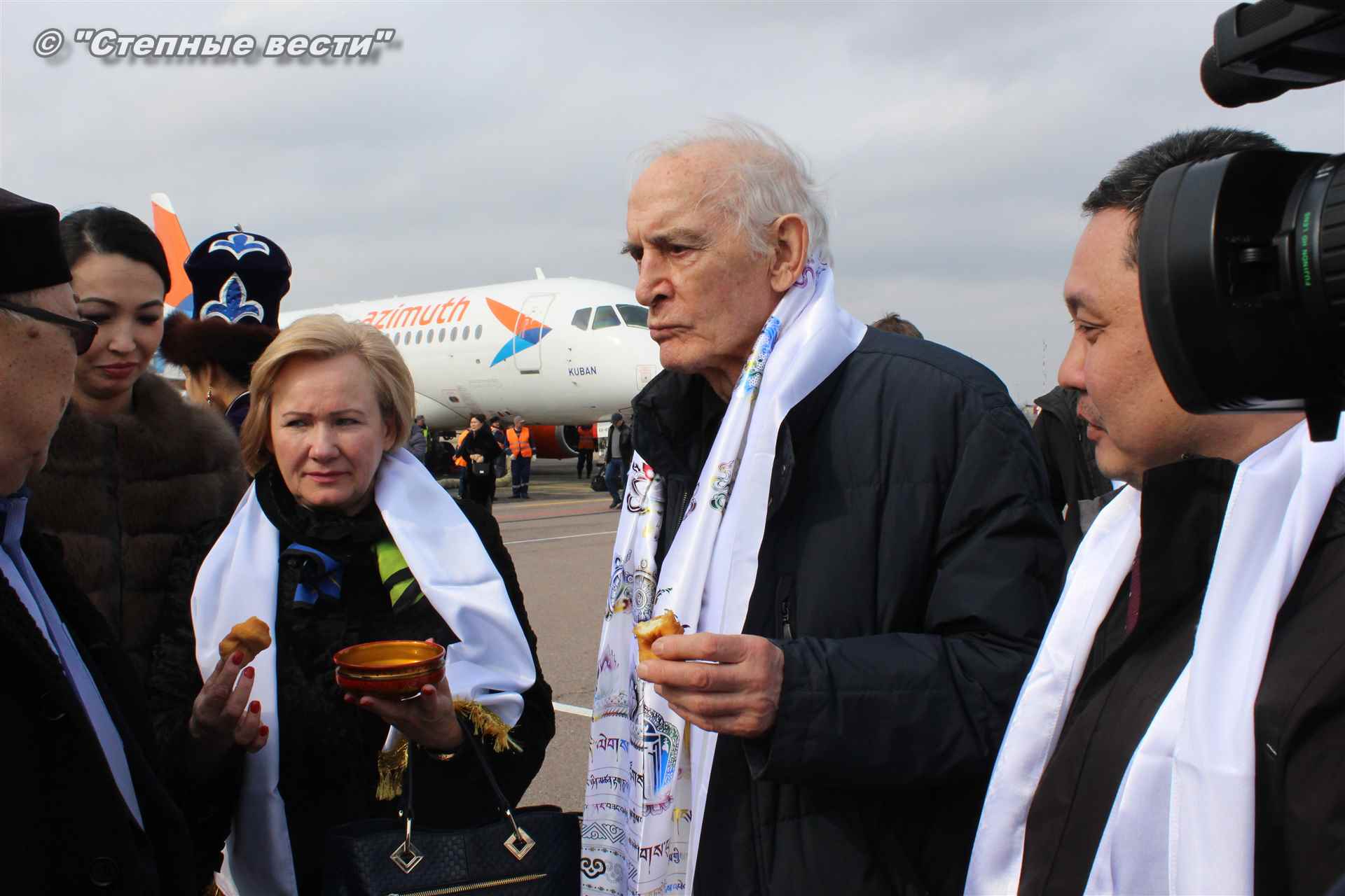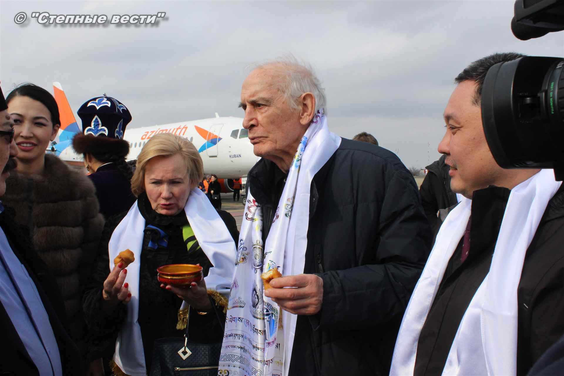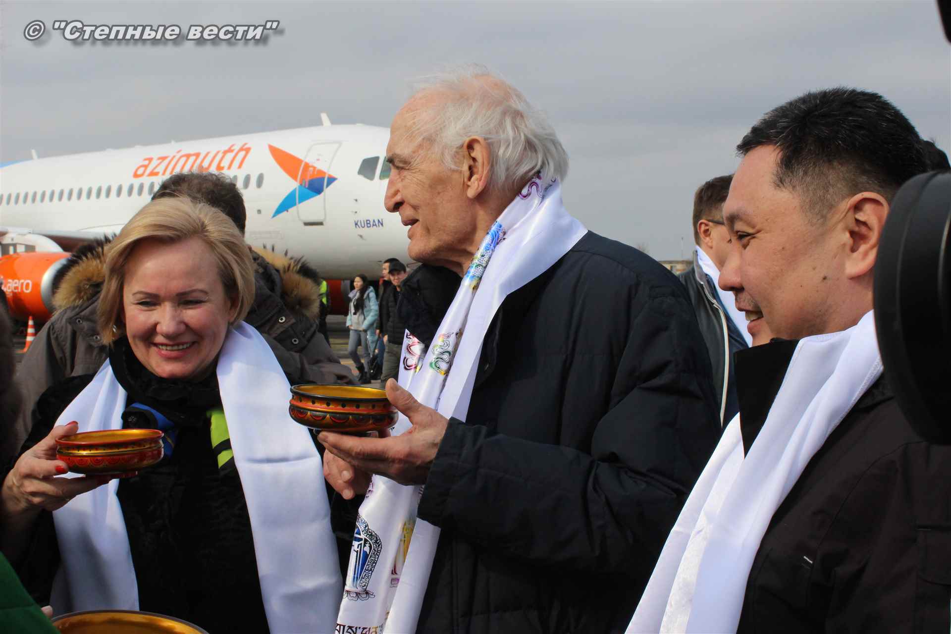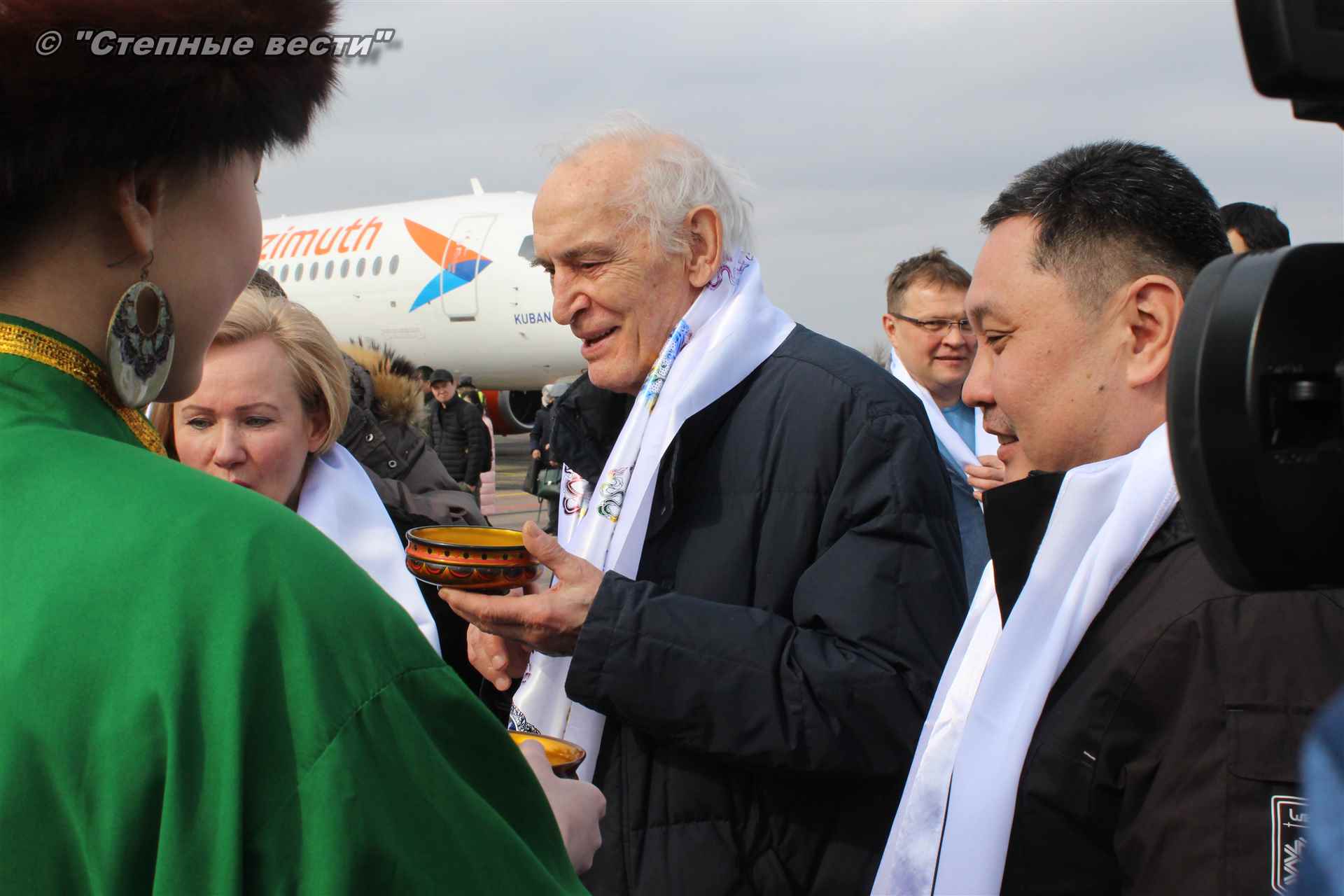 Народный артист СССР Василий Лановой сегодня прилетел из Москвы в Элисту. В аэропорту актера, которого зрители знают в первую очередь как исполнителя главной роли  культового фильма «Офицеры», встретили представители республиканских министерств во главе с заместителем Председателя Правительства РК Боовой Бадмаевым и воспитанники военно-патриотического клуба «Десантник» имени гвардии майора Санала Санчирова вместе с начальником  штаба Калмыцкого регионального отделения движения «Юнармия» Чимидом Джангаевым.