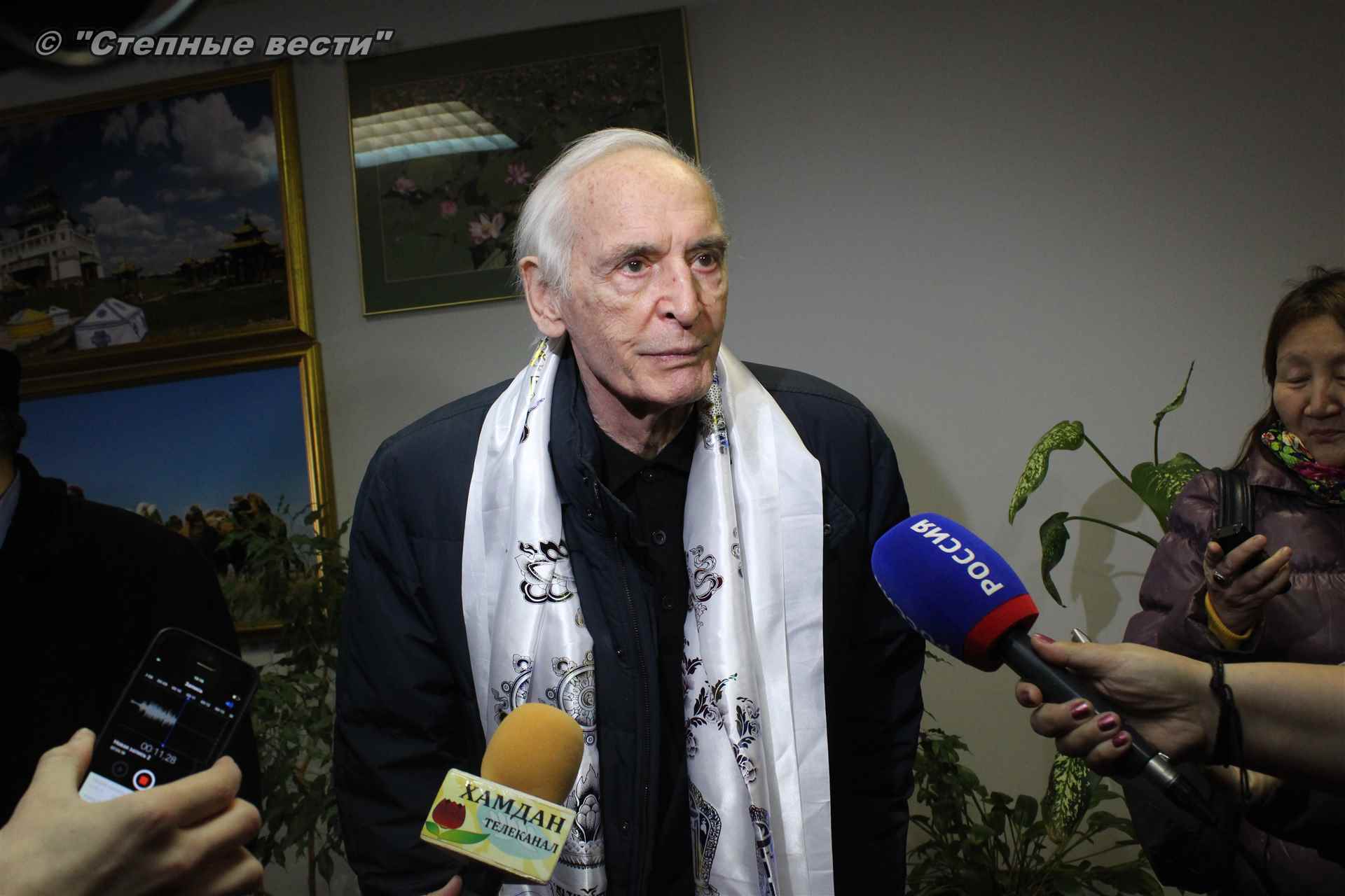 «Добрый день, Калмыкия! Здравия желаю! Я не первый раз в вашей замечательной  республике. С театром Вахтангова сюда приезжали,  привозили спектакли. Я 65 лет снимаюсь в кино, многие премьеры здесь были, и если было возможно приехать от театра, я приезжал сюда. Счастлив быть у вас снова», — рассказал В. Лановой журналистам.