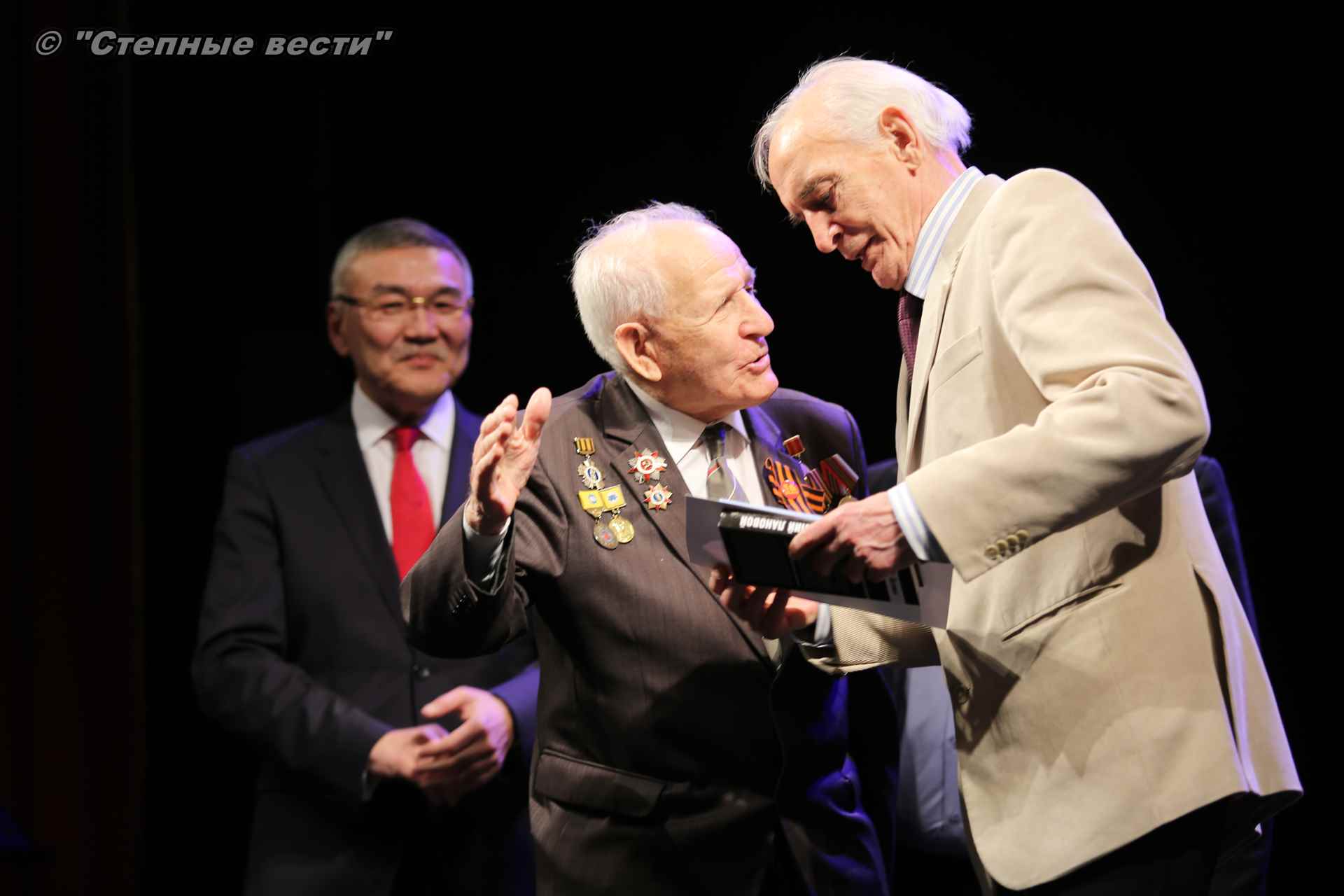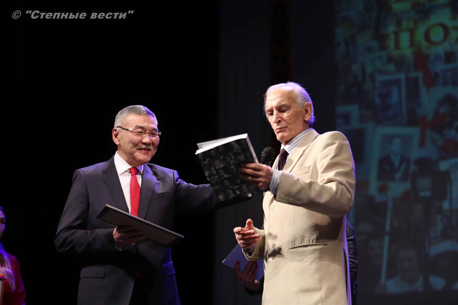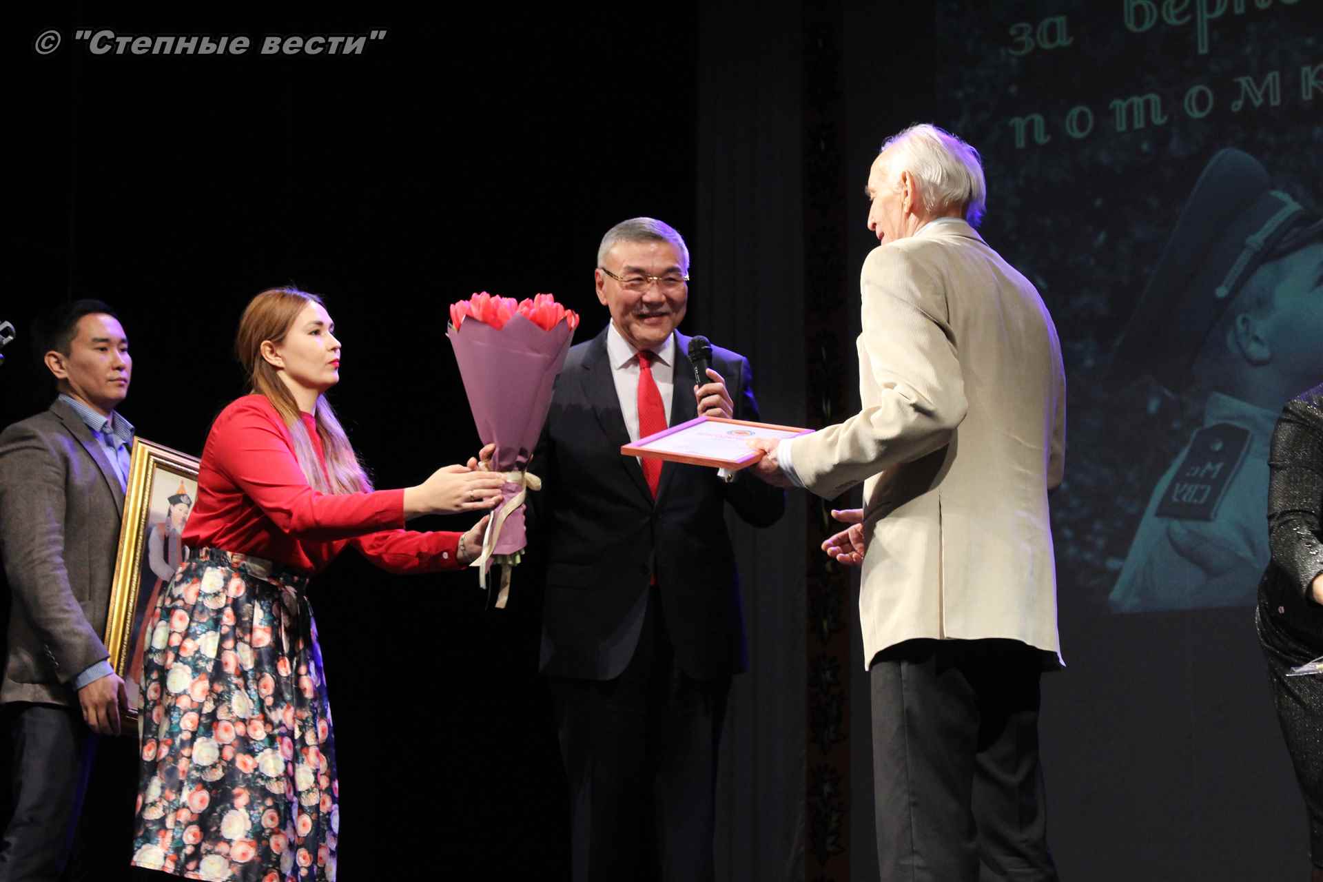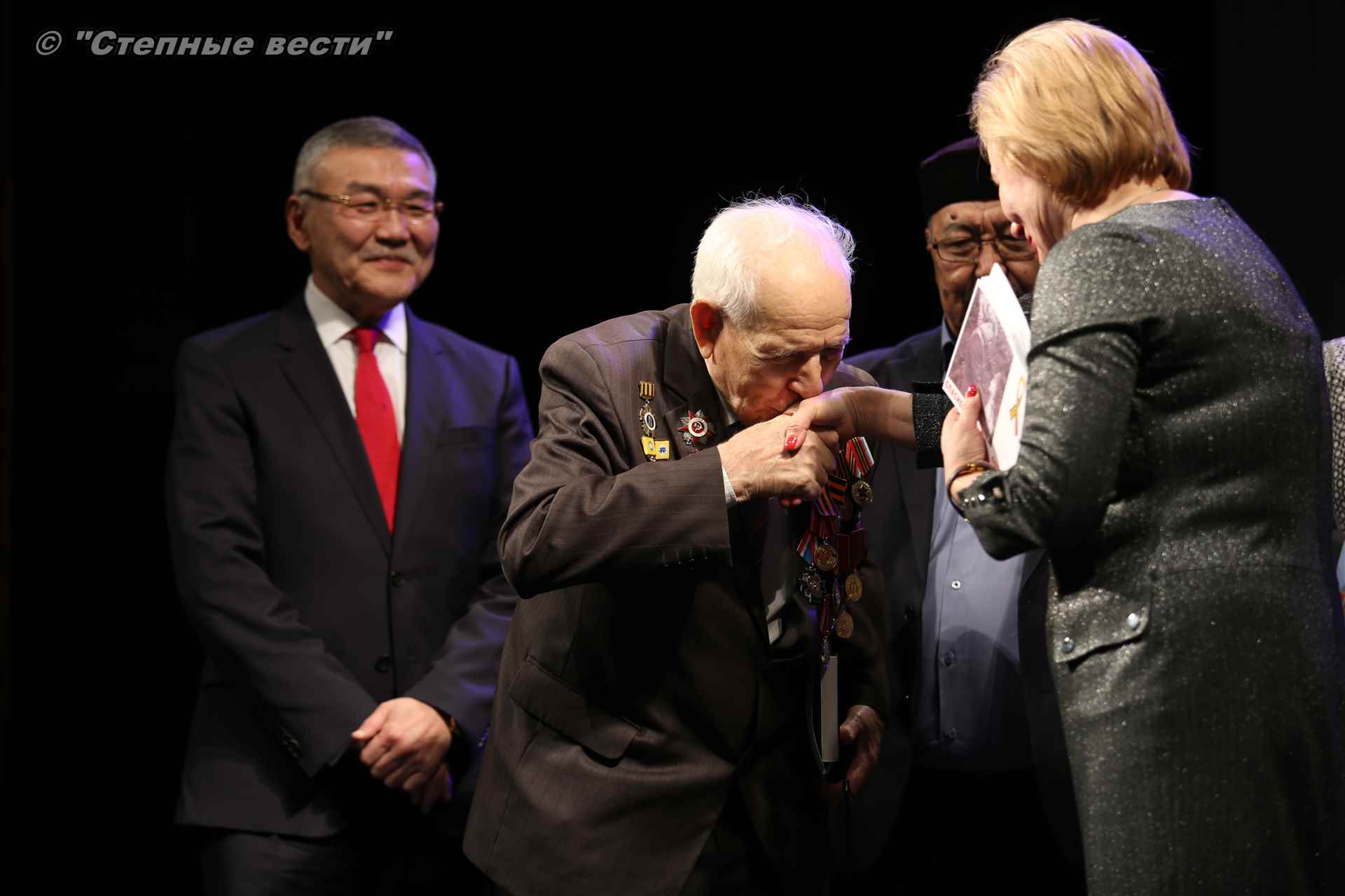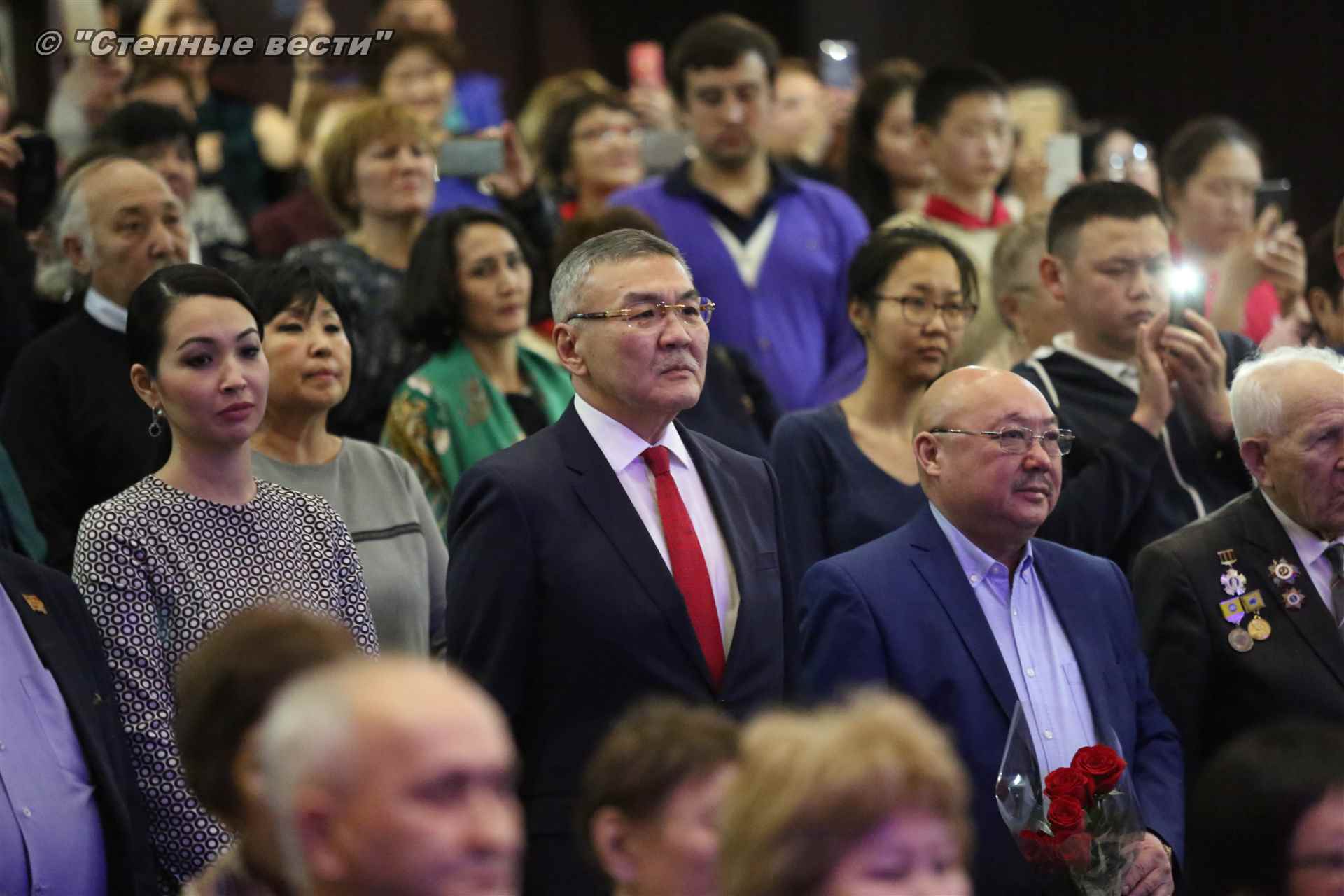 В завершение концерта на сцену поднялся Глава РК Алексей Орлов. Руководитель региона вручил народному артисту СССР  Благодарность Главы РК за неоценимый творческий вклад в сохранение и укрепление традиций патриотизма, исторической памяти о героическом прошлом многонационального народа России и активное участие в культурной жизни Республики Калмыкия.