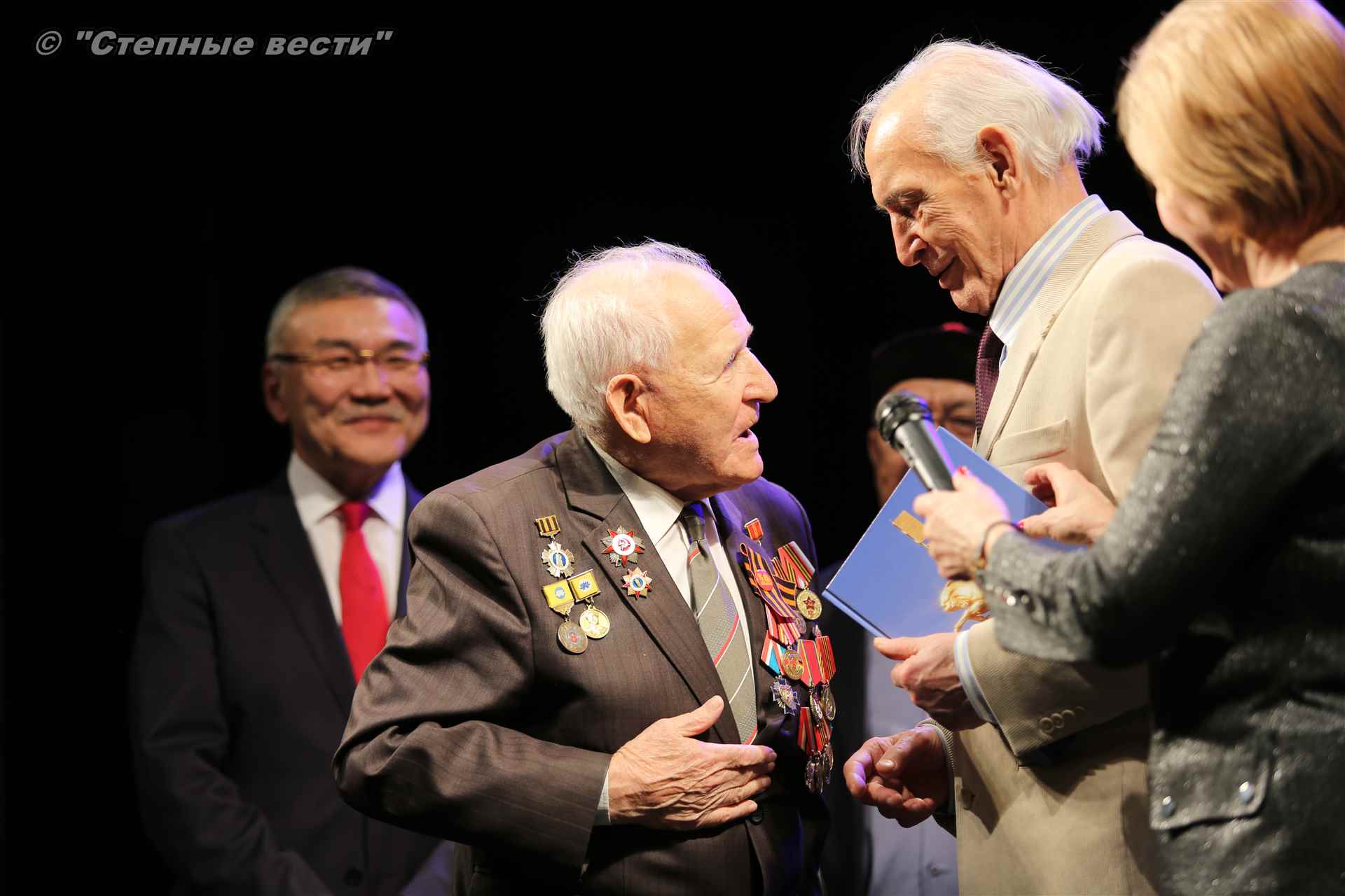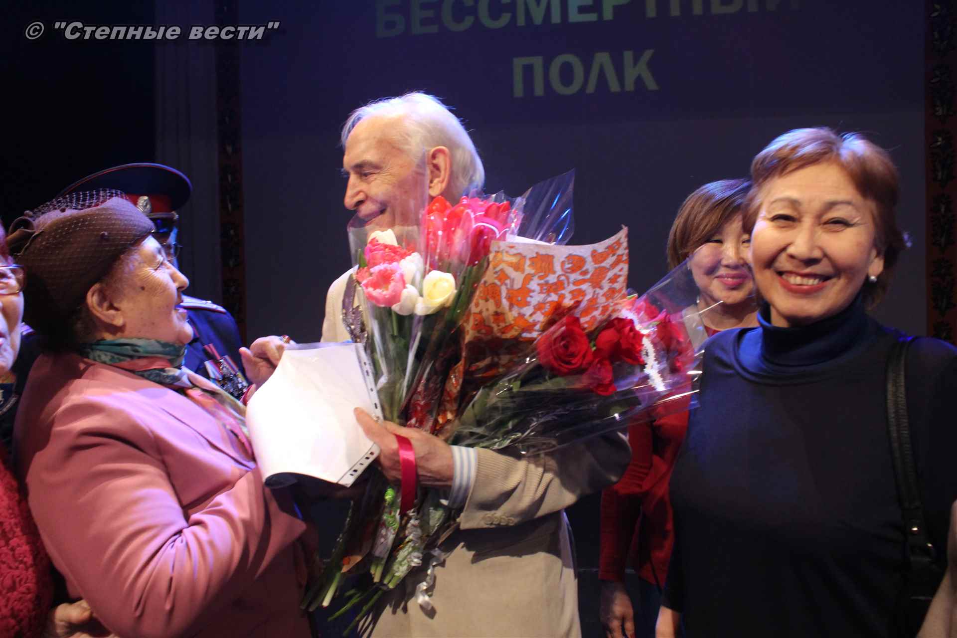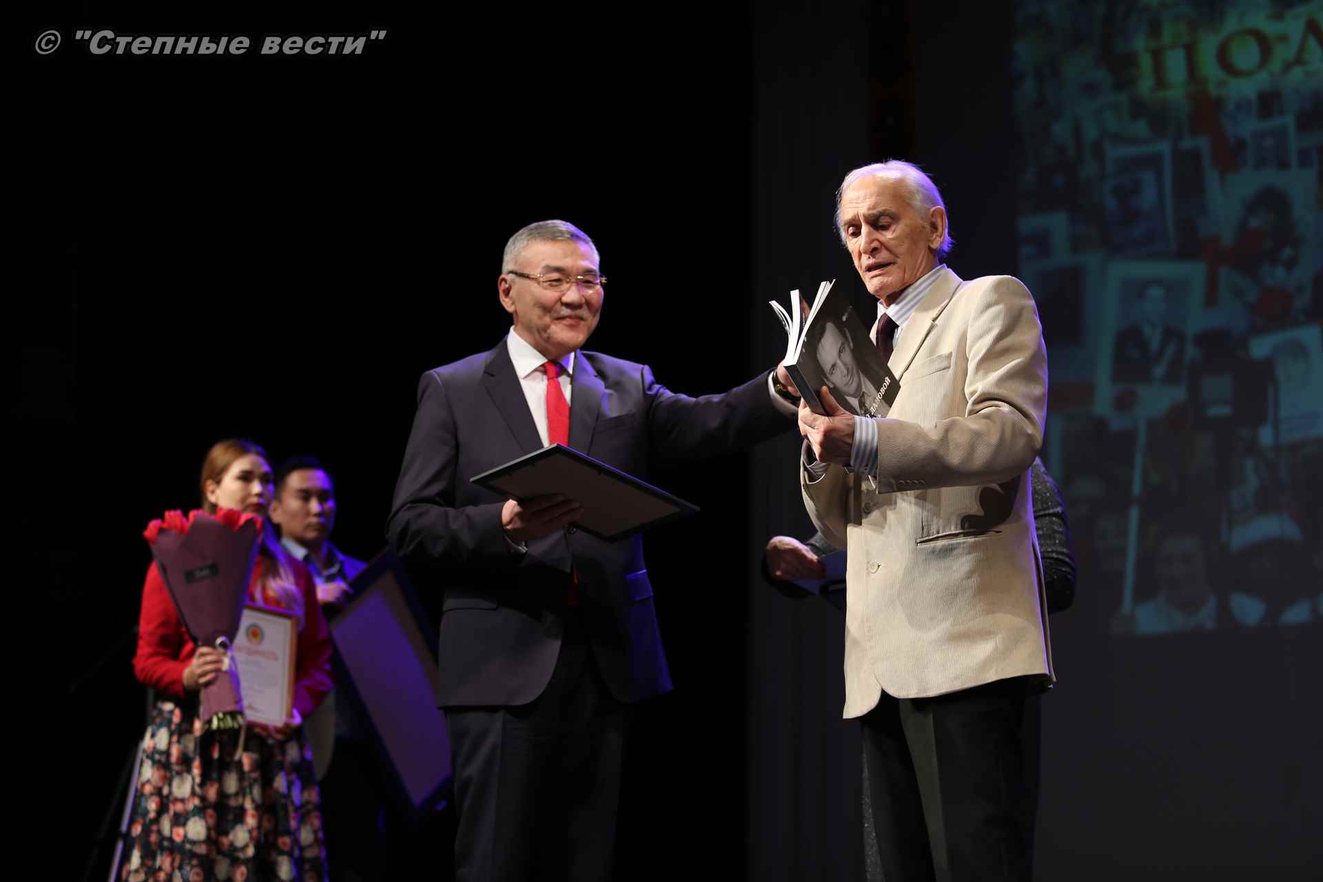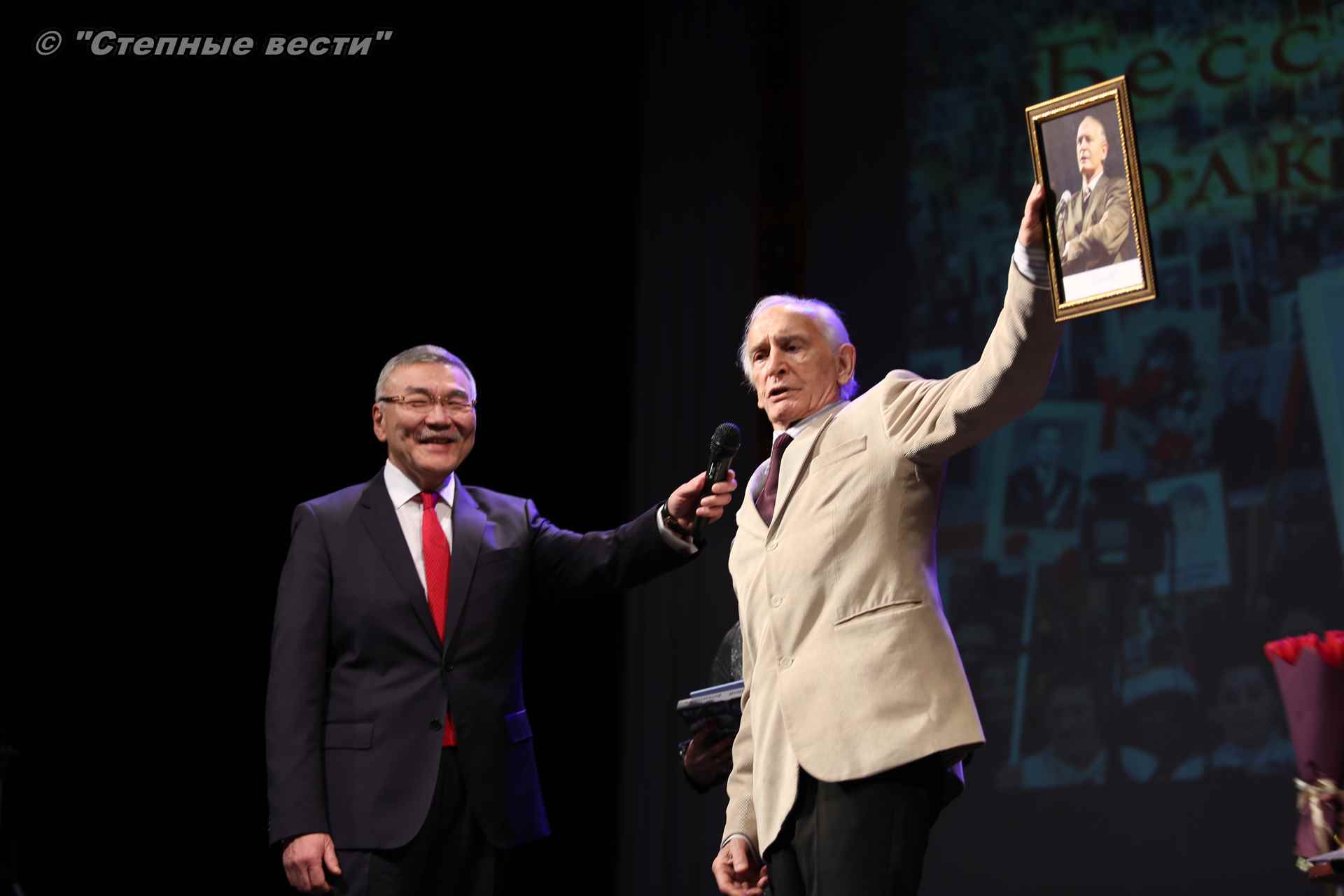 В завершение концерта на сцену поднялся Глава РК Алексей Орлов. Руководитель региона вручил народному артисту СССР  Благодарность Главы РК за неоценимый творческий вклад в сохранение и укрепление традиций патриотизма, исторической памяти о героическом прошлом многонационального народа России и активное участие в культурной жизни Республики Калмыкия.