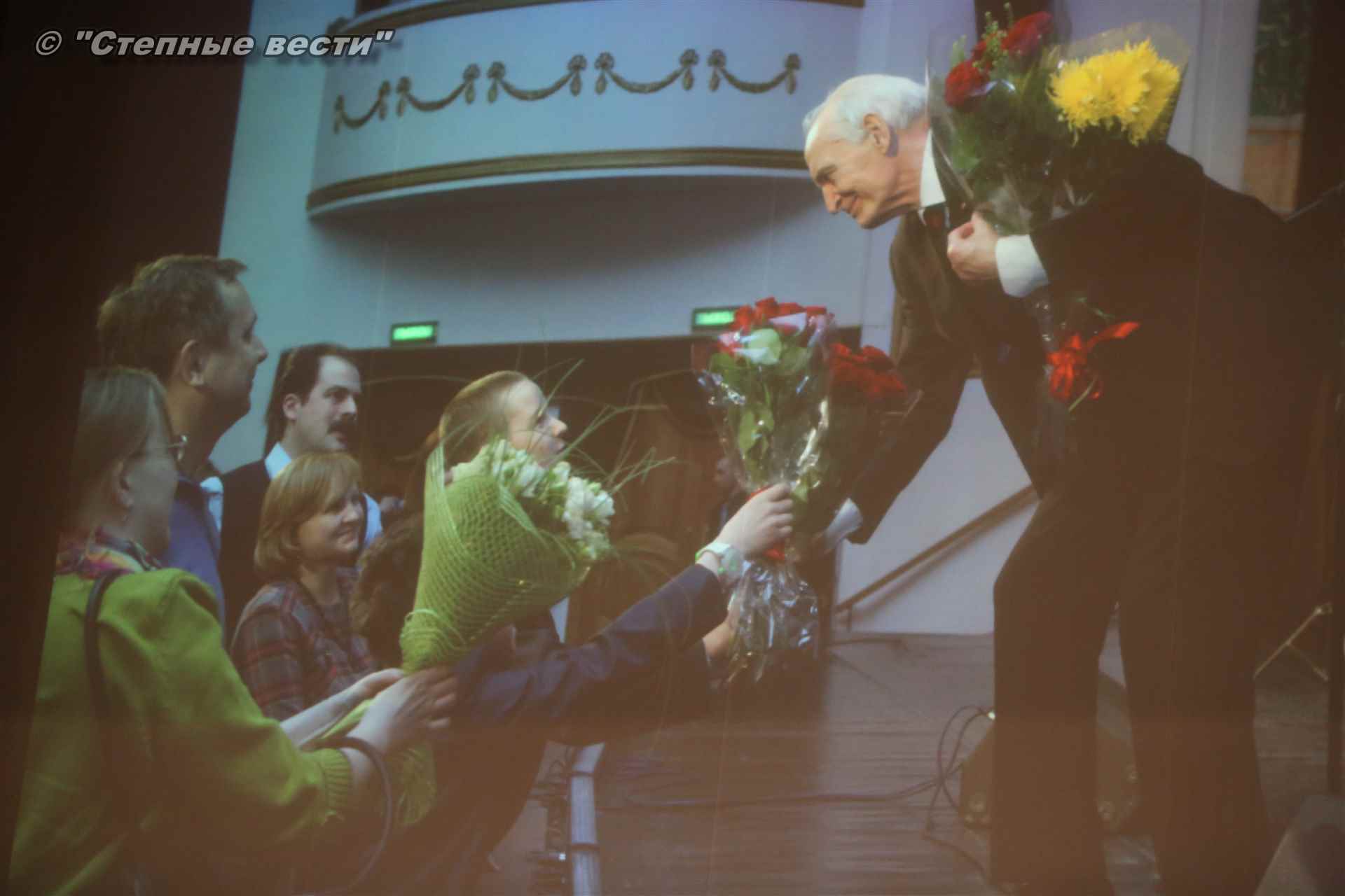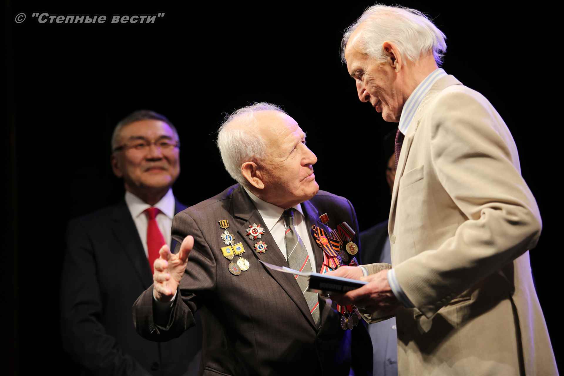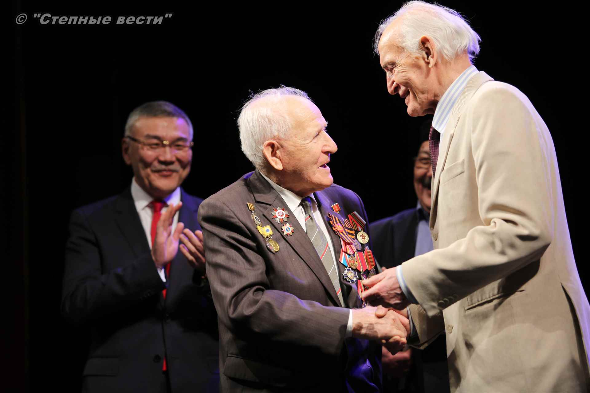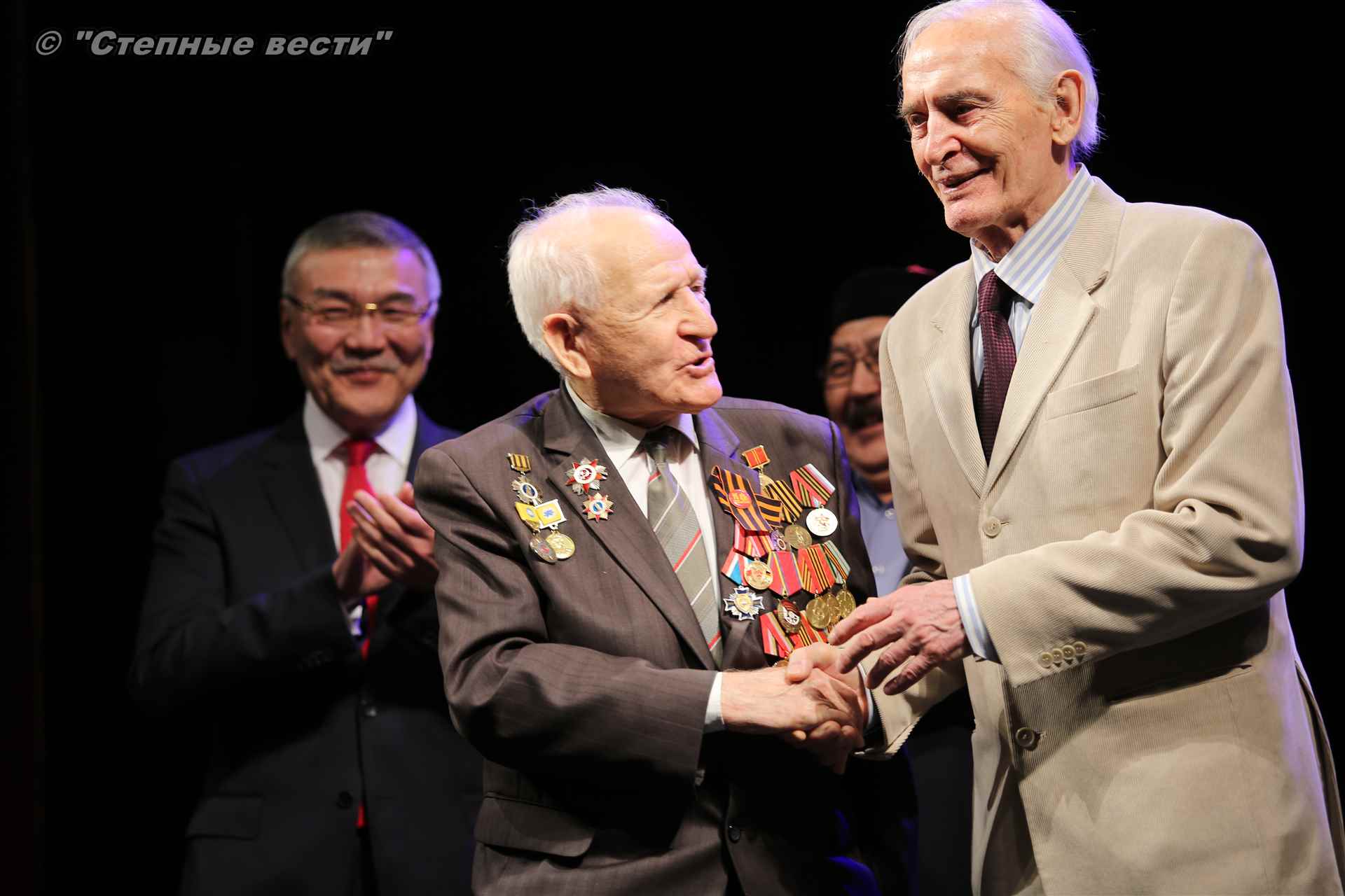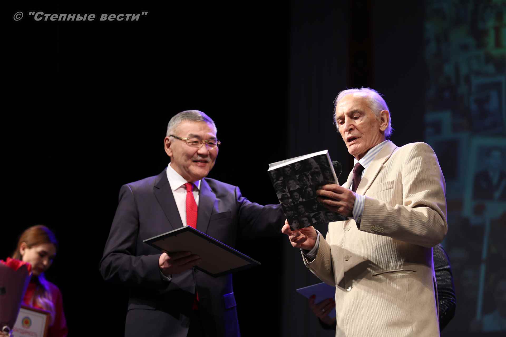 В завершение концерта на сцену поднялся Глава РК Алексей Орлов. Руководитель региона вручил народному артисту СССР  Благодарность Главы РК за неоценимый творческий вклад в сохранение и укрепление традиций патриотизма, исторической памяти о героическом прошлом многонационального народа России и активное участие в культурной жизни Республики Калмыкия.