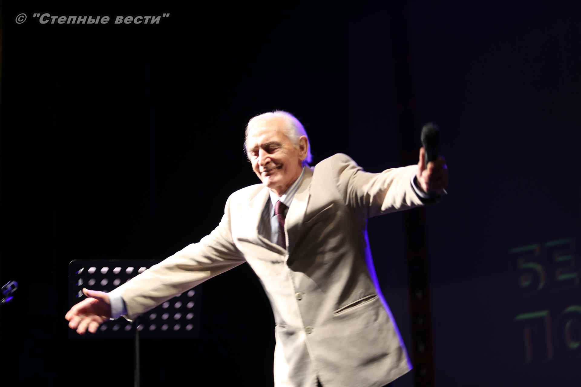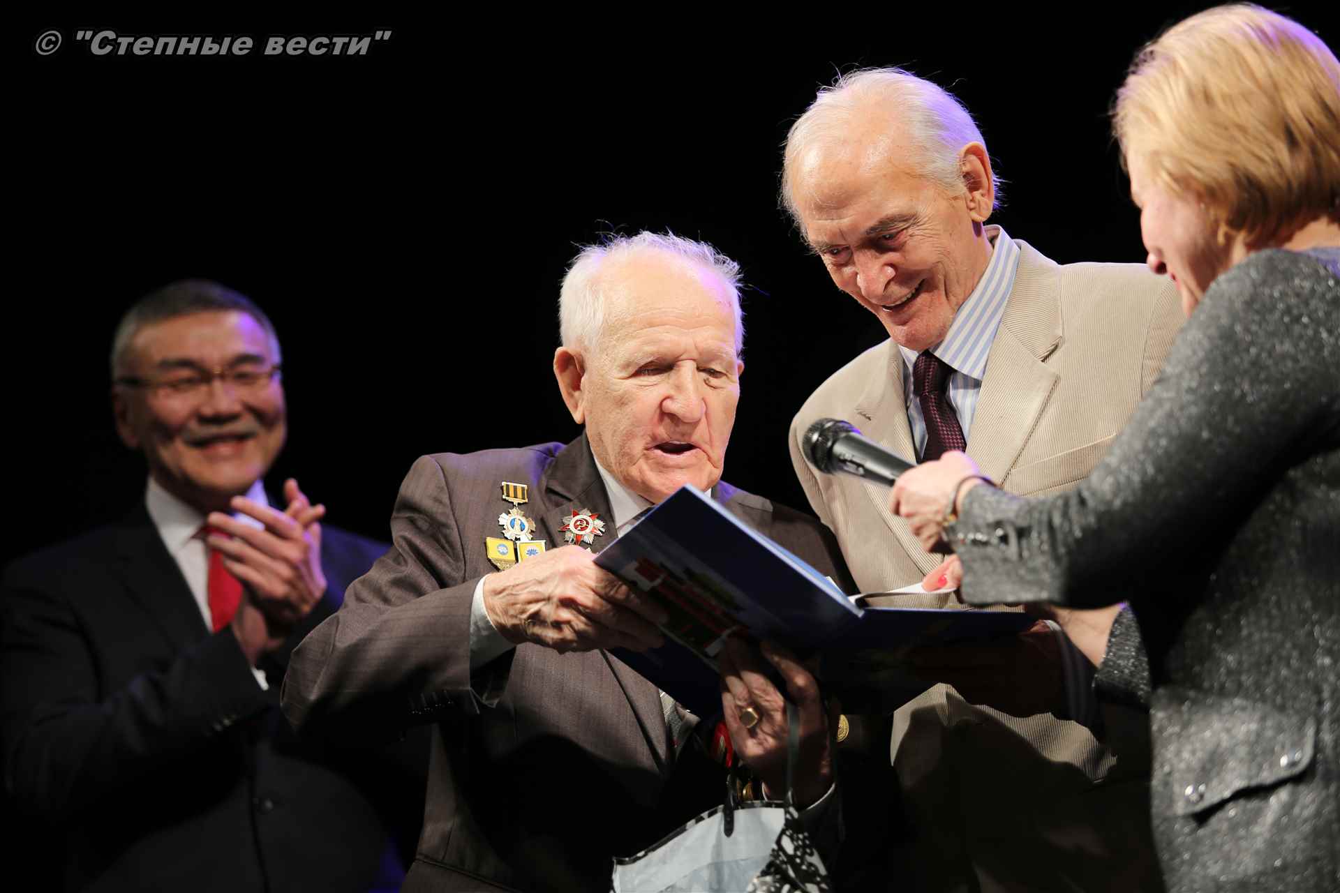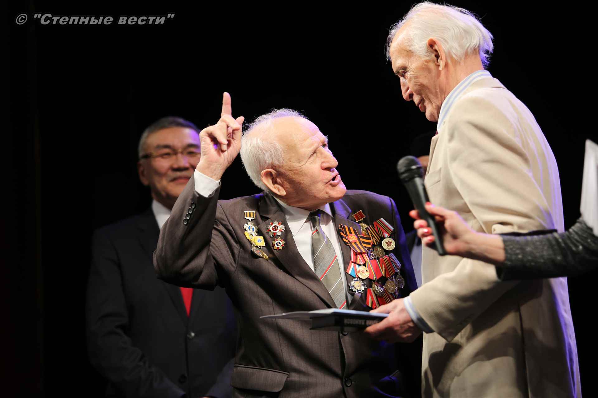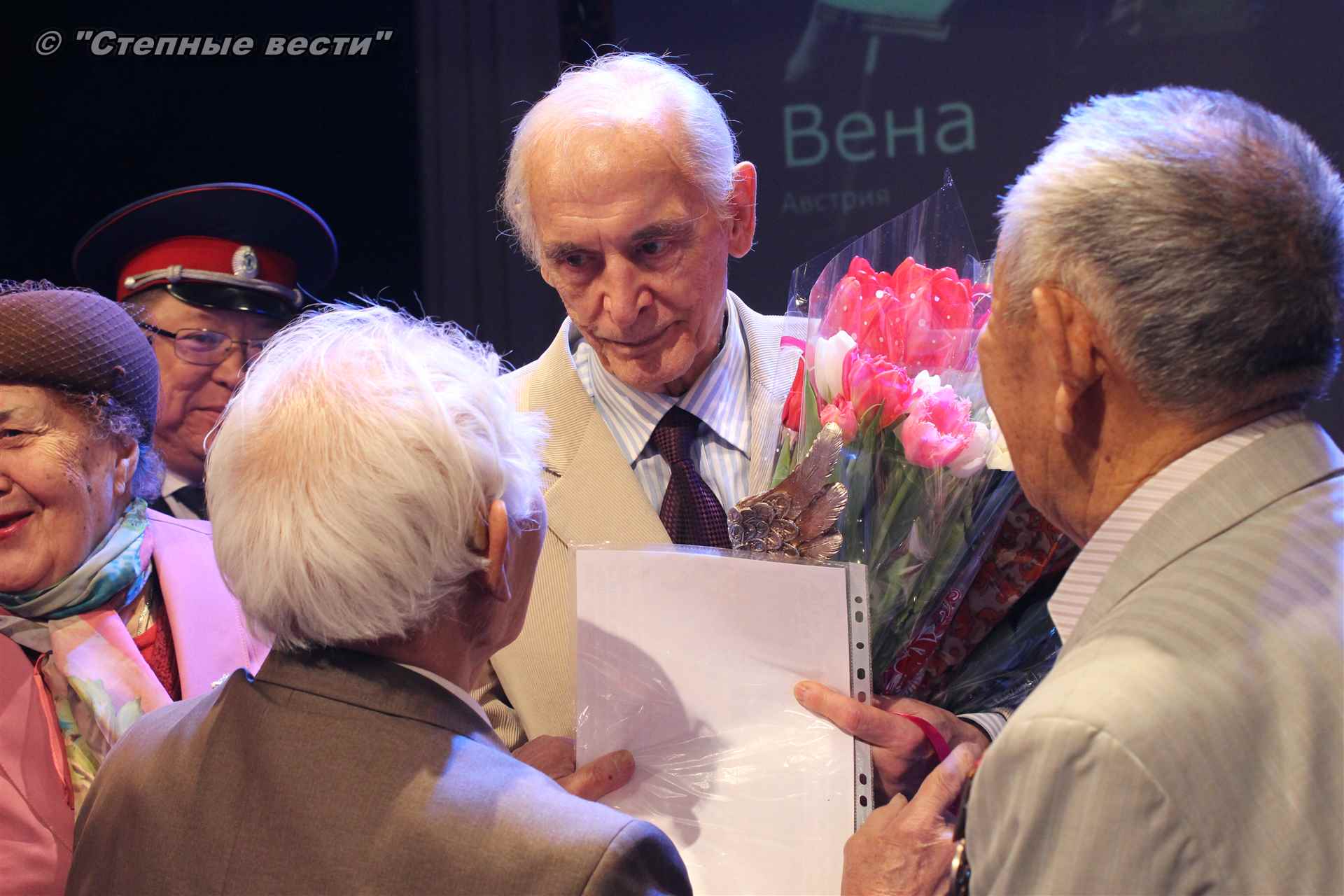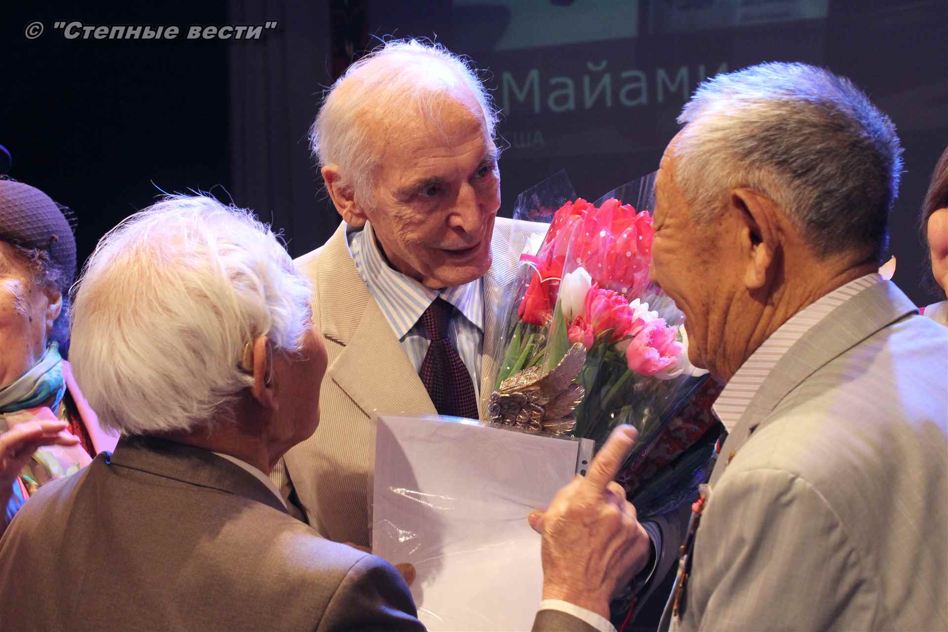 В завершение концерта на сцену поднялся Глава РК Алексей Орлов. Руководитель региона вручил народному артисту СССР  Благодарность Главы РК за неоценимый творческий вклад в сохранение и укрепление традиций патриотизма, исторической памяти о героическом прошлом многонационального народа России и активное участие в культурной жизни Республики Калмыкия.