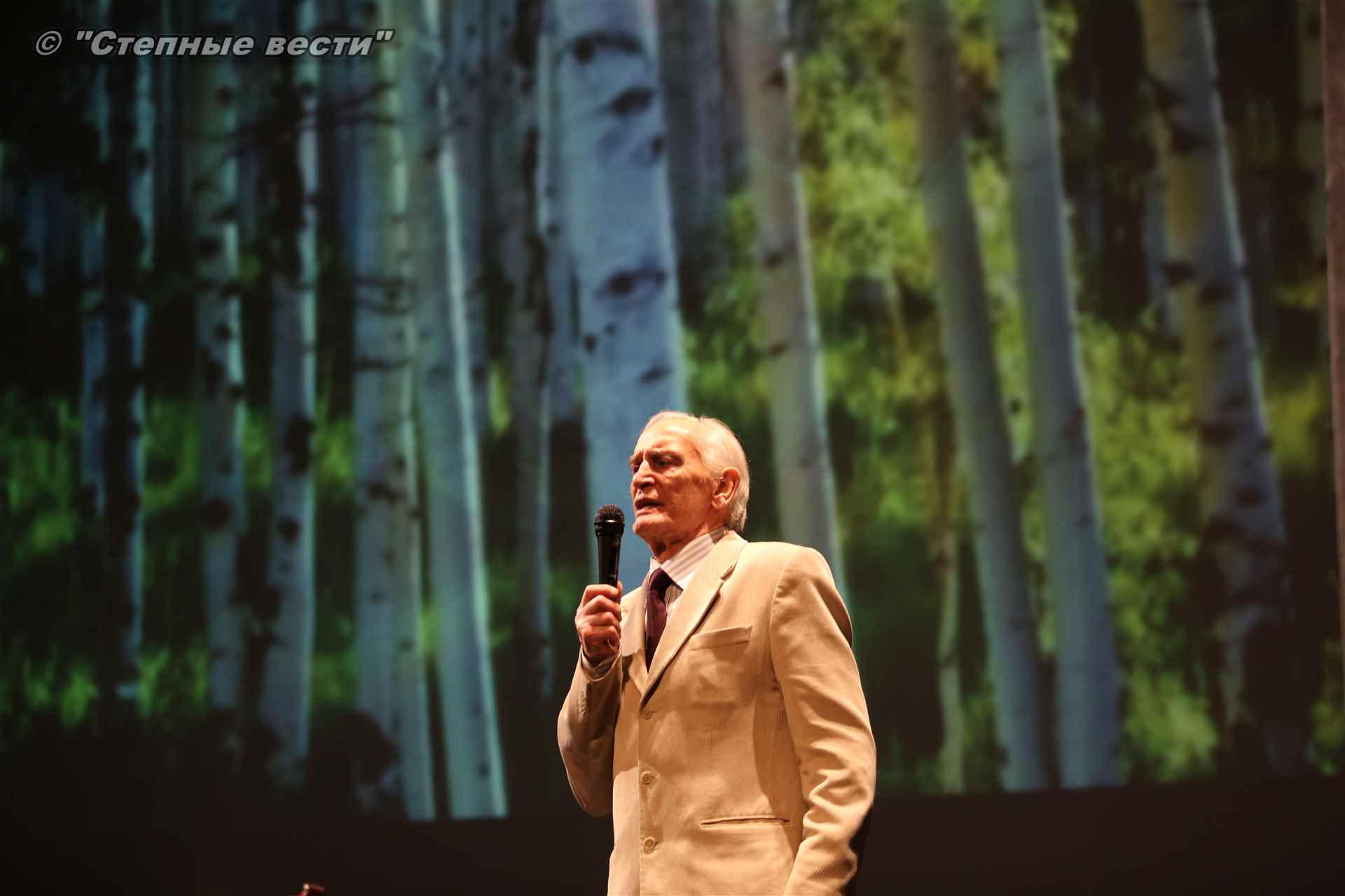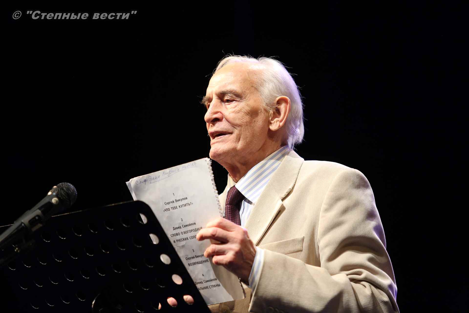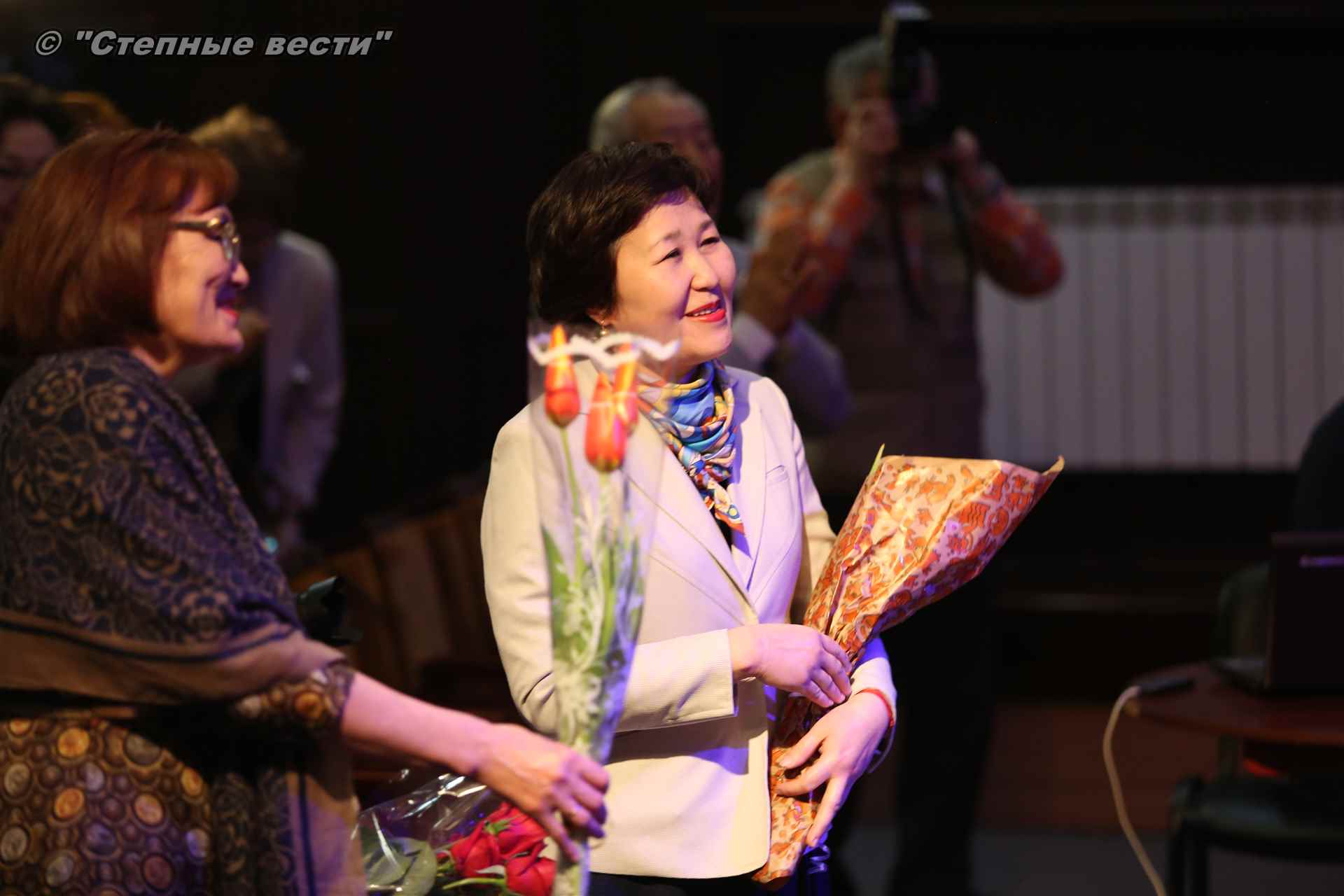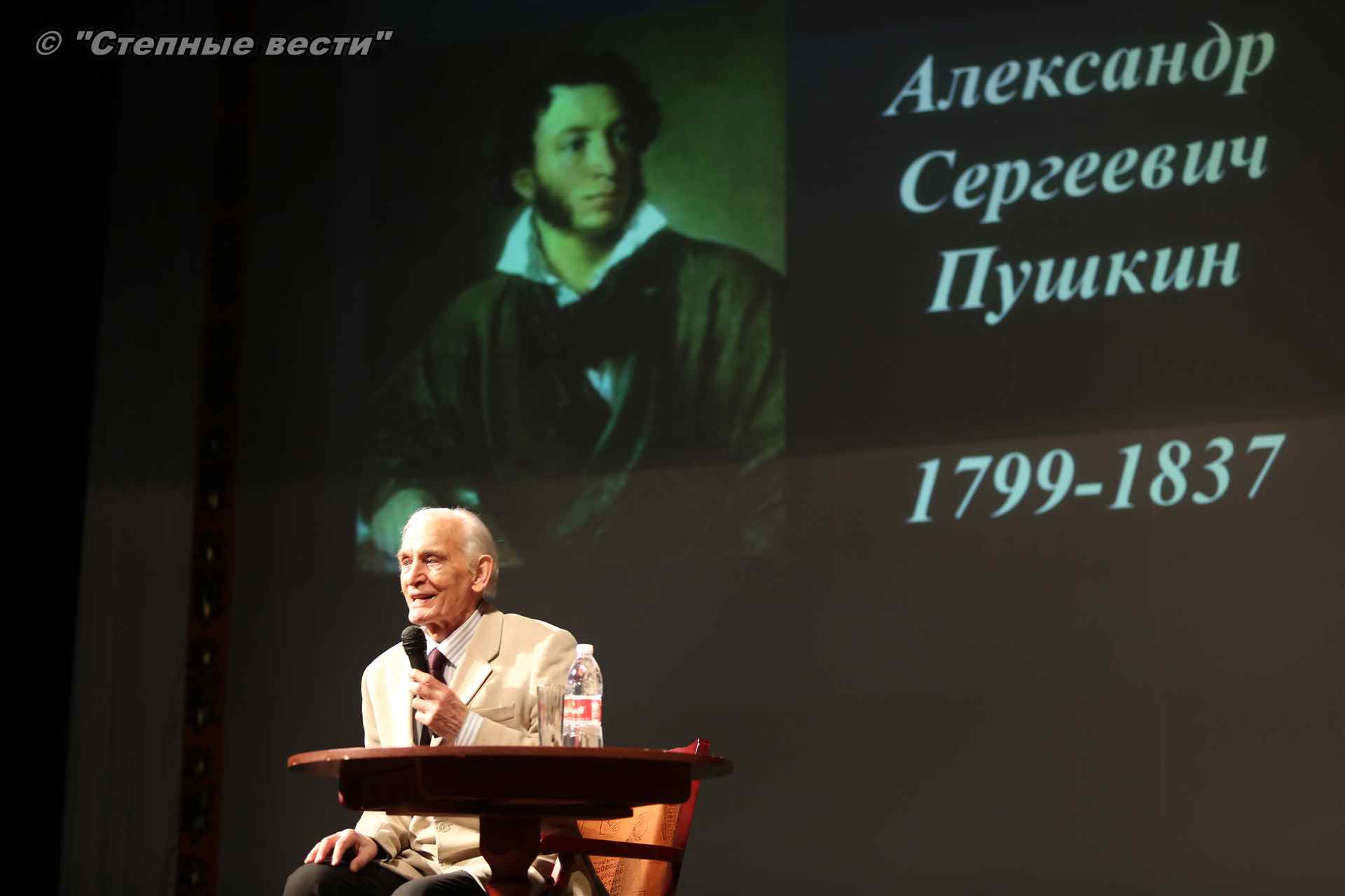 На сцене Национального драмтеатра Василий Семенович прочитал отрывки из классических произведений, в том числе из пушкинского «Путешествия в Арзрум», где речь идет о калмыках, а также стихотворение  «Калмычке».