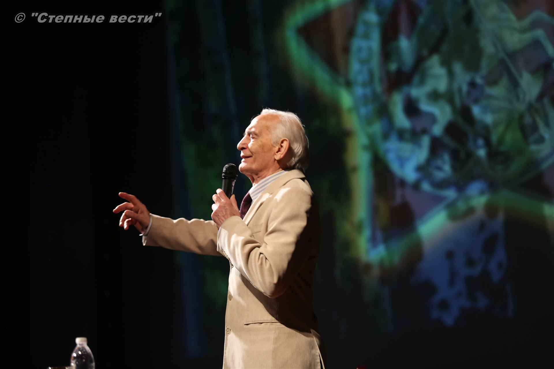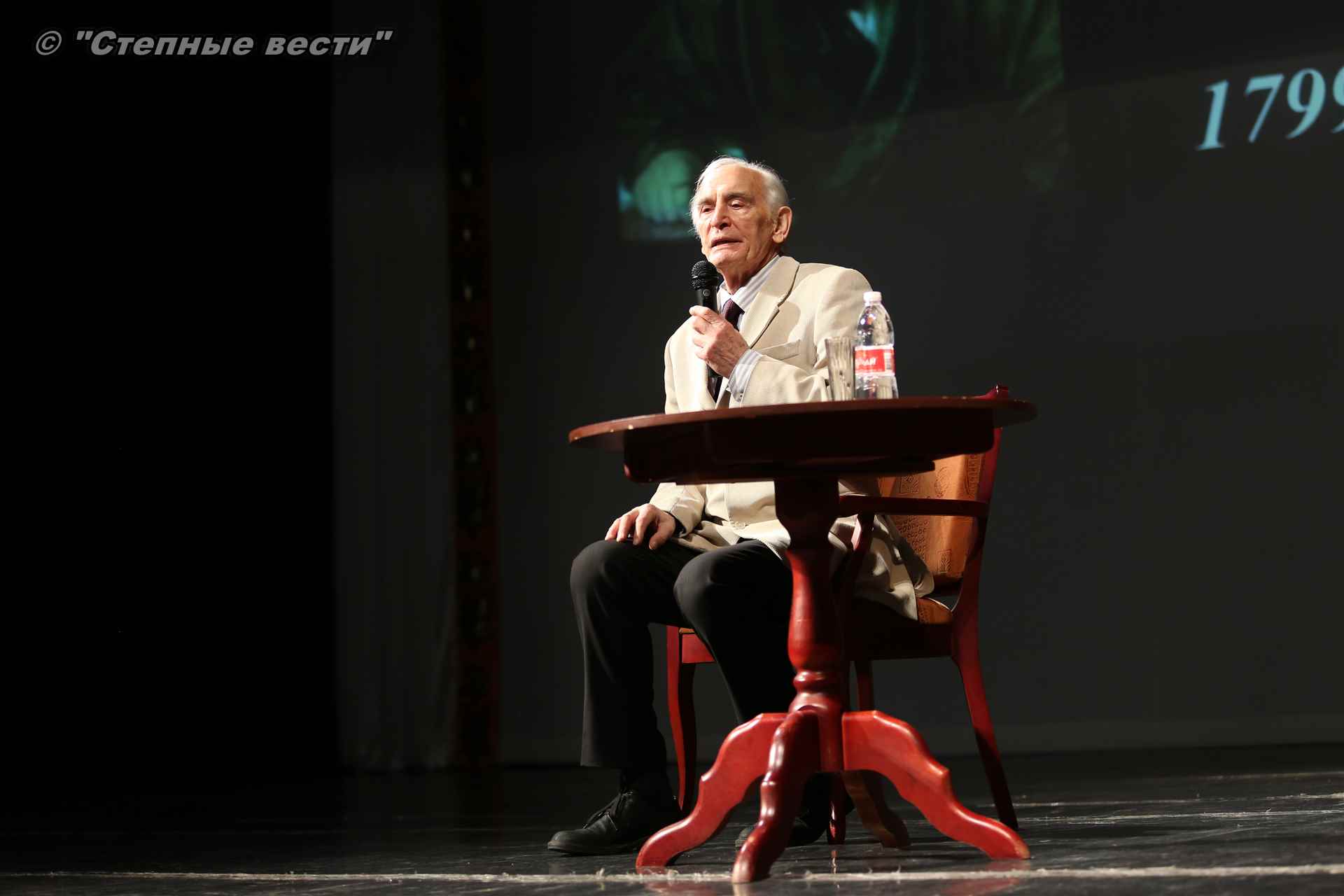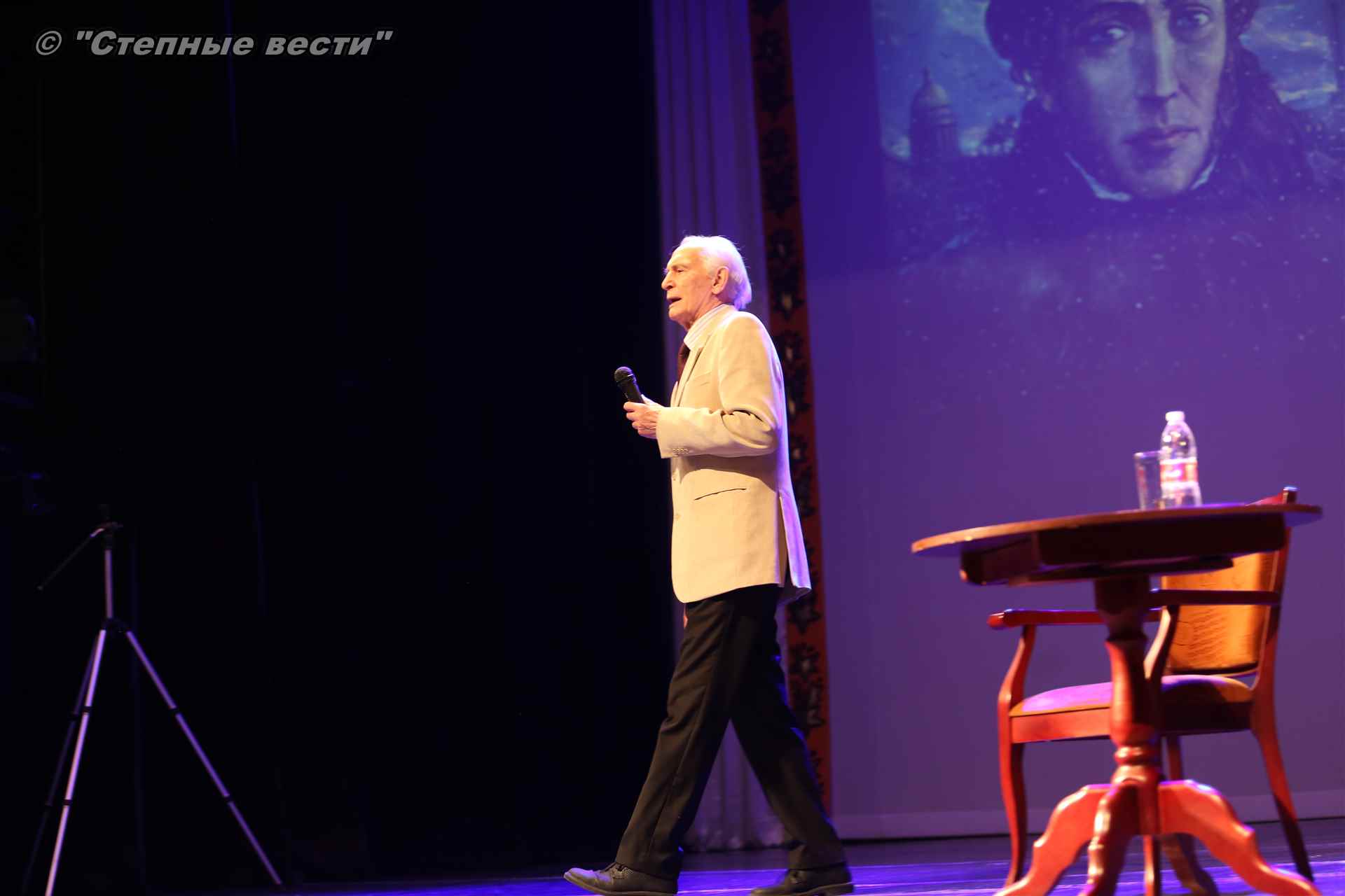На сцене Национального драмтеатра Василий Семенович прочитал отрывки из классических произведений, в том числе из пушкинского «Путешествия в Арзрум», где речь идет о калмыках, а также стихотворение «Калмычке».