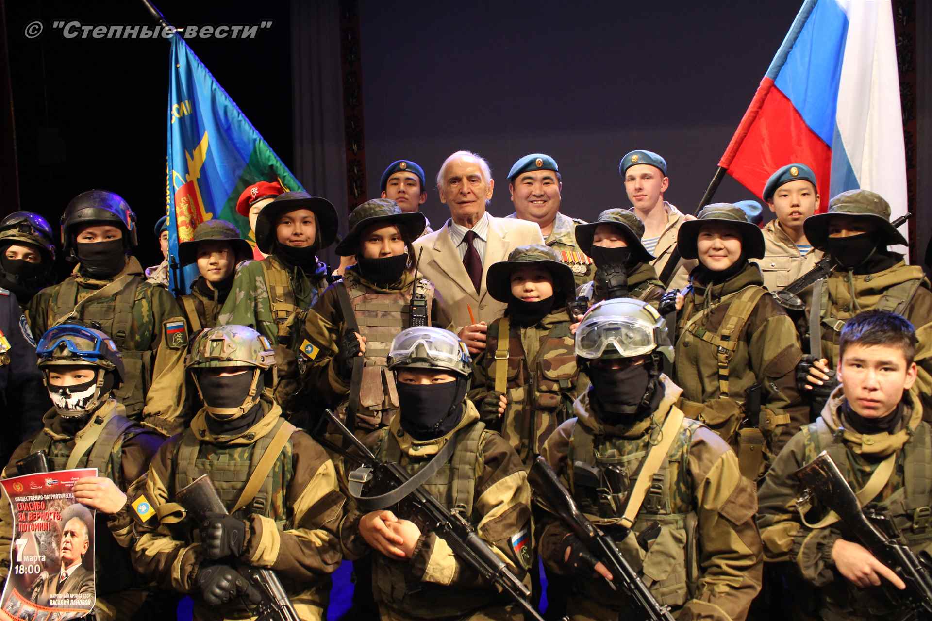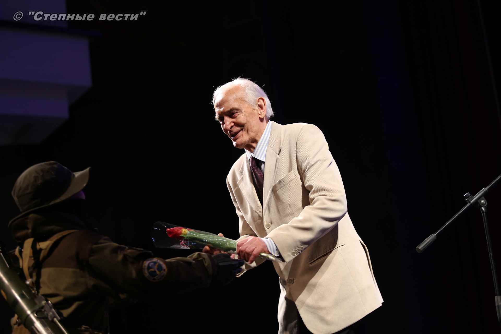Народный артист СССР Василий Лановой сегодня в Элисте, в Национальном драматическом театре им.Б.Басангова, провел концерт в рамках общественно-политической акции «Спасибо за верность, потомки!», которая является культурной составляющей движения «Бессмертный полк». Название программы – это строка из стихотворения поэта Роберта Рождественского.