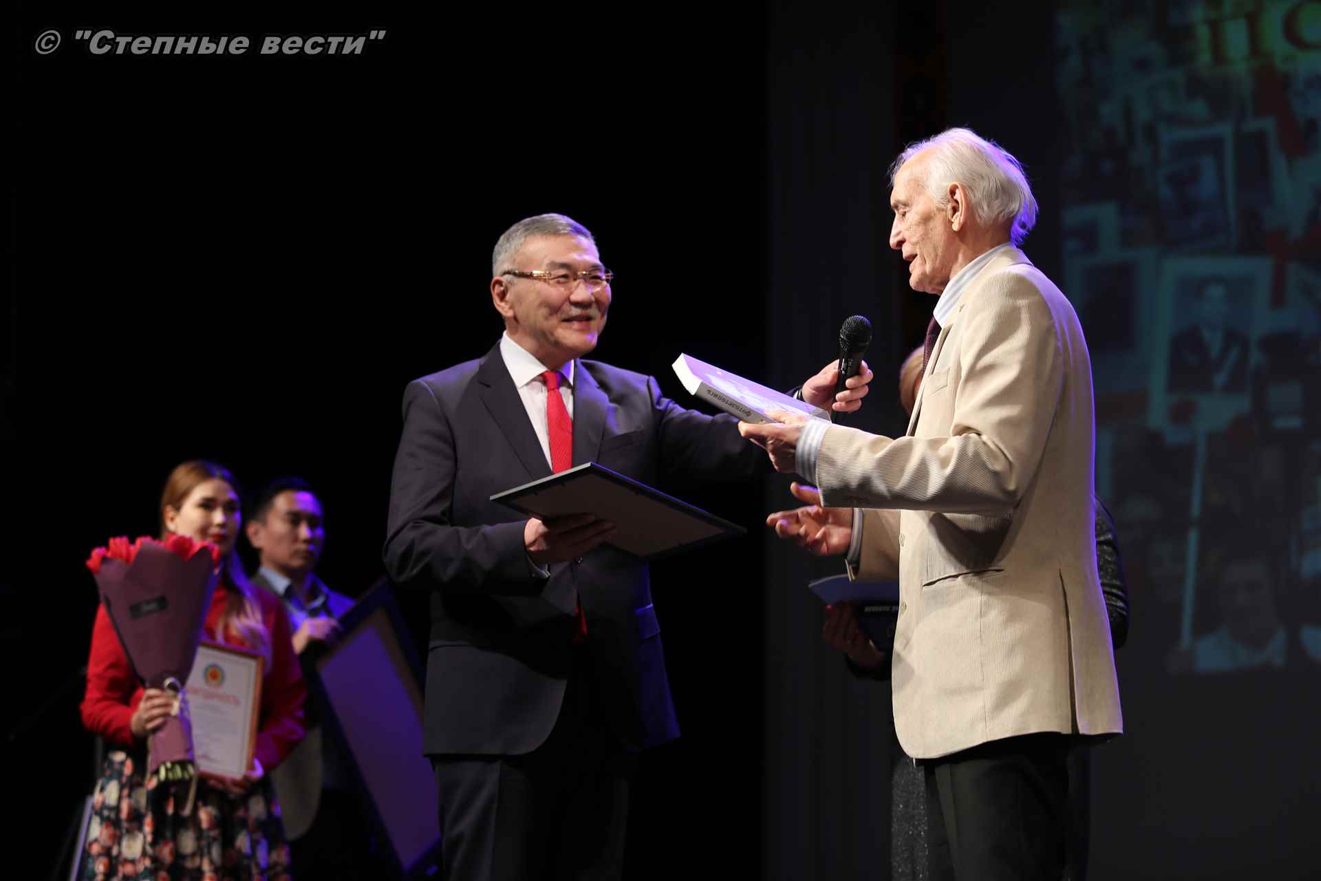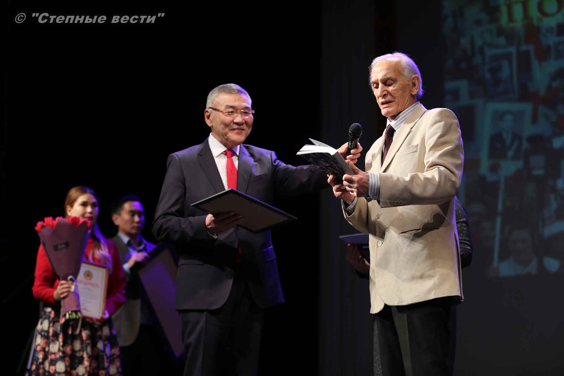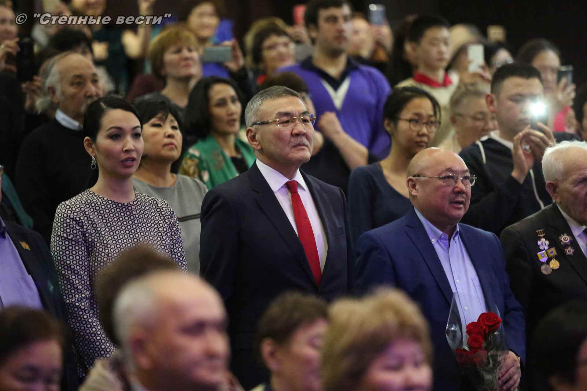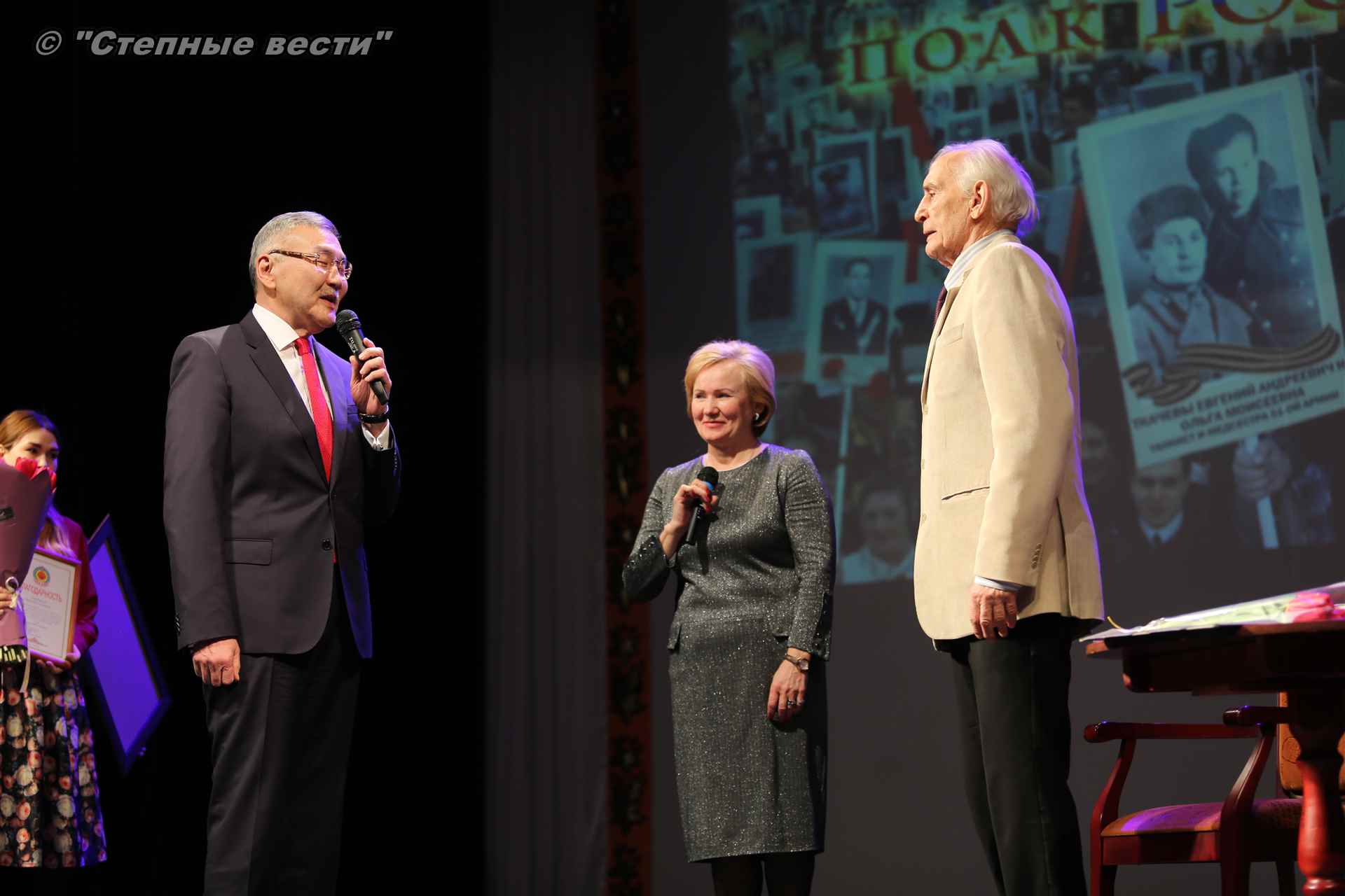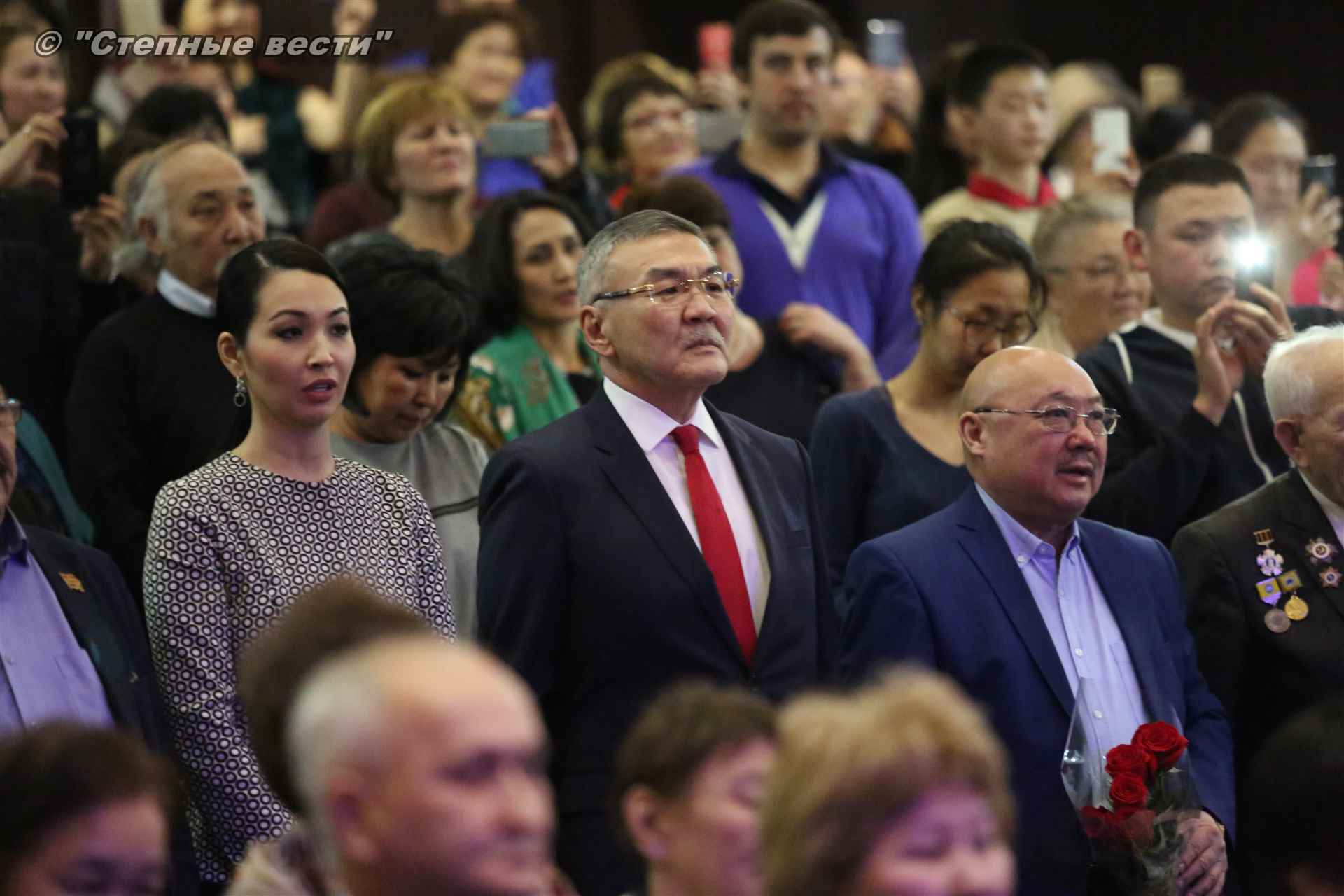В завершение концерта на сцену поднялся Глава РК Алексей Орлов. Руководитель региона вручил народному артисту СССР Благодарность Главы РК за неоценимый творческий вклад в сохранение и укрепление традиций патриотизма, исторической памяти о героическом прошлом многонационального народа России и активное участие в культурной жизни Республики Калмыкия.