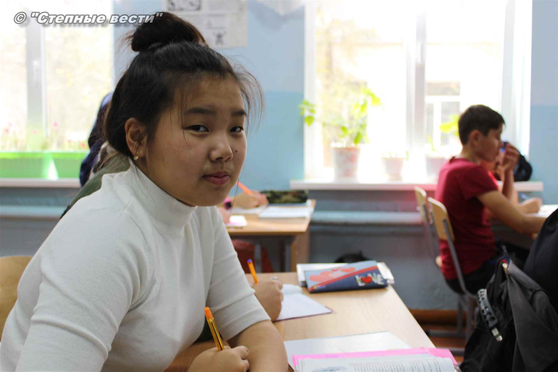 Руководит школой Юлия Павловна Манджиева, учитель русского языка и литературы. В тот день, когда мы побывали в поселке, она находилась на курсах повышения квалификации в Волгограде, и обязанности директора временно исполняла Зарема Керимовна.
