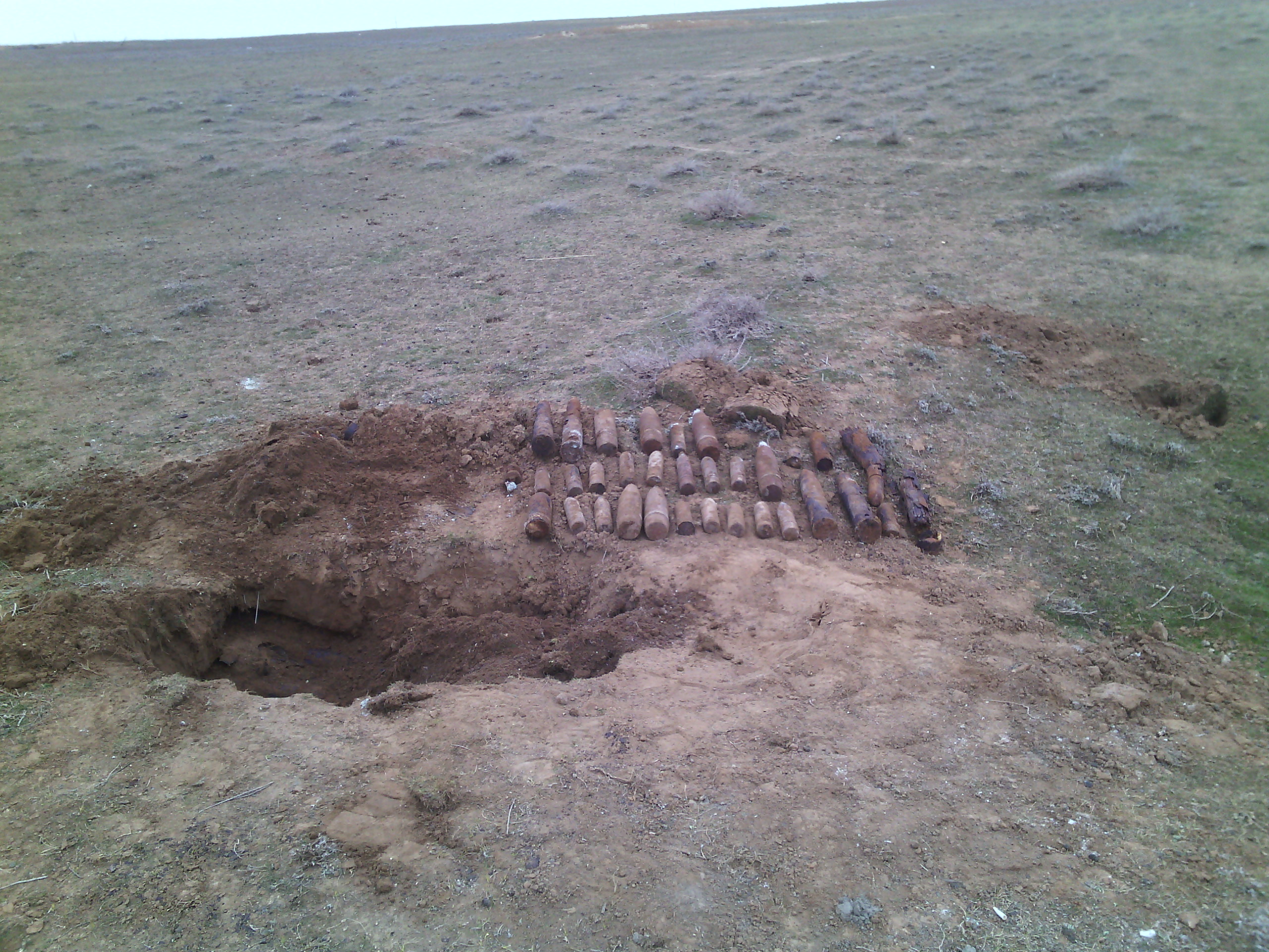 «По прибытии на место сотрудники Управлений ФСБ и Росгвардии России по Республике Калмыкия извлекли из раскопа 35 единиц боеприпасов и установили, что под землей находятся еще более 100 артиллерийских снарядов различного калибра. В связи с тем, что боеприпасы имеют значительную мощность и расположены вблизи населенного пункта, их уничтожение на месте признано невозможным.