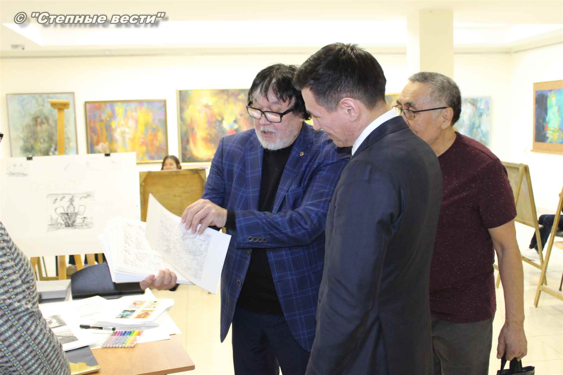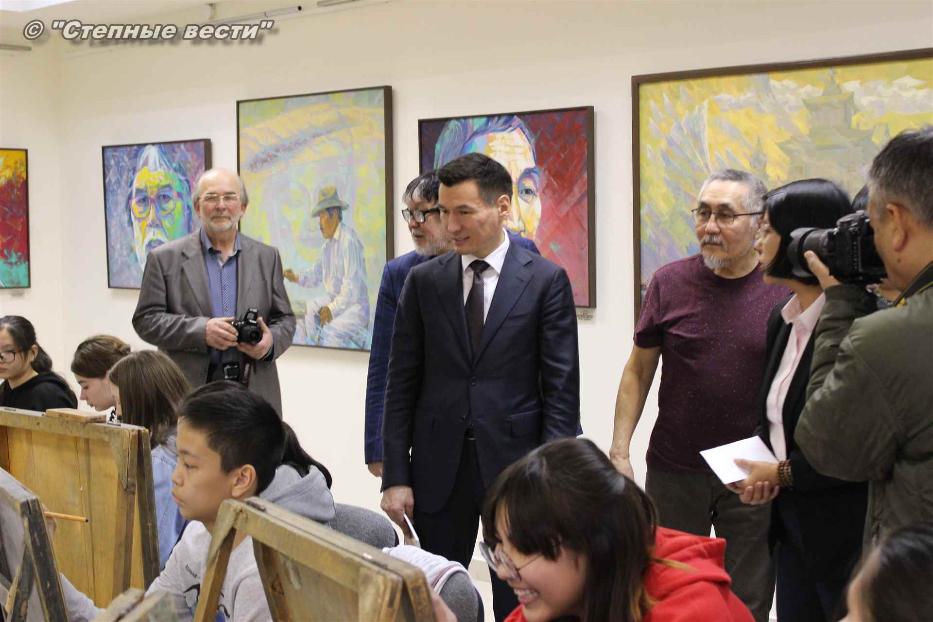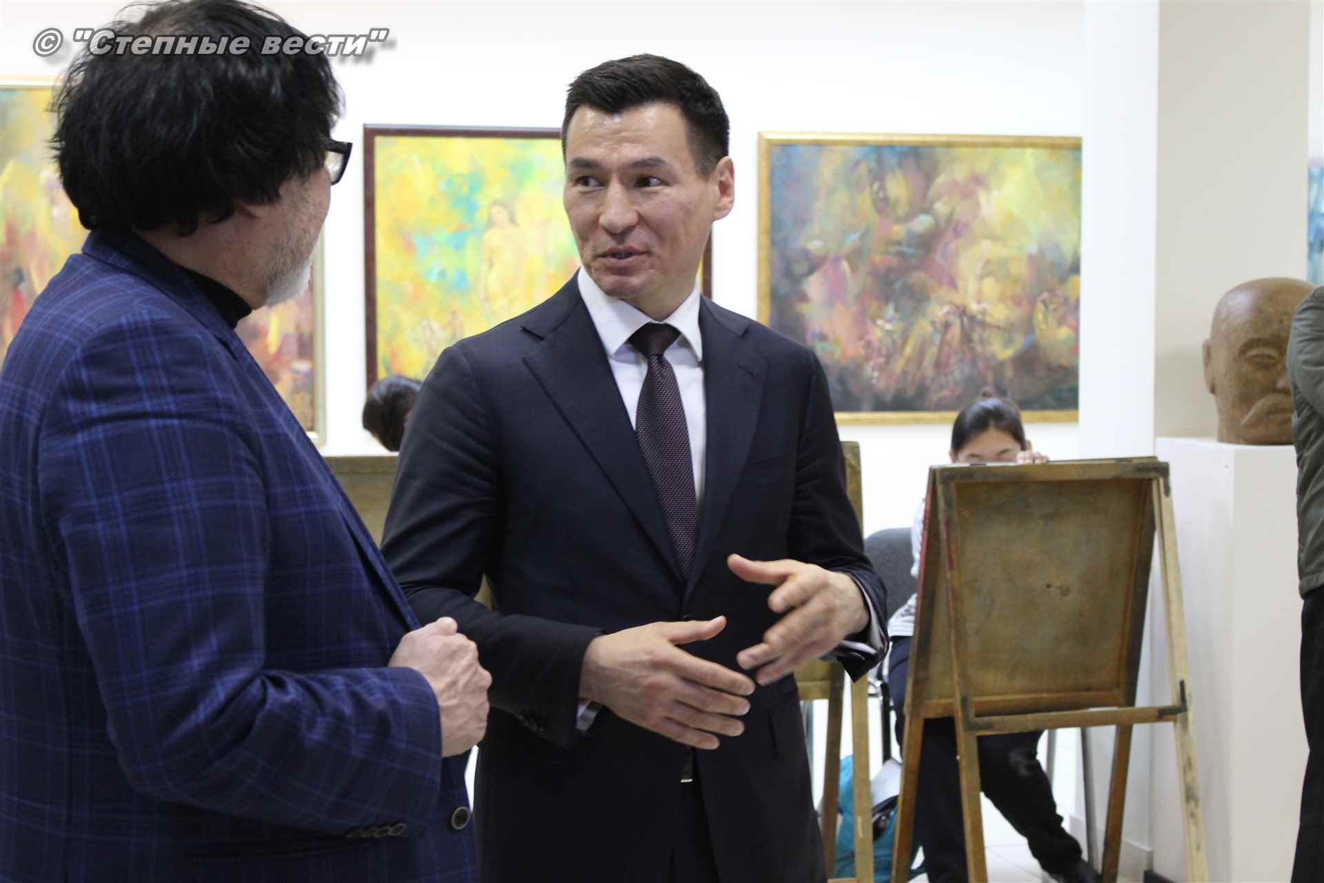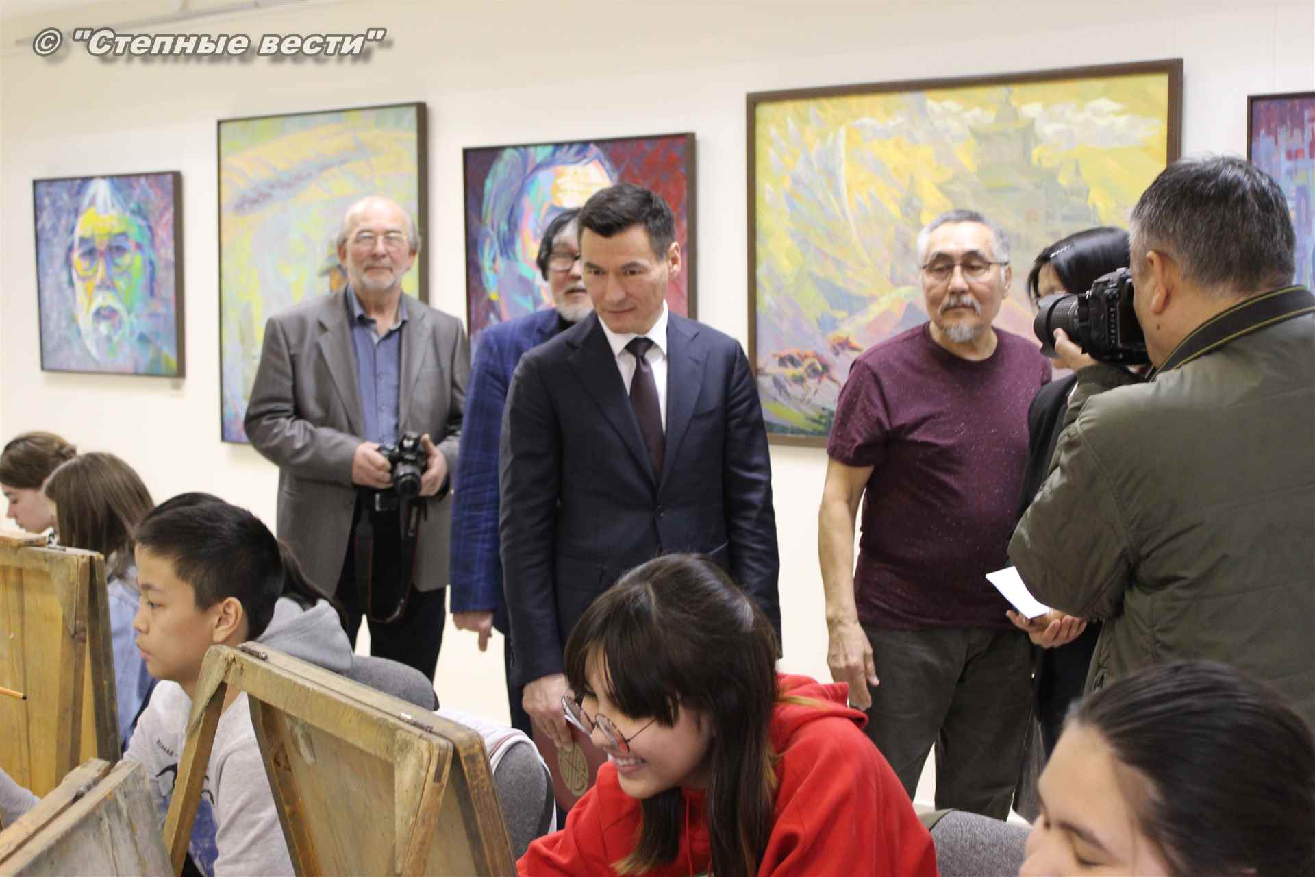 Бату Хасиков побеседовал с Дмитрием Санджиевым и юными художниками. Врио главы региона сообщил подросткам, что в детстве учился в художественной школе. Вырос в Лагани; ребята играли на улице, я шел в художественную школу, и когда садился к мольберту, погружался в мир творчества, рассказал Бату Сергеевич.