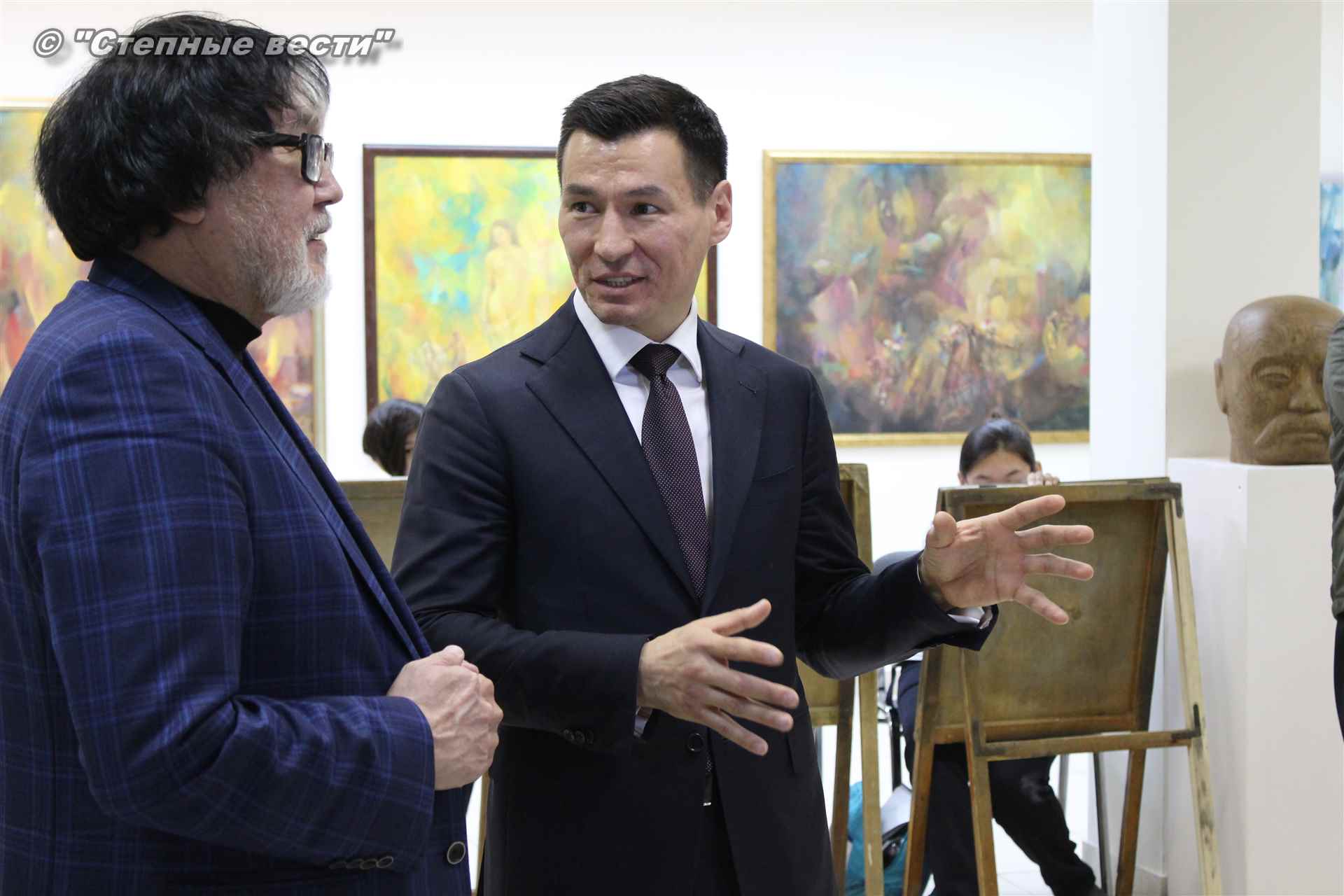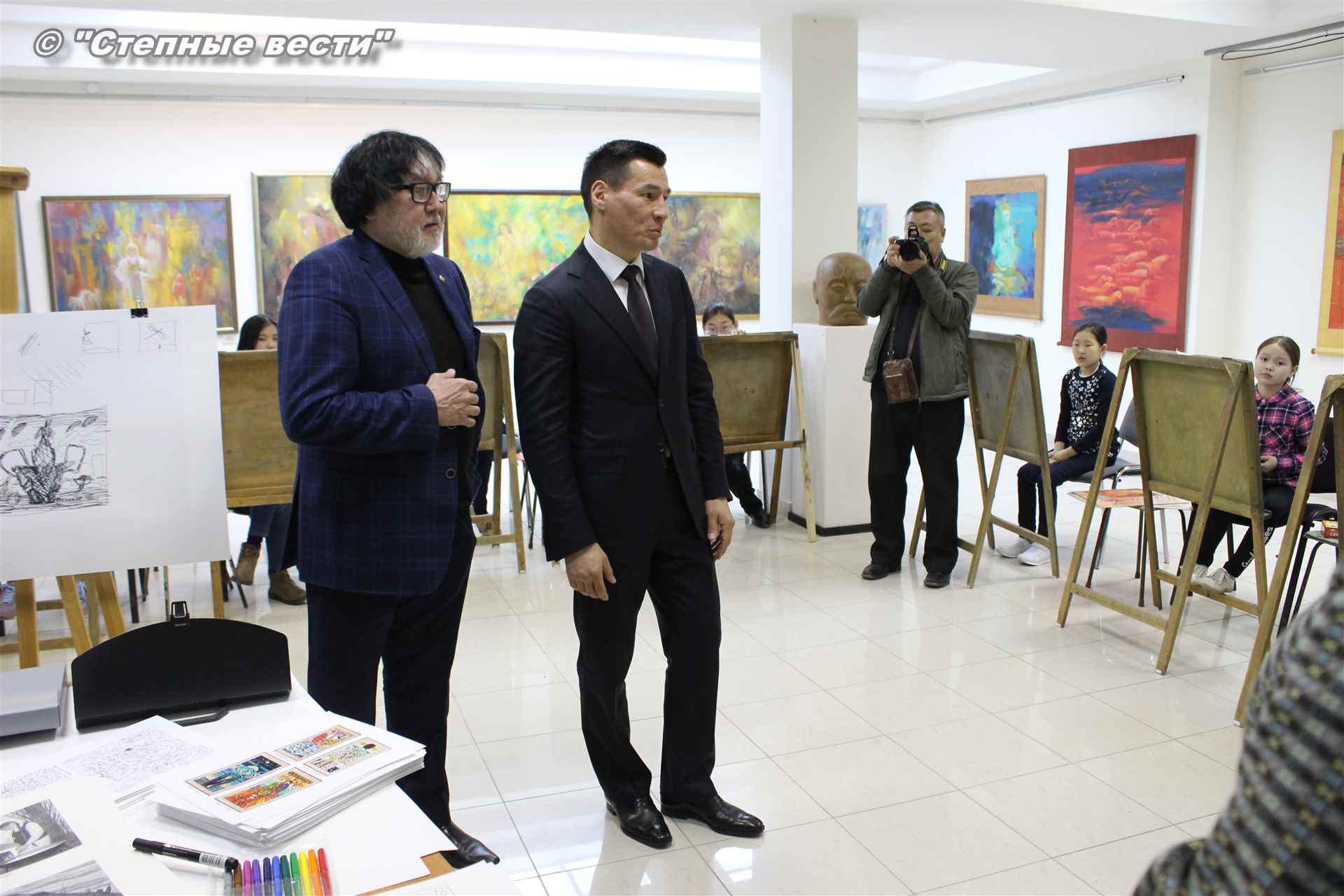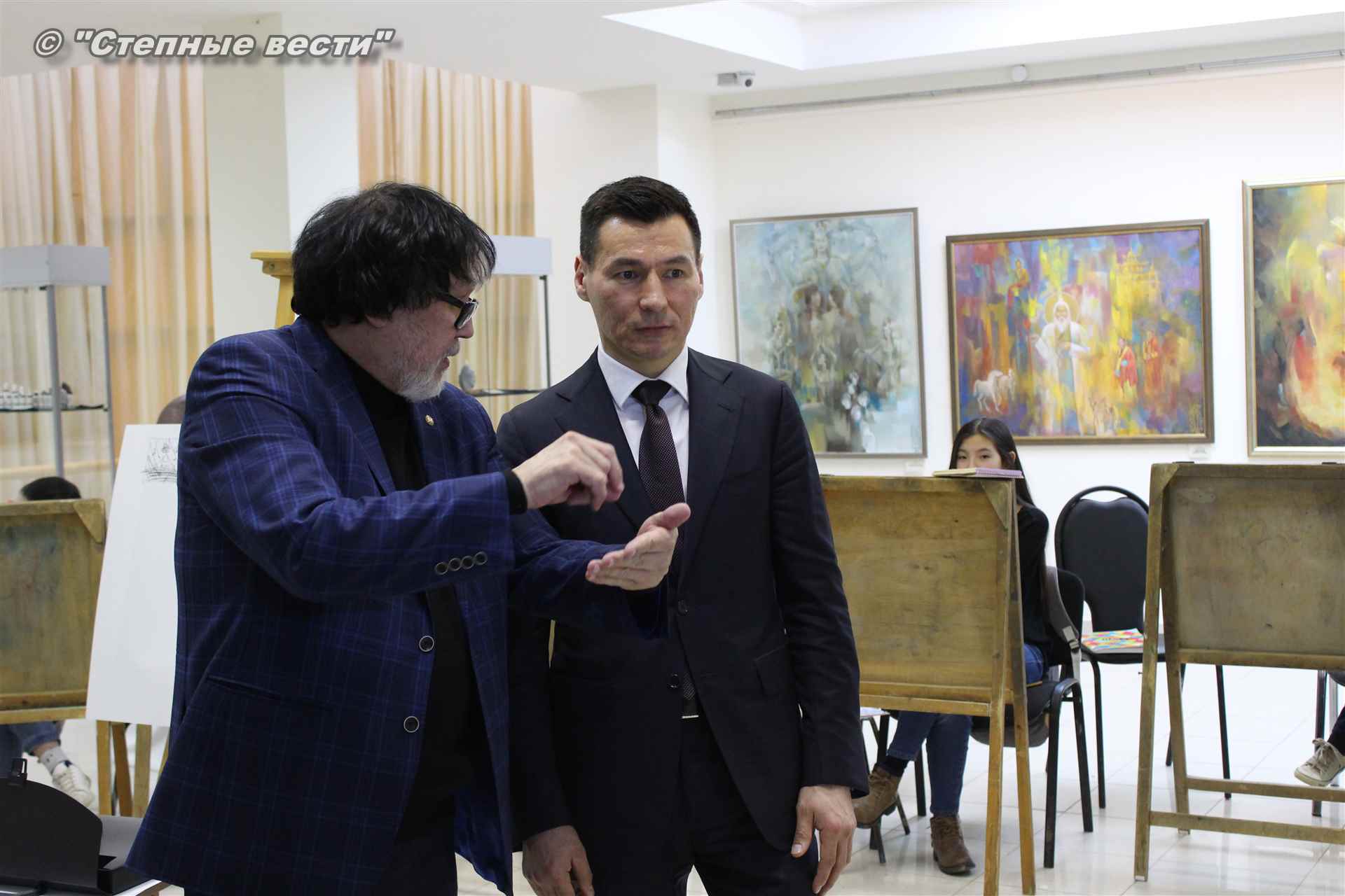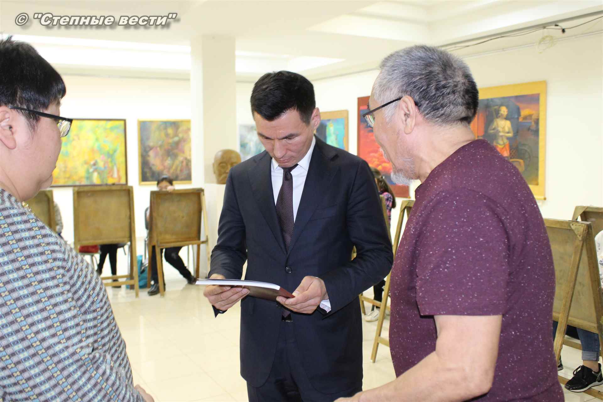 Бату Хасиков побеседовал с Дмитрием Санджиевым и юными художниками. Врио главы региона сообщил подросткам, что в детстве учился в художественной школе. Вырос в Лагани; ребята играли на улице, я шел в художественную школу, и когда садился к мольберту, погружался в мир творчества, рассказал Бату Сергеевич.