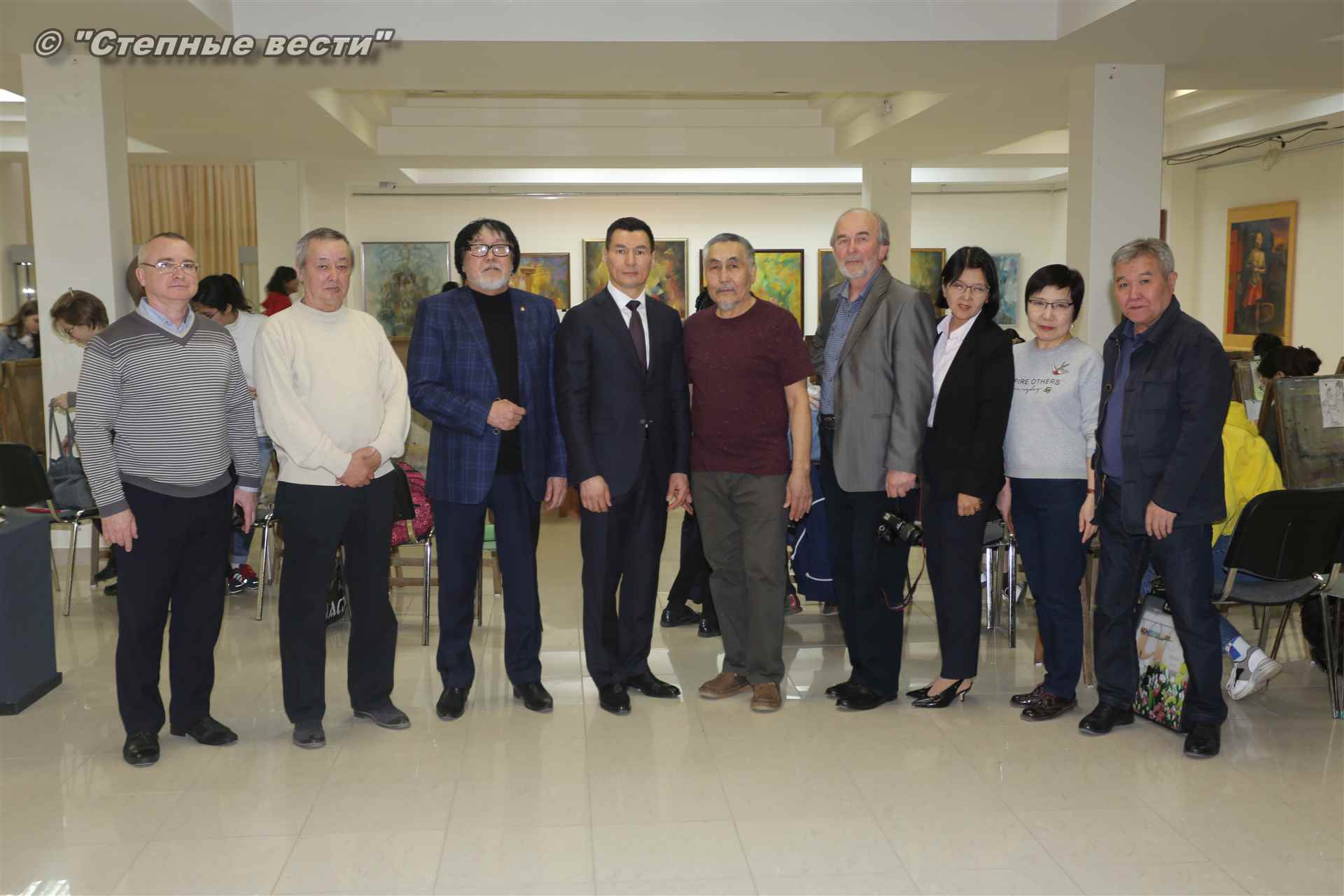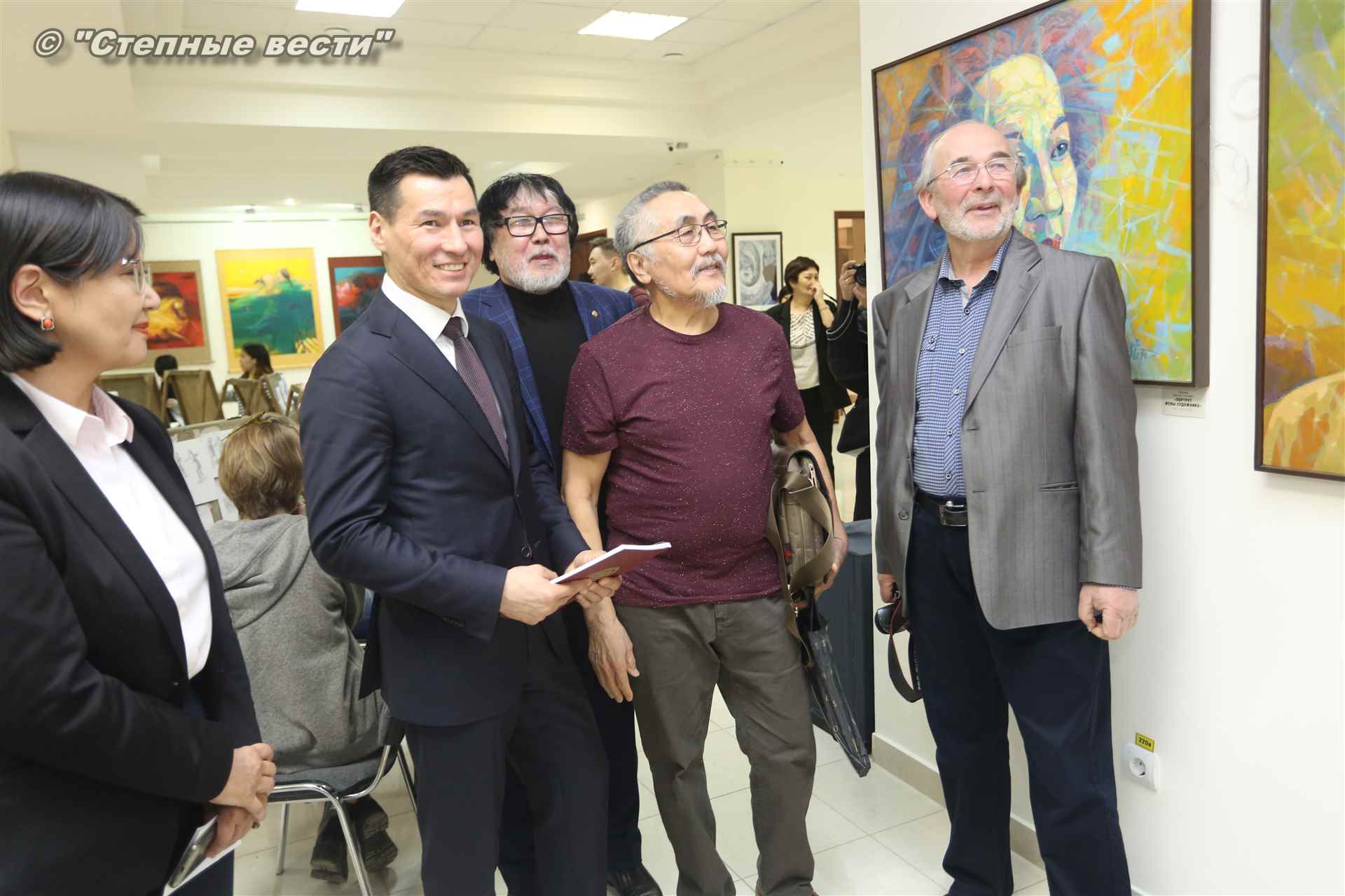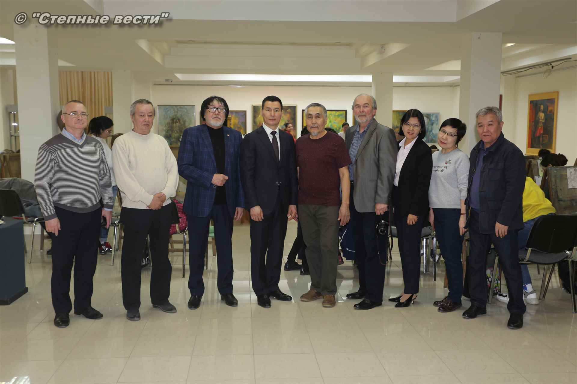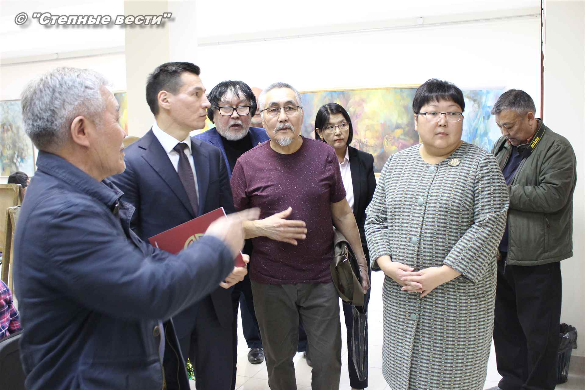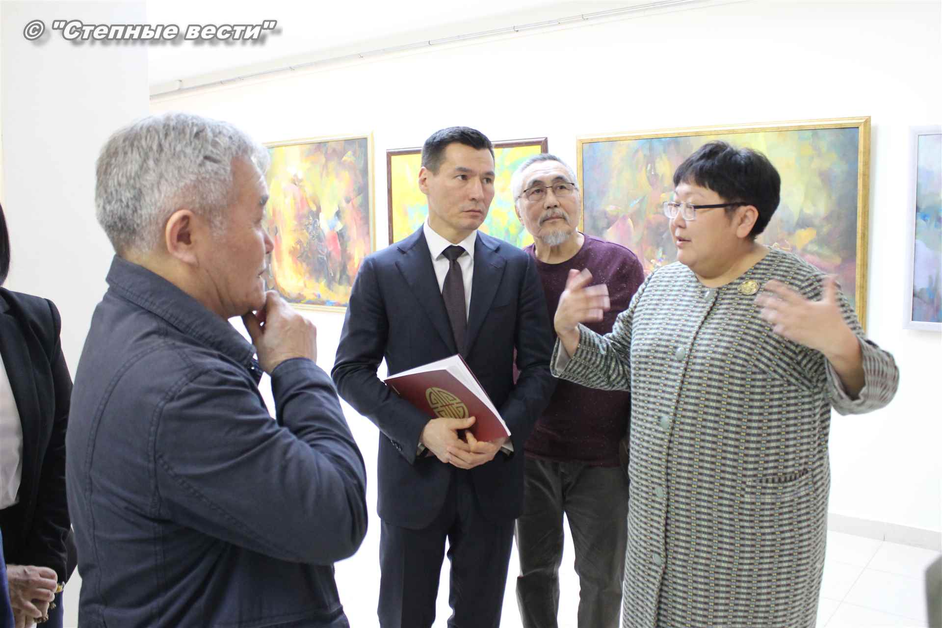 Далее  в сопровождении министра культуры и туризма РК Хонгора Эльбикова, директора музея Ирины Мучаевой и мастеров изобразительного искусства Бату Хасиков ознакомился с выставкой калмыцких художников творческой группы «Кочевники».