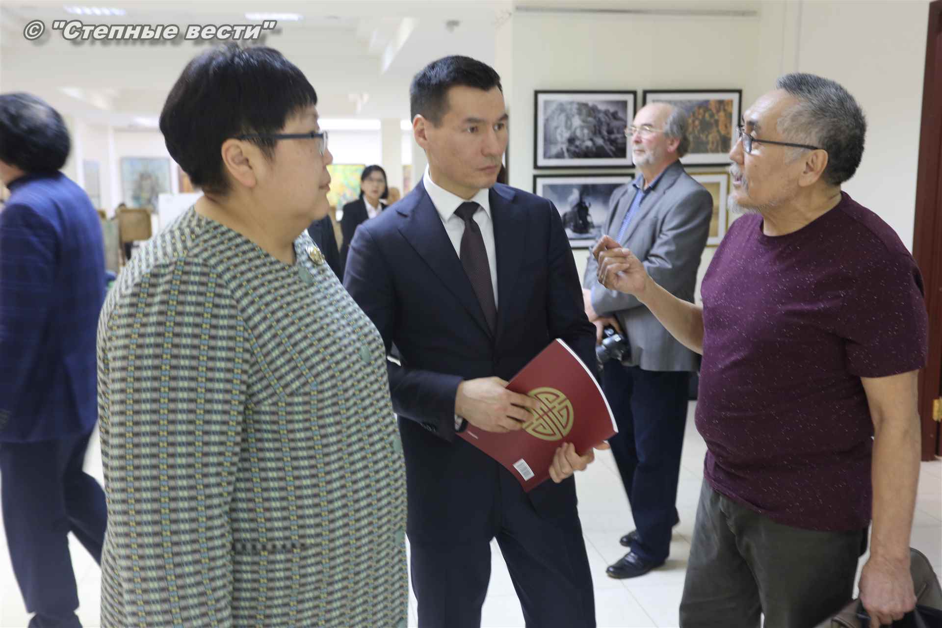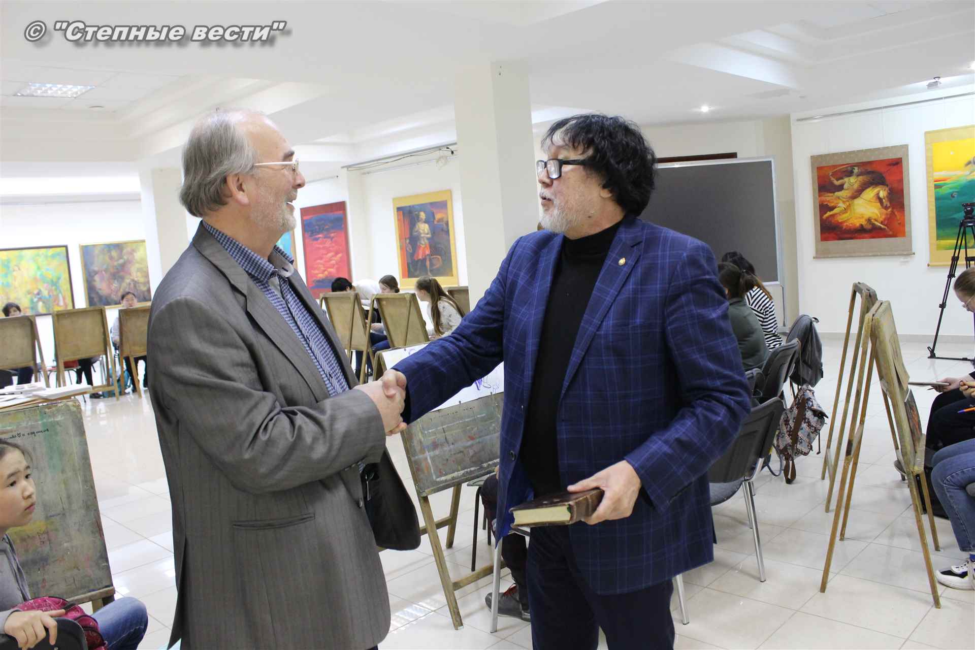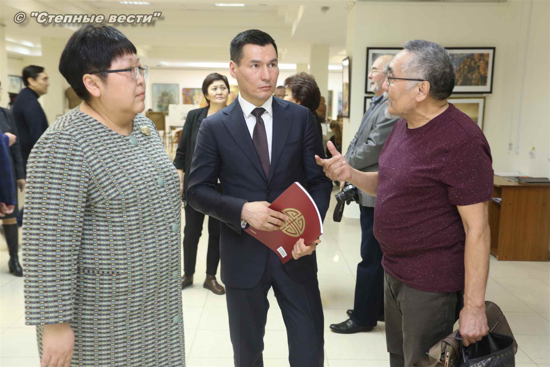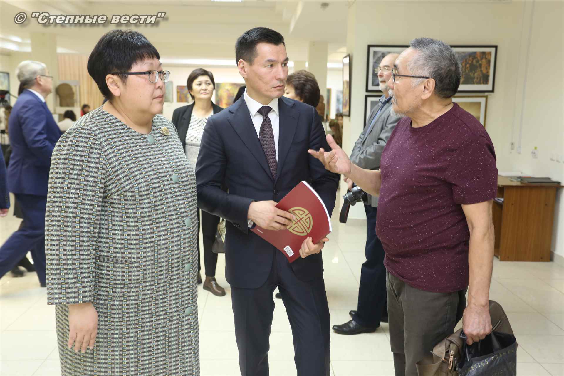 Во время мероприятия Бату Хасиков пообщался также с известным художником Николаем Шиняевым, который подарил гостю музея альбом группы «Кочевники», специально подготовленный к открытию выставки.