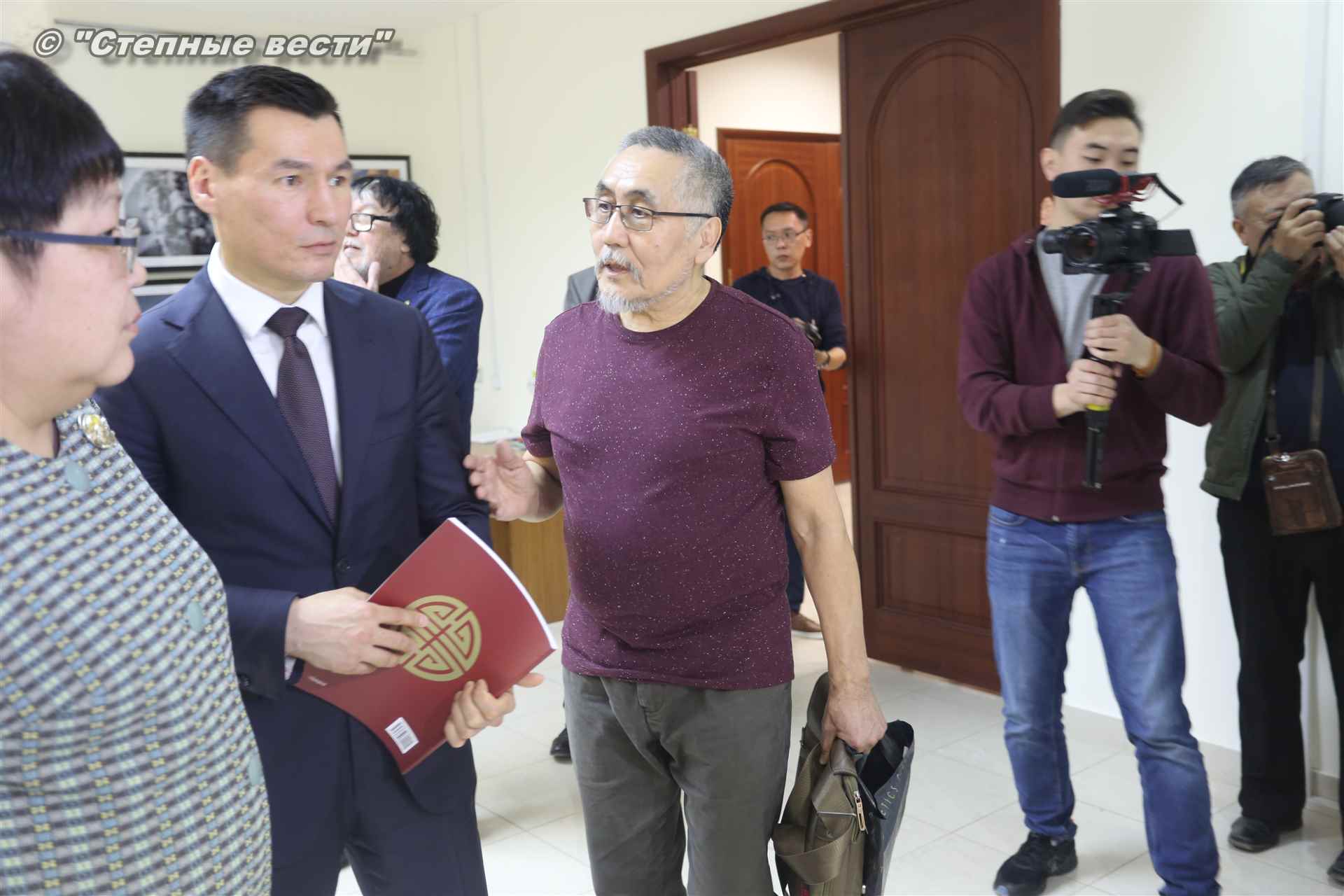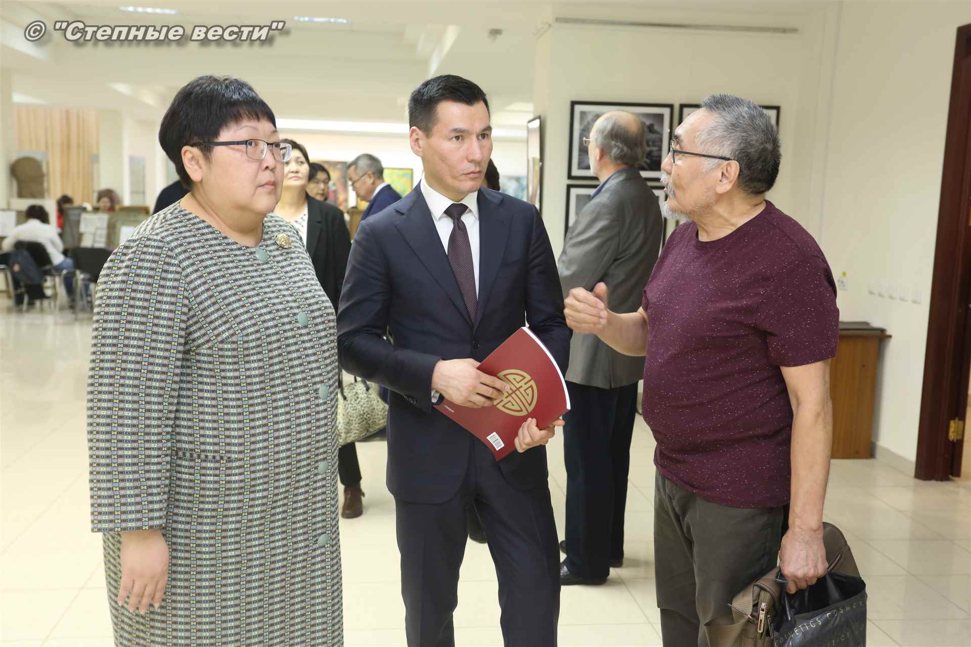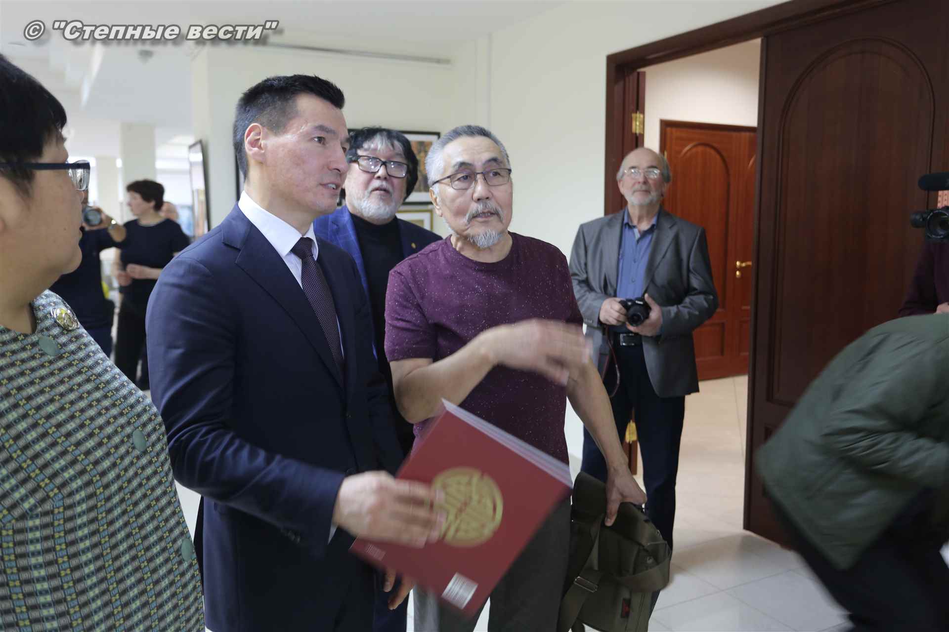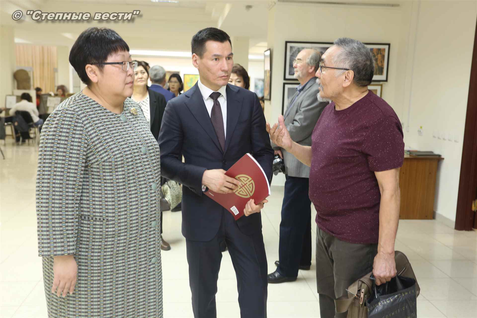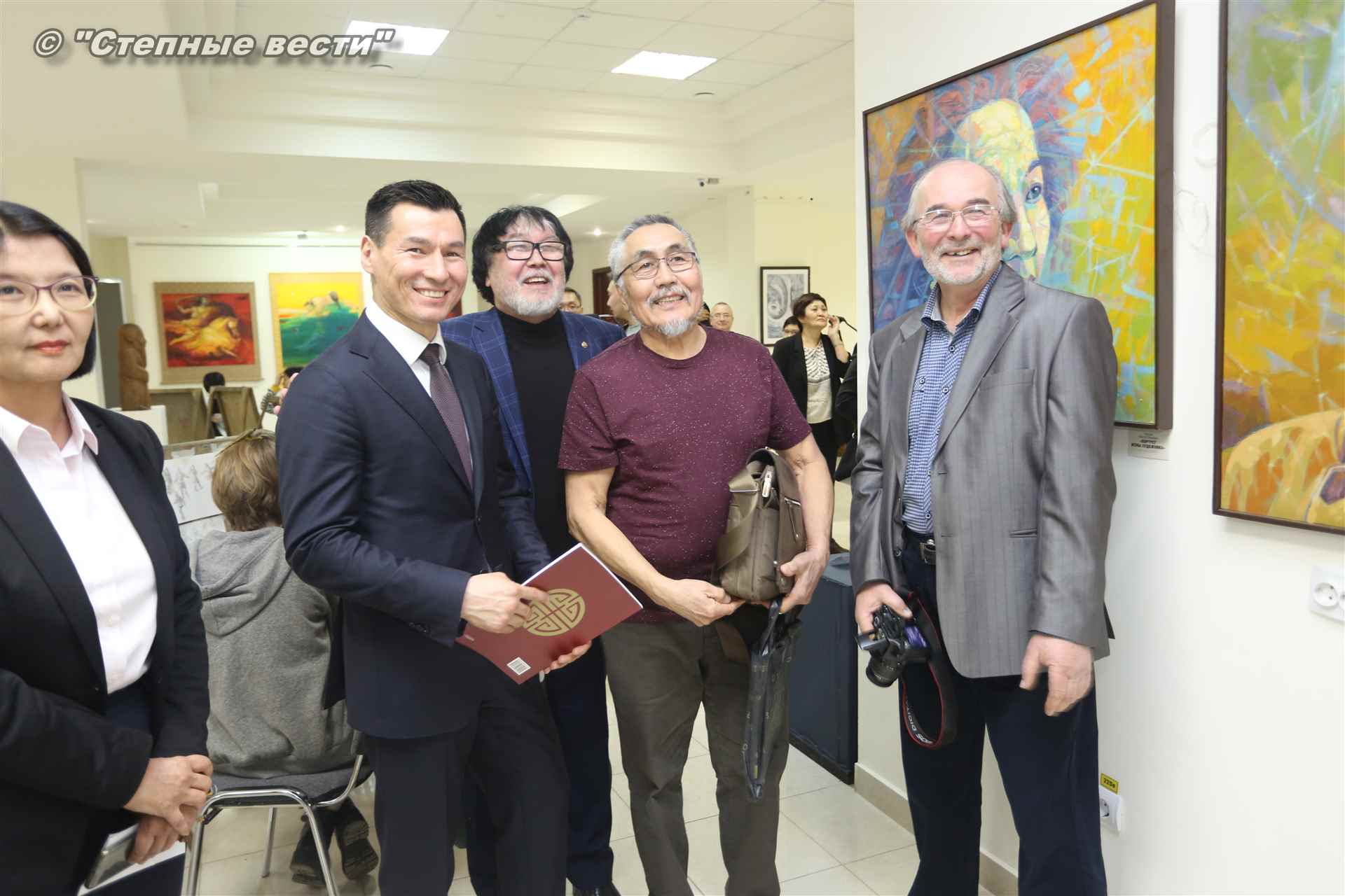 Во время мероприятия Бату Хасиков пообщался также с известным художником Николаем Шиняевым, который подарил гостю музея альбом группы «Кочевники», специально подготовленный к открытию выставки.