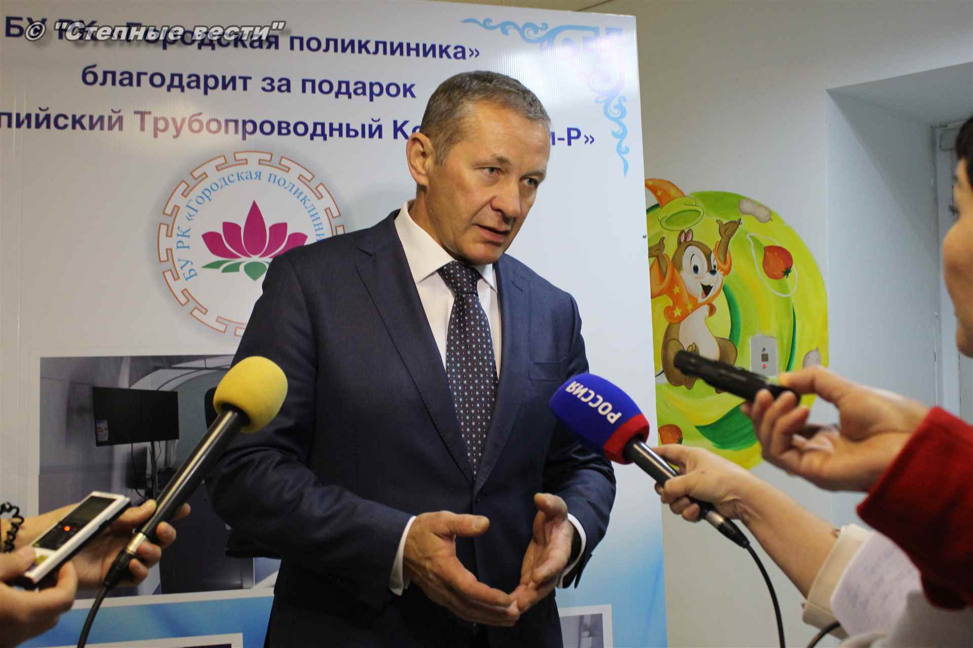Торжественная церемония передачи современного медицинского комплекса одному из крупнейших учреждений здравоохранения республики состоялась сегодня с участием врио Главы Калмыкии Бату Хасикова и заместителя генерального директора АО «Каспийский Трубопроводный Консорциум-Р» по связям с Правительством РФ Михаила Гришанкова. В мероприятии приняли участие также министр здравоохранения РК Юрий Кикенов, представитель АО «КТК-Р» по связям с Правительством РК Улюмджи Чиджиев, главный врач БУ РК «Городская поликлиника» Гиляш Галзанова, главный врач БУ РК «Республиканский детский медицинский центр имени В.Д. Манджиевой» Руслан Каюков, работники медицинских учреждений республики.