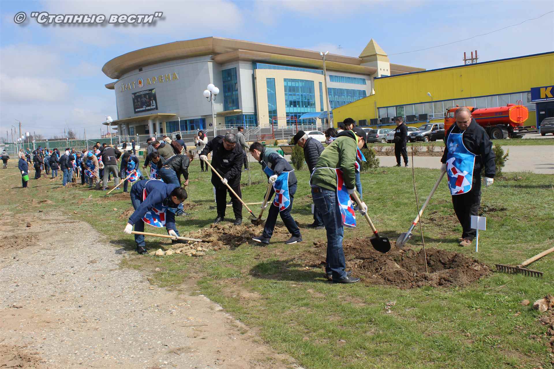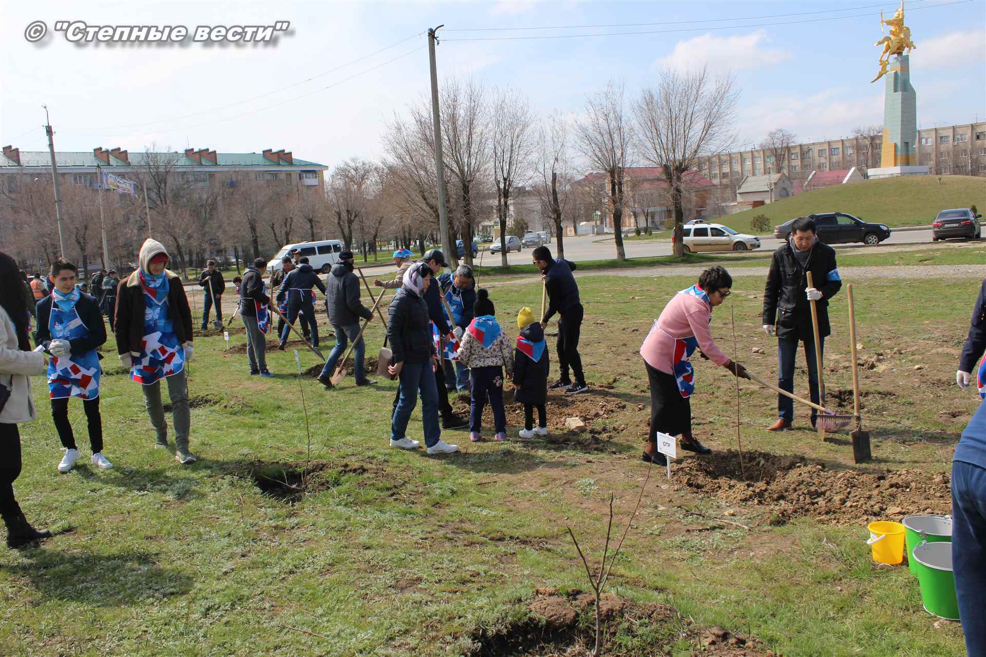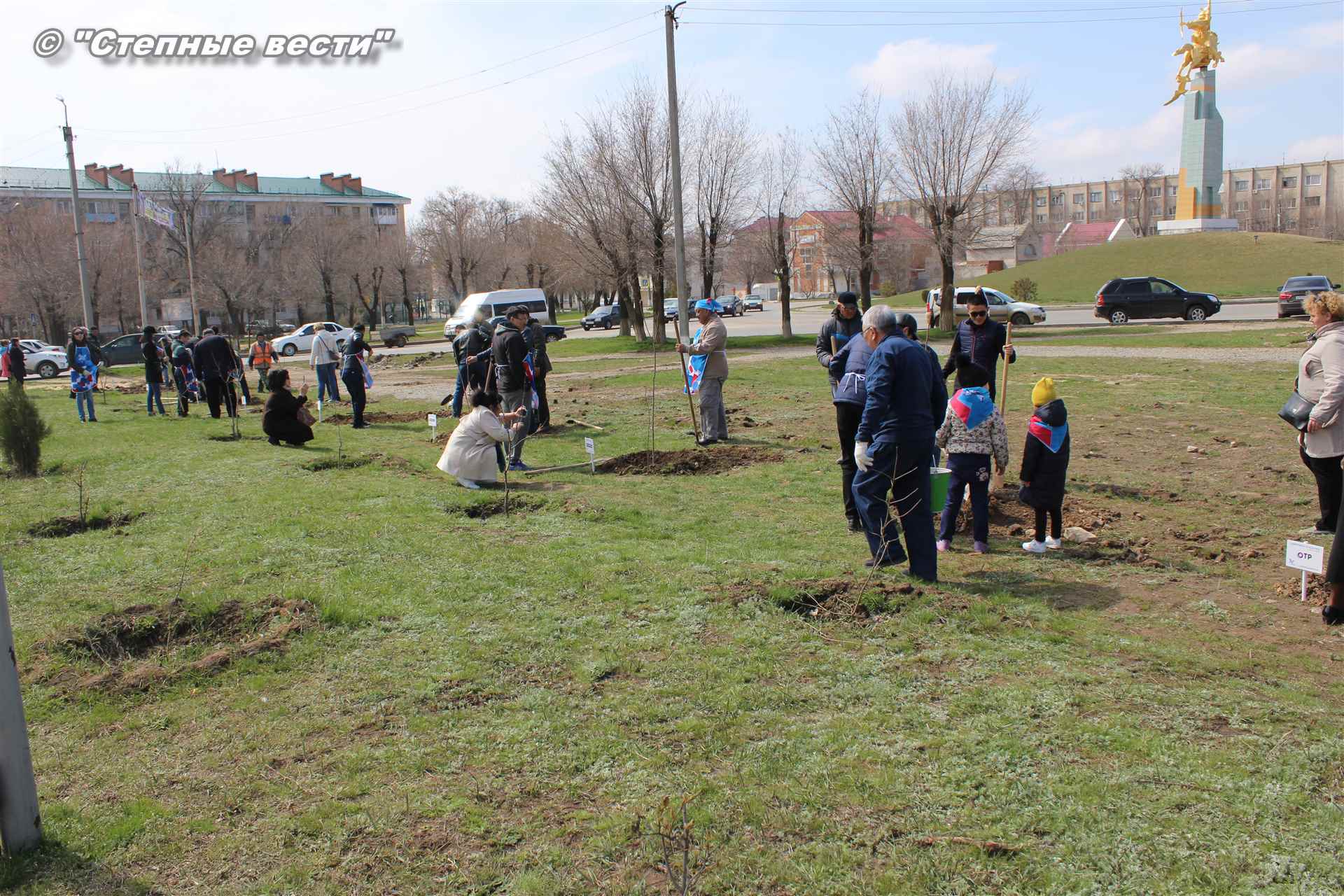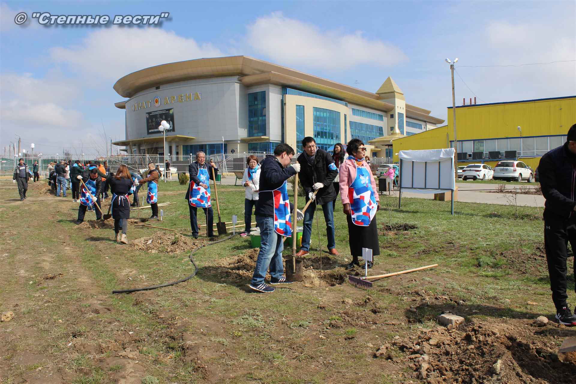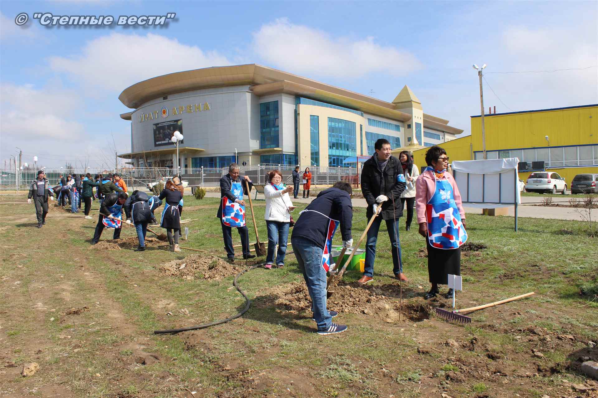 Вместе с остальными почетными гостями, сотрудниками министерства, волонтерами Аркадий Манджиев поучаствовал в озеленении Элисты.