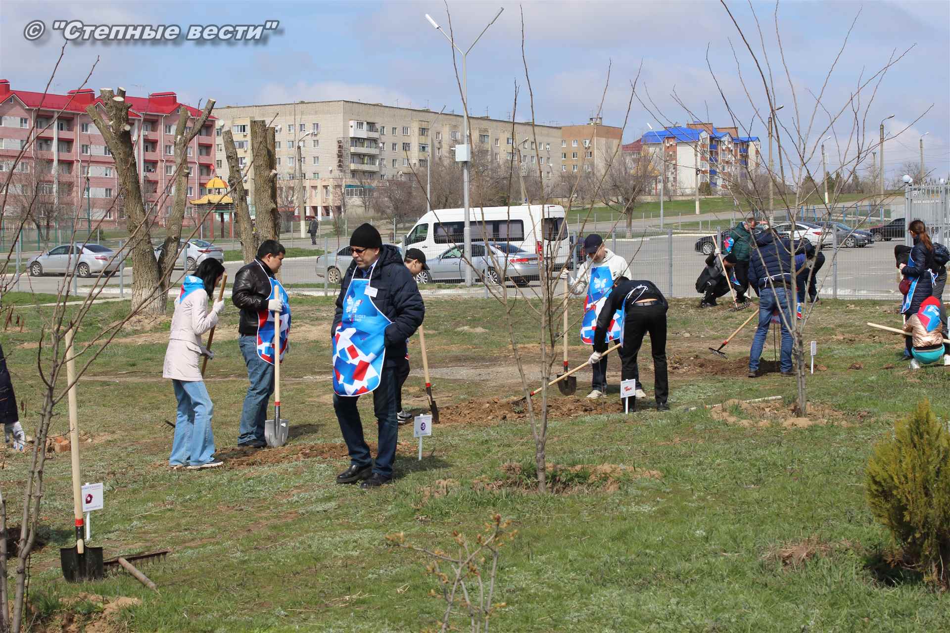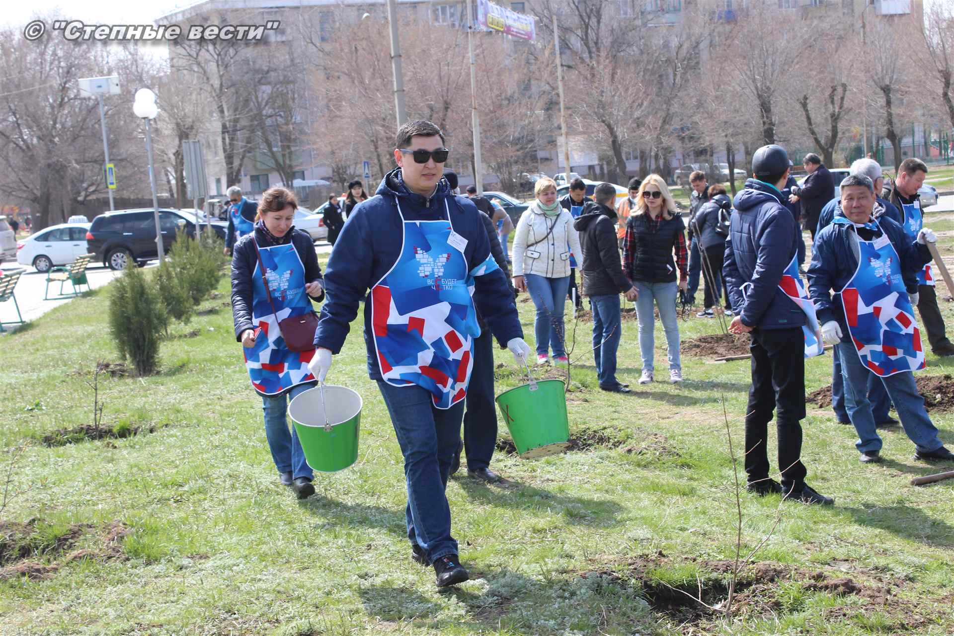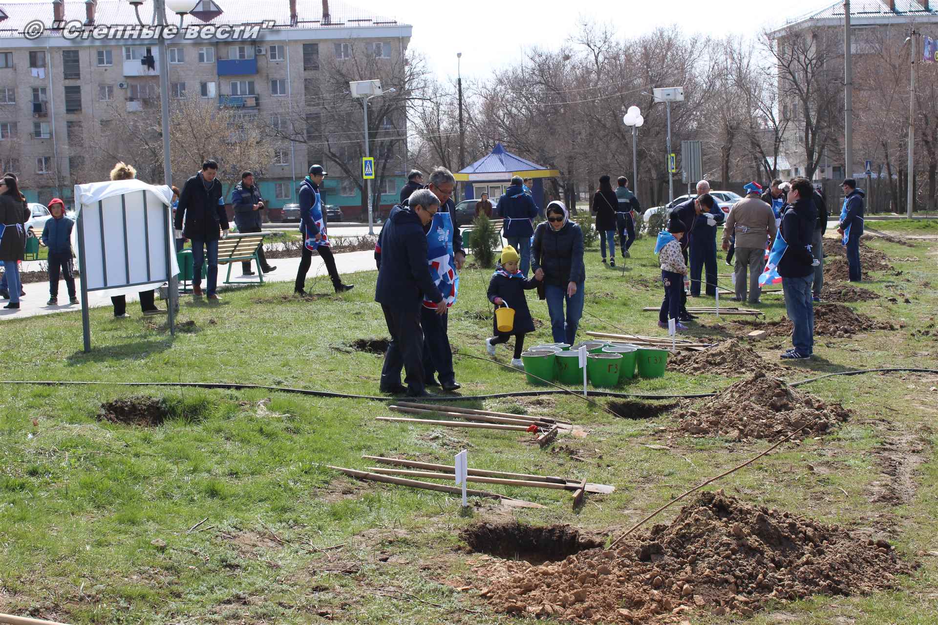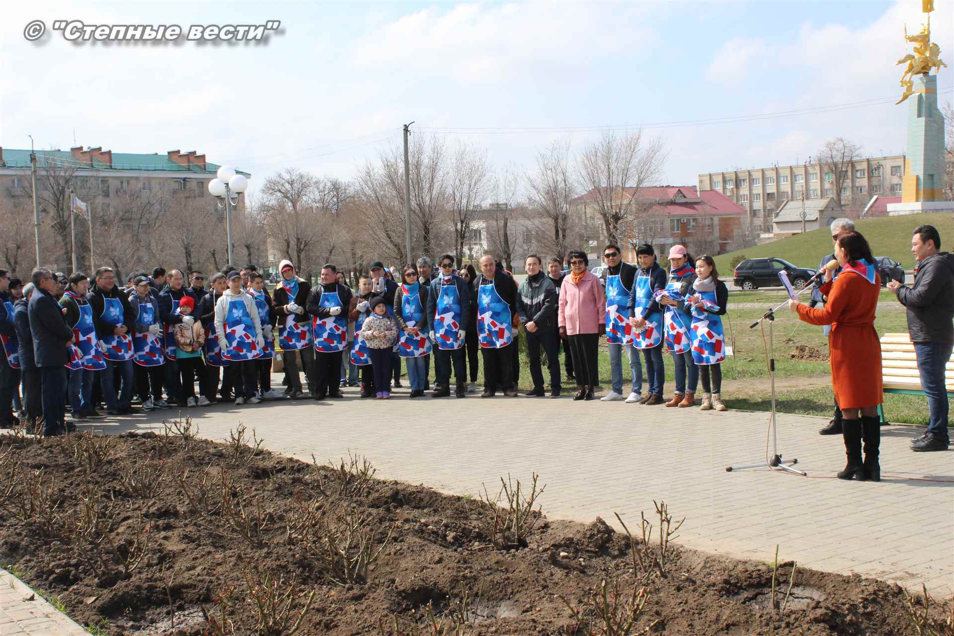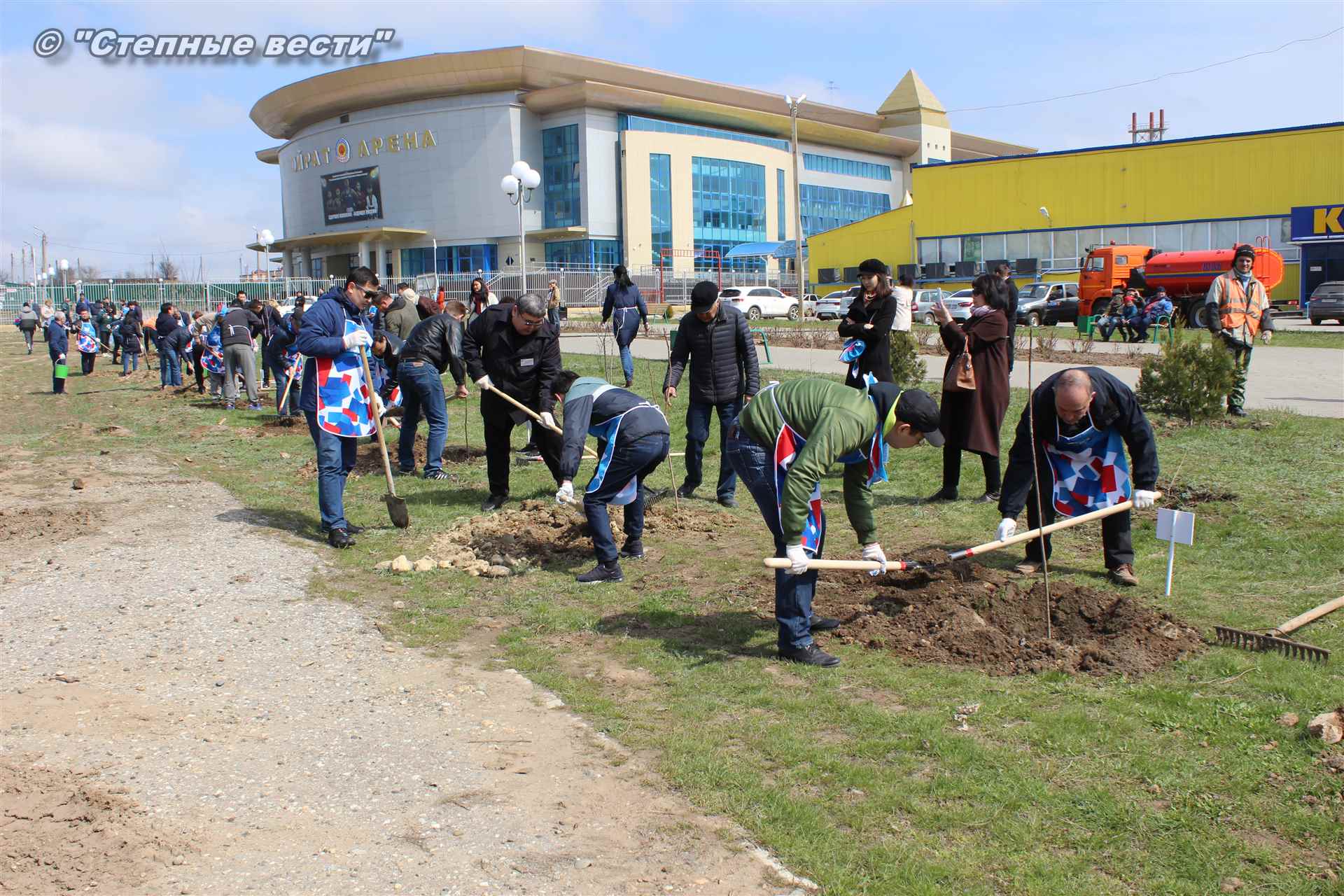 Вместе с остальными почетными гостями, сотрудниками министерства, волонтерами Аркадий Манджиев поучаствовал в озеленении Элисты.