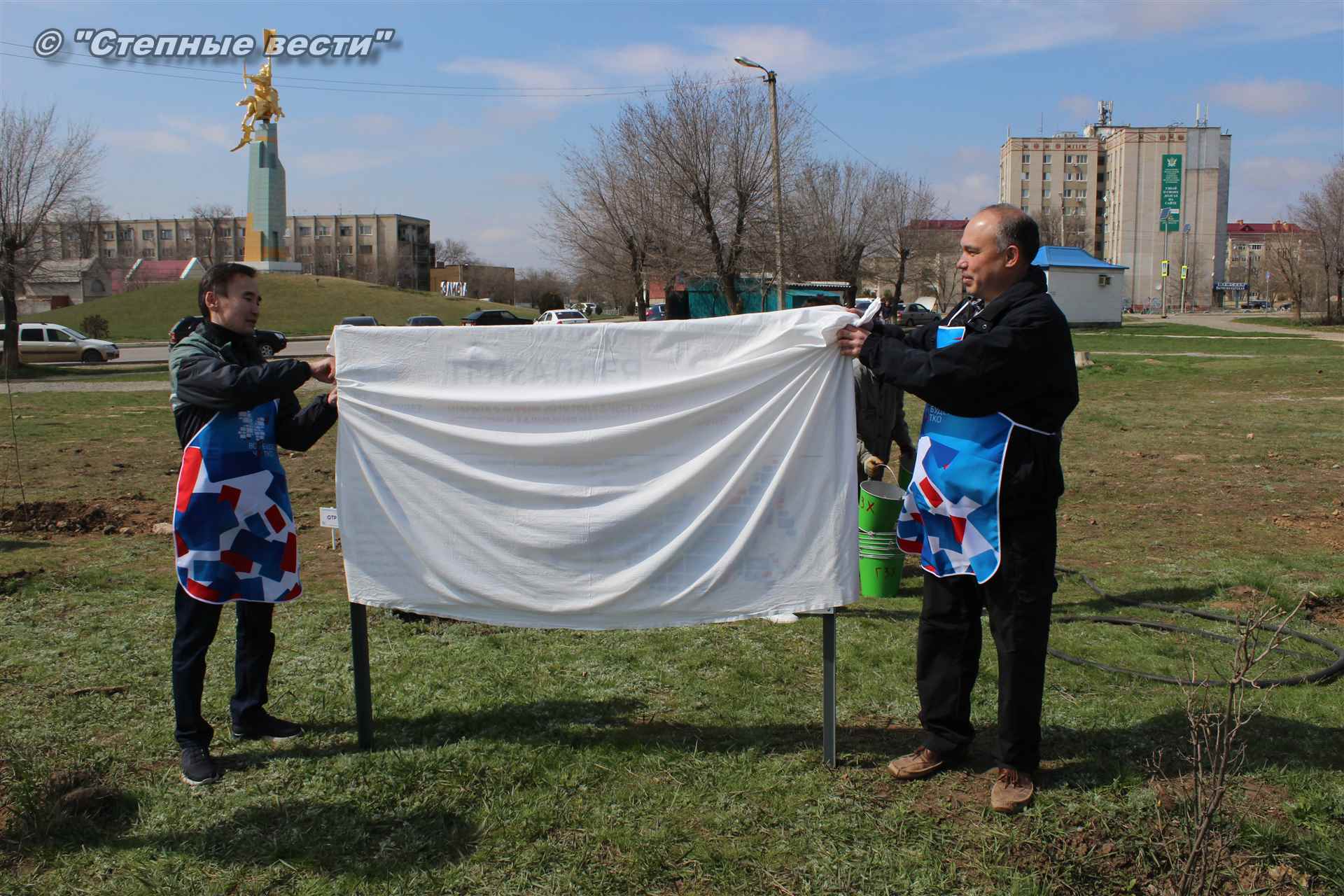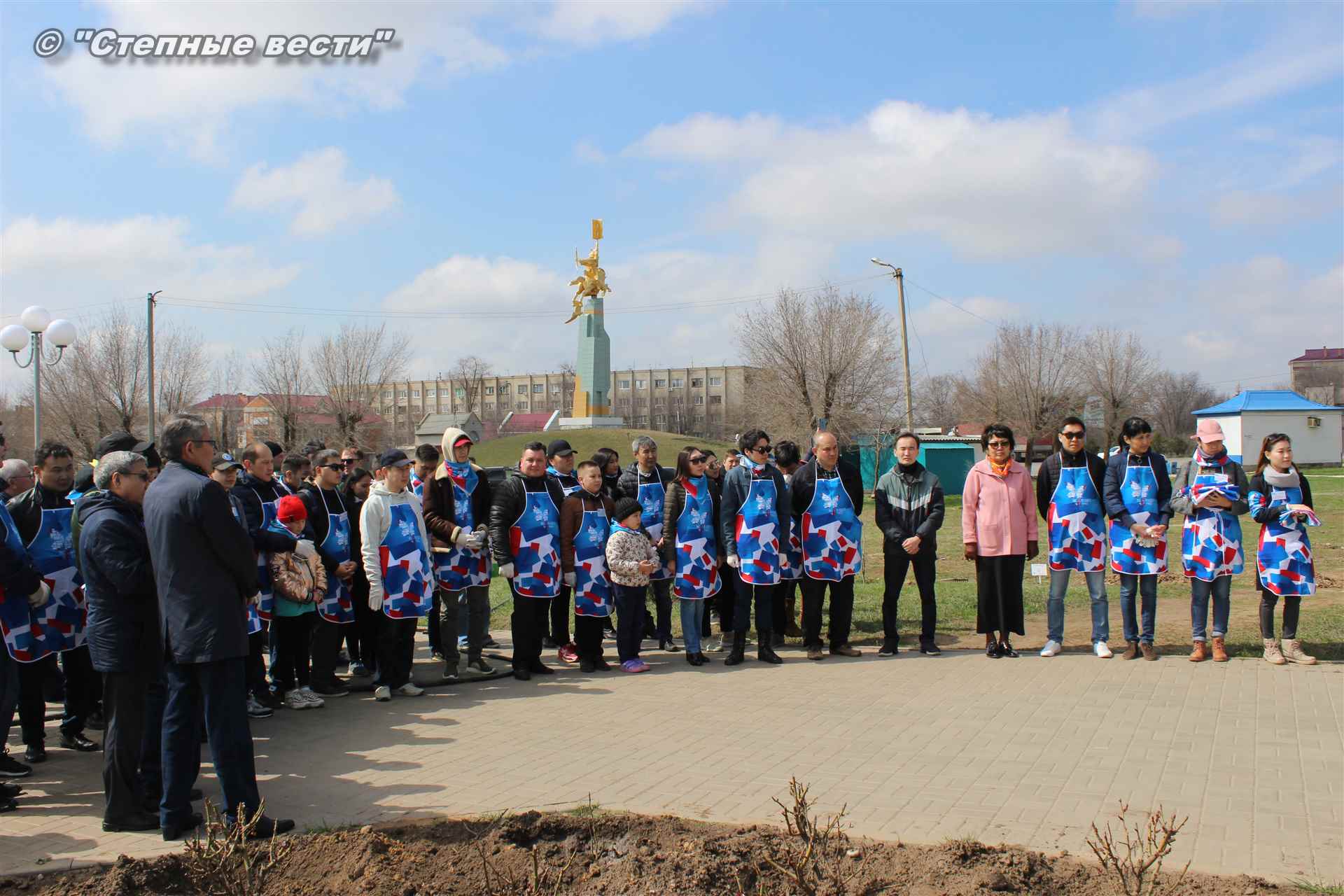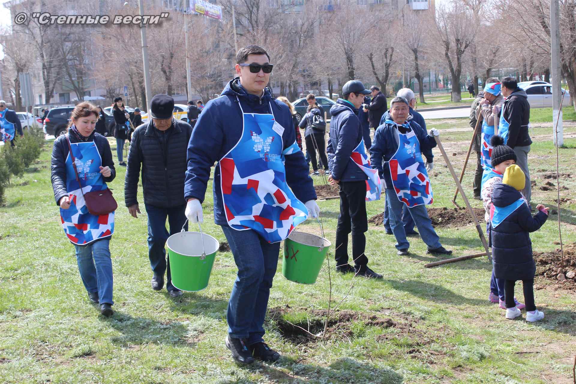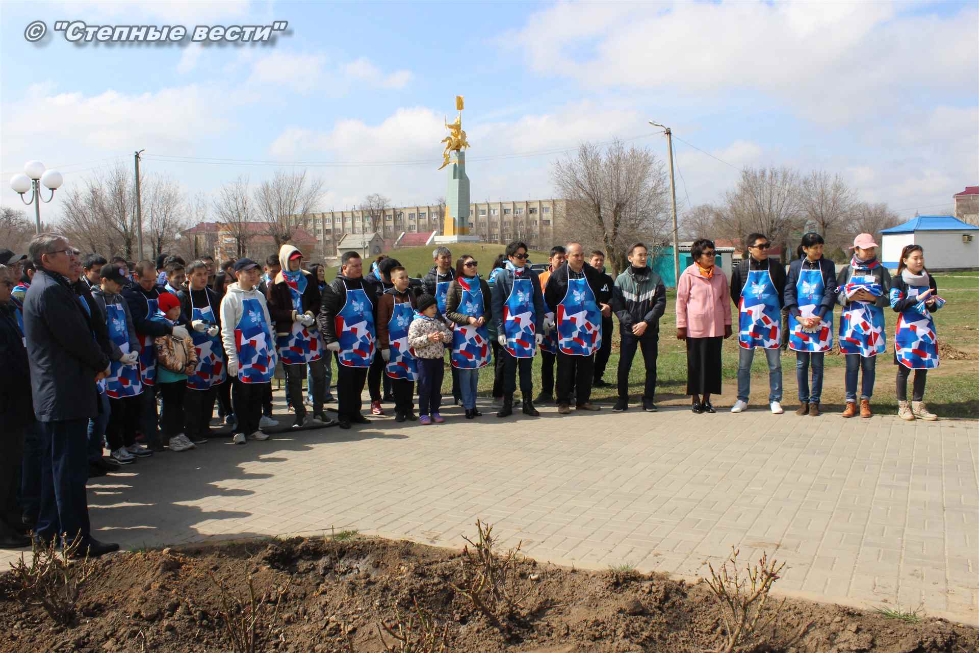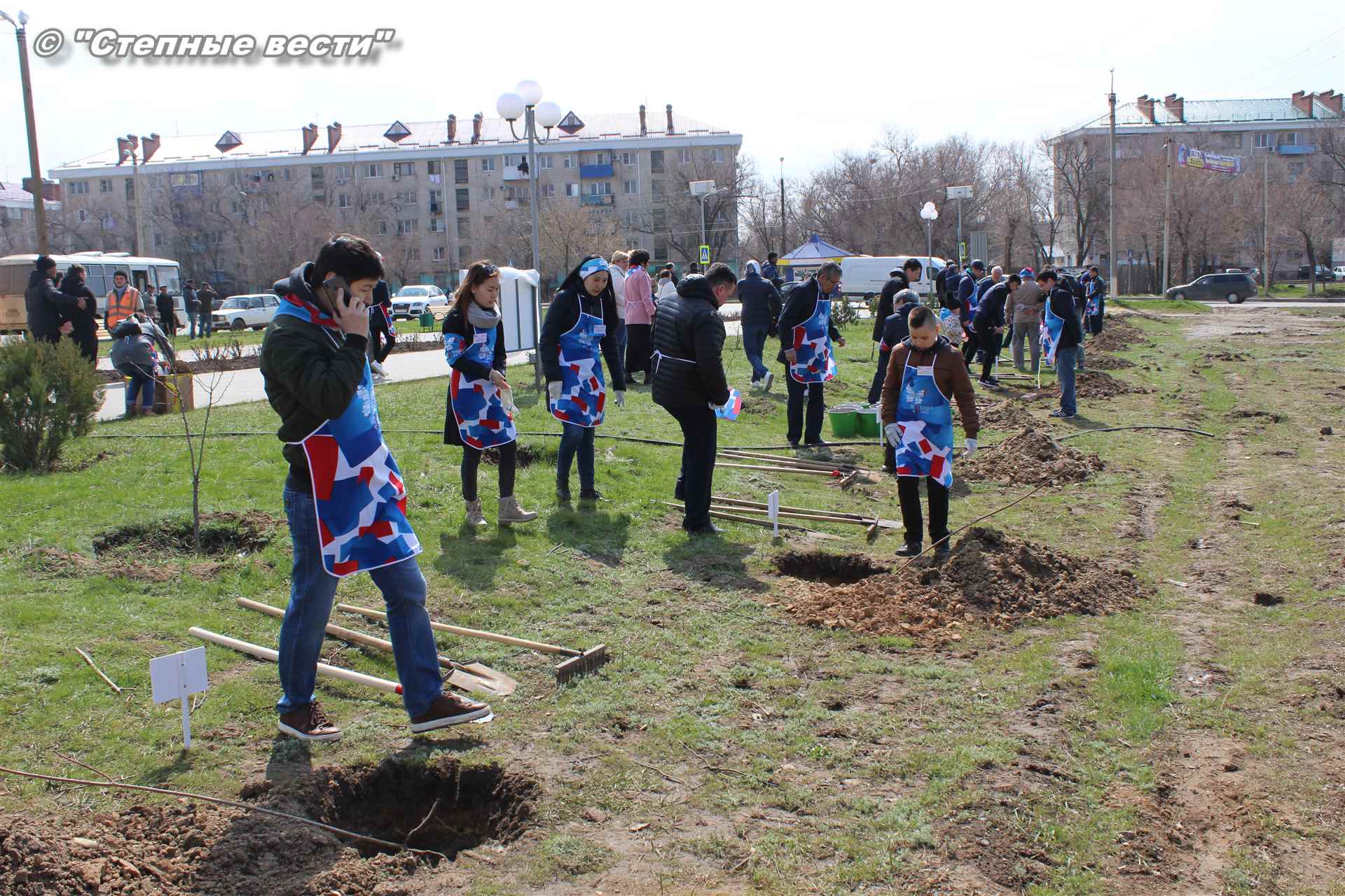 Вместе с остальными почетными гостями, сотрудниками министерства, волонтерами Аркадий Манджиев поучаствовал в озеленении Элисты.