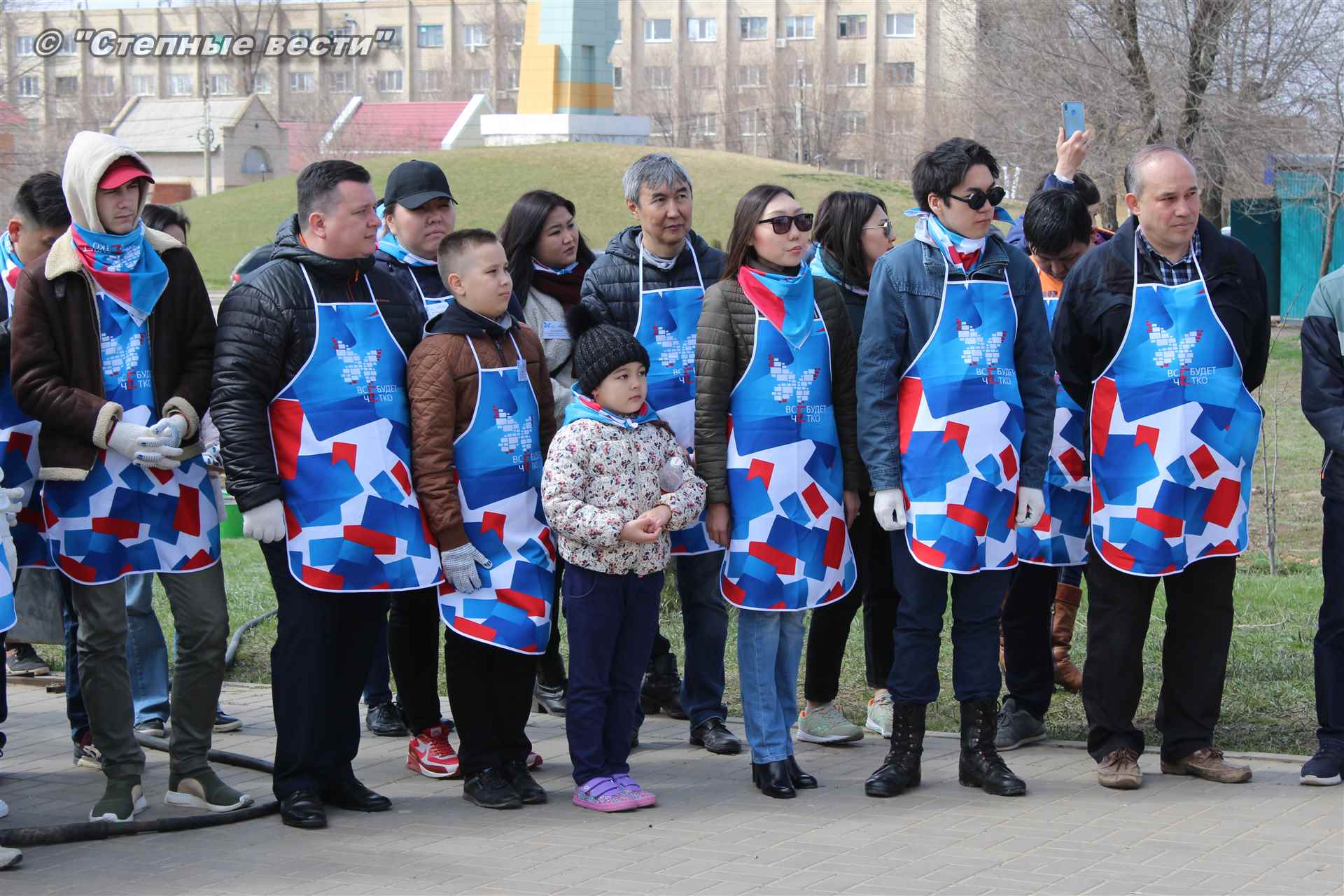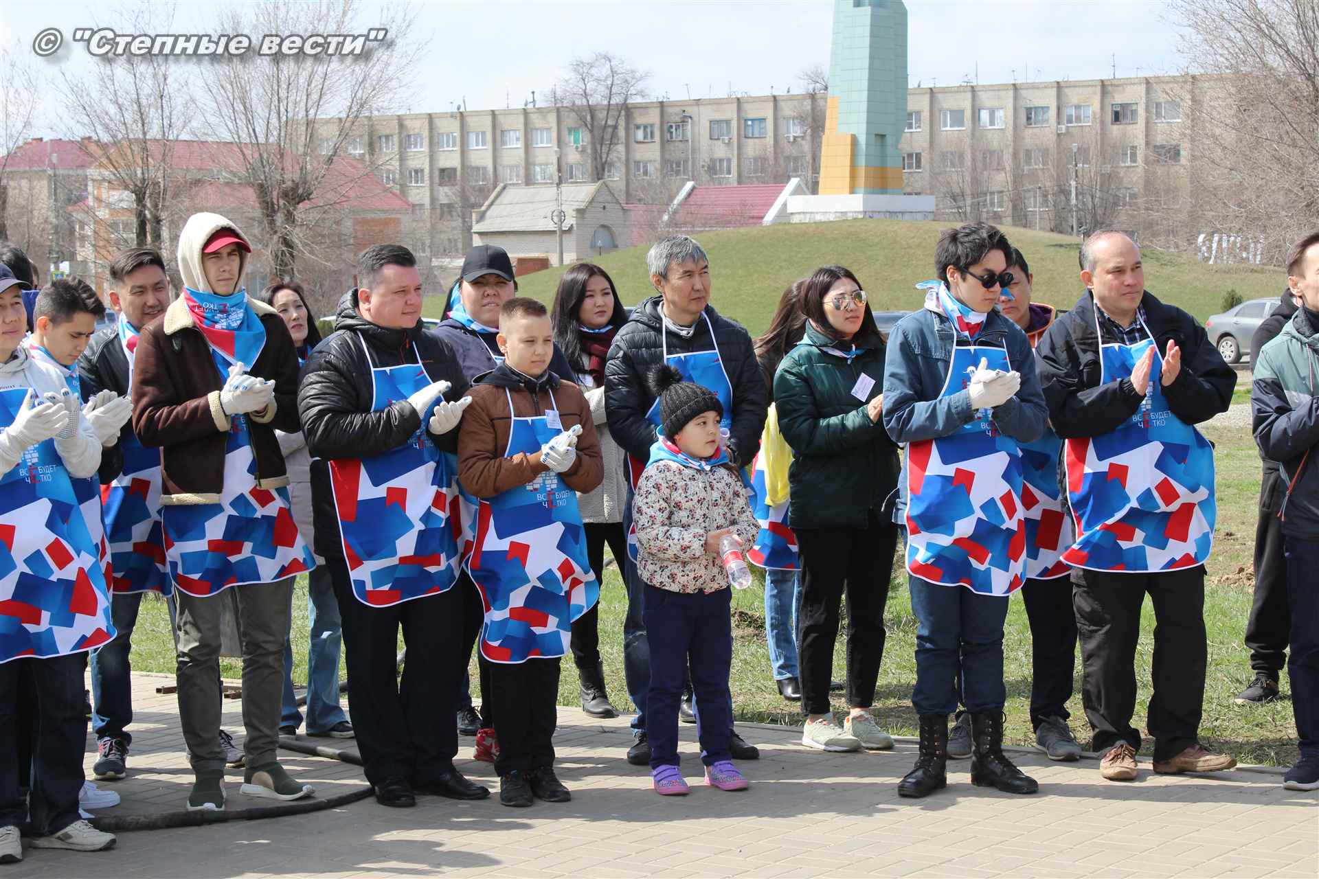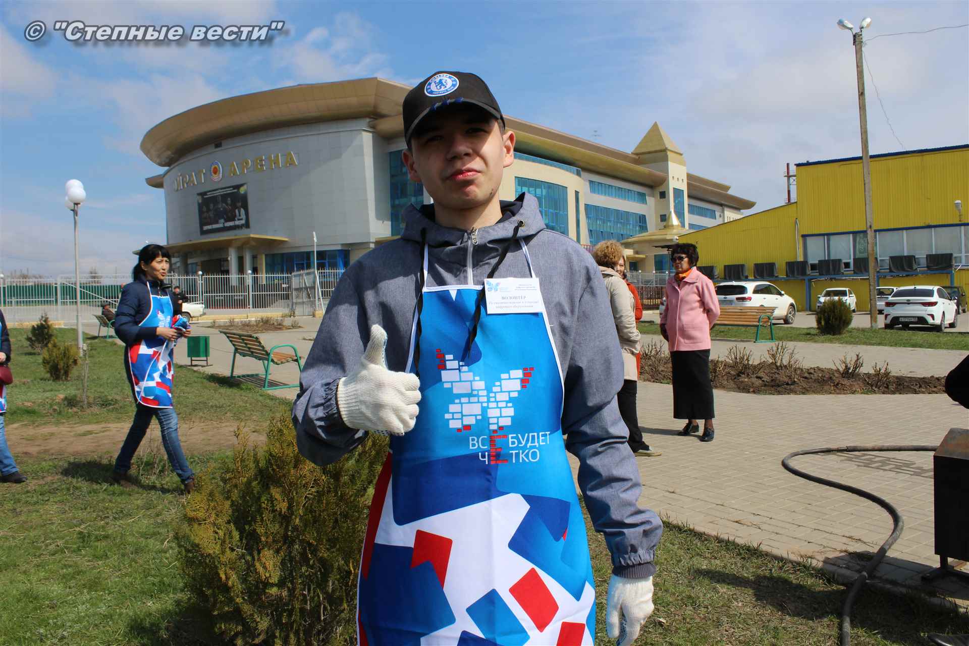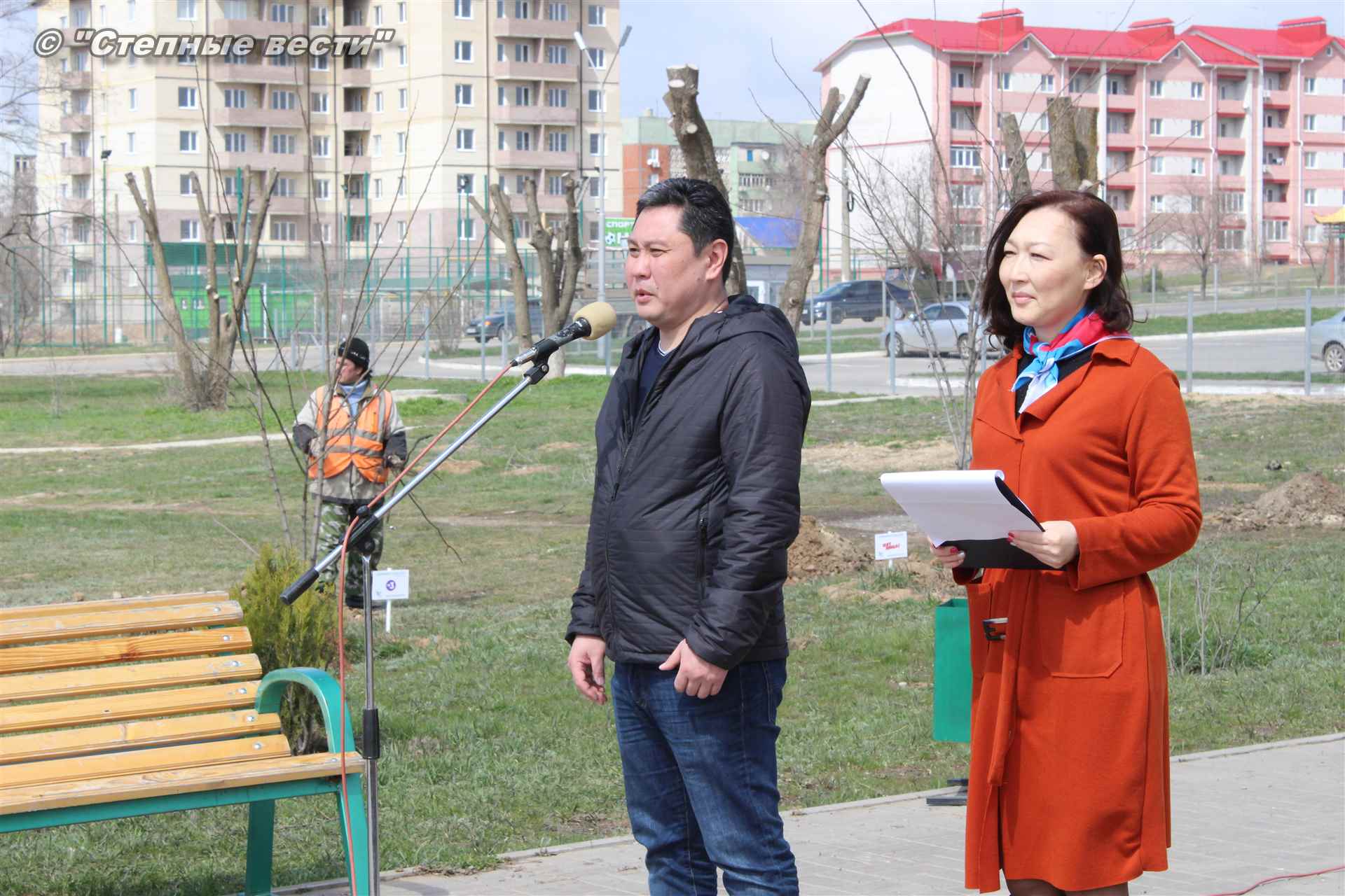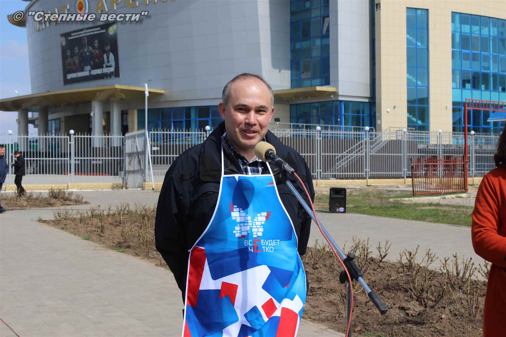 Вместе с остальными почетными гостями, сотрудниками министерства, волонтерами Аркадий Манджиев поучаствовал в озеленении Элисты.