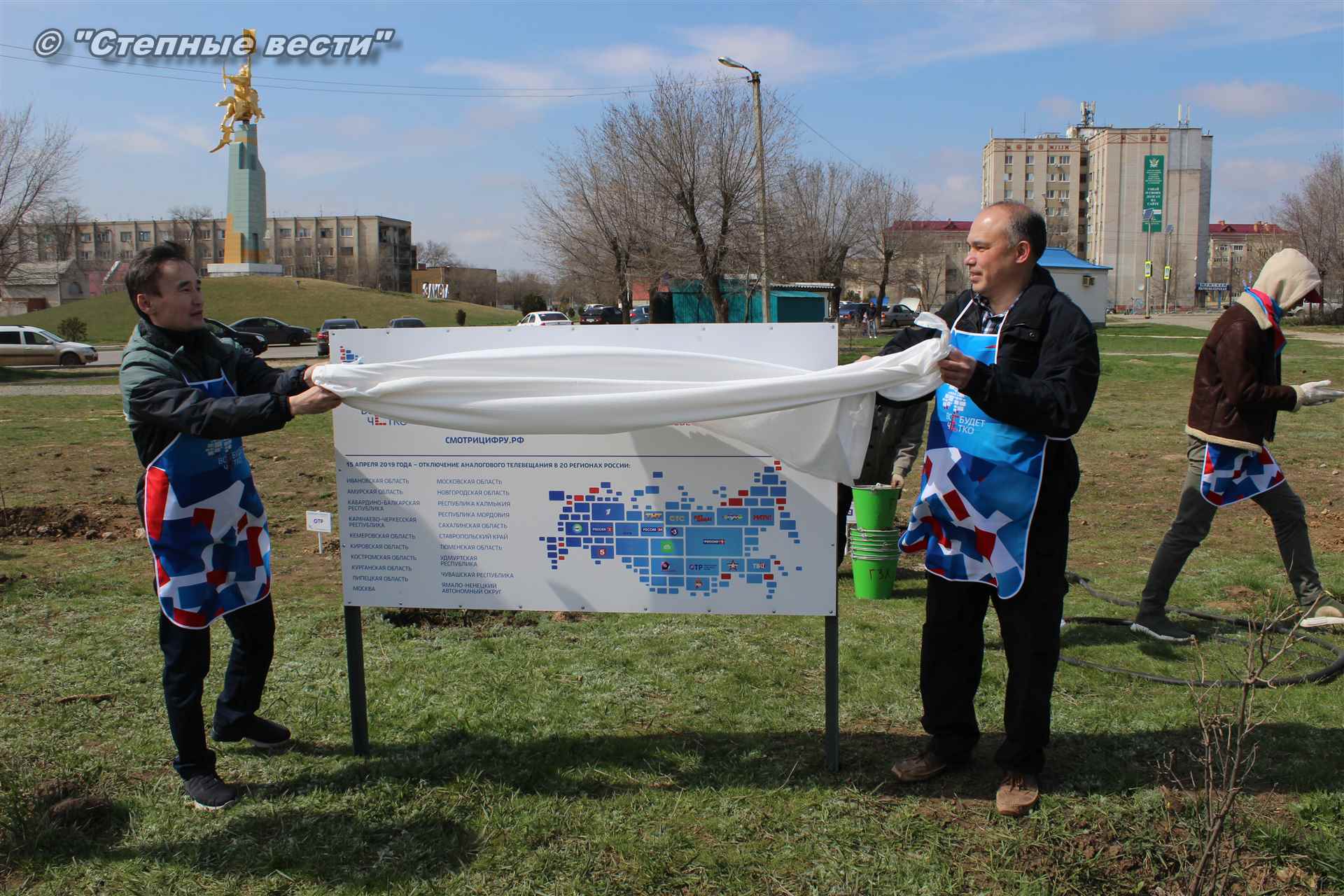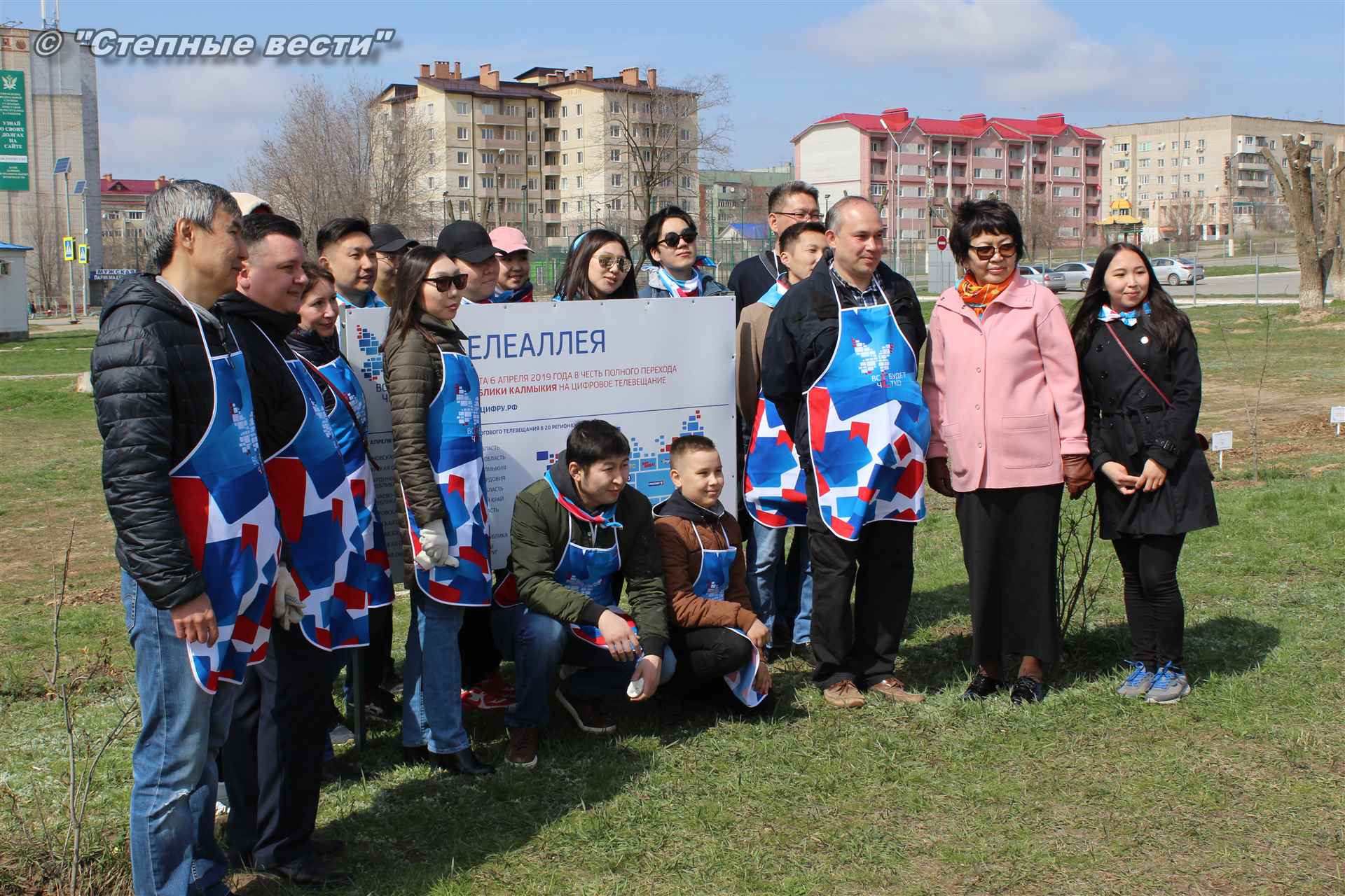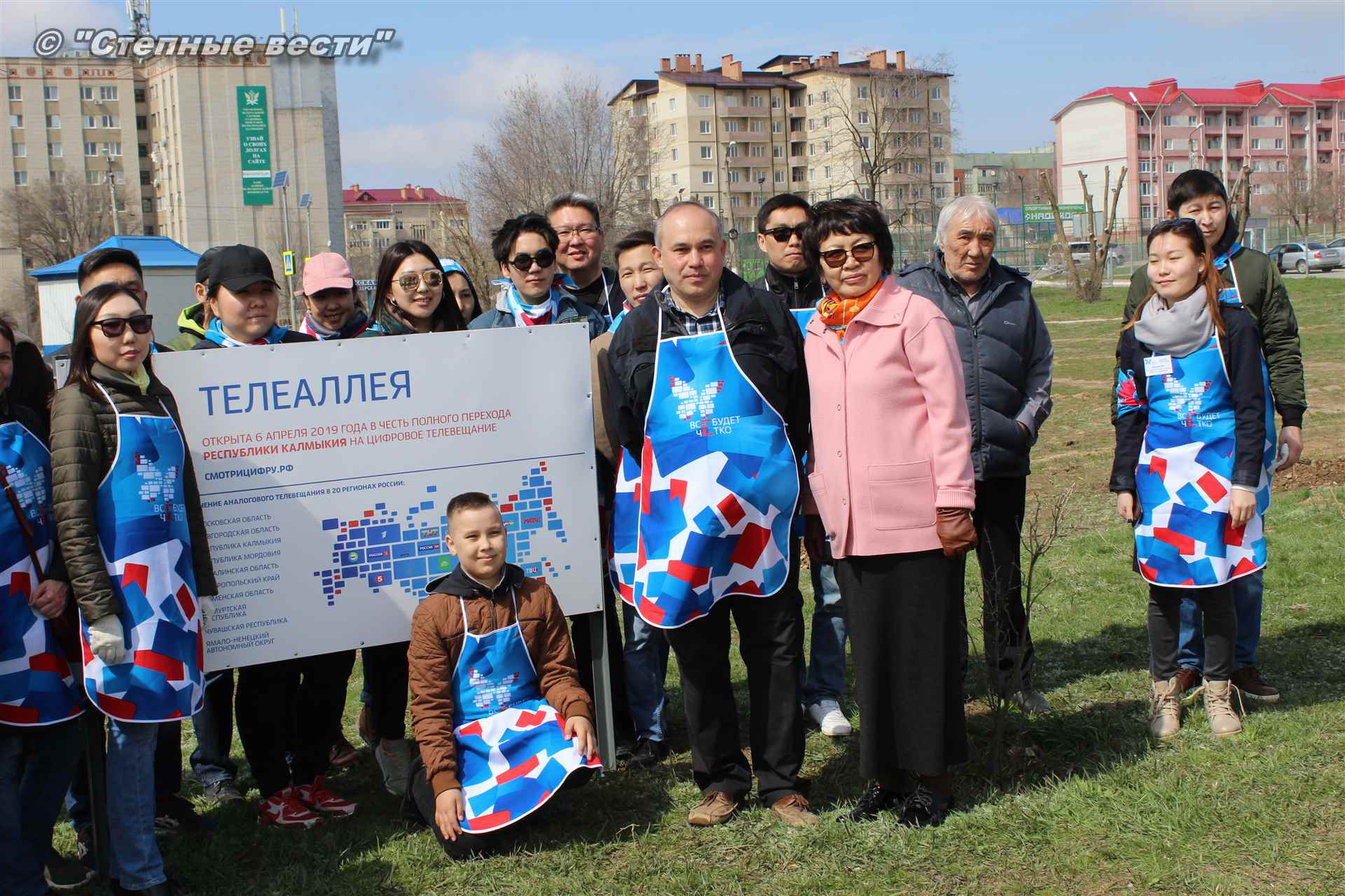 Сотрудники Министерства цифрового развития РК, волонтеры и почетные гости мероприятия высадили деревца в рамках всероссийской акции «Телеаллея». 20 деревьев символизируют 20 телеканалов двух мультиплексов, которые с 15 апреля жители Калмыкии смогут смотреть в цифровом качестве.