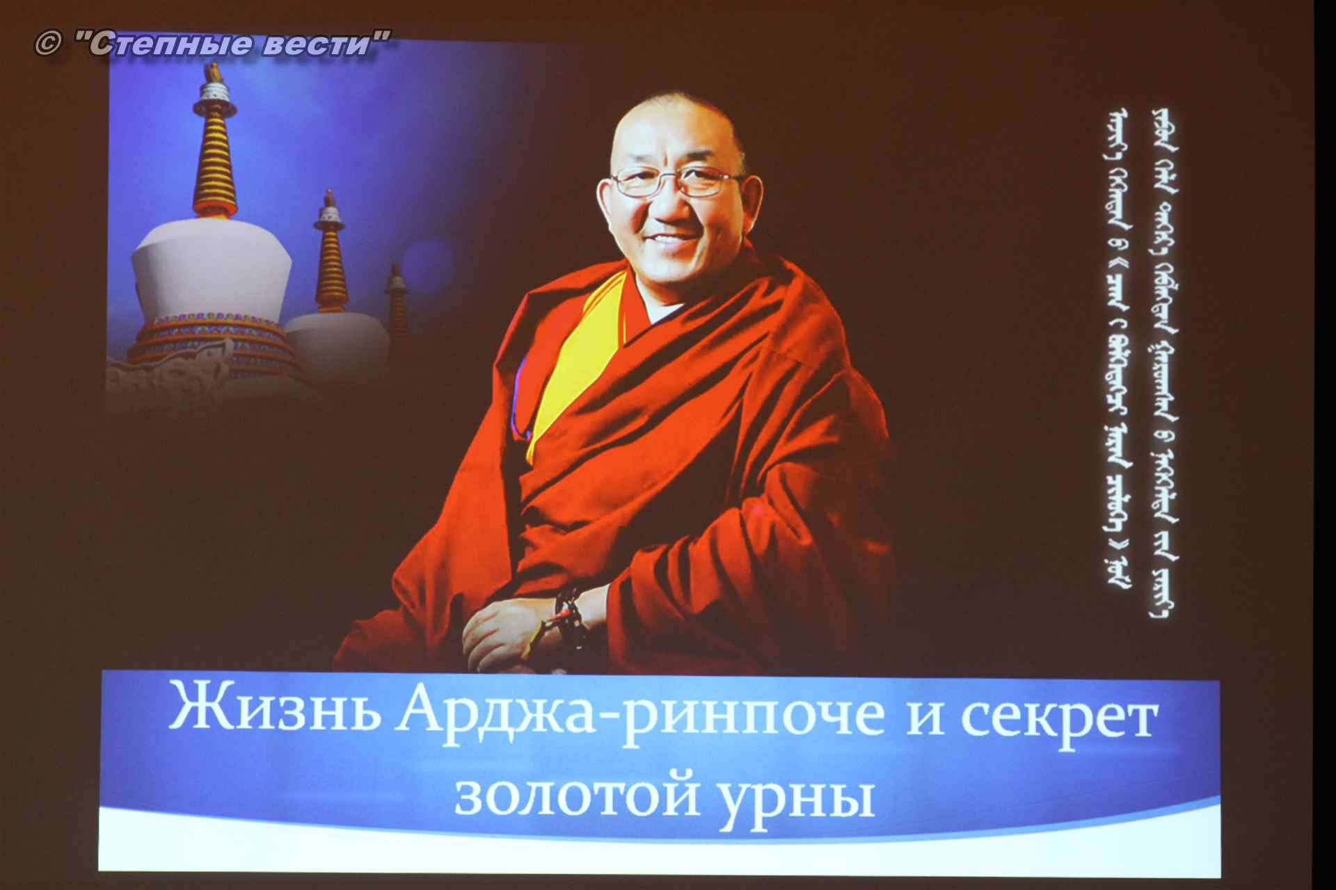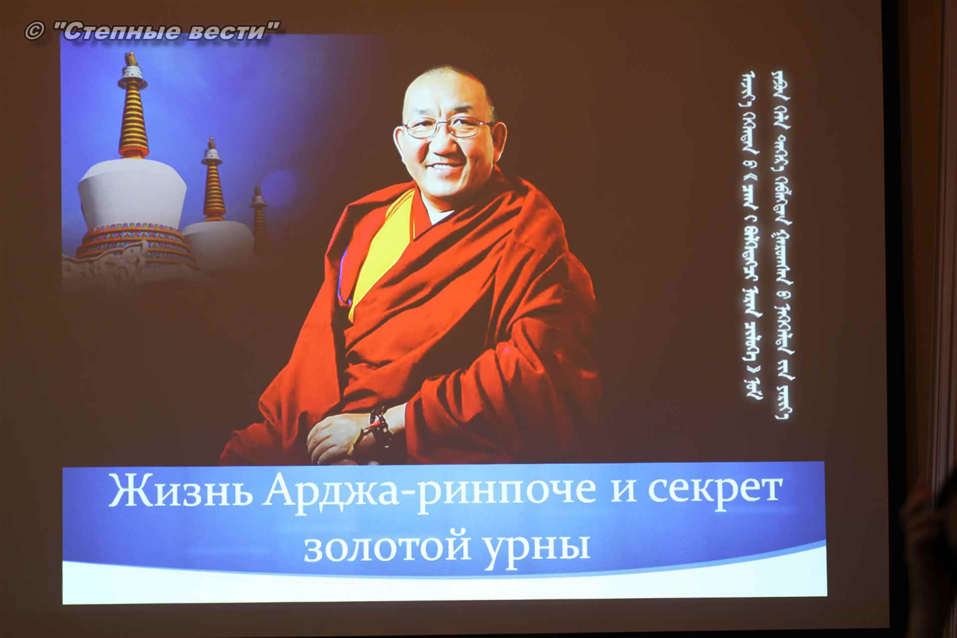 В Калмыцком научном центре РАН состоялась презентация автобиографической книги досточтимого Арджа Лобсан Туптен Ринпоче «Жизнь Арджа-ринпоче и секрет золотой урны». Это мероприятие запланировано как одно из центральных событий в программе просветительского визита руководителя Тибетско-монгольского буддийского культурного центра в Блумингтоне (штат Индиана, США) в нашу республику, организатором которого выступил КалмНЦ.
