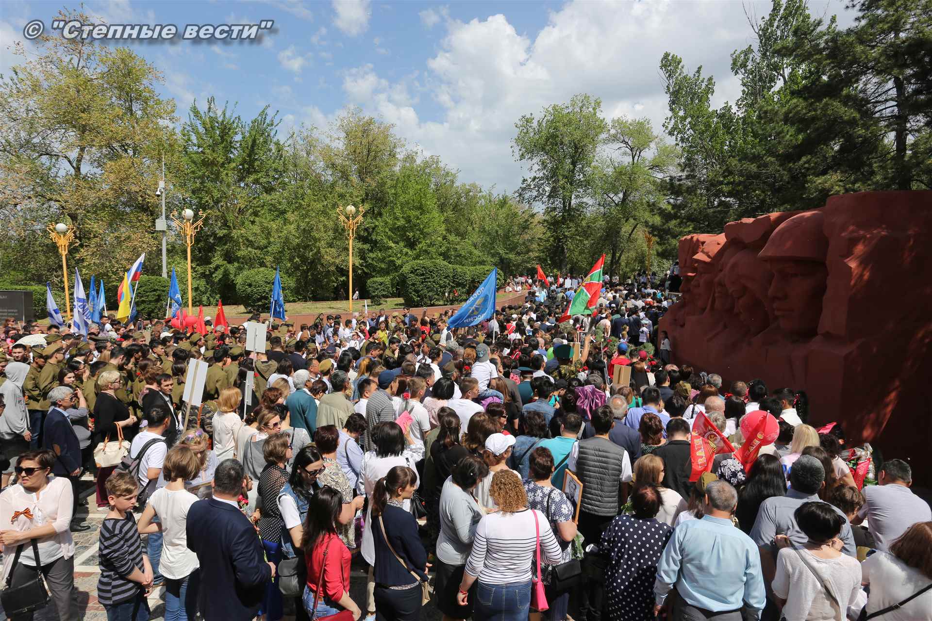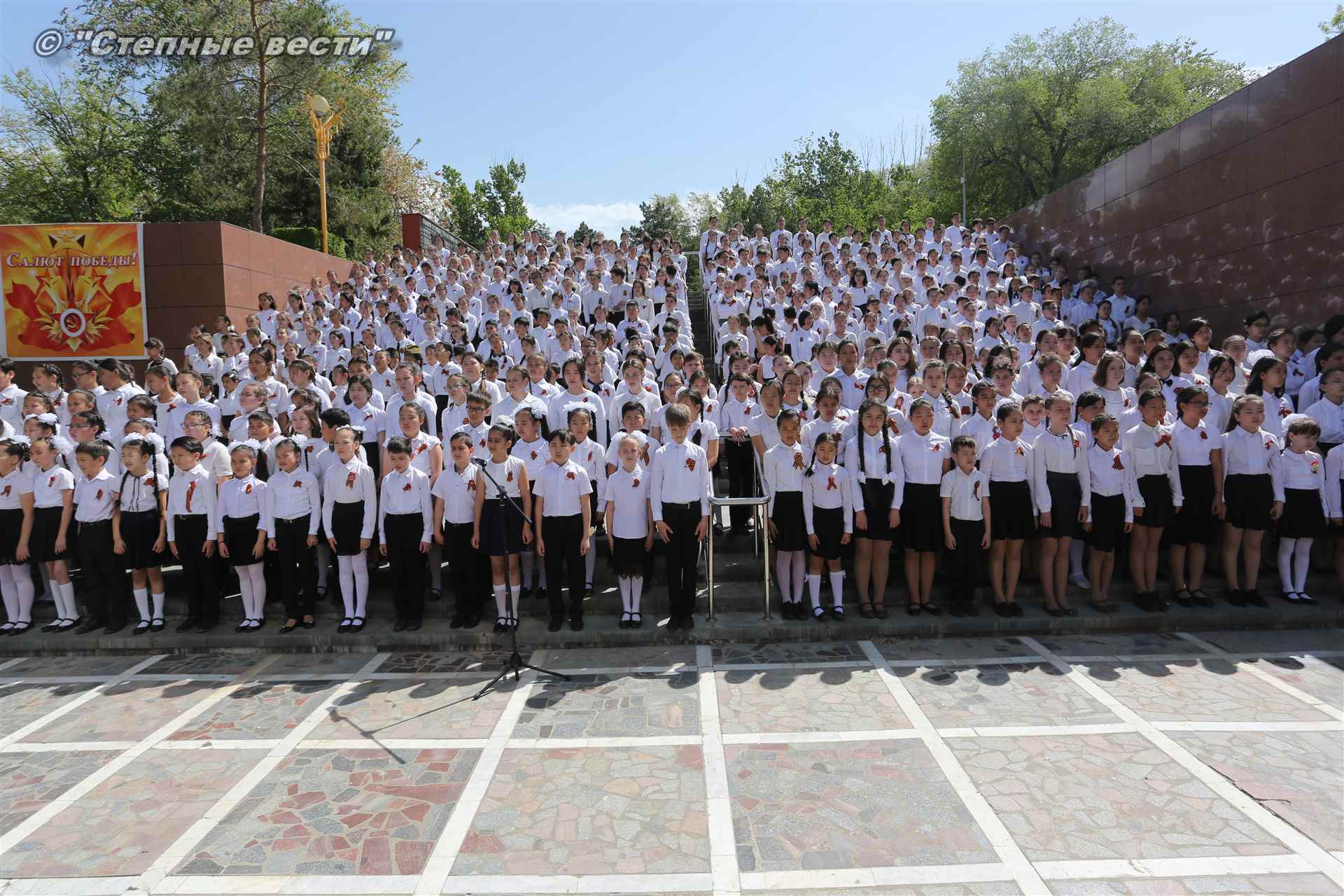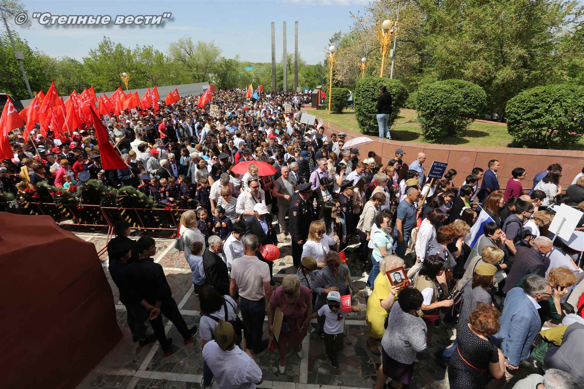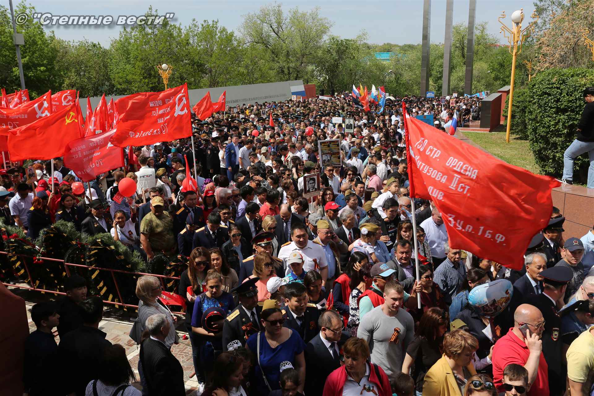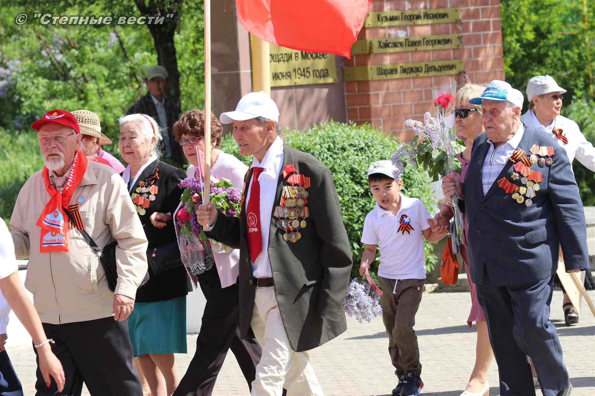 Шествие началось с построения колонн на центральной площади города вокруг Пагоды семи дней. Процессия, состоящая из нескольких сотен жителей Элисты, двинулась вдоль Аллеи Героев к памятнику Б. Городовикова и Героям Советского Союза, у подножия которых люди возложили венки и цветы землякам-героям войны. Далее у мемориального комплекса героев Гражданской и Великой Отечественной войн состоялся торжественный митинг. Открыл его песней «День победы» сводный хор учащихся школ Элисты под управлением заслуженной артистки РК Натальи Дукмановой.
