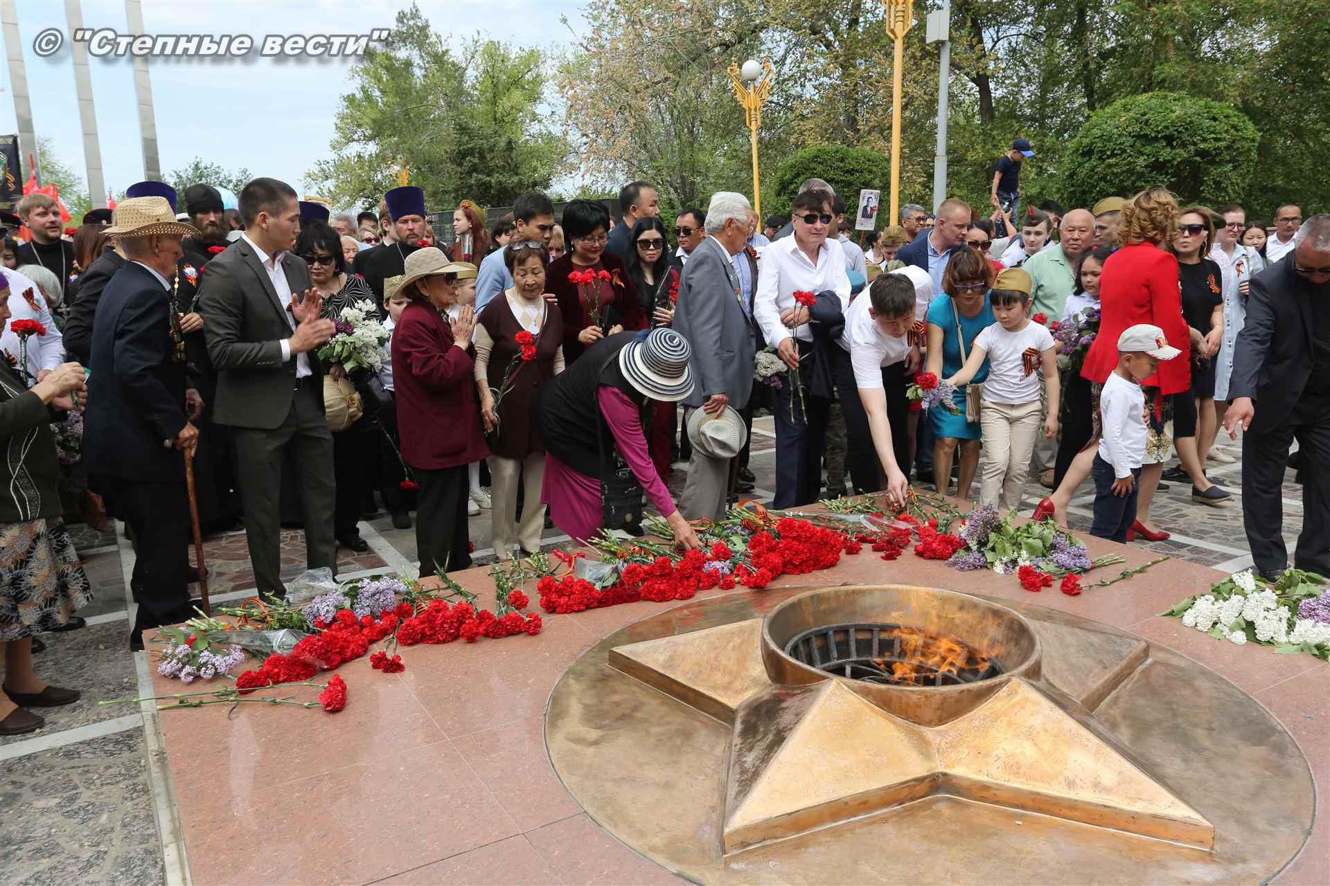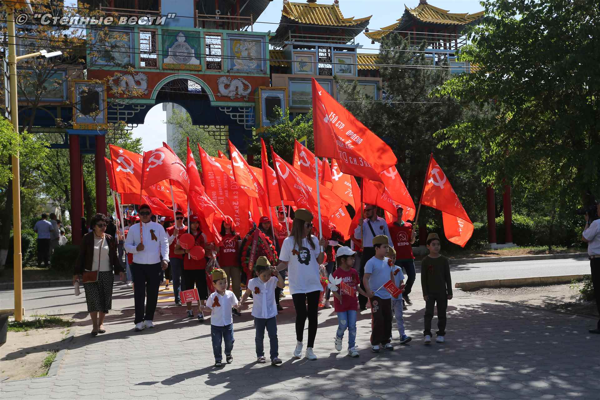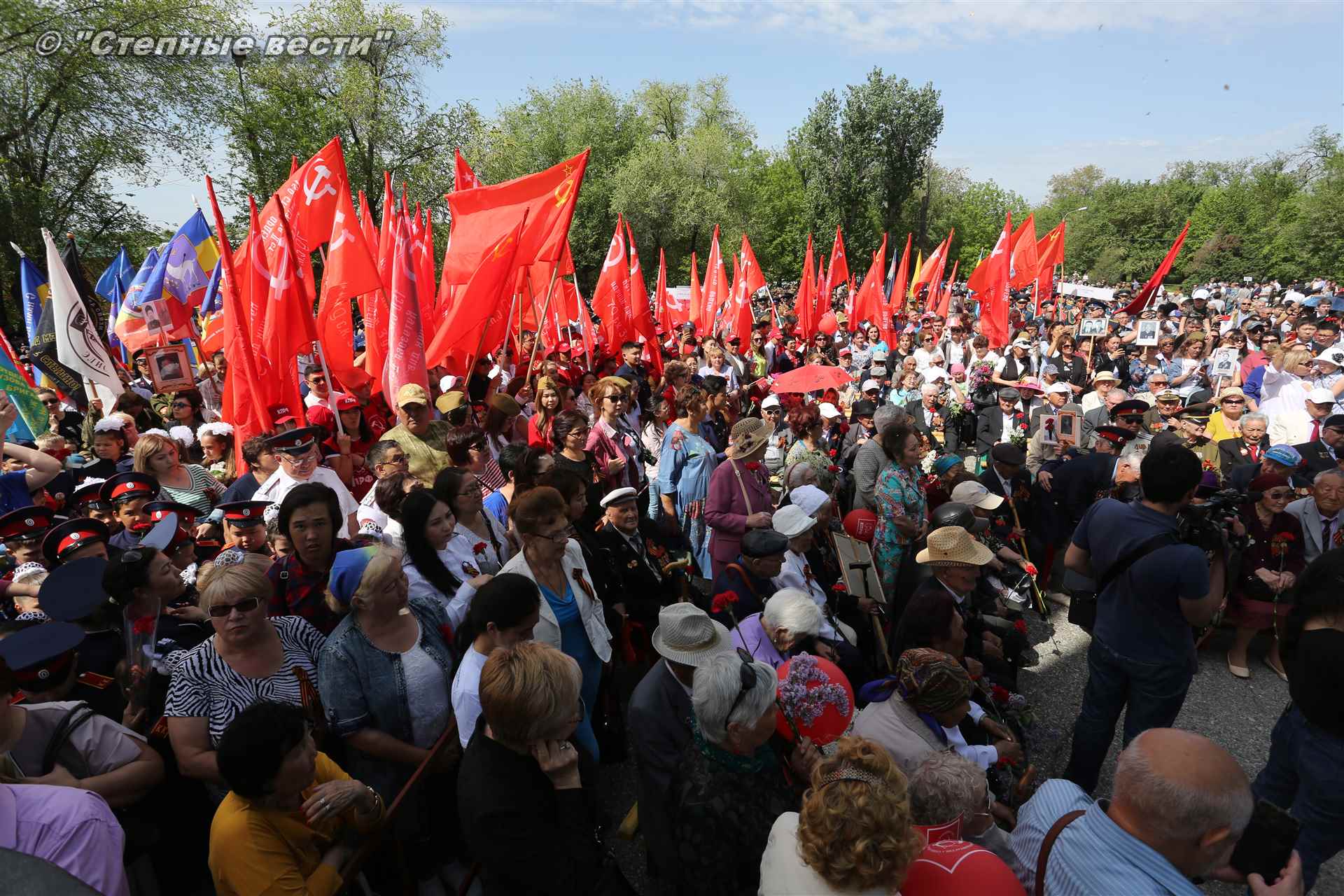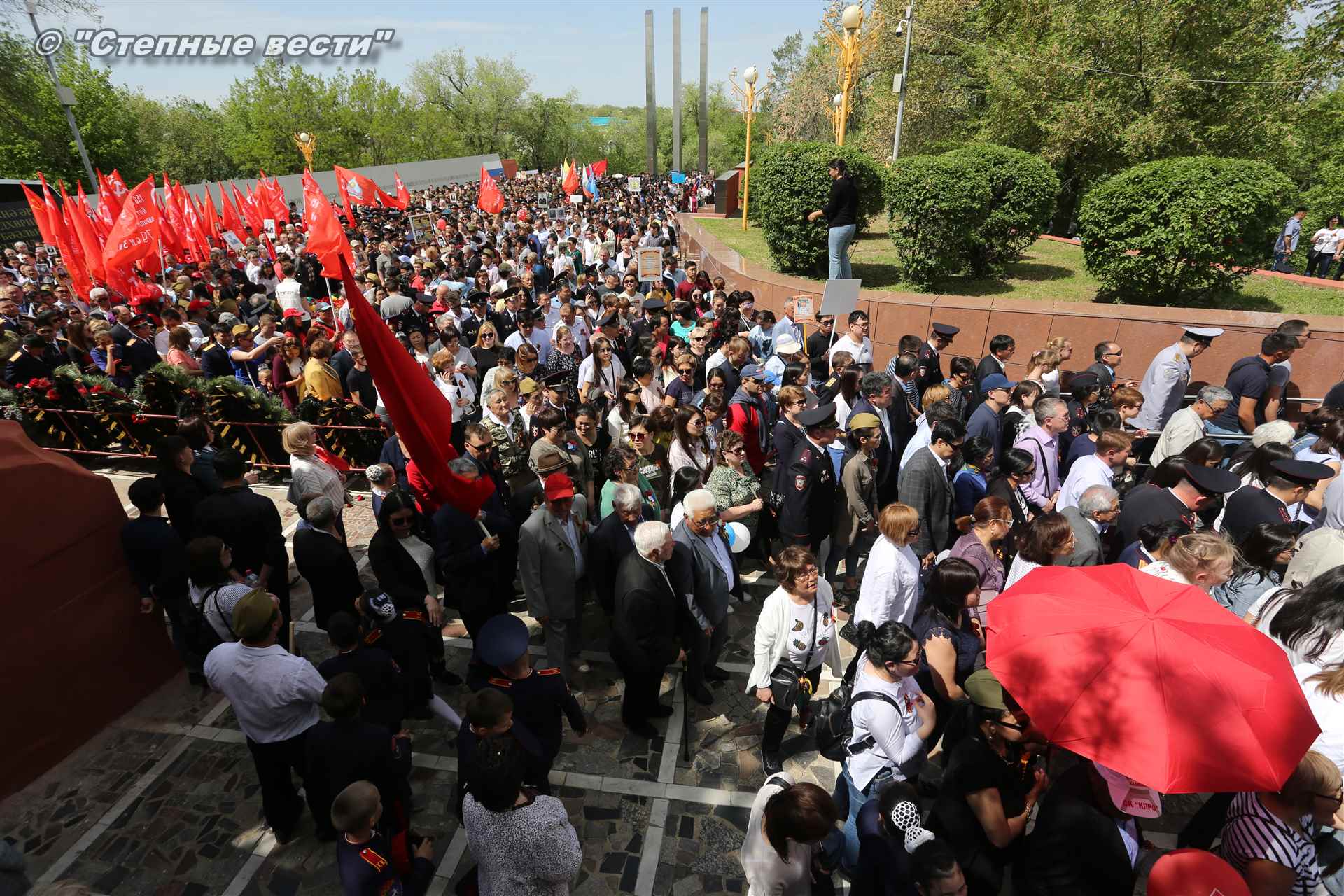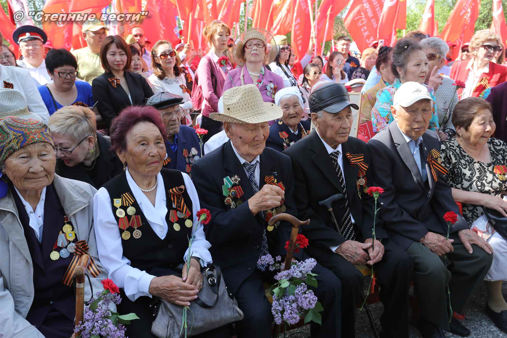 Шествие началось с построения колонн на центральной площади города вокруг Пагоды семи дней. Процессия, состоящая из нескольких сотен жителей Элисты, двинулась вдоль Аллеи Героев к памятнику Б. Городовикова и Героям Советского Союза, у подножия которых люди возложили венки и цветы землякам-героям войны. Далее у мемориального комплекса героев Гражданской и Великой Отечественной войн состоялся торжественный митинг. Открыл его песней «День победы» сводный хор учащихся школ Элисты под управлением заслуженной артистки РК Натальи Дукмановой.