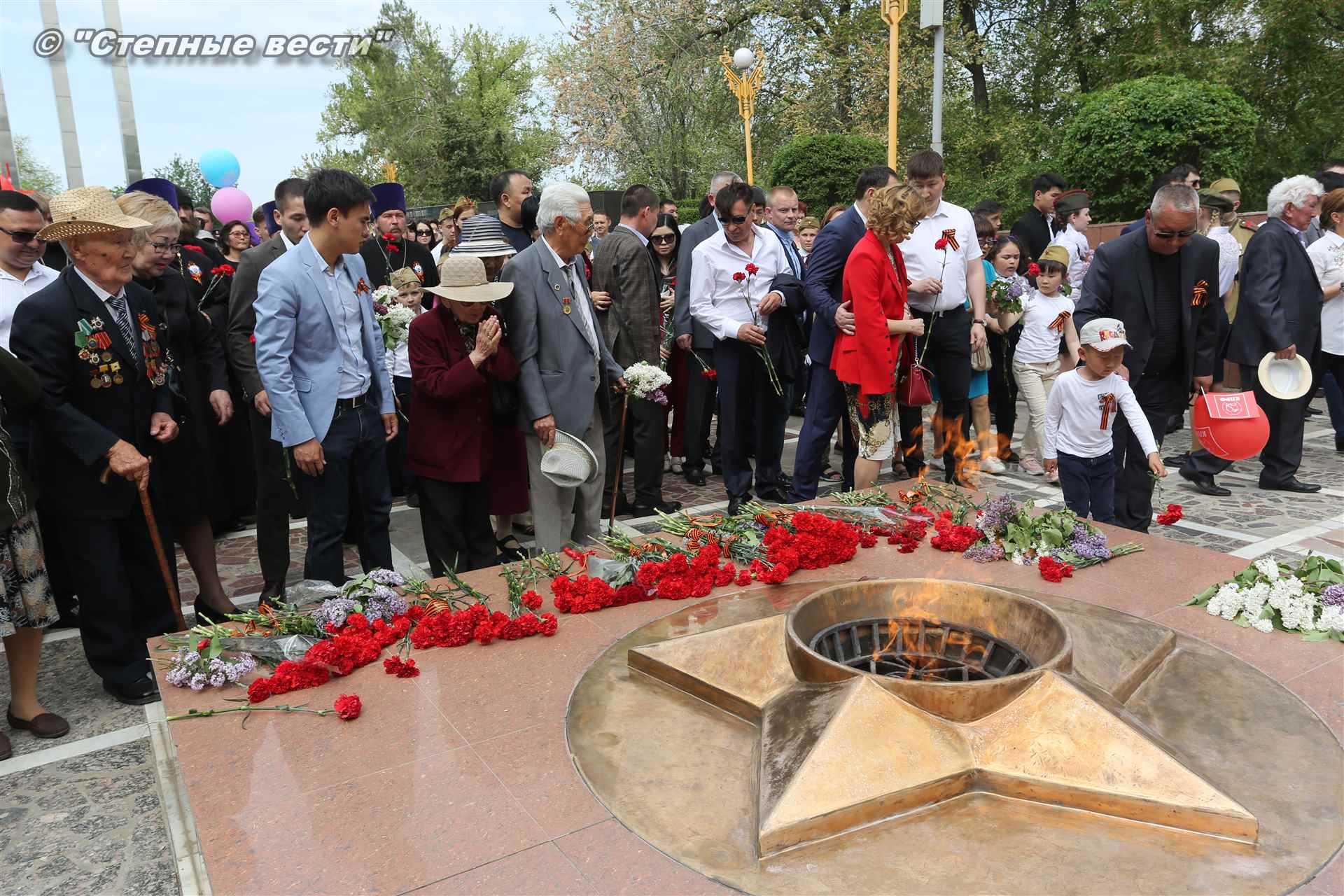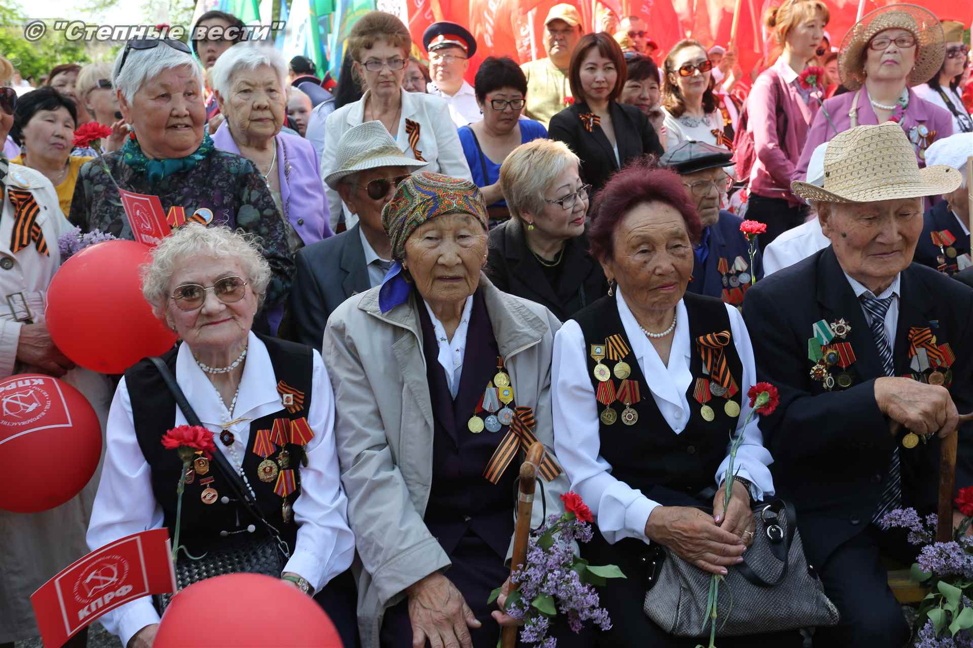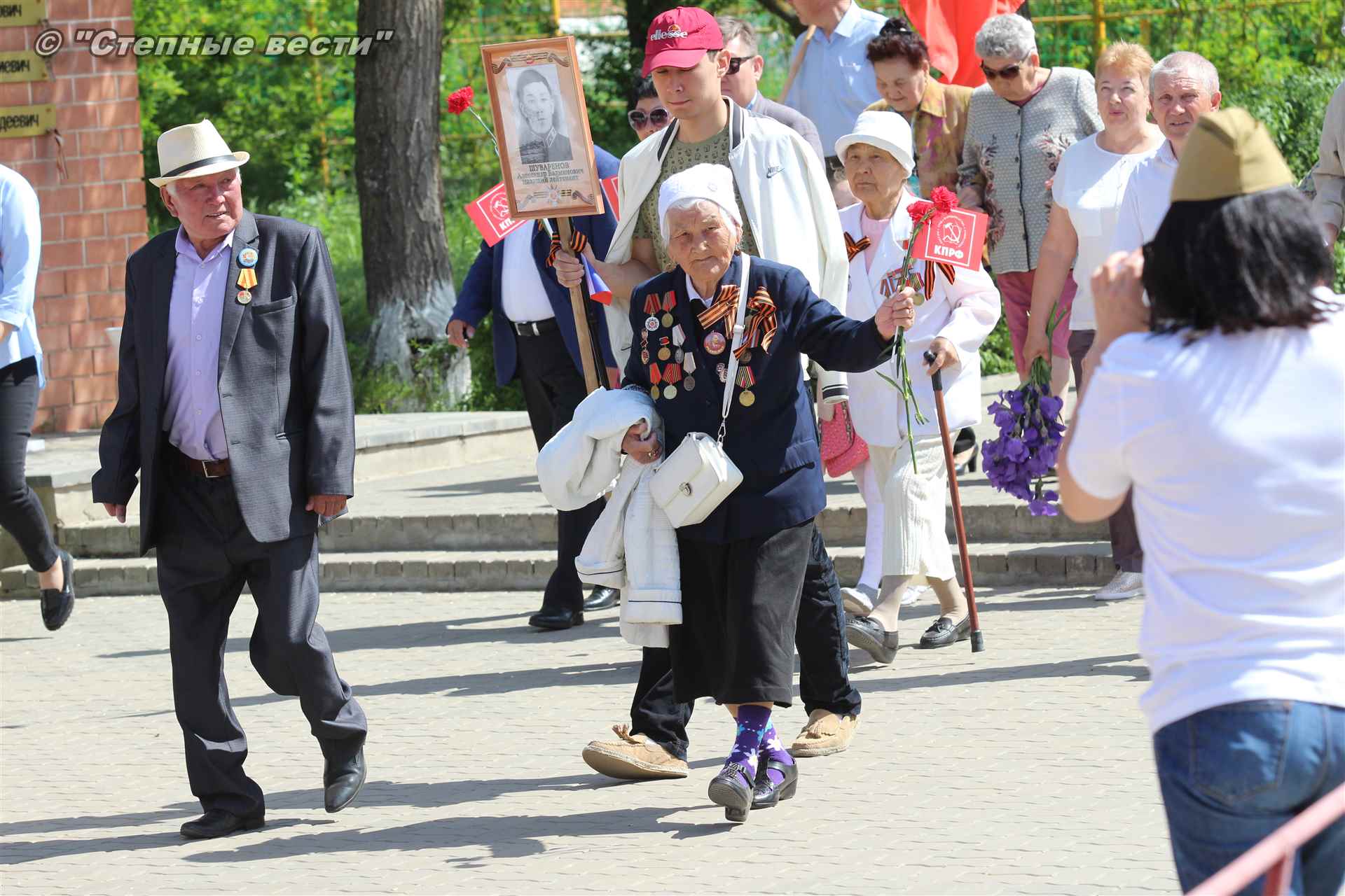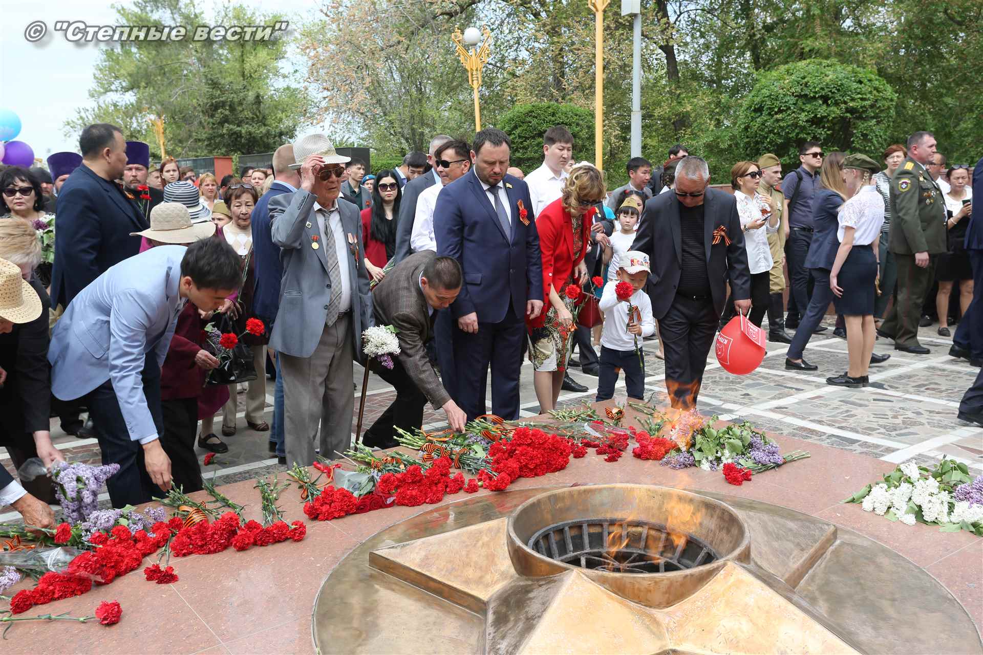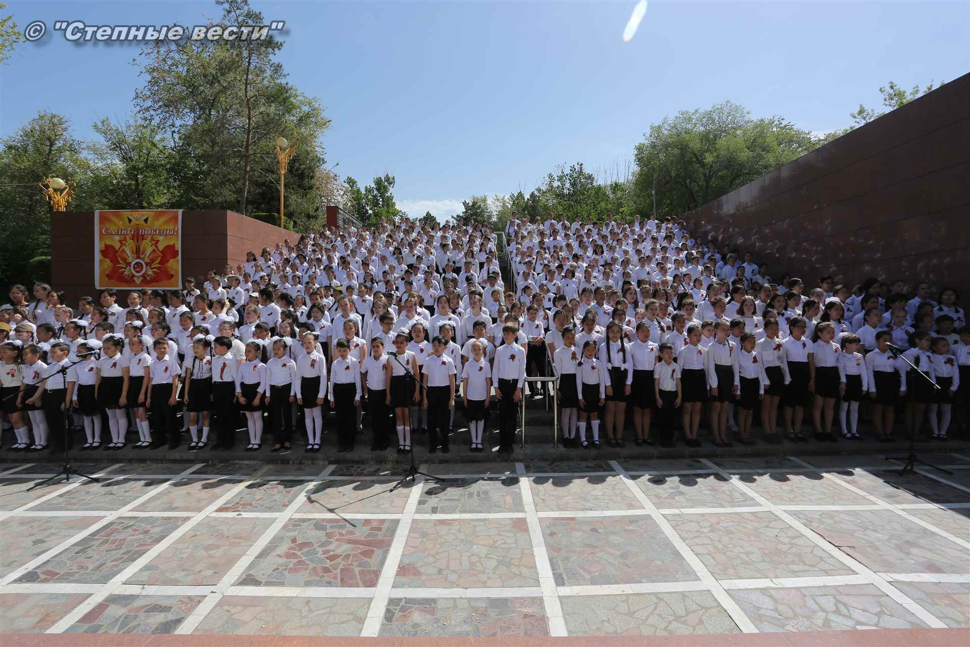 Шествие началось с построения колонн на центральной площади города вокруг Пагоды семи дней. Процессия, состоящая из нескольких сотен жителей Элисты, двинулась вдоль Аллеи Героев к памятнику Б. Городовикова и Героям Советского Союза, у подножия которых люди возложили венки и цветы землякам-героям войны. Далее у мемориального комплекса героев Гражданской и Великой Отечественной войн состоялся торжественный митинг. Открыл его песней «День победы» сводный хор учащихся школ Элисты под управлением заслуженной артистки РК Натальи Дукмановой.