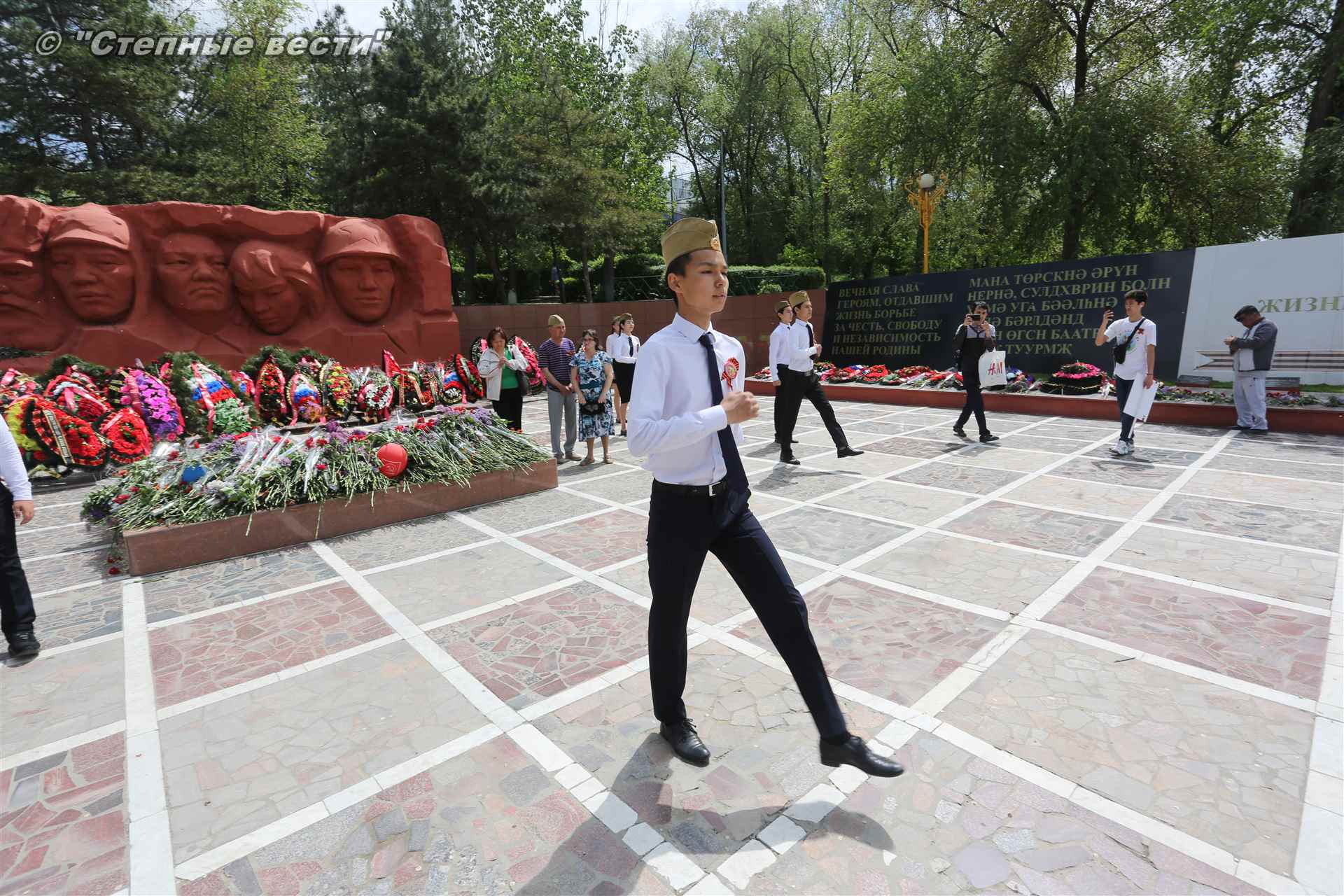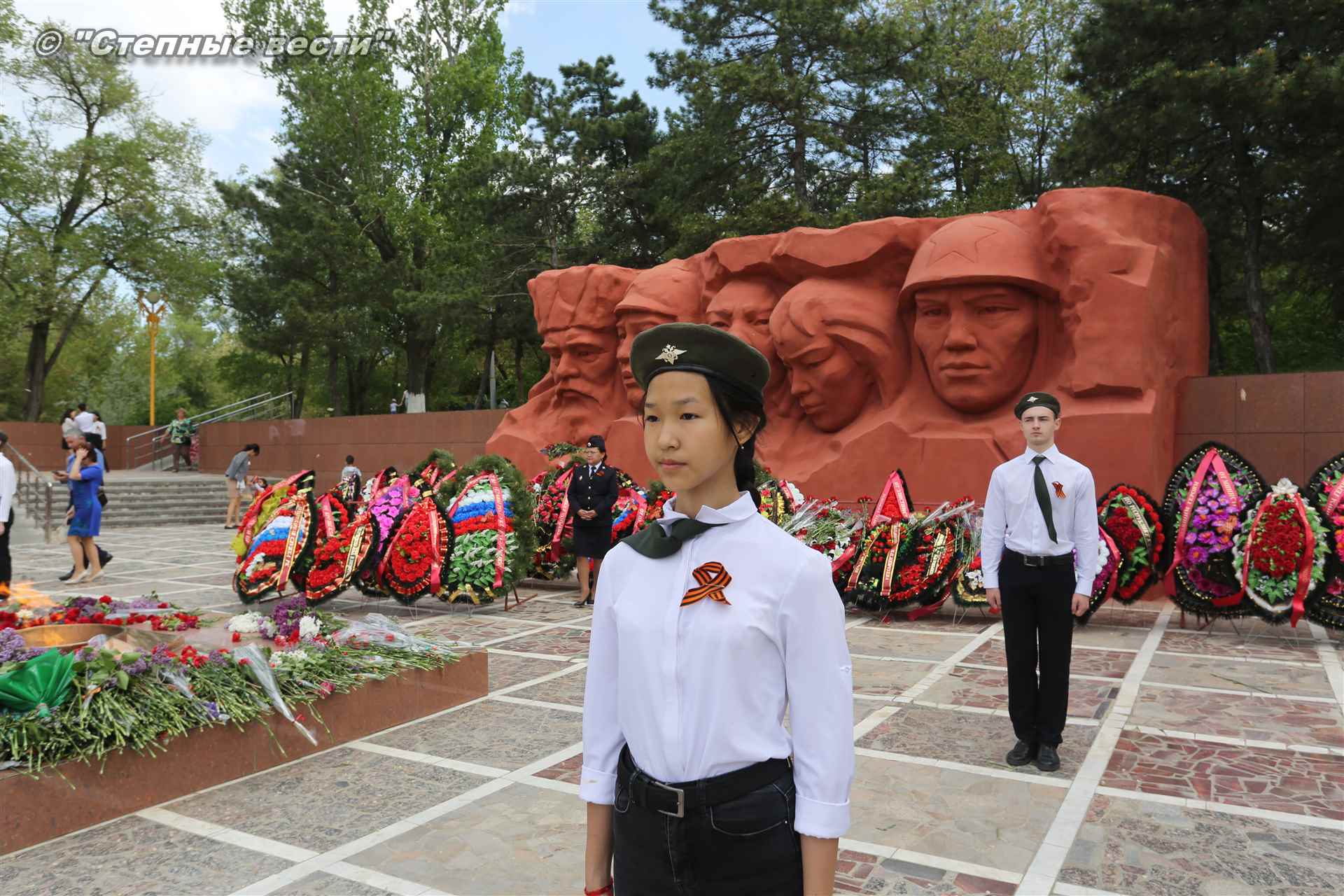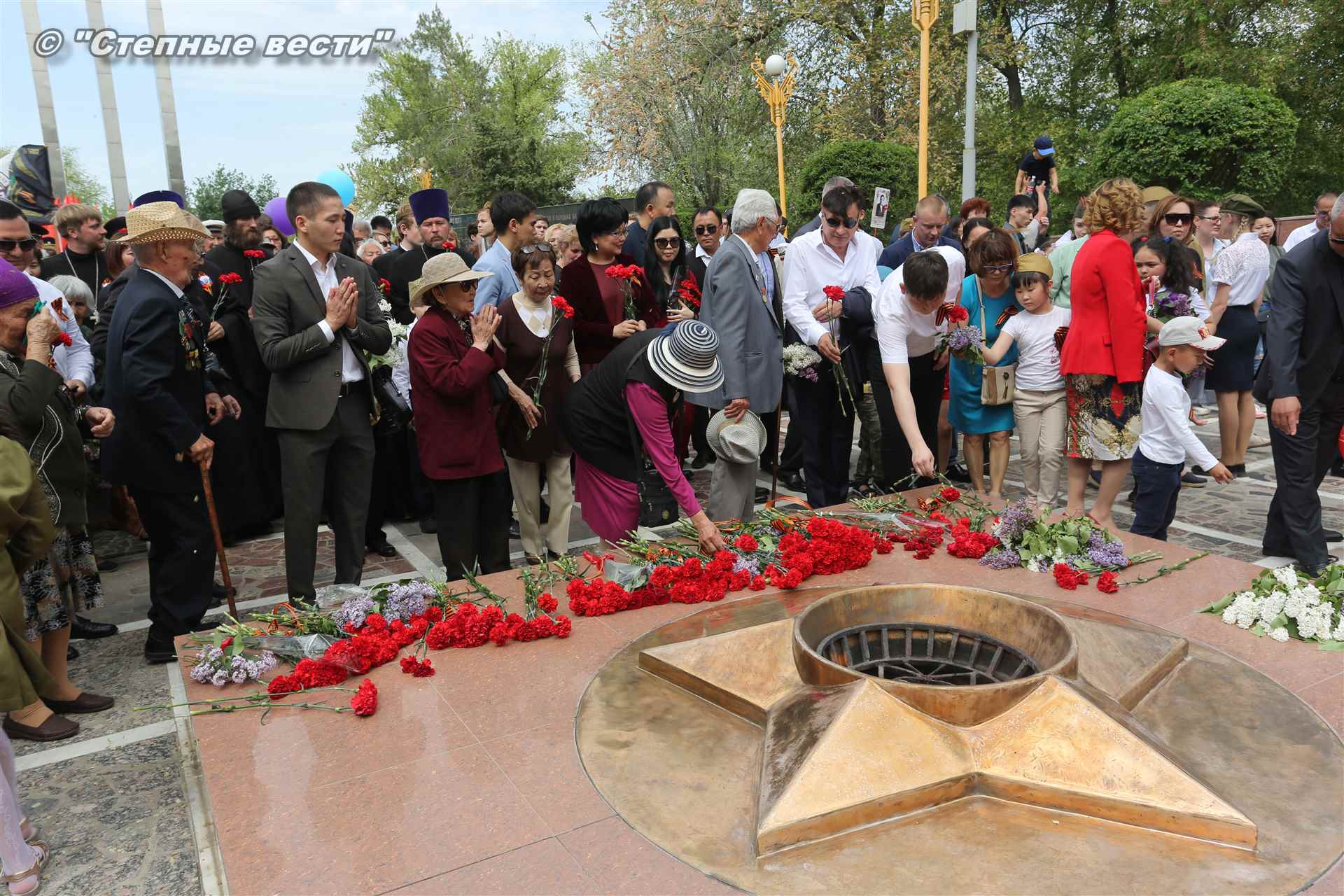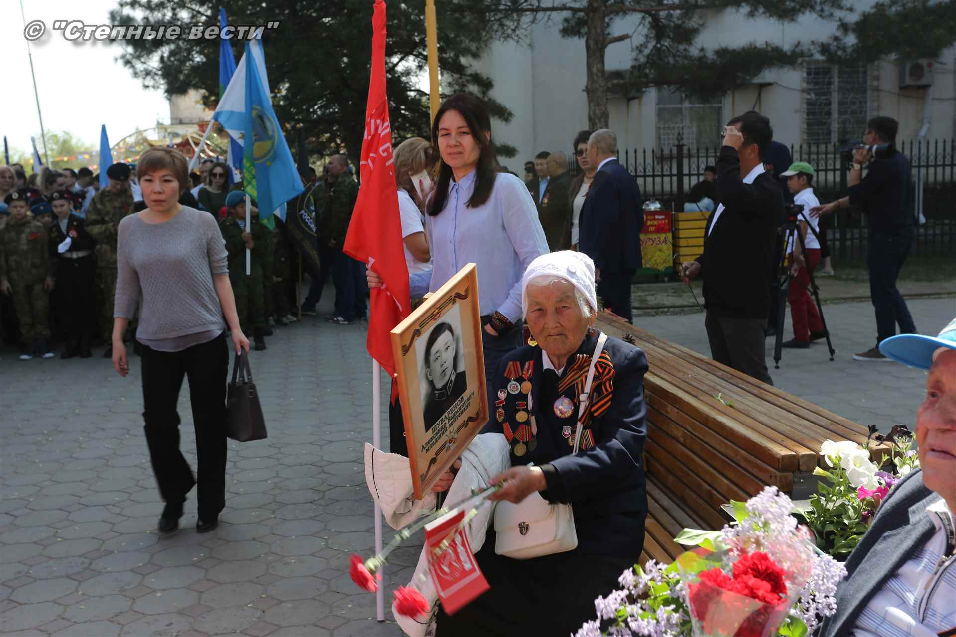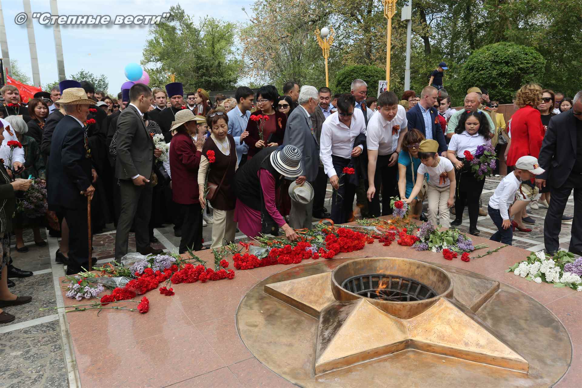Шествие началось с построения колонн на центральной площади города вокруг Пагоды семи дней. Процессия, состоящая из нескольких сотен жителей Элисты, двинулась вдоль Аллеи Героев к памятнику Б. Городовикова и Героям Советского Союза, у подножия которых люди возложили венки и цветы землякам-героям войны. Далее у мемориального комплекса героев Гражданской и Великой Отечественной войн состоялся торжественный митинг. Открыл его песней «День победы» сводный хор учащихся школ Элисты под управлением заслуженной артистки РК Натальи Дукмановой.